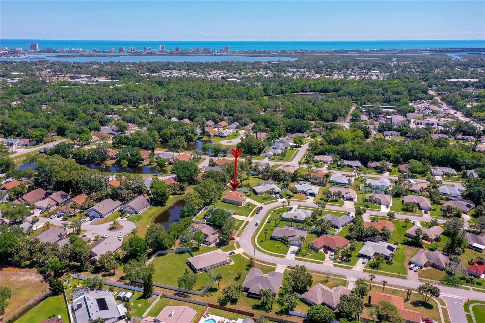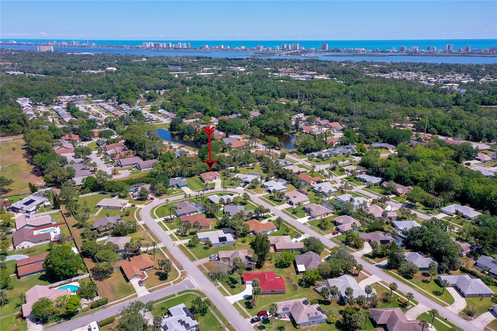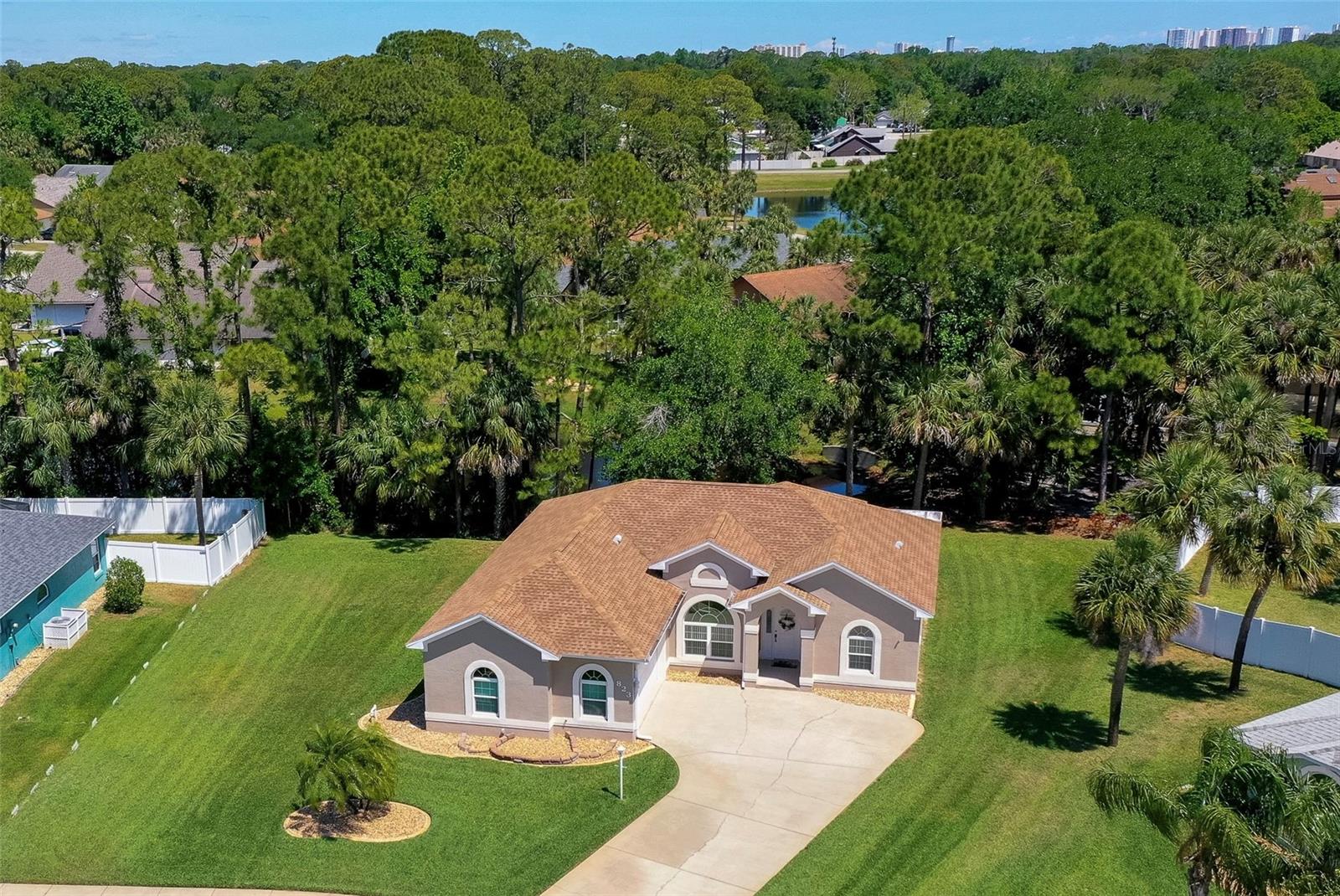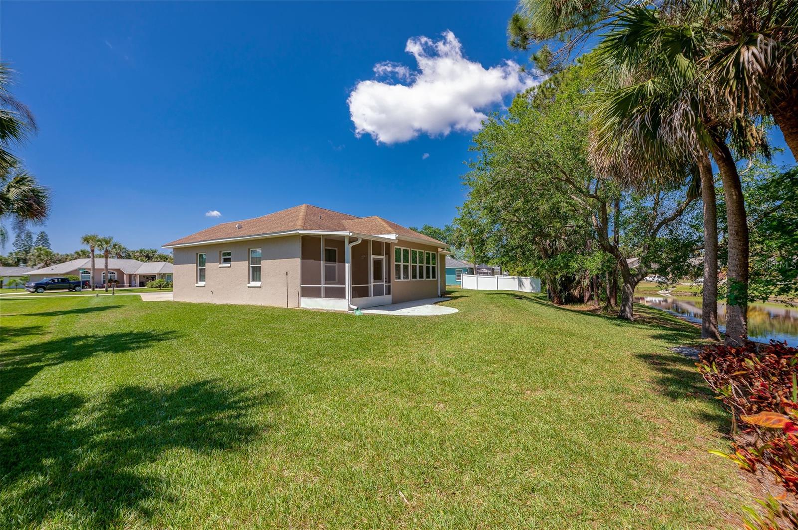 Welcome to this charming and well maintained 3 bedroom, 2 bathroom lakefront home in the serene and sought-after Woodlake community. 100% financing eligible. No flooding, high and dry. From the moment you arrive, you'll appreciate the inviting curb appeal, the extra long driveway, and the peaceful ambiance of the tranquil neighborhood. High and dry, never flooded. New Roof, New A/C with surge protector and New Commercial Water Heater with instant hot water. This thoughtfully designed split floor plan offers both comfort and functionality. Step inside to find soaring vaulted ceilings and solid surface flooring throughout, creating an open and airy ambiance. The kitchen features granite counters, recessed lighting, full stainless steel appliance package and a cozy breakfast nook overlooking the peaceful lake. Enjoy formal meals in the elegant dining room or unwind in the sunroom that's flooded with natural light and offers a beautiful view of the lake. Just off the sunroom, the screened porch provides the perfect spot to relax and enjoy gentle breezes and serene water views. Outdoor enthusiasts will appreciate the opportunity to fish right from your backyard. The generous primary suite is a true retreat, complete with a walk-in closet and a luxurious ensuite bathroom featuring a double sink vanity, a walk-in shower and a soothing garden tub. This home's prime location is just minutes from the Intracoastal, pristine beaches, and an array of dining, shopping, and entertainment options. Whether you're looking for a peaceful retreat or a home near all the action, this property offers the best of both worlds. Don't miss this opportunity to make this home your own! All information recorded in the MLS is intended to be accurate but cannot be guaranteed.