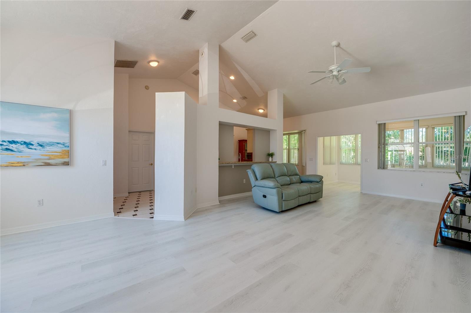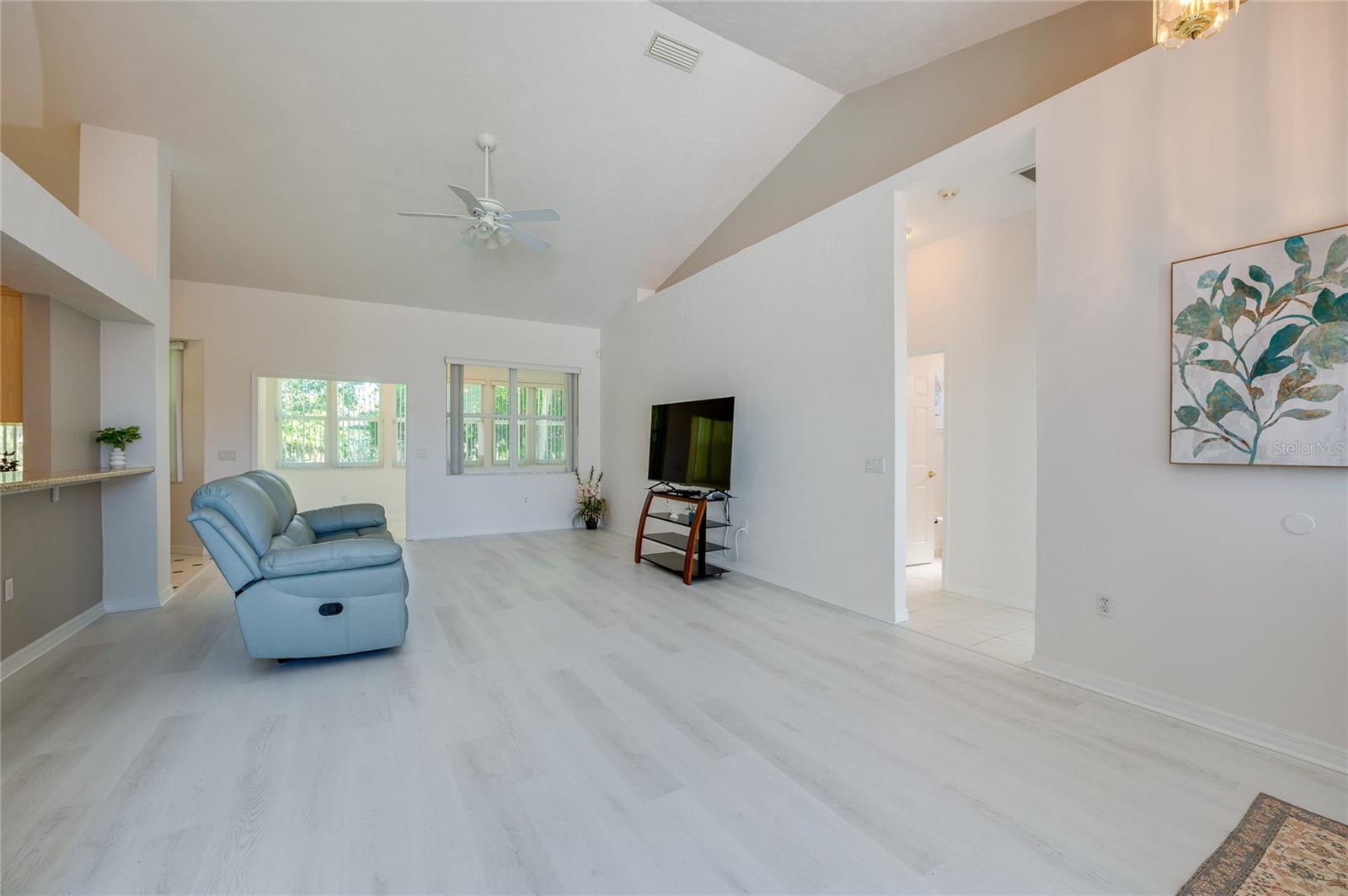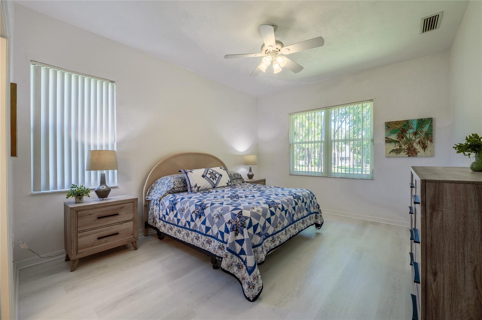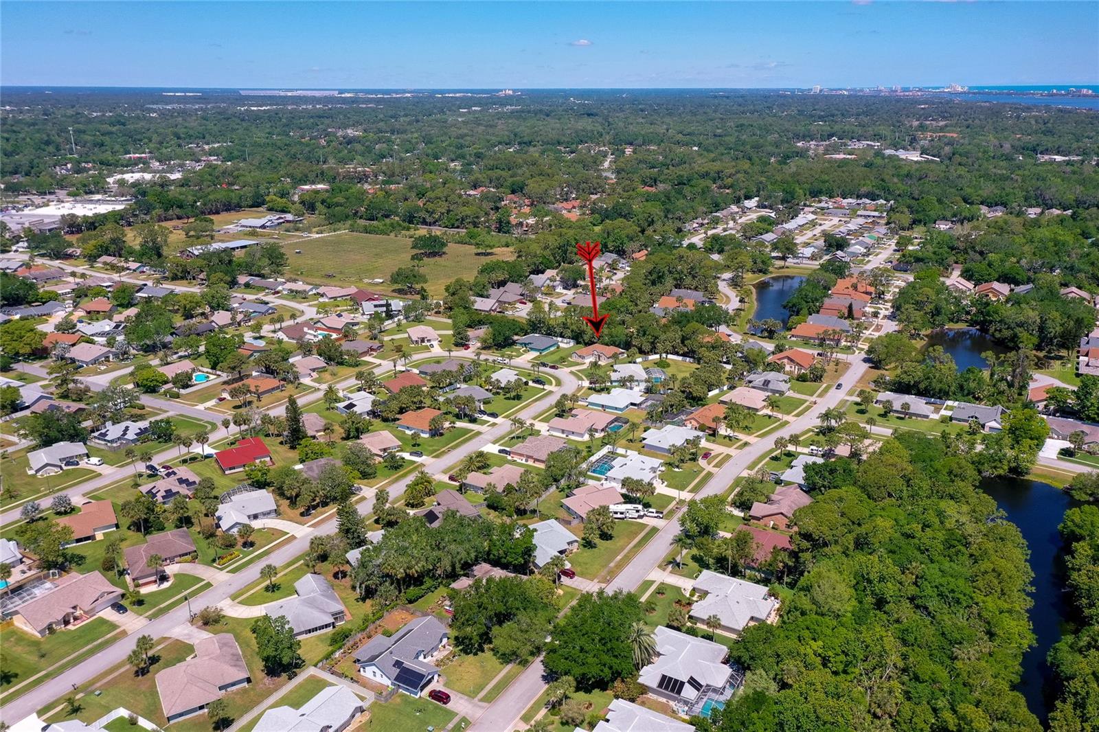 Welcome to this charming and well maintained 3 bedroom, 2 bathroom lakefront home in the serene and sought-after Woodlake community. 100% financing eligible. No flooding, high and dry. From the moment you arrive, you'll appreciate the inviting curb appeal, the extra long driveway, and the peaceful ambiance of the tranquil neighborhood. High and dry, never flooded. New Roof, New A/C with surge protector and New Commercial Water Heater with instant hot water. This thoughtfully designed split floor plan offers both comfort and functionality. Step inside to find soaring vaulted ceilings and solid surface flooring throughout, creating an open and airy ambiance. The kitchen features granite counters, recessed lighting, full stainless steel appliance package and a cozy breakfast nook overlooking the peaceful lake. Enjoy formal meals in the elegant dining room or unwind in the sunroom that's flooded with natural light and offers a beautiful view of the lake. Just off the sunroom, the screened porch provides the perfect spot to relax and enjoy gentle breezes and serene water views. Outdoor enthusiasts will appreciate the opportunity to fish right from your backyard. The generous primary suite is a true retreat, complete with a walk-in closet and a luxurious ensuite bathroom featuring a double sink vanity, a walk-in shower and a soothing garden tub. This home's prime location is just minutes from the Intracoastal, pristine beaches, and an array of dining, shopping, and entertainment options. Whether you're looking for a peaceful retreat or a home near all the action, this property offers the best of both worlds. Don't miss this opportunity to make this home your own! All information recorded in the MLS is intended to be accurate but cannot be guaranteed.