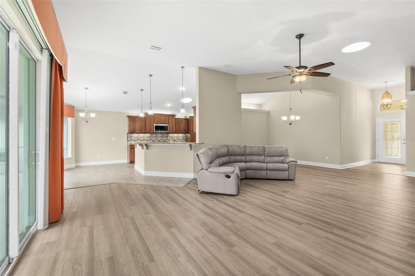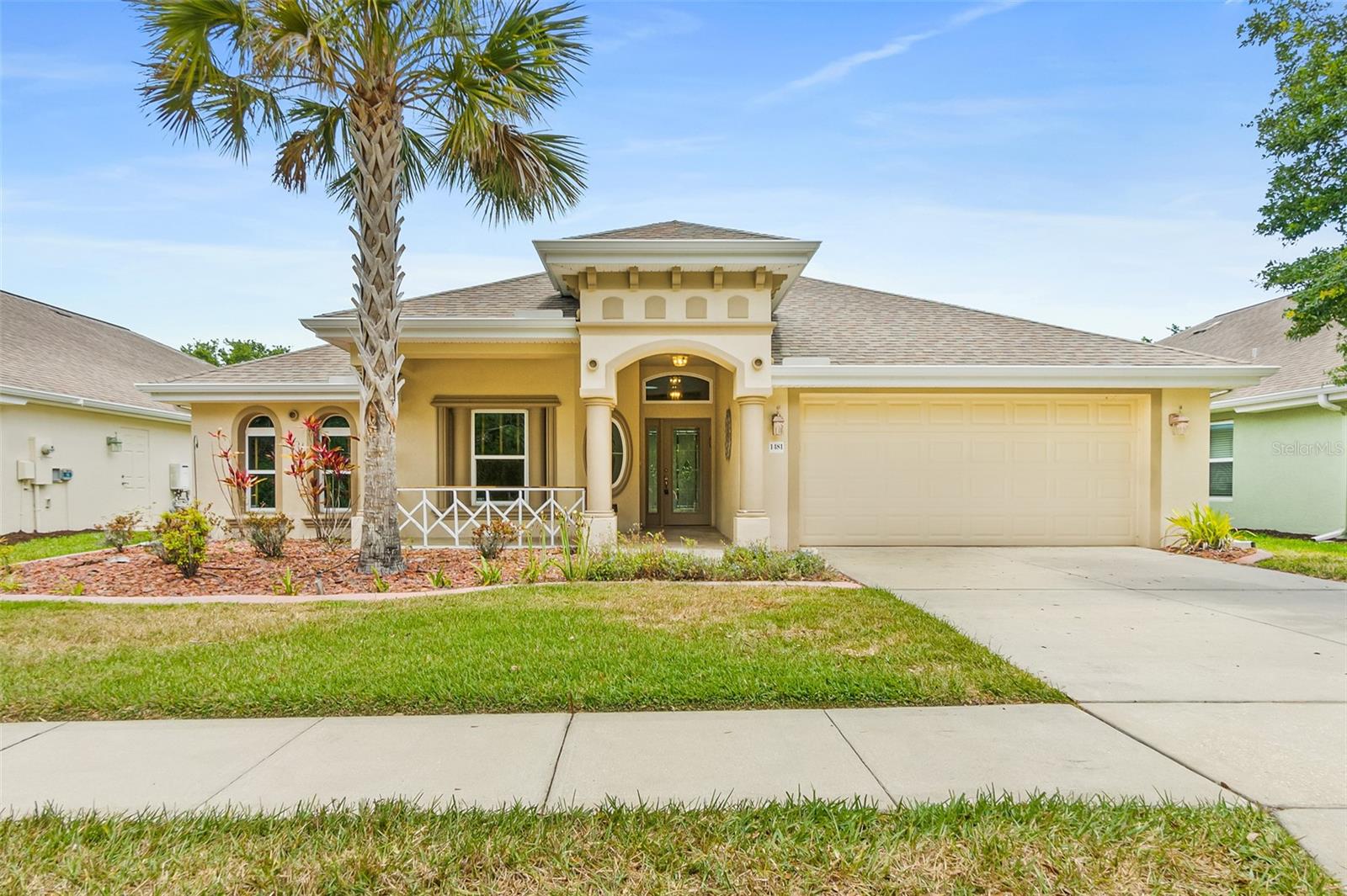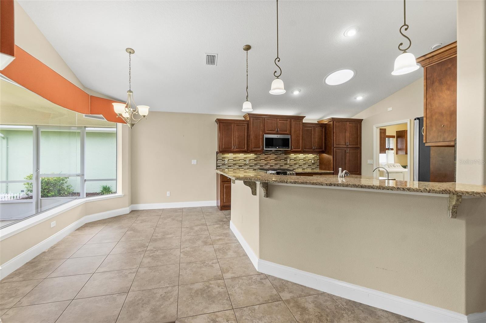 This gorgeous 4-bedroom, 2-bathroom home located in the sought-after MAINTENANCE FREE COMMUNITY of the Villages at Royal Palm features a fantastic modern design, and vaulted ceilings. The spacious open floor plan boasts a large living room, spacious formal dining area, and a fantastic kitchen with loads of cabinet and counter space, island with storage, granite counters, stainless steel appliances, breakfast bar, and breakfast nook. The large master bedroom has a spacious walk-in closet and luxurious ensuite bathroom with dual sinks, walk-in shower and soaker tub. The 3 additional guest bedrooms are spacious and enjoy a beautiful, shared bathroom. Relax in your outdoor paradise in the lovely, fully screened lanai, or welcome your guests with a refreshing drink on the front porch. This home also offers a 2-car garage and separate laundry room. And residents here enjoy a fabulous Florida lifestyle thanks to an amazing location and awesome community amenities. Here, the monthly HOA fee and activity fee covers gated entry, landscaping, exterior painting & pressure washing of your home, and pest control. You also have access to the community clubhouse with 2 sparkling pools, business center, a gym, and tennis/basketball court. And this great home is located near some of the area's best restaurants, shopping spots, entertainment options, schools, parks, and the beach. This is IT. The ONE. Schedule your showing today.
