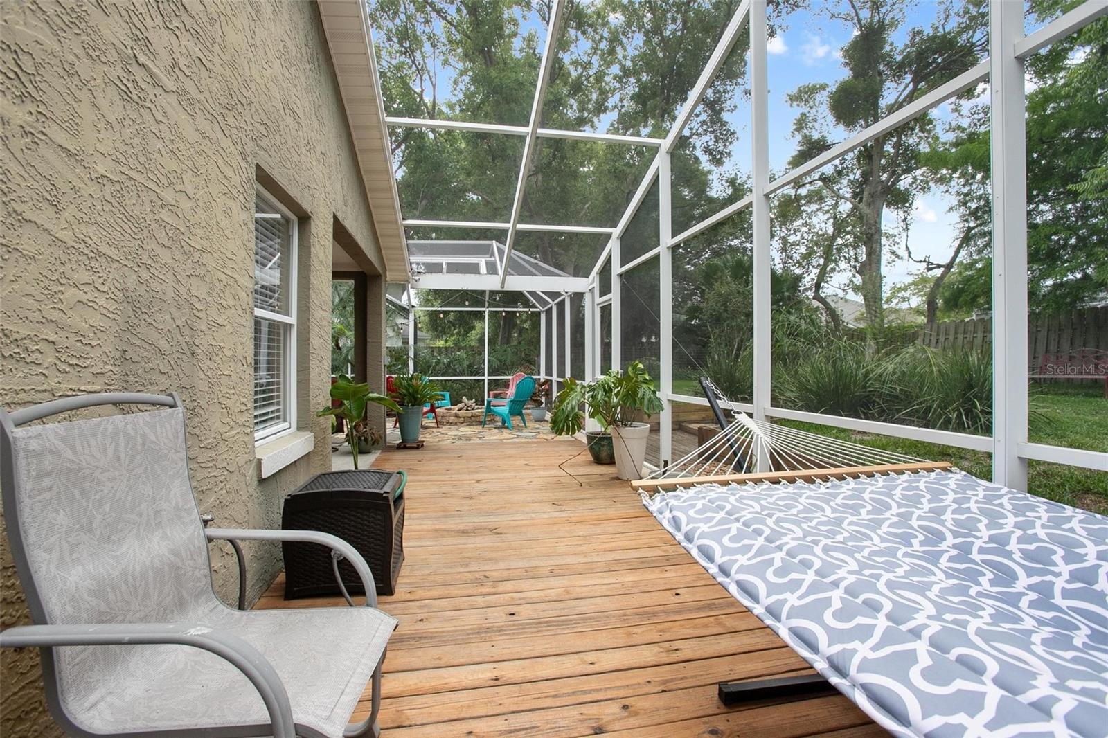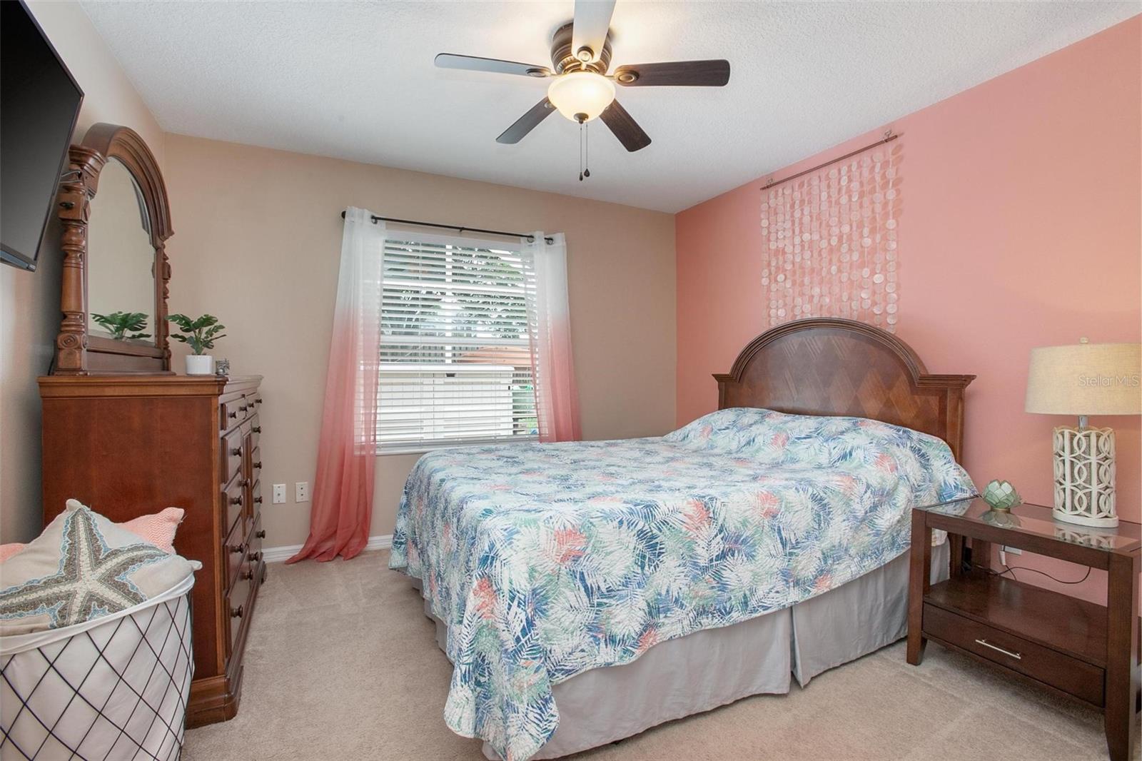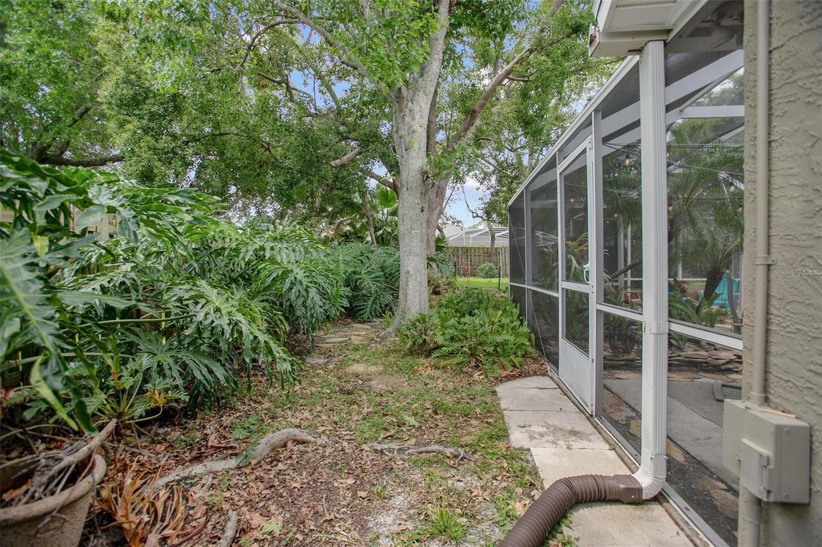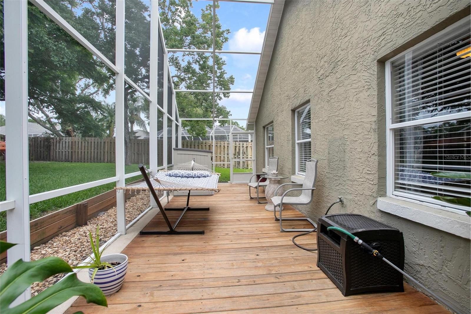 Welcome to this beautifully maintained 3-bedroom, 2-bathroom brick home nestled in the Countryside West neighborhood. Offering 1,850 sq ft of thoughtfully designed living space, this residence boasts high ceilings, a desirable split floor plan, and tasteful upgrades throughout. As you approach, you'll be greeted by a tastefully landscaped exterior and new concrete curbing (2024), setting the tone for the care and attention given to this home. Inside, a seamless flow connects the kitchen, living, and dining areas, ideal for entertaining or everyday comfort. The kitchen features stainless steel appliances, tray ceilings, ample cabinet space, and a view into the beautifully landscaped backyard. The spacious primary suite offers a large walk-in closet and a tastefully updated en-suite bathroom with a dual sink vanity, soaking tub, and glass-enclosed shower. The living room features an expansive slider that fills the space with natural light and opens to a screened-in back patio oasis (NEW screen enclosure 2023). Additional highlights include a 2019 roof with a transferable 10-year warranty, indoor laundry room, and a hot water heater less than one year old. Step outside to enjoy a generous backyard complete with decked patio areas, a stone firepit, palm tree landscaping, and a tranquil pond—all enclosed by wood shadow box fencing for privacy. A storage shed is also included for added convenience. Located on a comfortable-sized lot in a peaceful, well-established community, this home checks all the boxes for style, function, and value. Schedule your private showing today!