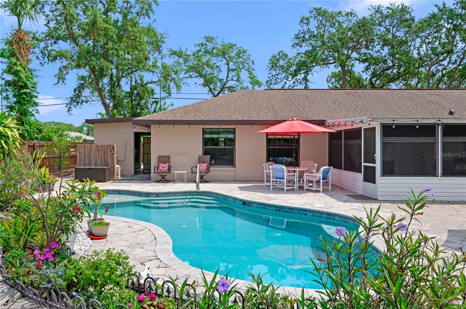 Welcome to your own private retreat — a beautifully renovated single-family home with a detached guest house and an inviting saltwater pool, all tucked away on a spacious lot. With 5 bedrooms (2 being studio suites), this property offers incredible flexibility for multi-generational living, guest accommodations, or even rental income potential. Step inside the main house and you'll instantly feel at home. The updated kitchen features gorgeous granite counters, solid wood cabinets, stainless steel appliances, and a cozy butler's pantry that doubles as a coffee bar and extra storage space. The living room is warm and welcoming, with custom built-ins and charming shiplap accents that add just the right touch of character. The primary suite is spacious and serene, complete with a custom dressing area and a beautifully remodeled bath. Two additional bedrooms and a second full bath round out the main house. There's even a large laundry area for added convenience. Out back, the saltwater pool is the heart of the property perfect for lazy weekends or entertaining a crowd. The screened porch offers flexible indoor/outdoor living, and there's a poolside cabana with its own shower and toilet, plus a powered shed for storage or hobbies. The detached guest house is a standout feature, offering two separate in-law suites each with its own living area, kitchenette, and full bath plus an additional space with another full bathroom that could be used as a third suite, office, or pool hangout. Whether you're housing extended family, need space for a caregiver, or just want private guest quarters, this setup delivers. It's also ideal for generating rental income or running a home-based business the possibilities are endless. Located just minutes from Port Orange shopping, dining, and top-rated schools, and a short drive to the beaches of Daytona and New Smyrna, this home truly has it all. Ready to see it for yourself? Don't wait homes like this don't come around often. Schedule your private tour today and come live the dream in Port Orange!