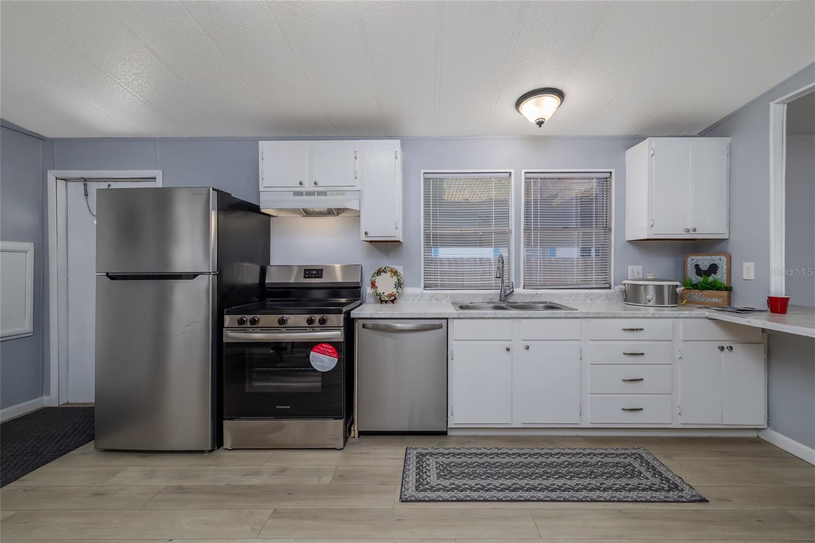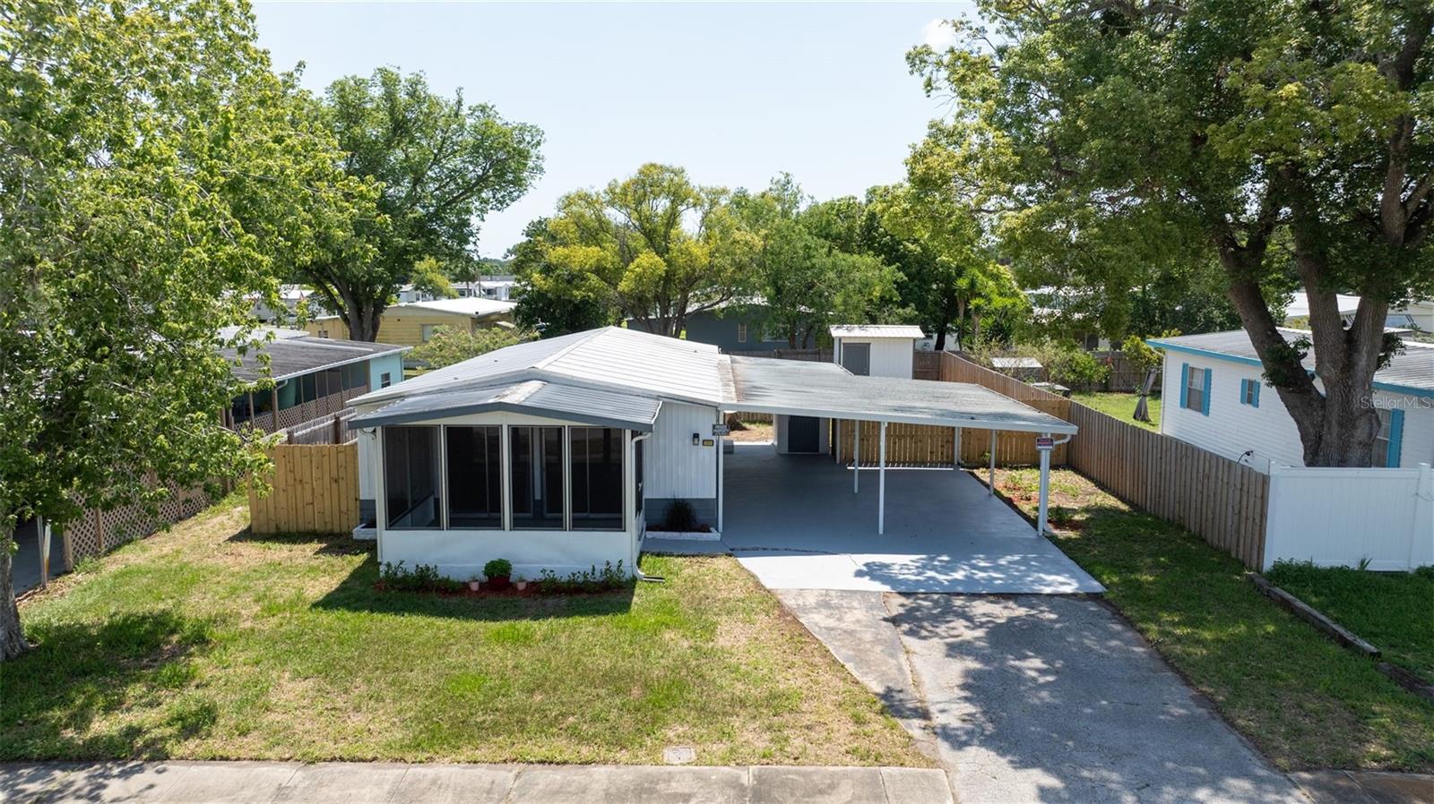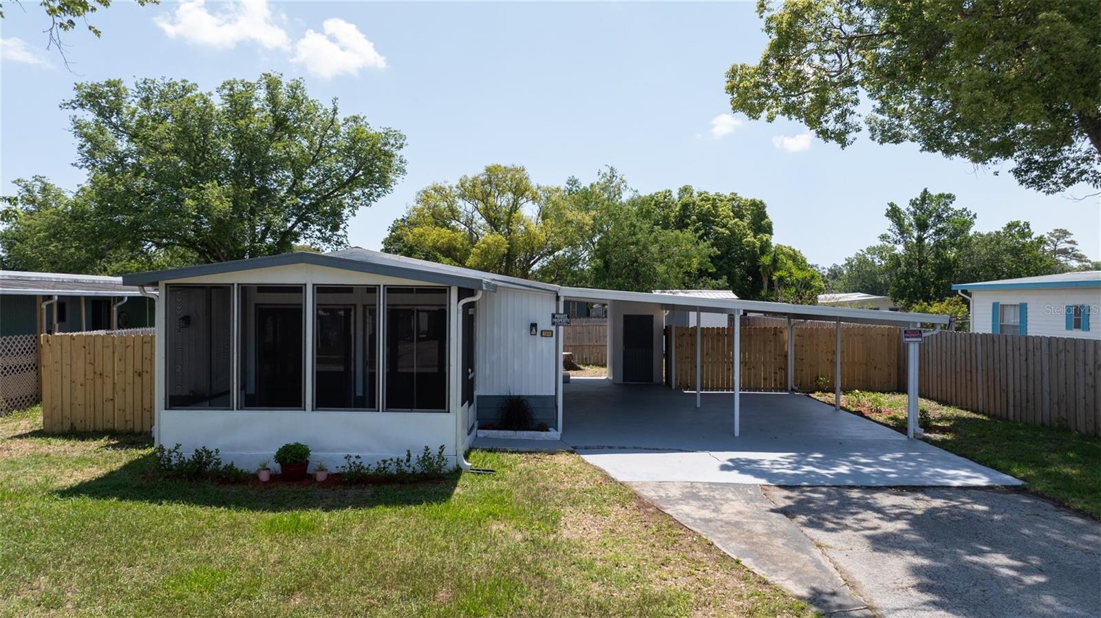 No HOA and NO LOT RENT! You own the land! This 2 bedroom, 2 bathroom property has been updated with new subfloors, lvp flooring throughout, and freshly painted. The kitchen is equipped with brand-new appliances and one of the bathrooms features a new walk-in shower. The spacious Florida room adds even more space—perfect for relaxing or entertaining. Outside, enjoy a metal roof, double carport, private fenced backyard, and an 8x10 storage shed for your tools, beach gear, or hobbies. There is plenty of room to add a pool. Located just minutes from shopping, dining, healthcare, and the beach, this home offers the ultimate in convenience and flexibility. No restrictions, no fees—just easy Florida living in a fantastic location!