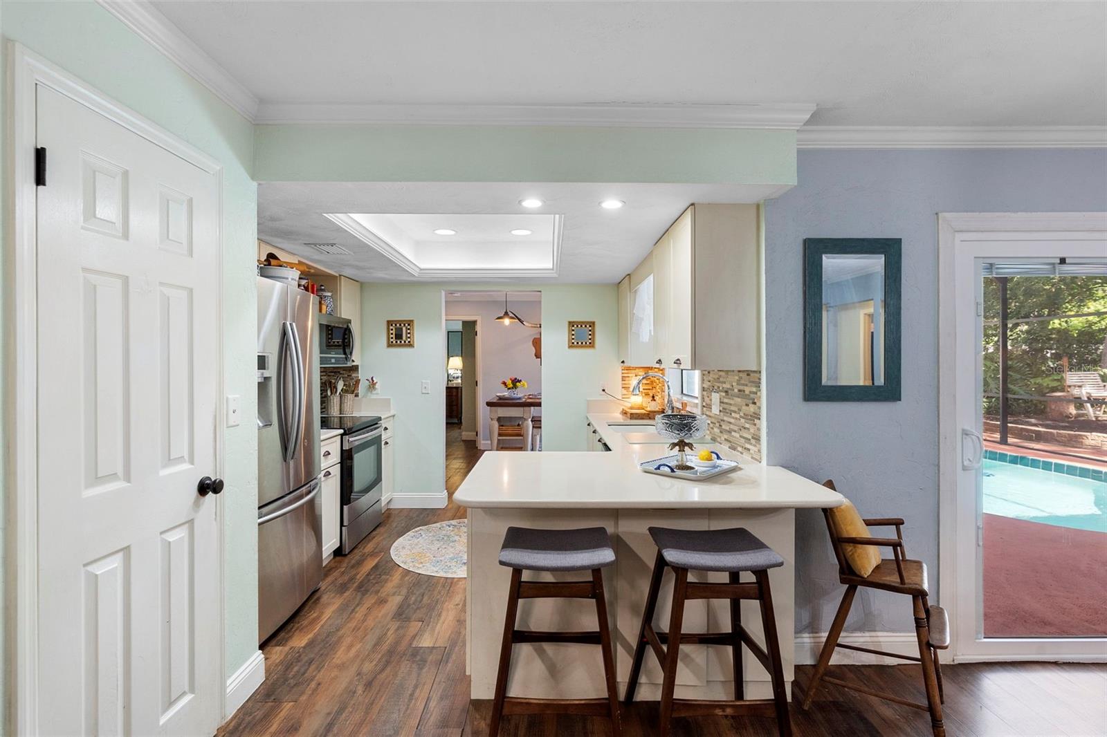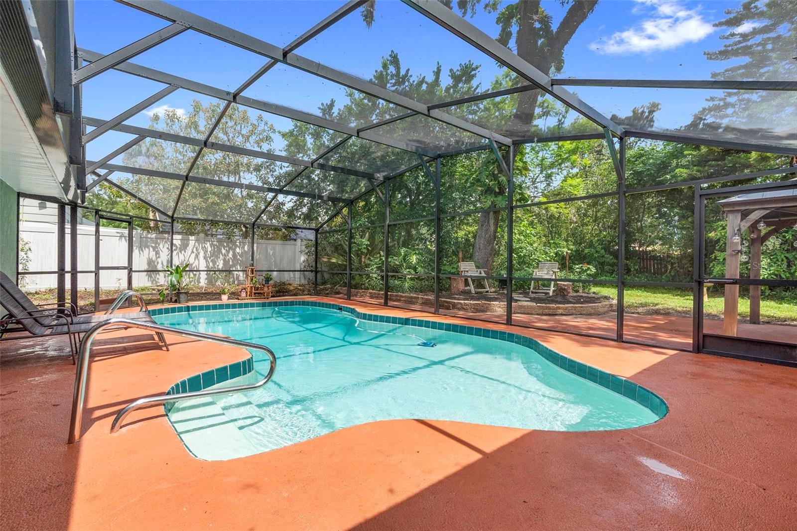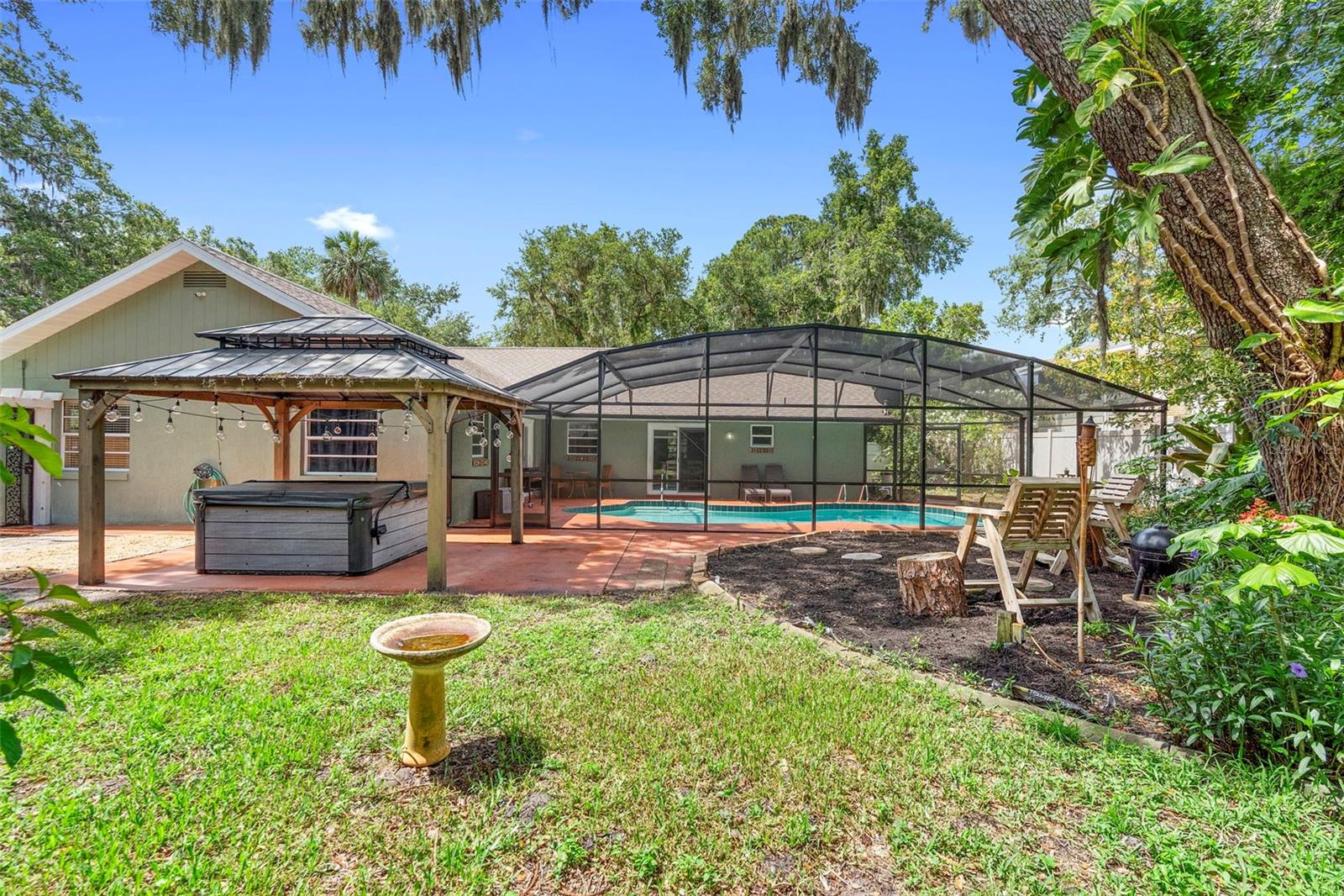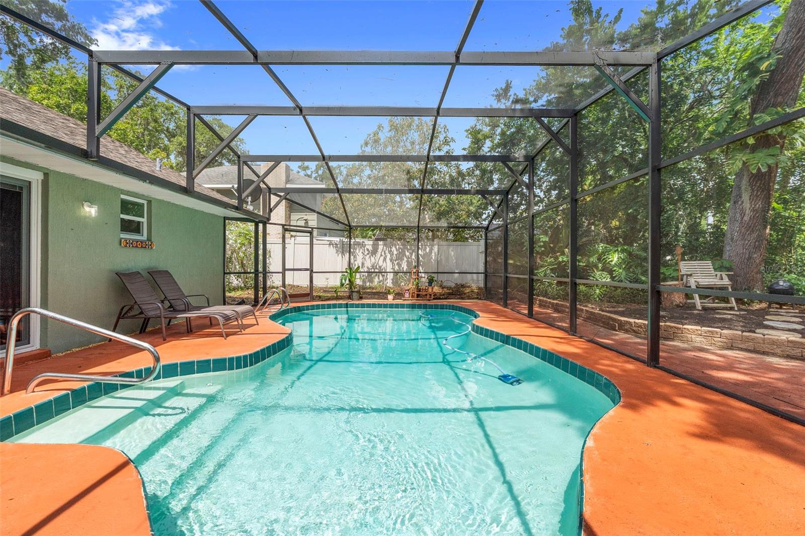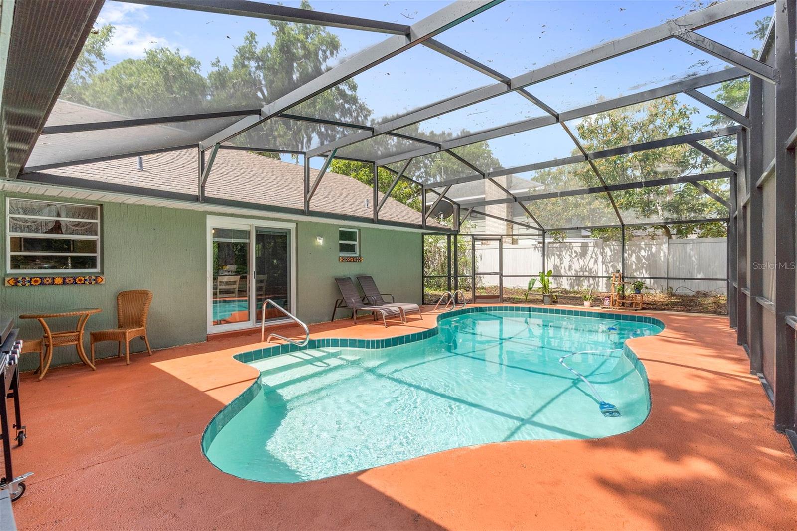 HUGE PRICE IMPROVEMENT! MUST SELL! Move-in ready - Stunning Pool House in Port Orange! Welcome to your dream home! This immaculate pool house offers the perfect blend of luxury, comfort, and convenience. This stunning ranch house offers a 3 bedroom, 2 bathroom split-plan. Step inside to discover a beautifully maintained interior featuring luxury vinyl and ceramic tile flooring throughout. The home boasts a huge laundry room, making chores a breeze. Outside, you'll find your own private oasis. Enjoy the Florida sunshine in your screened-in pool enclosure, and unwind in the separate, above-ground heated hot tub. The property is fully fenced for privacy, situated on a desirable corner lot. The double garage features a screened door, and there's ample parking for your boat and golf cart. Location is key! This home is just 15 minutes from the beautiful beaches and the charming Ponce Inlet. You'll also be close to the best schools in Volusia County. For sports enthusiasts, the sports complex is just half a mile away. Nature lovers will appreciate the proximity to a pond and creek, perfect for fishing! Don't miss this opportunity to own a piece of paradise! Schedule your showing today and experience the ultimate in Florida living.