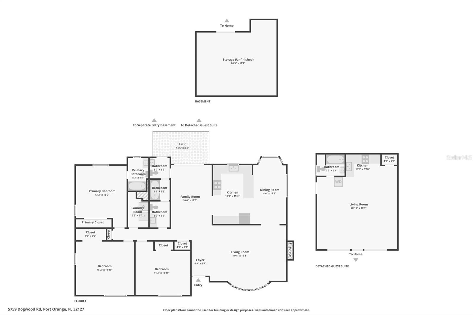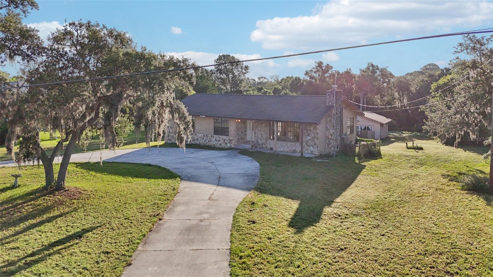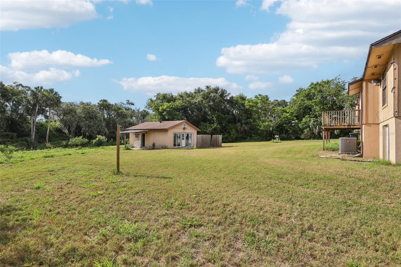 No Minimum Rental Restrictions! Over an acre located at a very high elevation, 17 feet or more above sea level - SELLER MOTIVATED! Bring offer! Welcome to 5759 Dogwood Road, an exceptional property offering a rare blend of rural charm and urban convenience in the heart of Port Orange. Zoned Agricultural, this unique residence provides the flexibility to raise chickens, cultivate a garden, or operate a home-based business, all in accordance with city zoning regulations. Situated on a high and dry one-acre lot at the end of a quiet, private dead-end road, the home offers unmatched privacy with no HOA or CDD restrictions. The main residence showcases timeless character with a cozy fireplace, laminate-wood flooring, solid pine doors, and a rare Florida basement—ideal for additional storage or workspace. Recent improvements include a new roof installed in 2020, a new sprinkler pump, and an oversized HVAC system, ensuring year-round comfort and long-term peace of mind. A full irrigation system supports the properties landscaping and gardening potential. A detached secondary dwelling with its own electric meter offers outstanding versatility, whether used for rental income, guest accommodations, or as a private office or studio. The circular driveway provides ample parking, and a built-in doggie door leads to a secure, enclosed pet area, making this home especially appealing for pet owners. Located adjacent to Spruce Creek High School and just minutes from shopping, dining, and major roadways, this property delivers the serenity of country living with the convenience of city access. With its flexible zoning, spacious layout, and thoughtful updates, 5759 Dogwood Road is a rare opportunity in today’s market. Contact your agent today to schedule a private showing and explore all that this remarkable property has to offer.