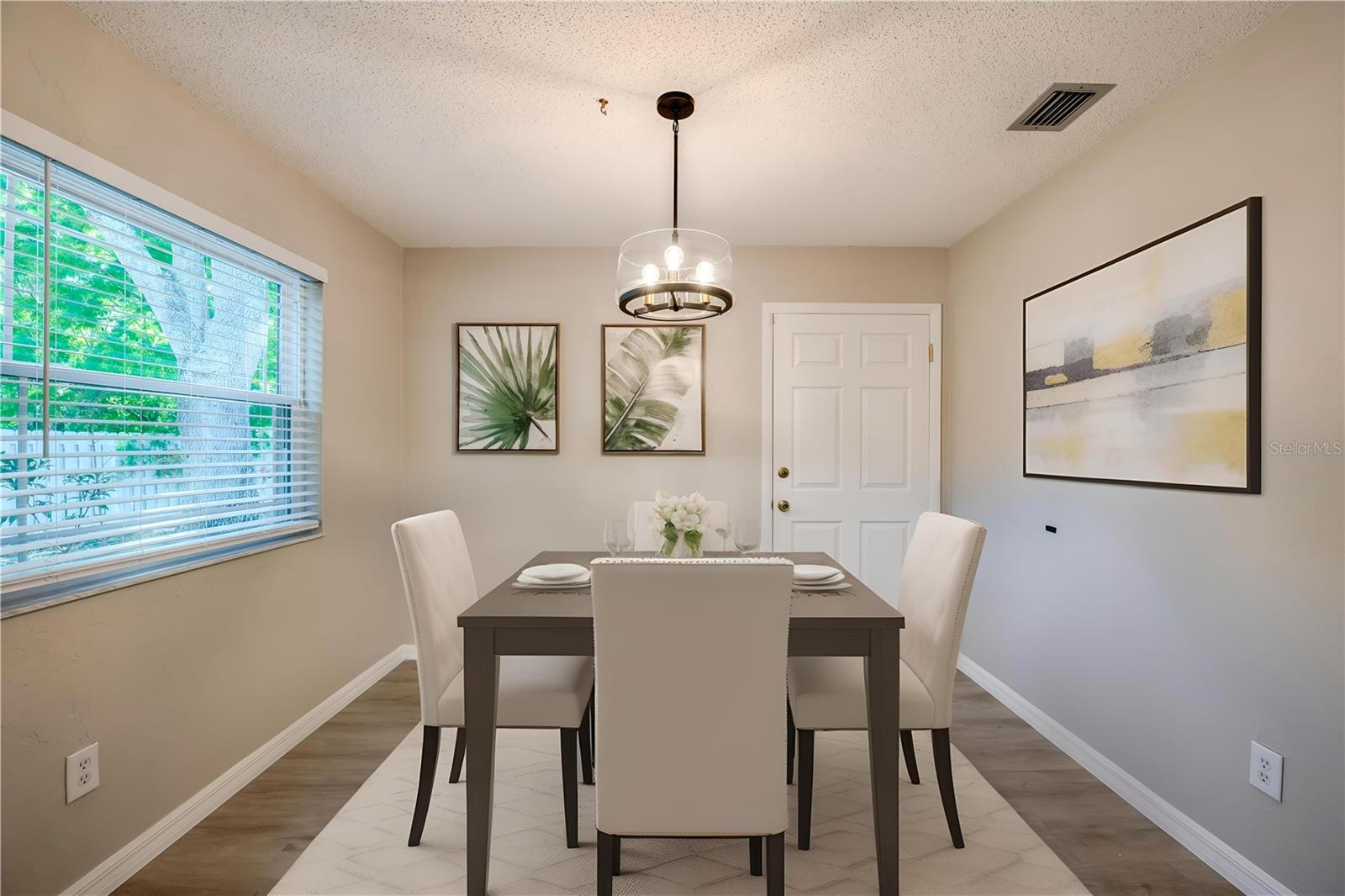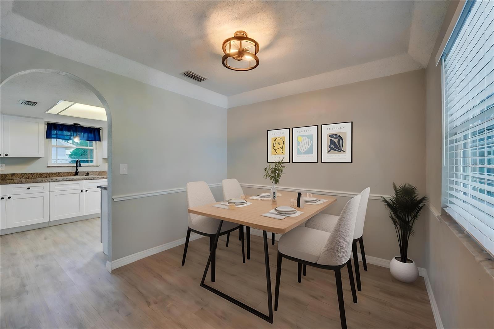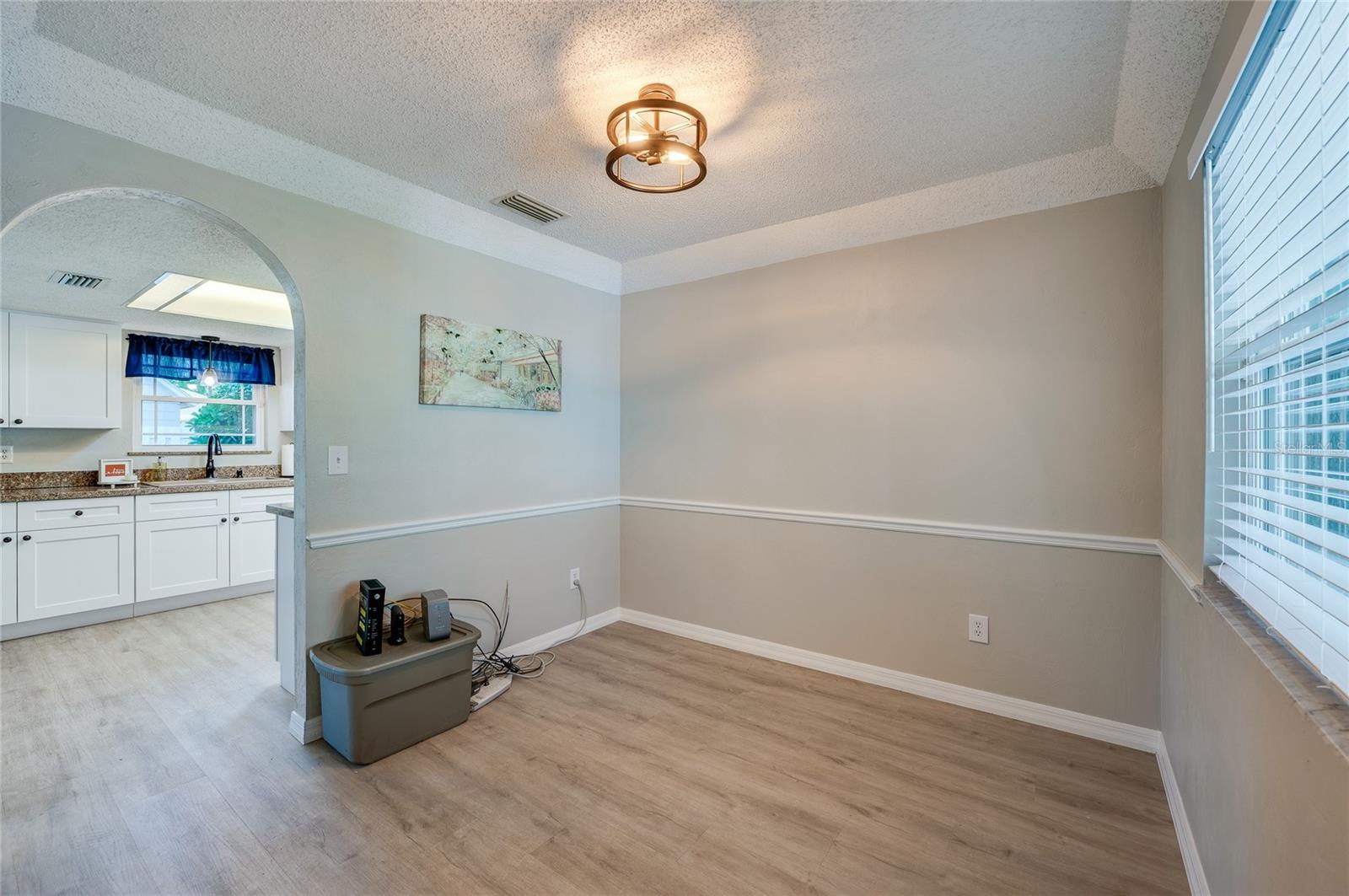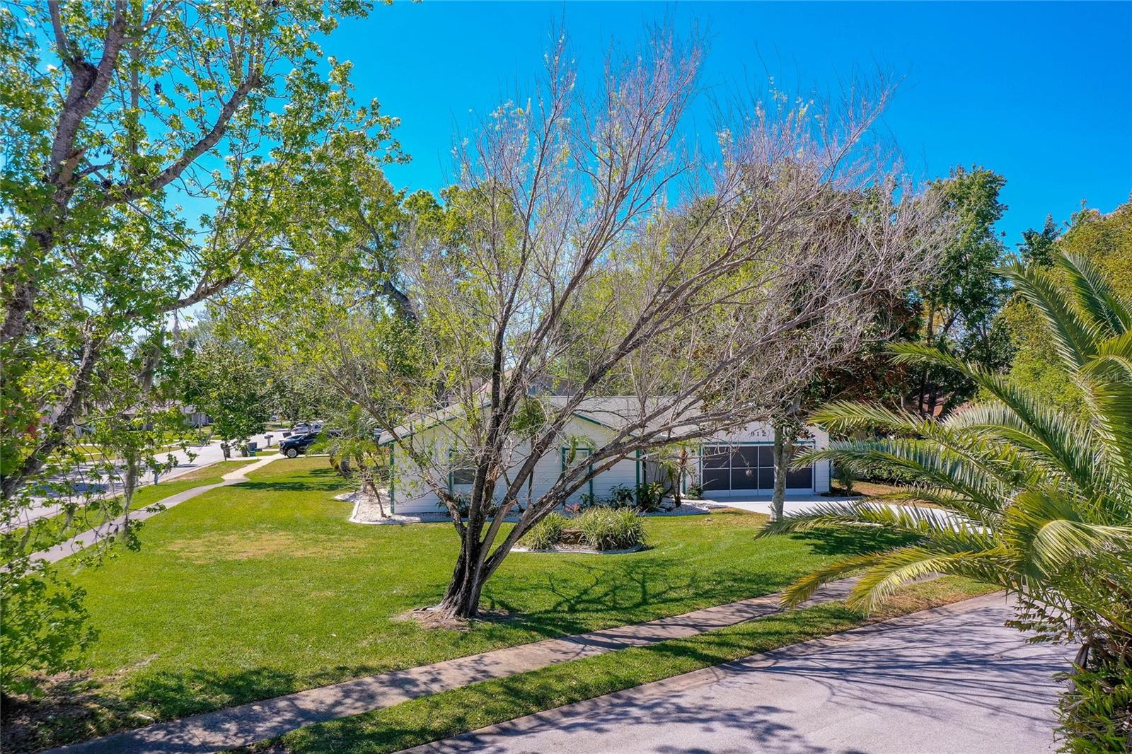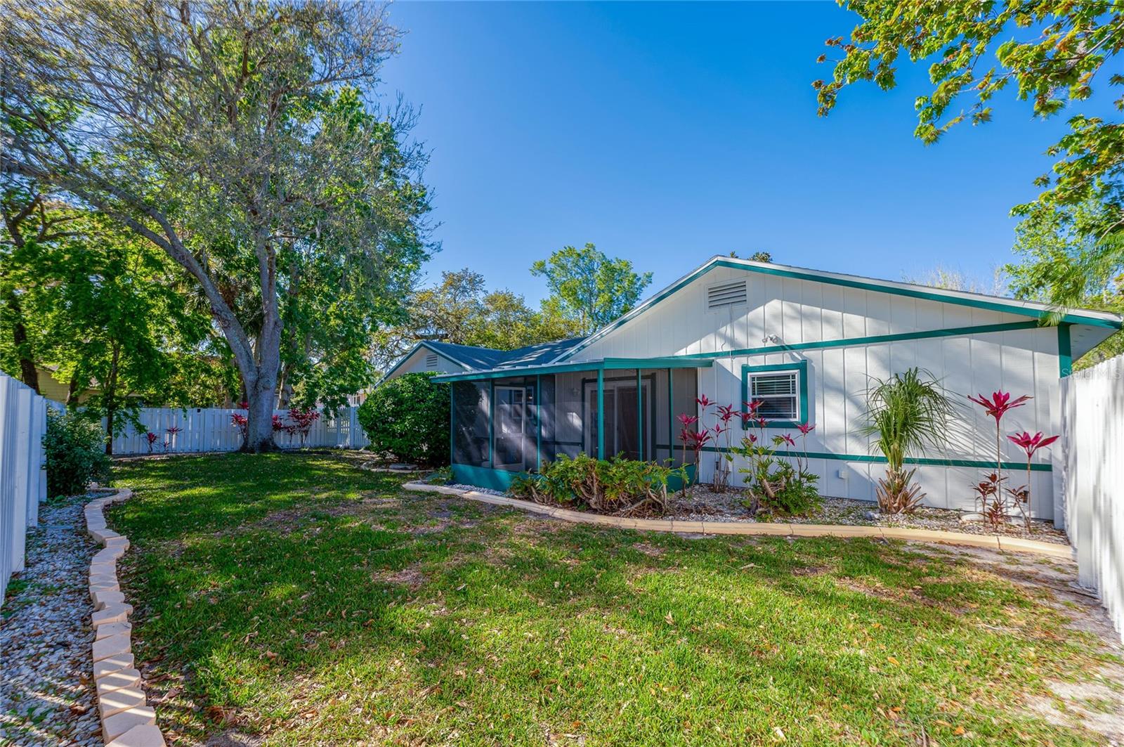 One or more photo(s) has been virtually staged. This beautifully updated 3-bedroom, 2-bathroom home in Deep Forest Village offers spacious living, thoughtful upgrades, a large corner lot, and a New Roof with acceptable offer. With an abundance of upgrades, including new windows and sliding glass doors, freshly painted interior and exterior. Step inside to a bright open concept floor plan with luxury vinyl flooring throughout. The living area features vaulted ceilings enhancing the sense of space, while the family room has a stylish shiplap feature wall, creating a welcoming interior. The stylish kitchen is both functional and inviting, featuring white shaker cabinetry, granite countertops, and a full appliance package. There is a breakfast nook for casual dining, and the separate dining room provides the ideal space for hosting family dinners and holiday gatherings. The primary suite is generously sized with a large closet and an en-suite bath with tiled, walk-in shower. Two additional bedrooms offer flexibility for family, guests or a home office. The second full bathroom includes a shower/tub combo, and a skylight that bathes the room in natural sunlight. Enjoy seamless indoor-outdoor living with a screened, tiled porch overlooking the fully fenced private backyard shaded by mature trees. The oversized corner lot is beautifully landscaped with defined garden beds, palm trees, and curved borders. With no HOA restrictions there is extra flexibility for RV or boat storage. Situated in a prime location, this home offers easy access to I-95 and is just minutes from The Pavilion, top-rated dining, shopping, movie theaters, medical facilities, and a variety of entertainment venues. Don't miss this exceptional opportunity to make this home your own. All information recorded in the MLS is intended to be accurate but cannot be guaranteed.