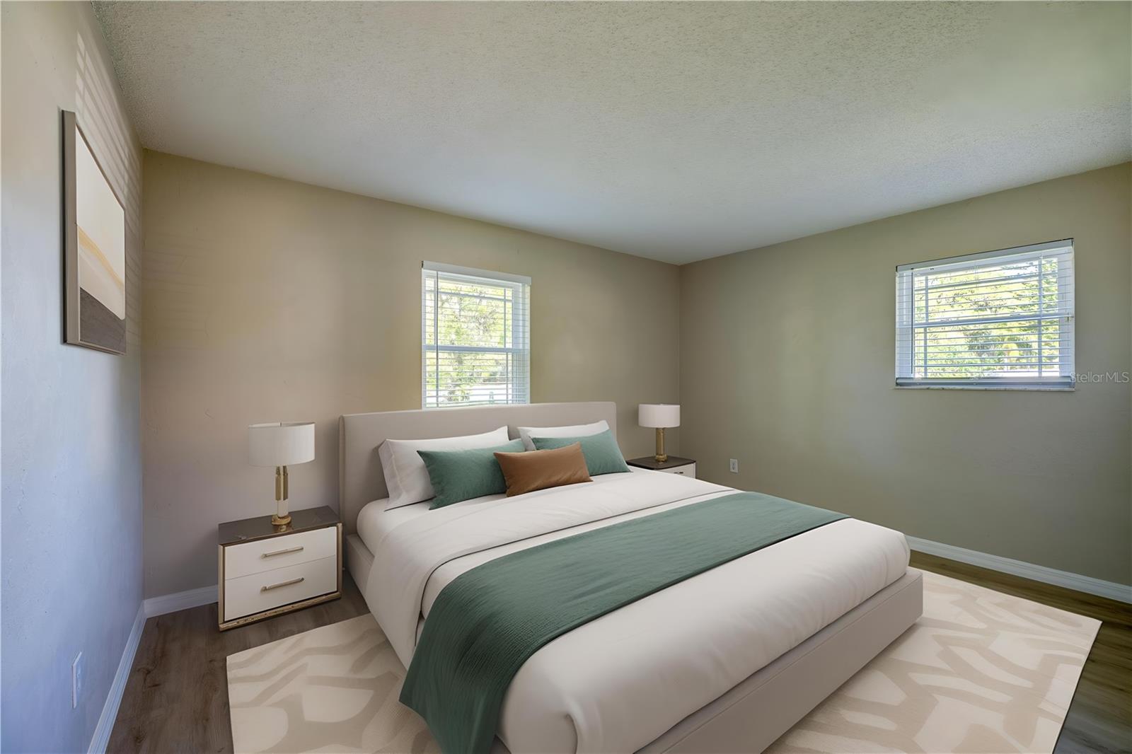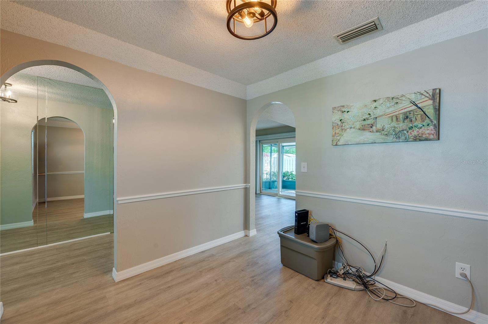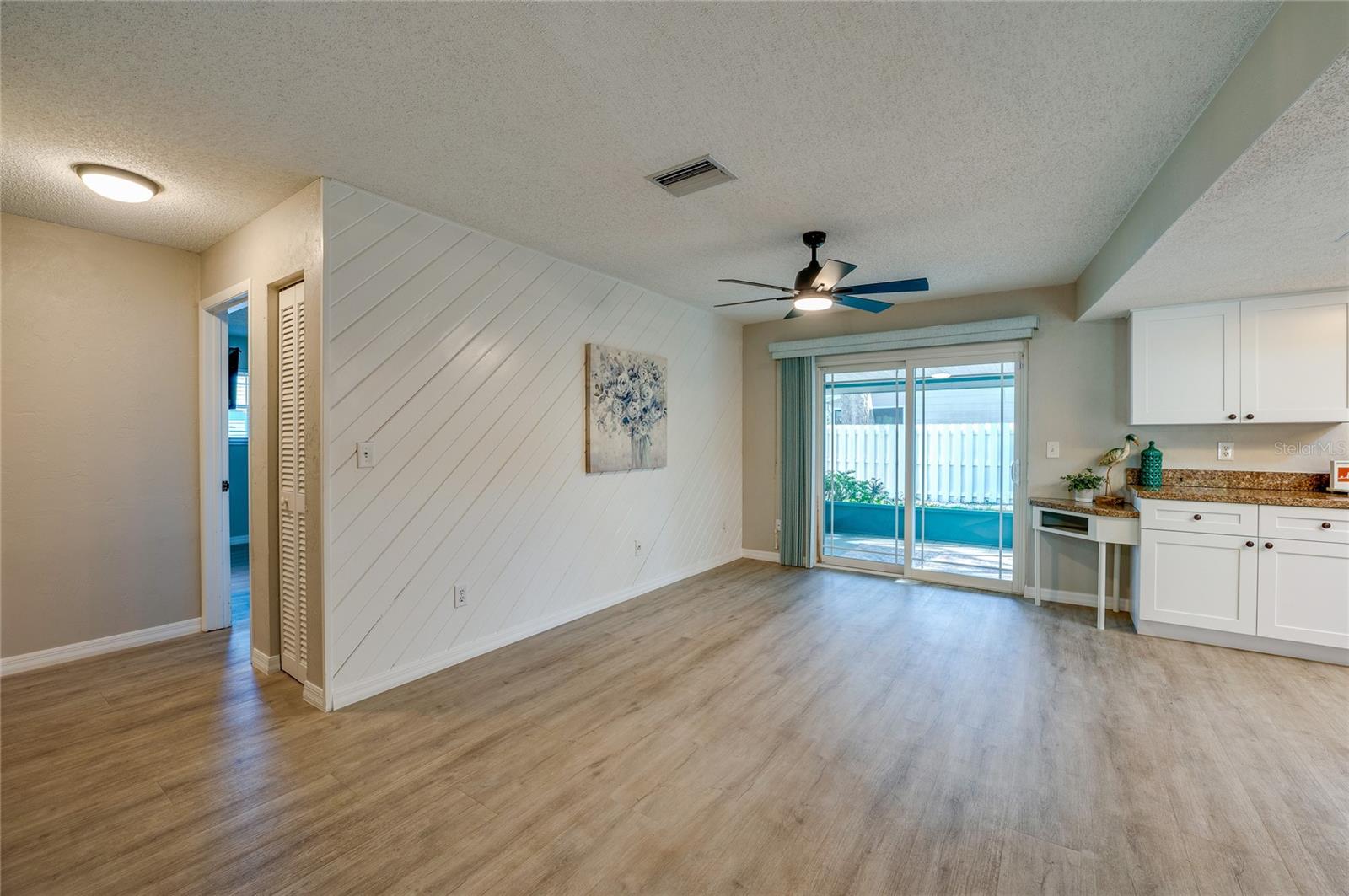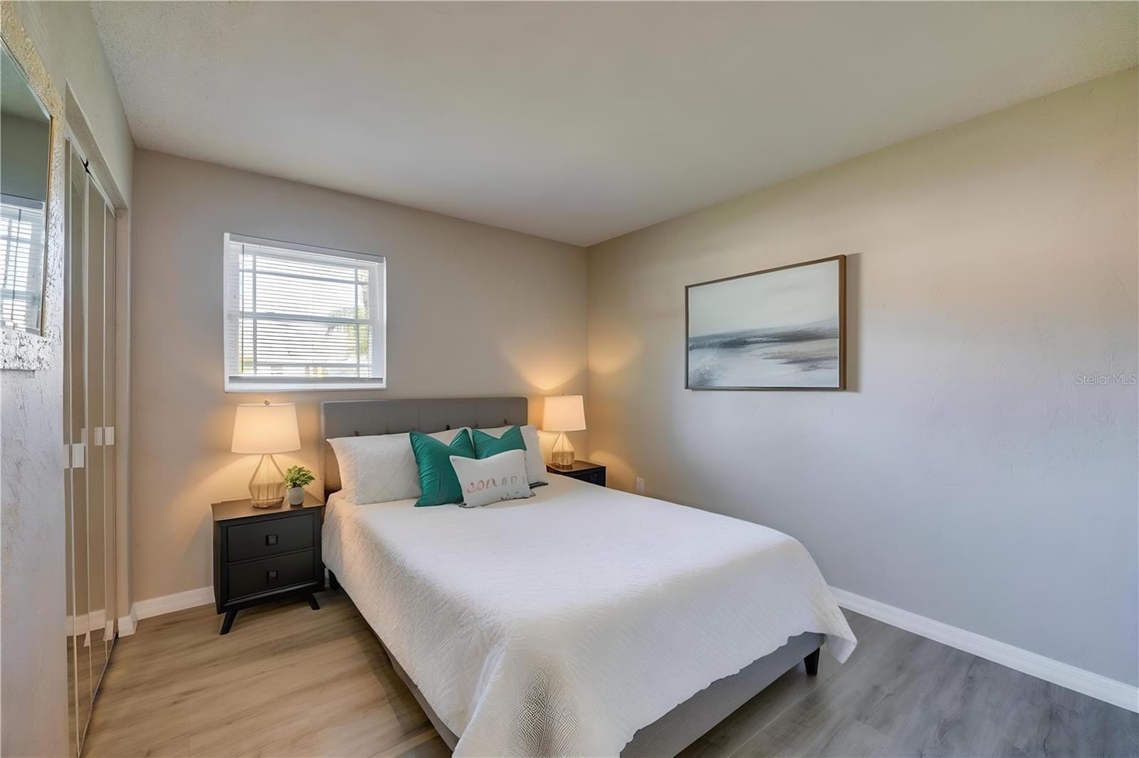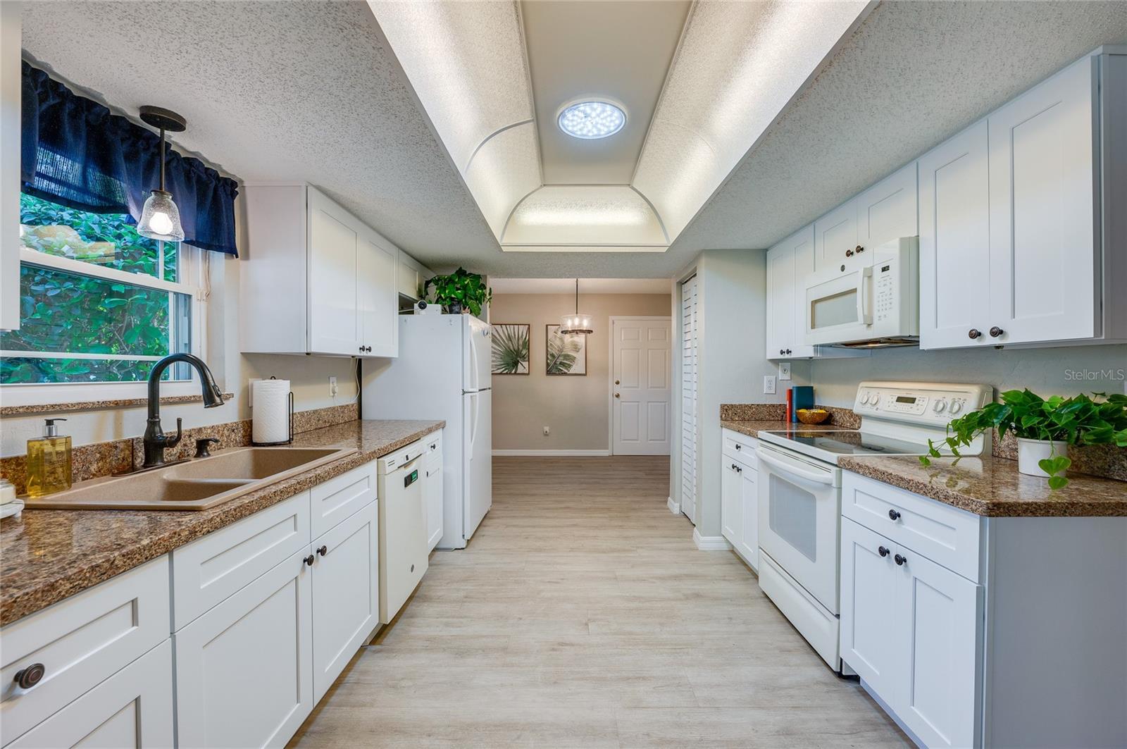 One or more photo(s) has been virtually staged. This beautifully updated 3-bedroom, 2-bathroom home in Deep Forest Village offers spacious living, thoughtful upgrades, a large corner lot, and a New Roof with acceptable offer. With an abundance of upgrades, including new windows and sliding glass doors, freshly painted interior and exterior. Step inside to a bright open concept floor plan with luxury vinyl flooring throughout. The living area features vaulted ceilings enhancing the sense of space, while the family room has a stylish shiplap feature wall, creating a welcoming interior. The stylish kitchen is both functional and inviting, featuring white shaker cabinetry, granite countertops, and a full appliance package. There is a breakfast nook for casual dining, and the separate dining room provides the ideal space for hosting family dinners and holiday gatherings. The primary suite is generously sized with a large closet and an en-suite bath with tiled, walk-in shower. Two additional bedrooms offer flexibility for family, guests or a home office. The second full bathroom includes a shower/tub combo, and a skylight that bathes the room in natural sunlight. Enjoy seamless indoor-outdoor living with a screened, tiled porch overlooking the fully fenced private backyard shaded by mature trees. The oversized corner lot is beautifully landscaped with defined garden beds, palm trees, and curved borders. With no HOA restrictions there is extra flexibility for RV or boat storage. Situated in a prime location, this home offers easy access to I-95 and is just minutes from The Pavilion, top-rated dining, shopping, movie theaters, medical facilities, and a variety of entertainment venues. Don't miss this exceptional opportunity to make this home your own. All information recorded in the MLS is intended to be accurate but cannot be guaranteed.
