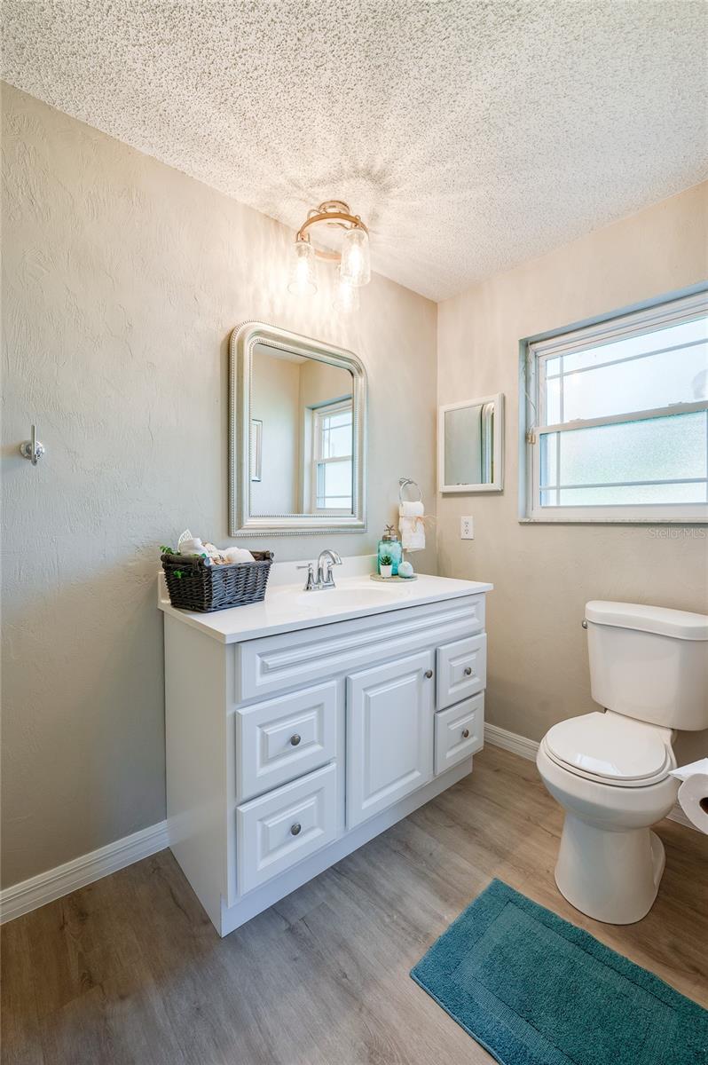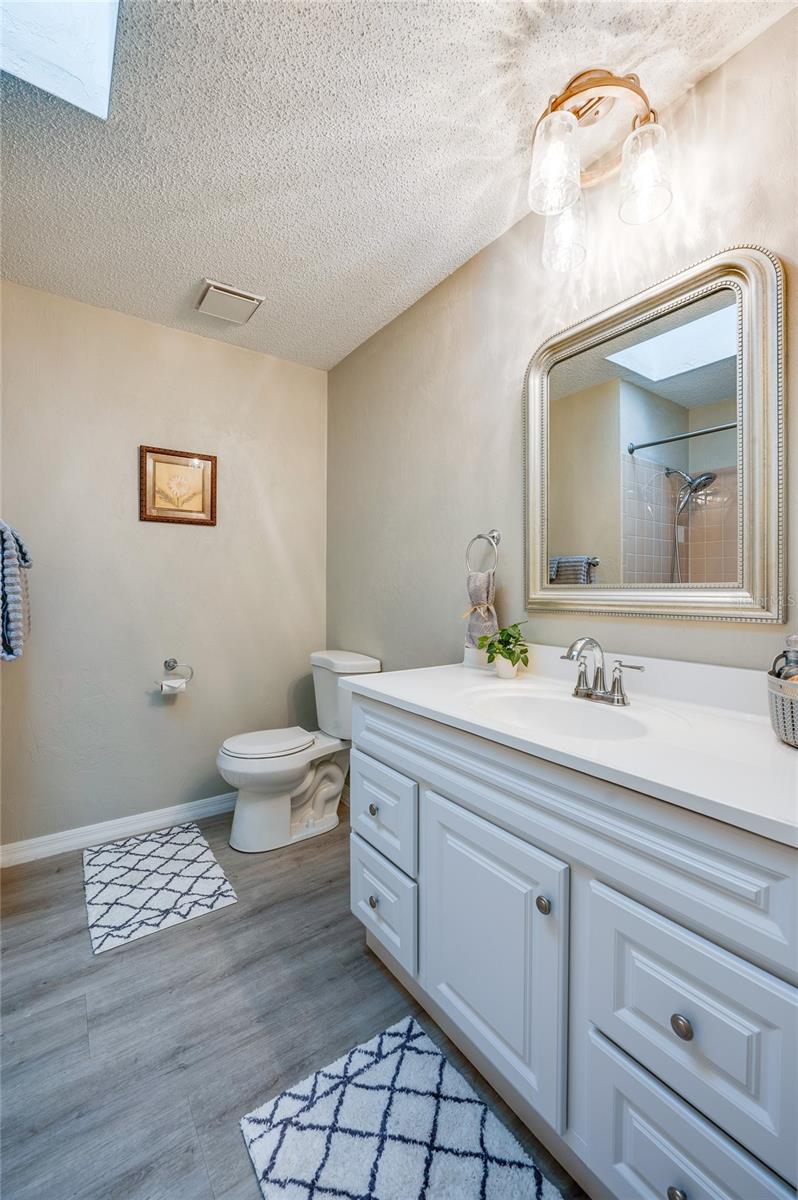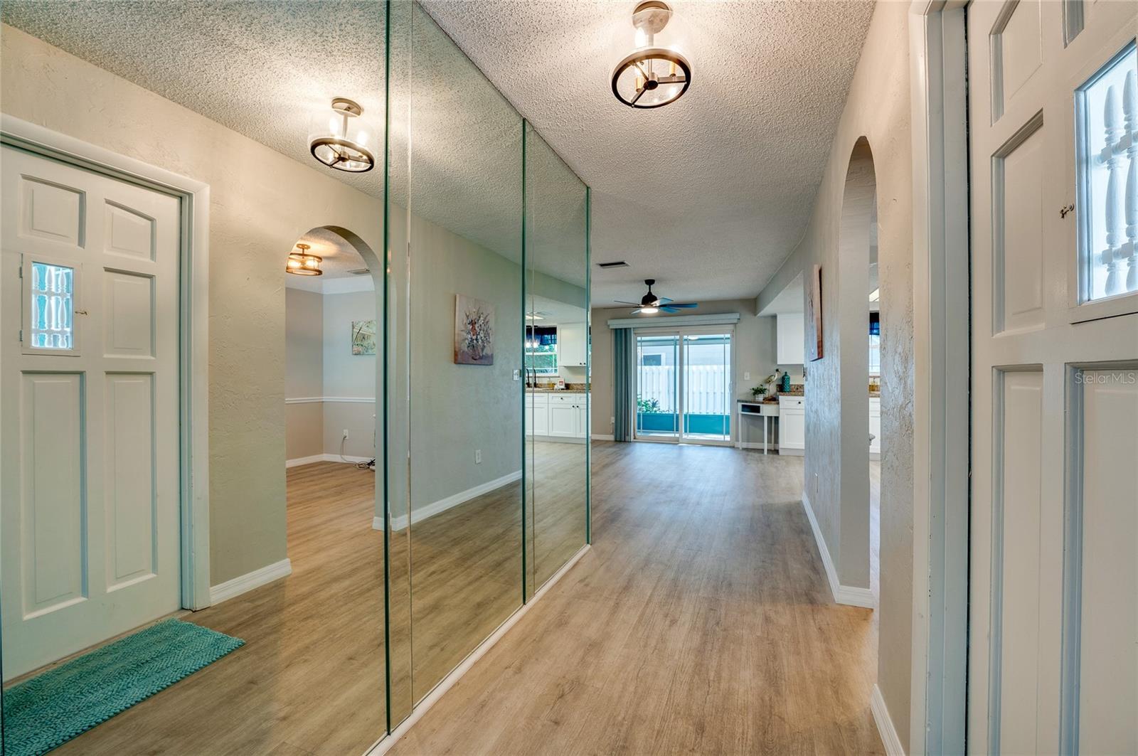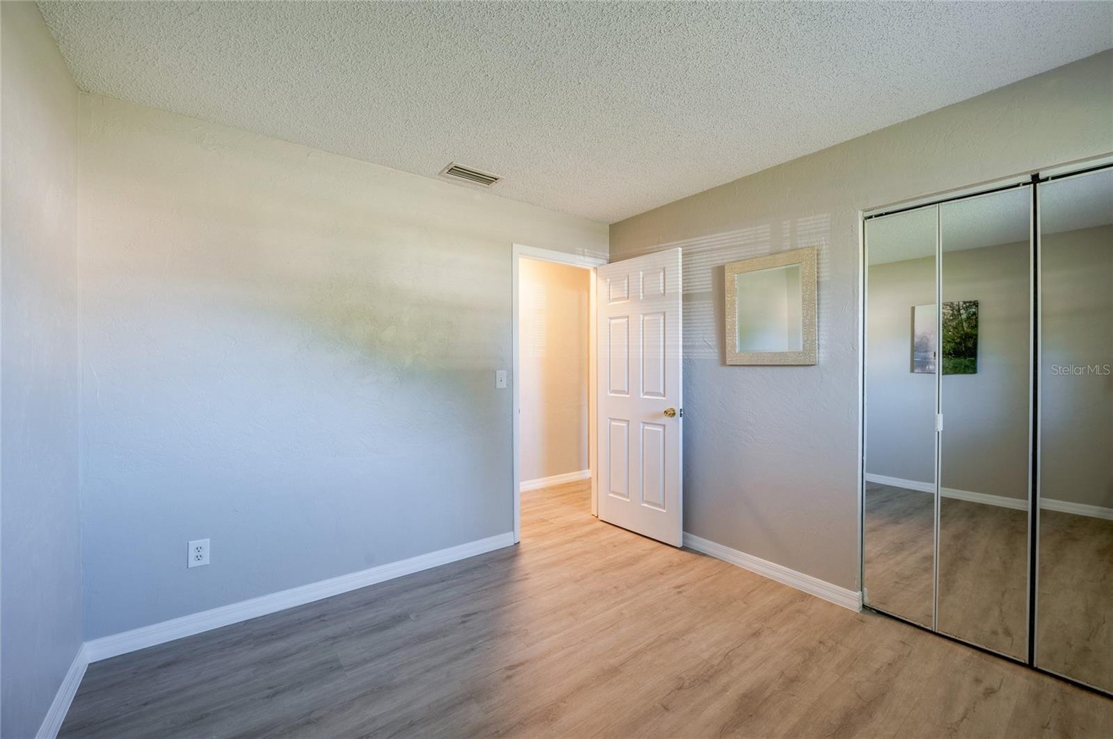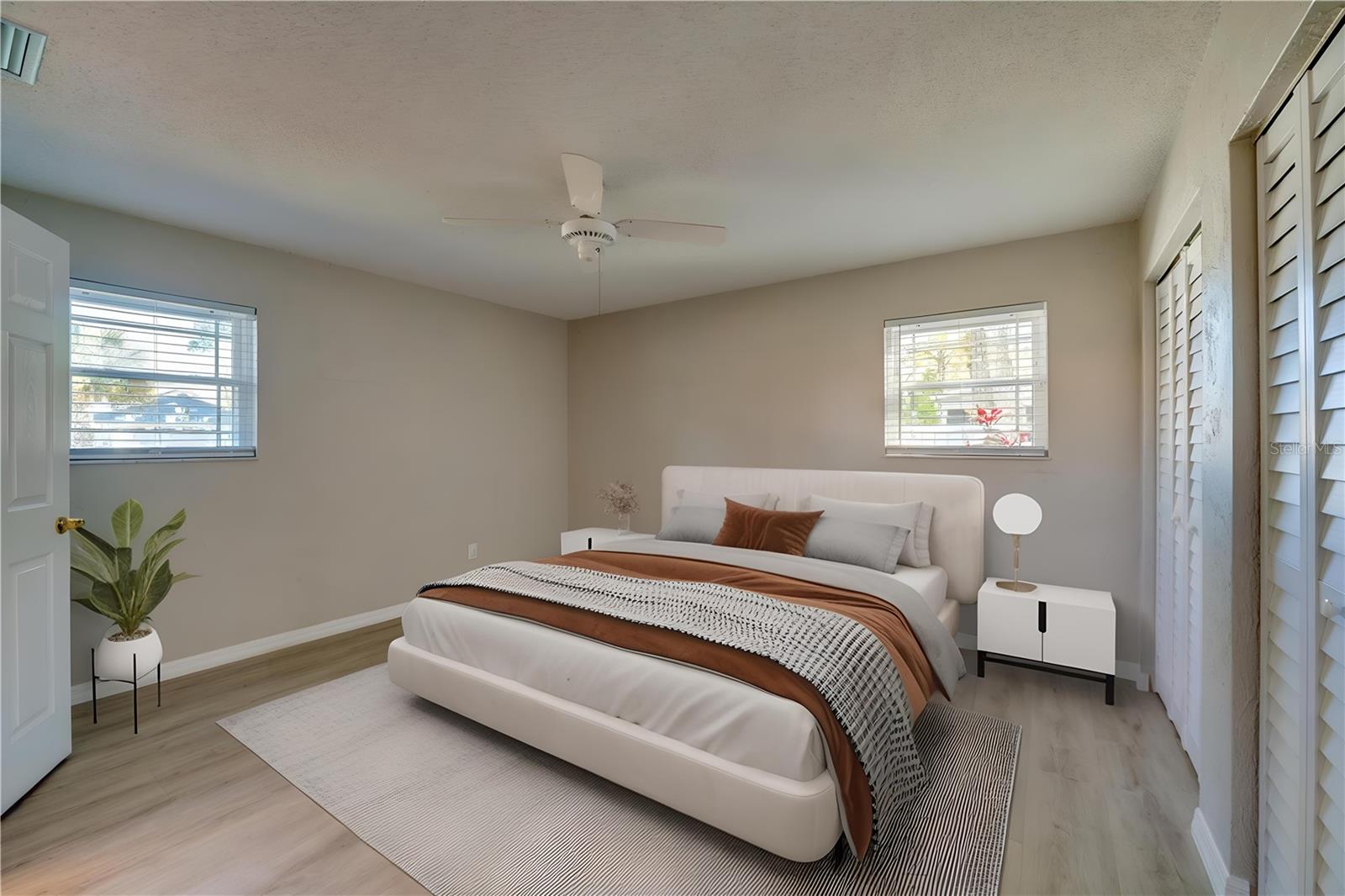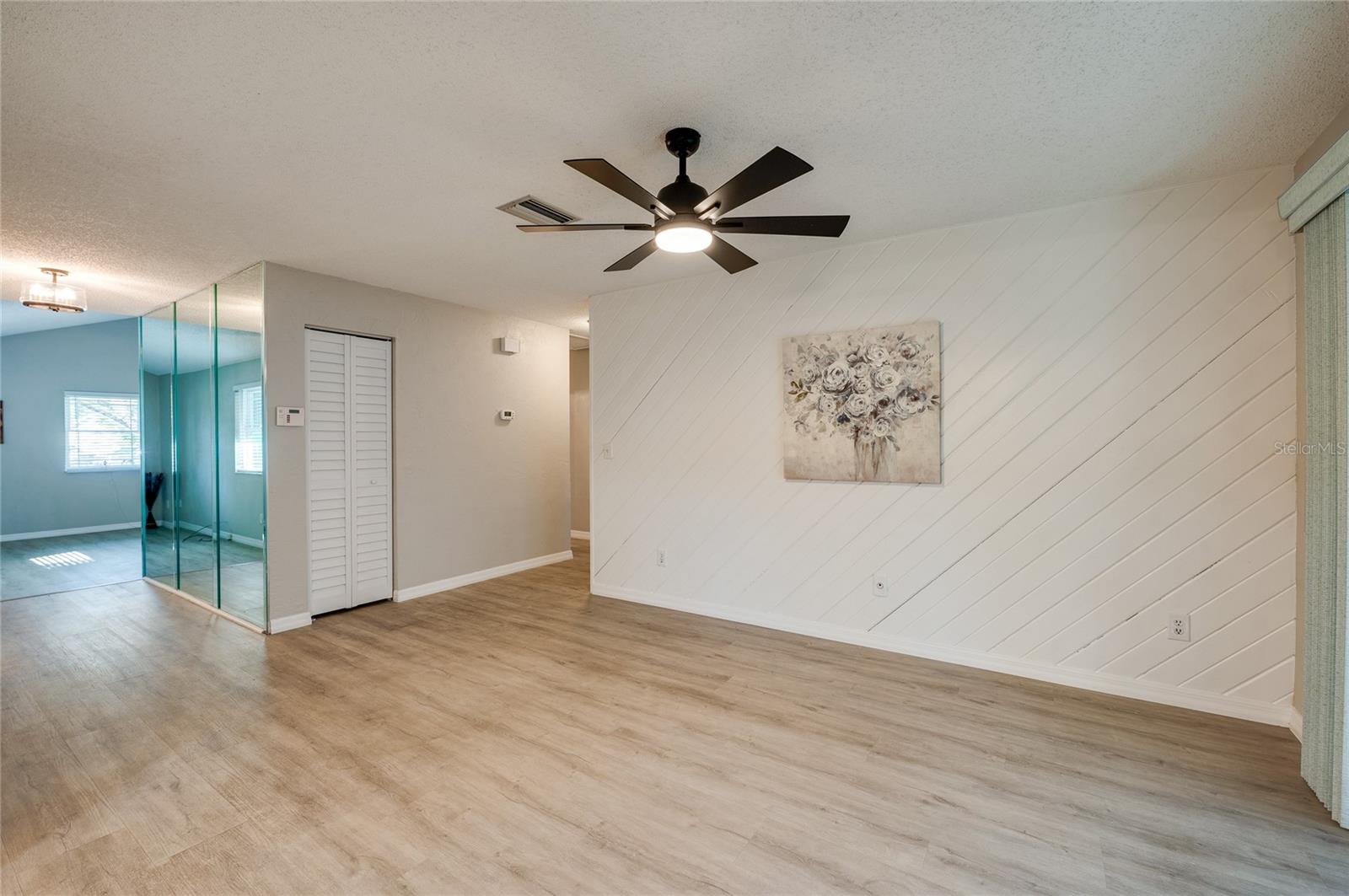 One or more photo(s) has been virtually staged. This beautifully updated 3-bedroom, 2-bathroom home in Deep Forest Village offers spacious living, thoughtful upgrades, a large corner lot, and a New Roof with acceptable offer. With an abundance of upgrades, including new windows and sliding glass doors, freshly painted interior and exterior. Step inside to a bright open concept floor plan with luxury vinyl flooring throughout. The living area features vaulted ceilings enhancing the sense of space, while the family room has a stylish shiplap feature wall, creating a welcoming interior. The stylish kitchen is both functional and inviting, featuring white shaker cabinetry, granite countertops, and a full appliance package. There is a breakfast nook for casual dining, and the separate dining room provides the ideal space for hosting family dinners and holiday gatherings. The primary suite is generously sized with a large closet and an en-suite bath with tiled, walk-in shower. Two additional bedrooms offer flexibility for family, guests or a home office. The second full bathroom includes a shower/tub combo, and a skylight that bathes the room in natural sunlight. Enjoy seamless indoor-outdoor living with a screened, tiled porch overlooking the fully fenced private backyard shaded by mature trees. The oversized corner lot is beautifully landscaped with defined garden beds, palm trees, and curved borders. With no HOA restrictions there is extra flexibility for RV or boat storage. Situated in a prime location, this home offers easy access to I-95 and is just minutes from The Pavilion, top-rated dining, shopping, movie theaters, medical facilities, and a variety of entertainment venues. Don't miss this exceptional opportunity to make this home your own. All information recorded in the MLS is intended to be accurate but cannot be guaranteed.