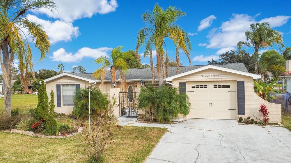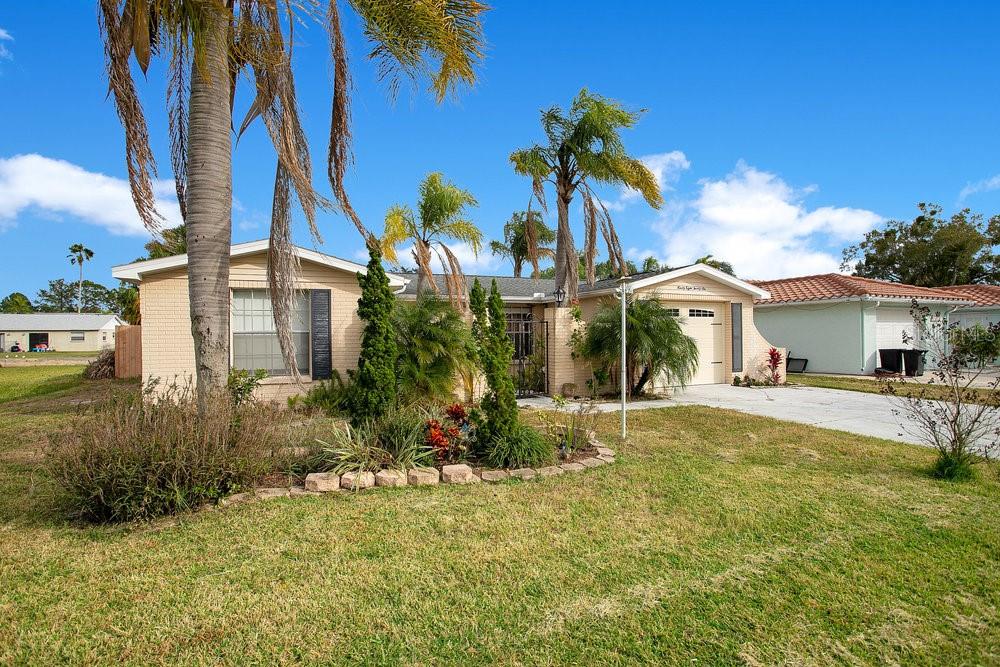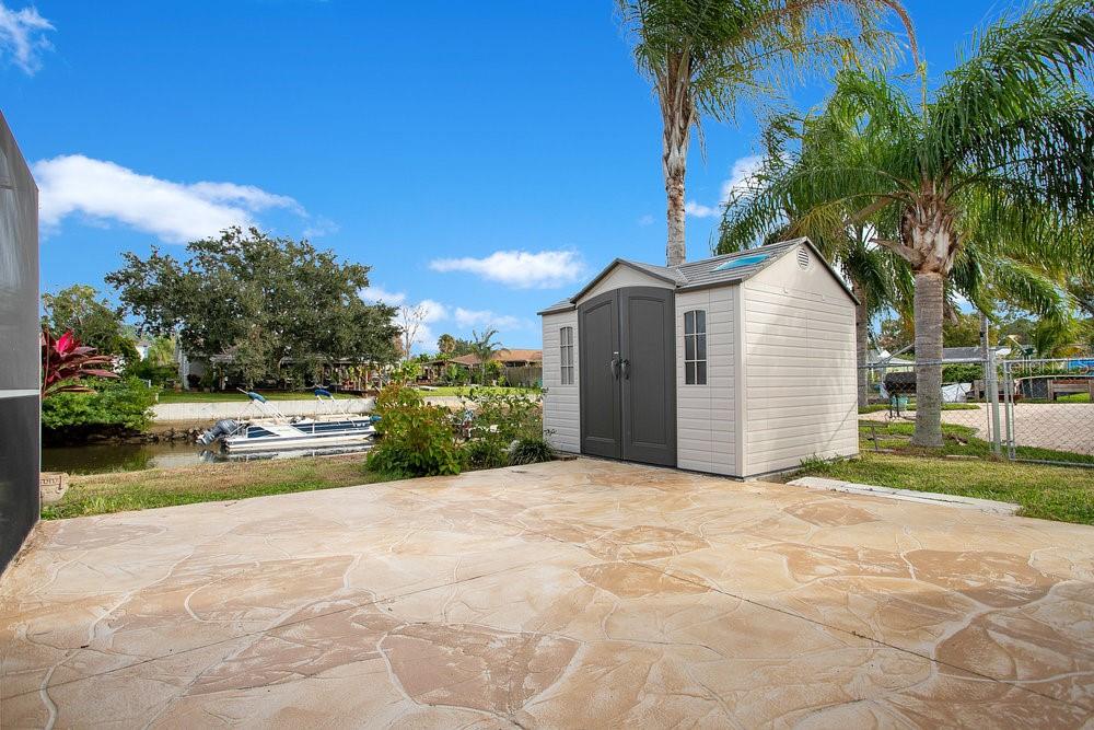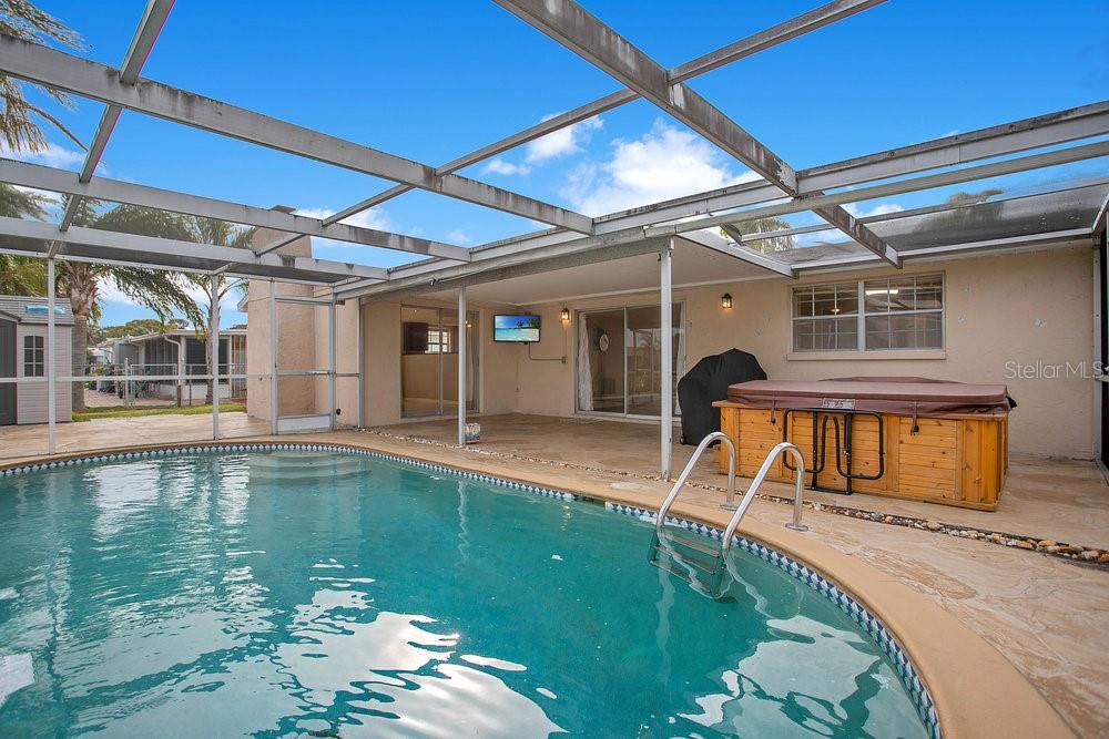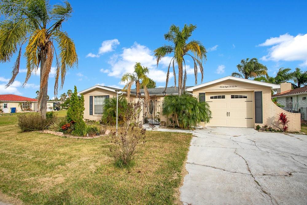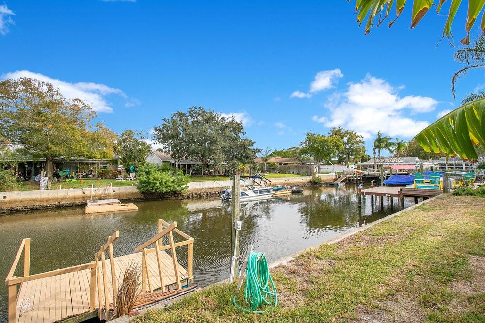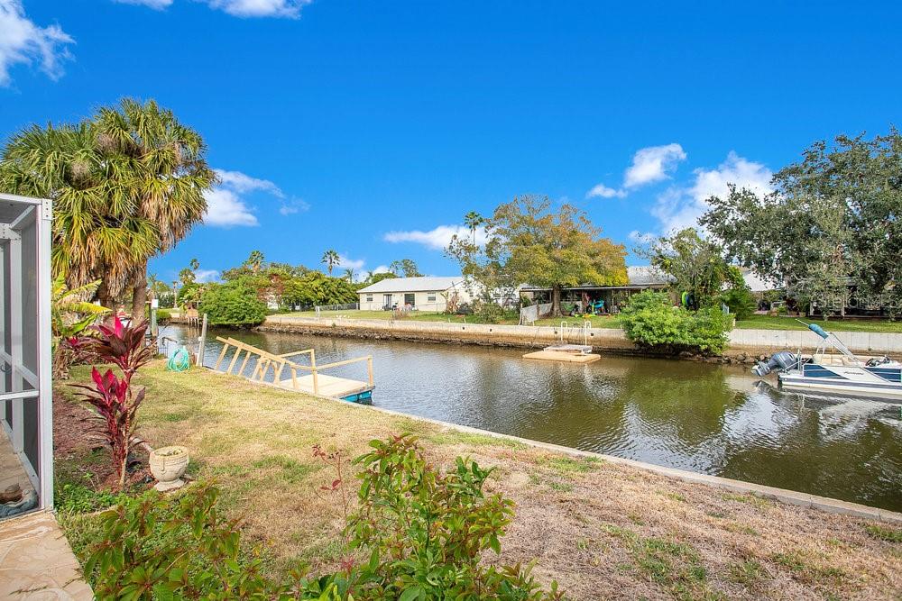 Welcome to waterfront living at its finest! This meticulously maintained 2-bedroom, 2-bathroom, 1-car garage pool home, nestled in the desirable Westport community, boasts direct Gulf access for the ultimate Florida lifestyle. As you enter through the charming courtyard, you'll be greeted by meticulously landscaped grounds, setting the tone for the beauty that awaits within. Built for enduring quality and protection, this residence features a new roof installed in 2017, an updated AC system in 2018. The seawall, a crucial component for waterfront properties, was redone in 2016, constructed with concrete extending all the way down to ensure lasting durability. Step inside to an open and inviting floor plan, where the front entry seamlessly transitions through the living and dining areas, providing picturesque views of the pool area and canal beyond. The kitchen has been tastefully updated with granite countertops, modern cabinets, and stainless steel appliances. A movable island, offering bar stool seating and extra storage, enhances the functionality of the space. The kitchen opens to the family room, featuring a wood-burning fireplace, creating a cozy ambiance. Sliding glass doors from both the dining room and family room lead out to the screened-in lanai and pool area, where you can bask in the Florida sunshine and enjoy the serene canal views. The stamped concrete patio surrounds the pool, extending to an outside patio – a perfect spot for grilling and entertaining. Boating enthusiasts will appreciate the convenience of the floating dock, providing easy access for jet skis or a pontoon. Outdoor shed, tv, hot tub. Rv plug installed, plants include: dragon fruit, papaya, banana, pineapple, key lime, meyer lemon, lychee, passion fruit. Recently updated electrical panel, all dimmable leads, all 20amp outlets, dimmable light switches. This home is not just a residence; it's a retreat designed for comfort and enjoyment. Don't miss the opportunity to make this waterfront paradise your own!