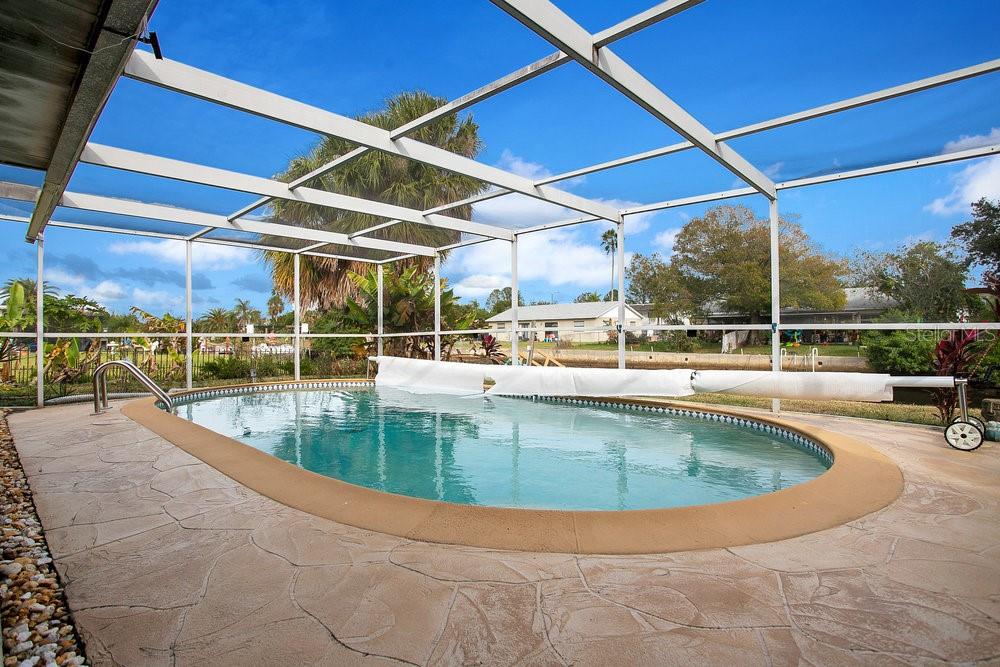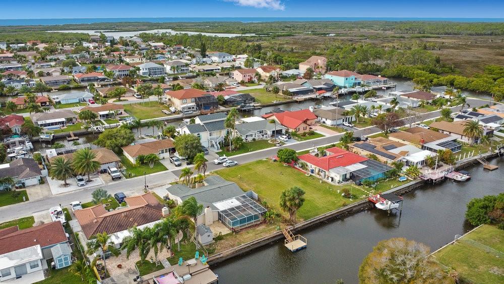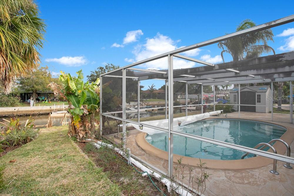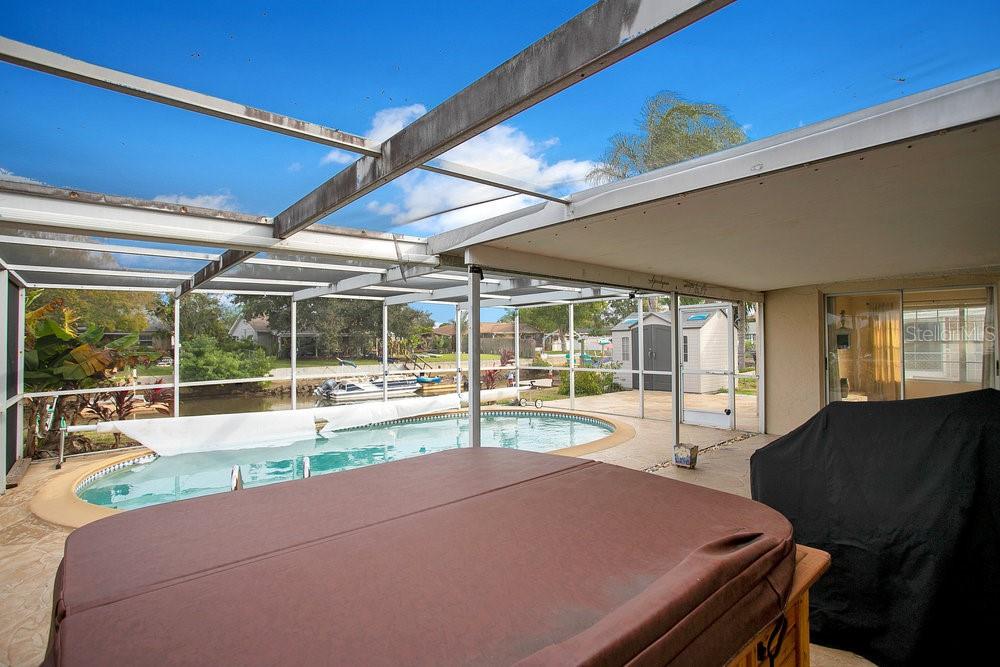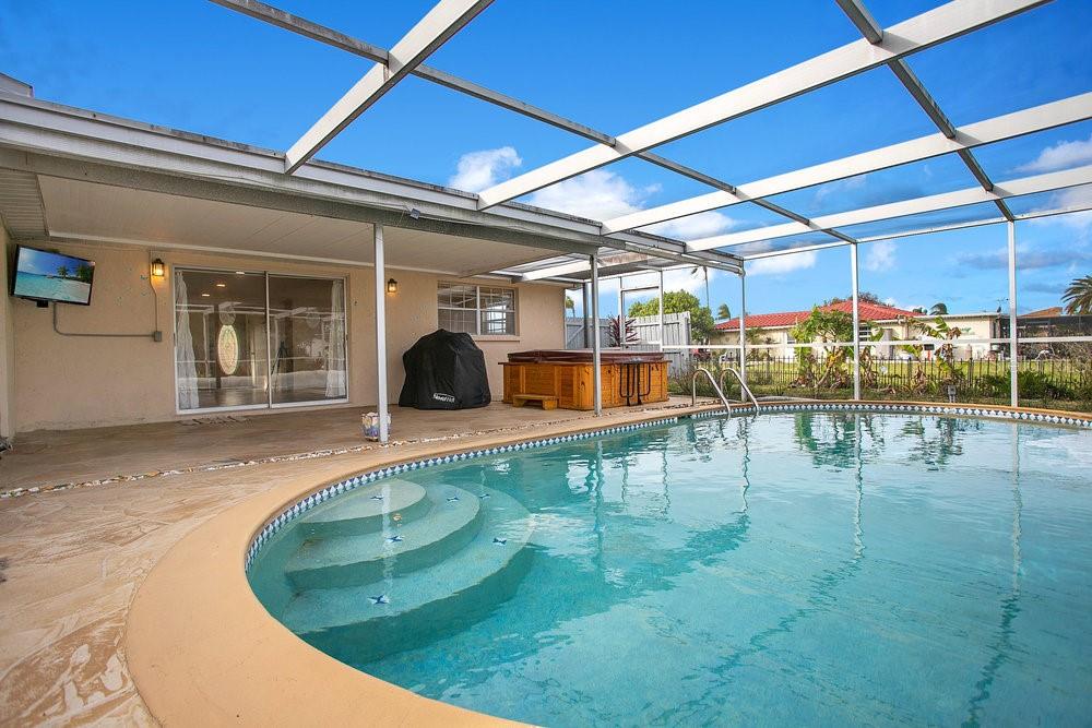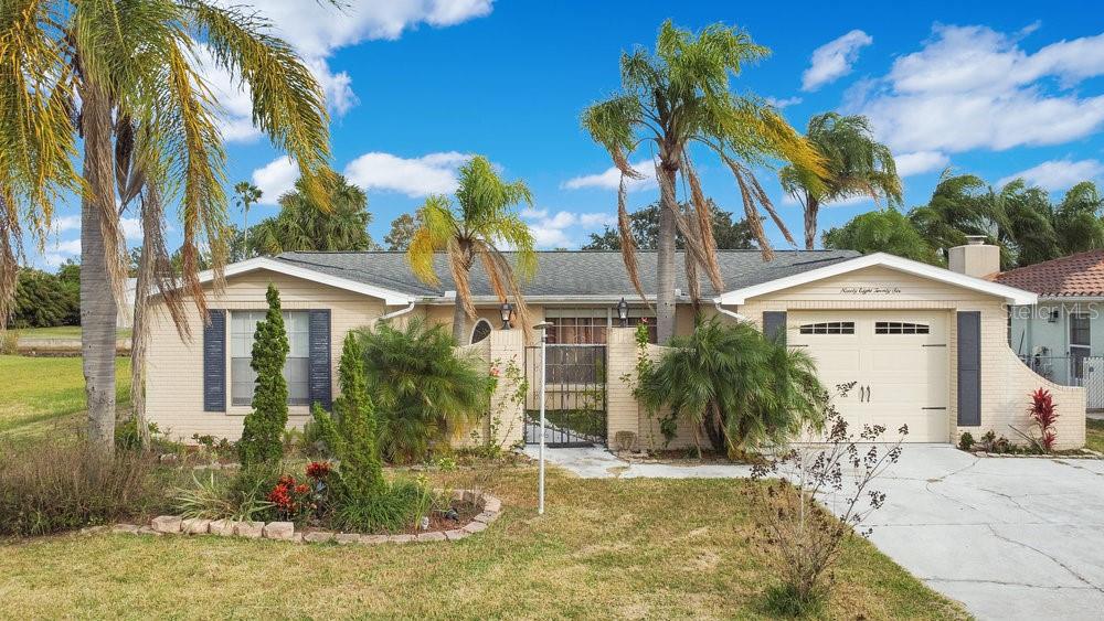 Welcome to waterfront living at its finest! This meticulously maintained 2-bedroom, 2-bathroom, 1-car garage pool home, nestled in the desirable Westport community, boasts direct Gulf access for the ultimate Florida lifestyle. As you enter through the charming courtyard, you'll be greeted by meticulously landscaped grounds, setting the tone for the beauty that awaits within. Built for enduring quality and protection, this residence features a new roof installed in 2017, an updated AC system in 2018. The seawall, a crucial component for waterfront properties, was redone in 2016, constructed with concrete extending all the way down to ensure lasting durability. Step inside to an open and inviting floor plan, where the front entry seamlessly transitions through the living and dining areas, providing picturesque views of the pool area and canal beyond. The kitchen has been tastefully updated with granite countertops, modern cabinets, and stainless steel appliances. A movable island, offering bar stool seating and extra storage, enhances the functionality of the space. The kitchen opens to the family room, featuring a wood-burning fireplace, creating a cozy ambiance. Sliding glass doors from both the dining room and family room lead out to the screened-in lanai and pool area, where you can bask in the Florida sunshine and enjoy the serene canal views. The stamped concrete patio surrounds the pool, extending to an outside patio – a perfect spot for grilling and entertaining. Boating enthusiasts will appreciate the convenience of the floating dock, providing easy access for jet skis or a pontoon. Outdoor shed, tv, hot tub. Rv plug installed, plants include: dragon fruit, papaya, banana, pineapple, key lime, meyer lemon, lychee, passion fruit. Recently updated electrical panel, all dimmable leads, all 20amp outlets, dimmable light switches. This home is not just a residence; it's a retreat designed for comfort and enjoyment. Don't miss the opportunity to make this waterfront paradise your own!