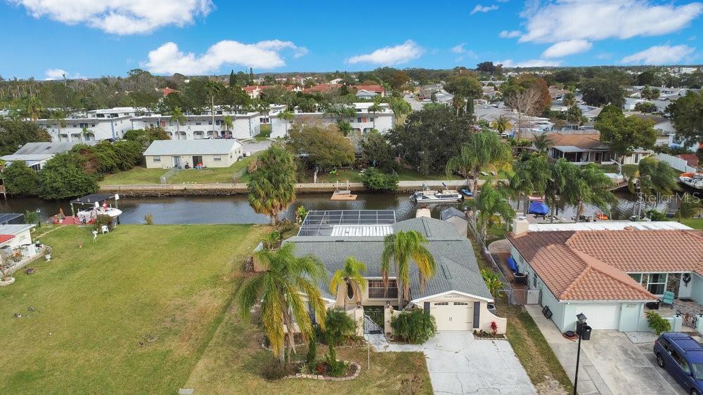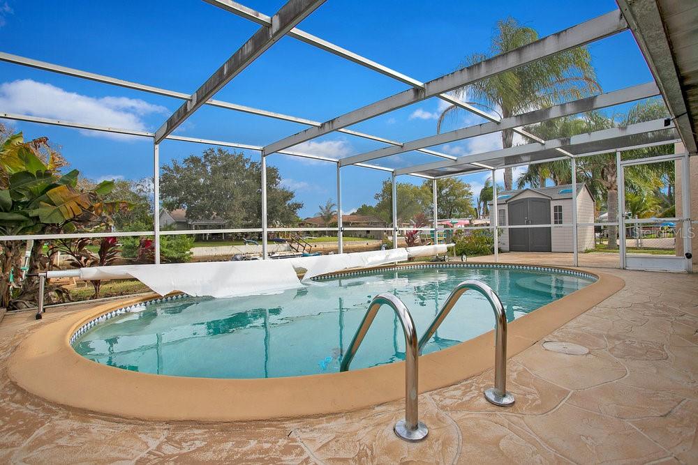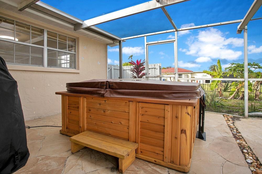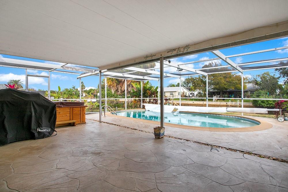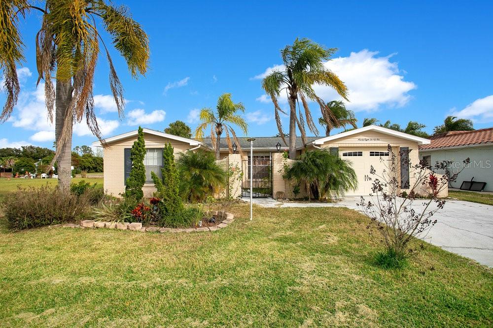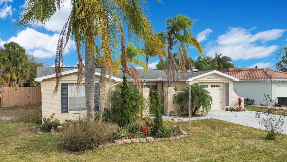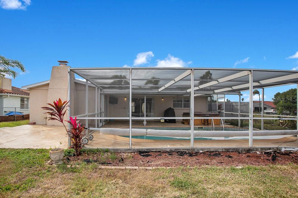Welcome to waterfront living at its finest! This meticulously maintained 2-bedroom, 2-bathroom, 1-car garage pool home, nestled in the desirable Westport community, boasts direct Gulf access for the ultimate Florida lifestyle. As you enter through the charming courtyard, you'll be greeted by meticulously landscaped grounds, setting the tone for the beauty that awaits within. Built for enduring quality and protection, this residence features a new roof installed in 2017, an updated AC system in 2018. The seawall, a crucial component for waterfront properties, was redone in 2016, constructed with concrete extending all the way down to ensure lasting durability. Step inside to an open and inviting floor plan, where the front entry seamlessly transitions through the living and dining areas, providing picturesque views of the pool area and canal beyond. The kitchen has been tastefully updated with granite countertops, modern cabinets, and stainless steel appliances. A movable island, offering bar stool seating and extra storage, enhances the functionality of the space. The kitchen opens to the family room, featuring a wood-burning fireplace, creating a cozy ambiance. Sliding glass doors from both the dining room and family room lead out to the screened-in lanai and pool area, where you can bask in the Florida sunshine and enjoy the serene canal views. The stamped concrete patio surrounds the pool, extending to an outside patio – a perfect spot for grilling and entertaining. Boating enthusiasts will appreciate the convenience of the floating dock, providing easy access for jet skis or a pontoon. Outdoor shed, tv, hot tub. Rv plug installed, plants include: dragon fruit, papaya, banana, pineapple, key lime, meyer lemon, lychee, passion fruit. Recently updated electrical panel, all dimmable leads, all 20amp outlets, dimmable light switches. This home is not just a residence; it's a retreat designed for comfort and enjoyment. Don't miss the opportunity to make this waterfront paradise your own!