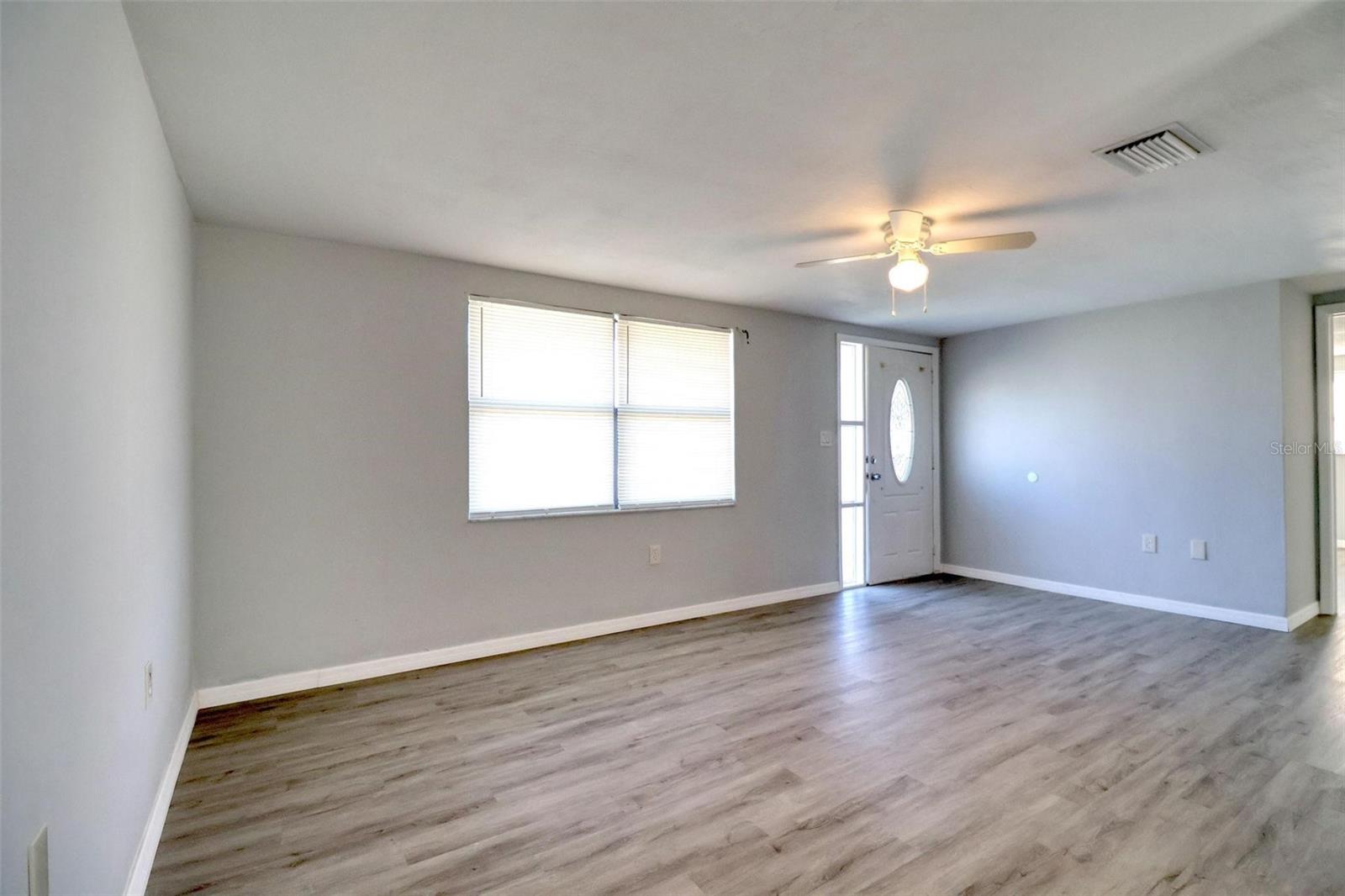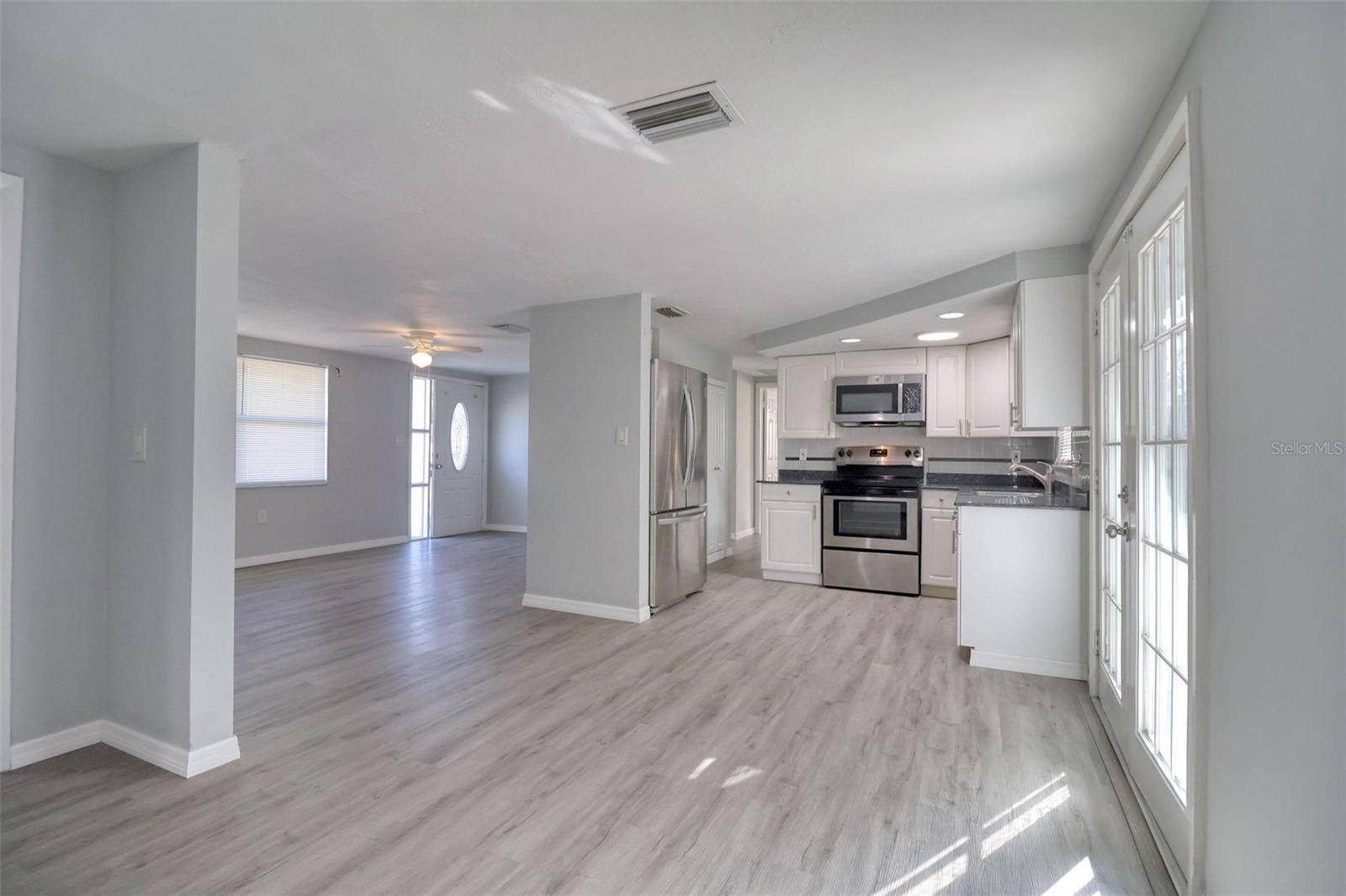 This beautifully 3/1 fully renovated home located in a NO FLOOD ZONE is packed with upgrades and ready for new owners. It boasts a new roof (2023), New AC Ductwork(2020), and luxurious wood laminate flooring throughout. The interior and exterior have been freshly painted, creating a modern, fresh look. The heart of the home is the updated kitchen, featuring granite countertops, updated stainless steel appliances, and sleek cabinetry. The bathroom has been updated with a contemporary style, with luxury porcelain tiles. Located close to shopping, grocery stores, beaches, and all the essentials, this home has convenience and style. With No CDD, No HOA, and No flood insurance required.