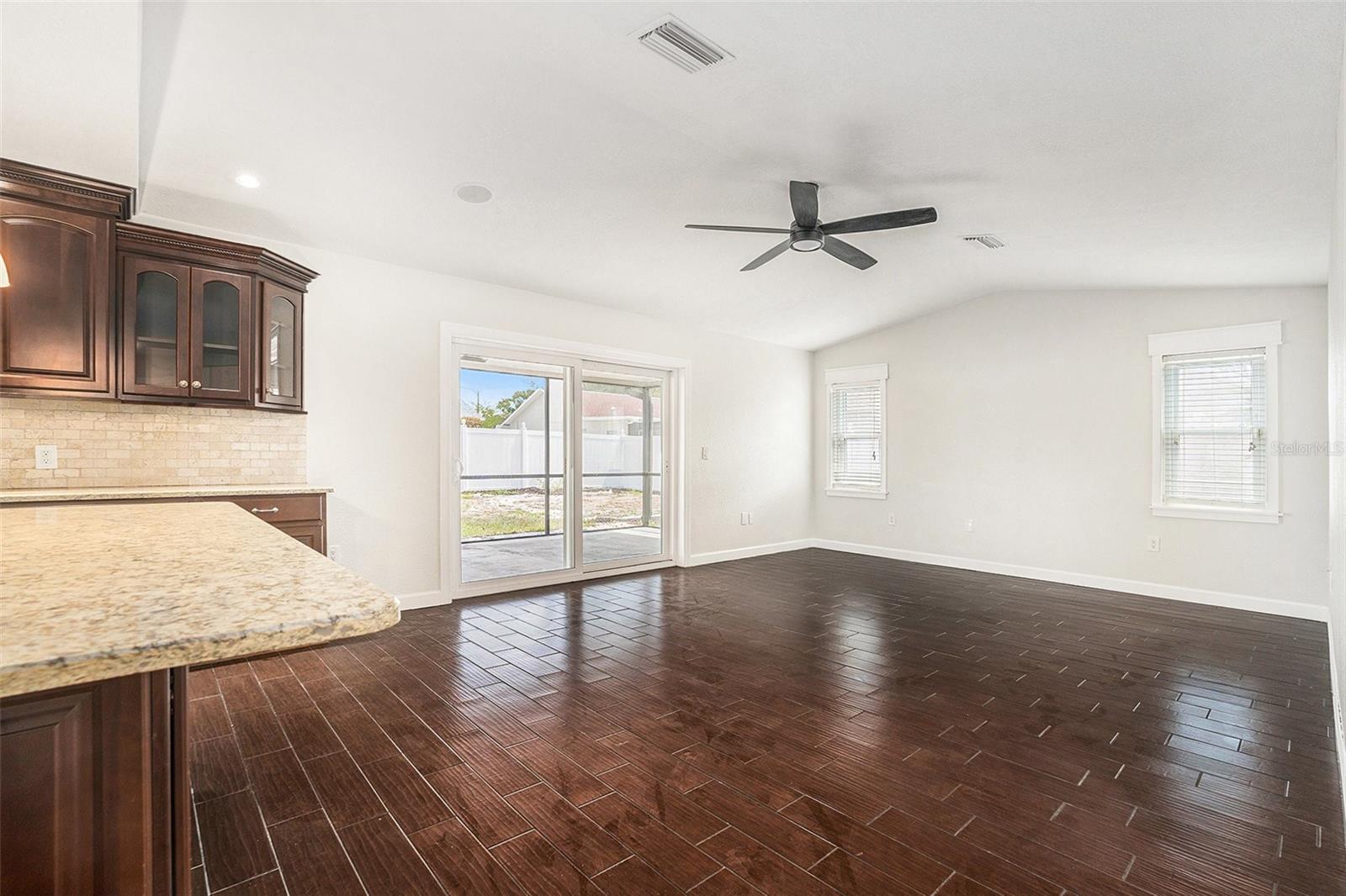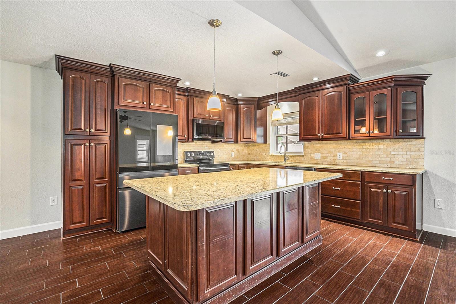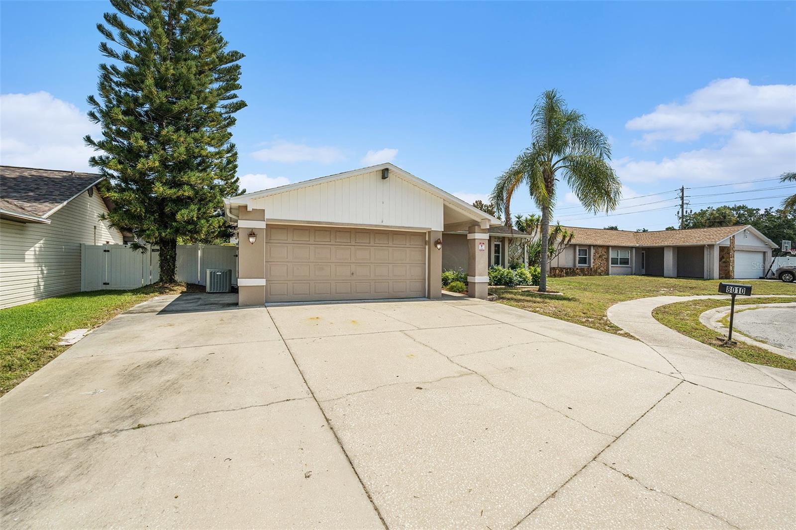 One or more photo(s) has been virtually staged. Welcome to your Florida oasis! This beautifully remodeled 2-bedroom, 2-bath, 2-car garage home is tucked away on a quiet cul-de-sac in the desirable Orchid Lake community. Inside, you’ll find easy-maintenance wood-look ceramic tile flooring, vaulted ceilings, and an open split-bedroom floor plan filled with natural light. The updated kitchen features granite counters, stainless steel appliances, and a center island with a breakfast bar—perfect for entertaining. The spacious Great Room opens through sliders to a screened lanai and fully fenced backyard, offering plenty of room for a pool. Both bathrooms have been tastefully remodeled, and the large garage with an extra cement pad provides bonus parking for a boat or guests. Conveniently located near shopping, dining, golf, and Sims Park, with easy access to Gulf Coast beaches, Downtown New Port Richey, and just 45 minutes to Tampa International Airport. With no HOA, NO CDD, and NO Flood Insurance Required, this move-in-ready home captures the best of Florida living!