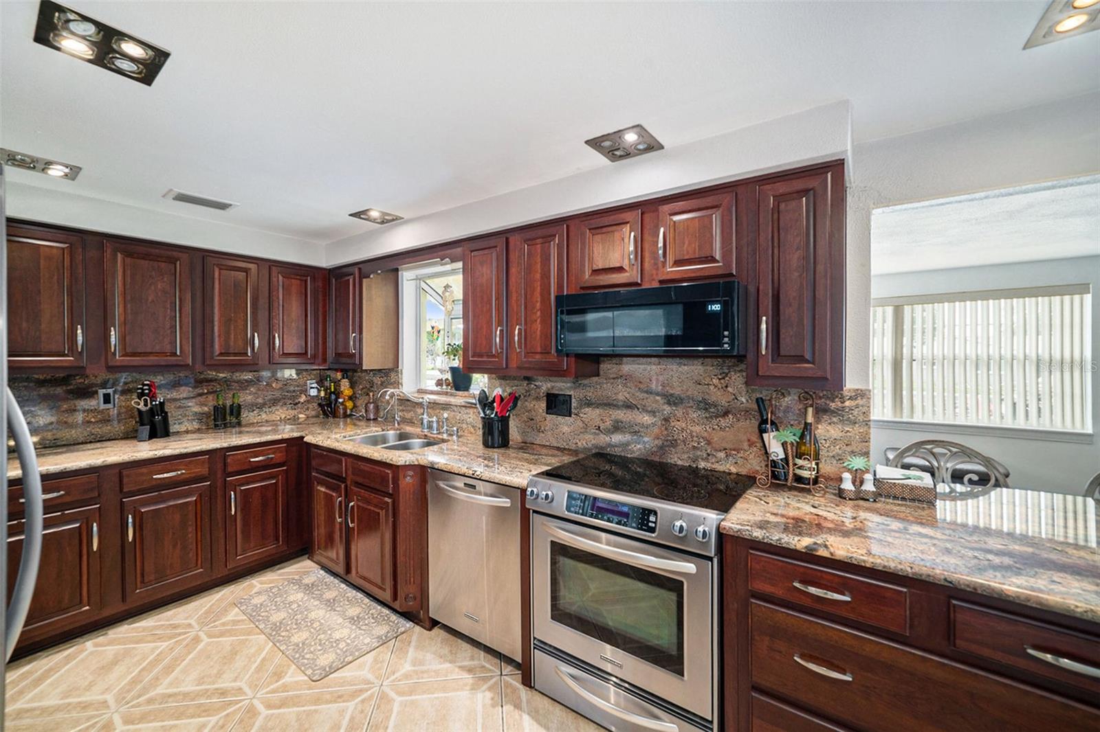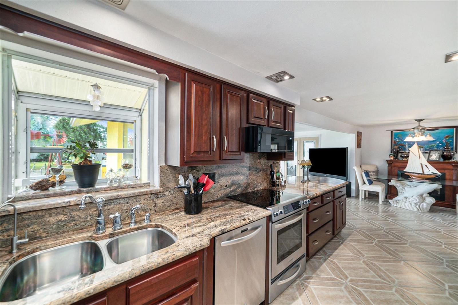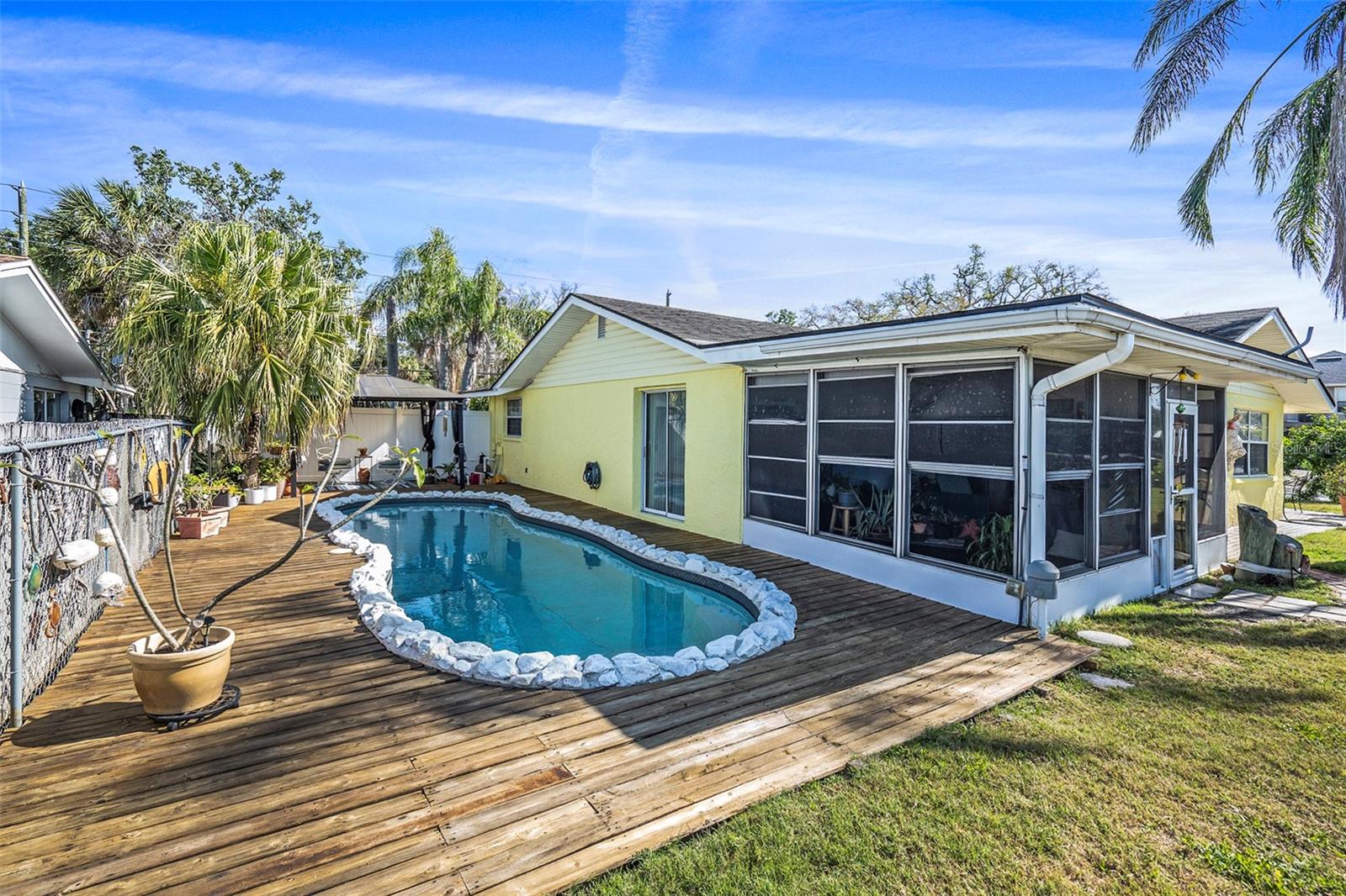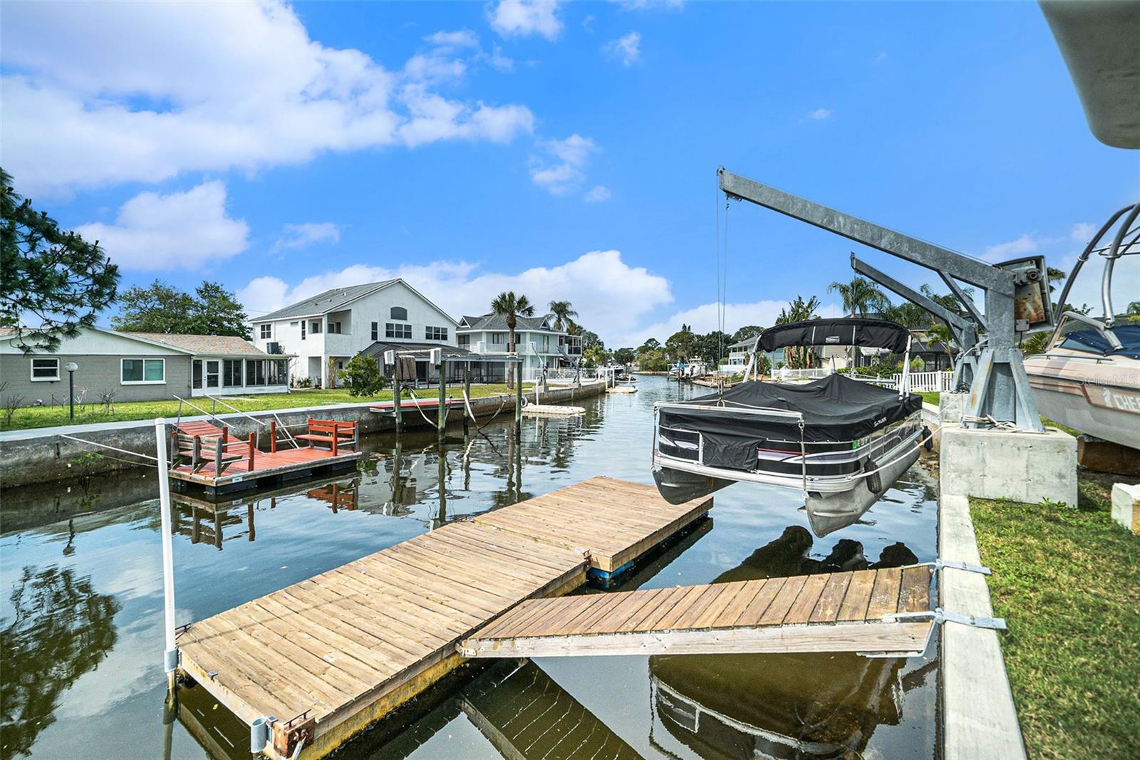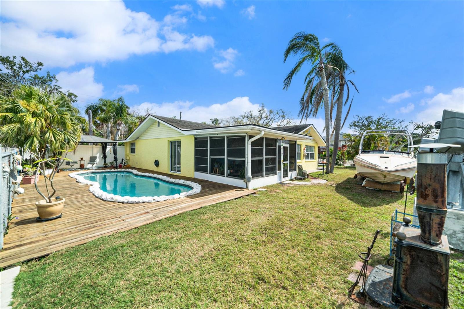 Location, location, location! Stunning views of canal and Millers Bayou from this 3 bedroom, 2 bath, one story pool home. 90' of canal frontage with floating docks, boat davits, new seawall in 2020, water softner and reverse osmosis, irrigation, gorgeous kitchen with real wood cabinets and granite counters with garden window, new luxury vinyl in main bedroom and hallway, living room/dining combo, family room to enclosed porch with heat/air and water views, no HOA, enjoy the waterfront entertainment life right down the road to world famous Whiskey Joe's, Catches Waterfront Grille, Gill Dawg Tiki Bar, and more!