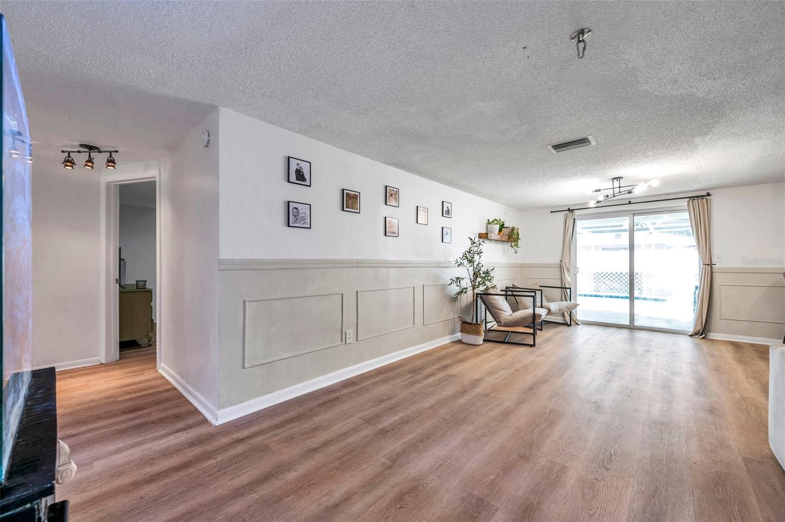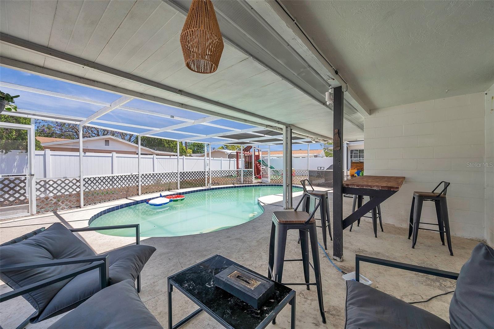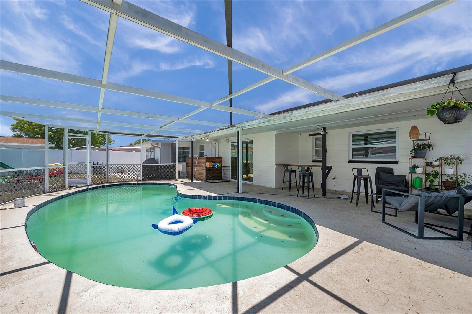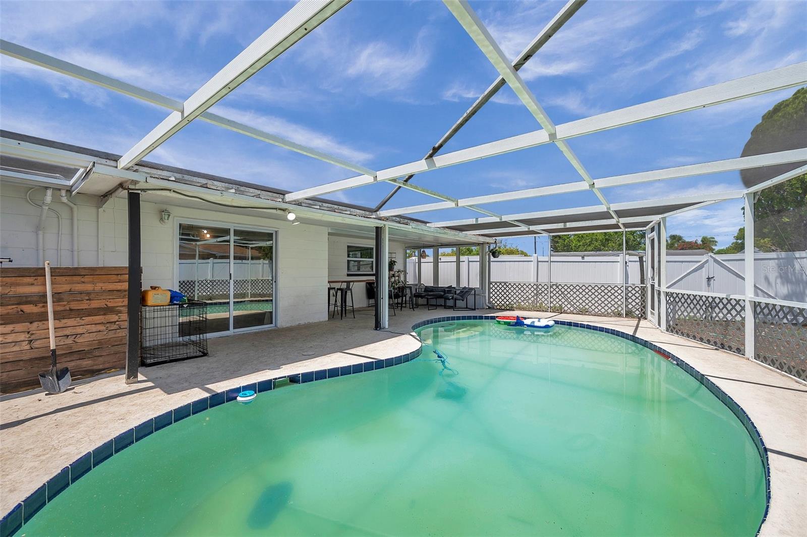 PRICED TO SELL!!! A two bedroom with garage and a POOL HOME situated on corner lot under 350,000. Are you kidding me? The large screened front porch offers generous seating area for morning coffee breaks. Recent updates include: HVAC, ALL NEW S/S APPLIANCES, NEWER GARAGE DOOR, VINYL PLANK FLOORING THROUGHOUT, WOODEN BLINDS THROUGHOUT, Open floor plan with kitchen overlooking family room and spacious dining area. Kitchen features granite countertops, solid surface range, breakfast bar, and two large pantries. Exit the dining area through double sliders to the sparkling POOL & screened lanai with countertop for easy entertaining. Adjacent to kitchen is oversized laundry room. Off the laundry room is an enclosed bonus room with access to the backyard which would be perfect for a home or workout room. Both bedrooms have walk-in closets, master bath has large shower, 2nd bath has tub / shower combination. Plenty of closets and storage areas throughout home. Oversized garage, fully fenced yard. Call for your private showing today as this one won't last.