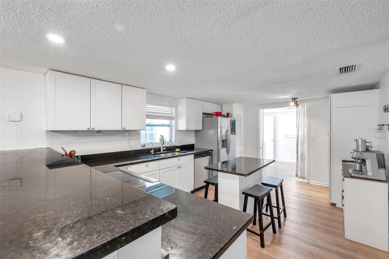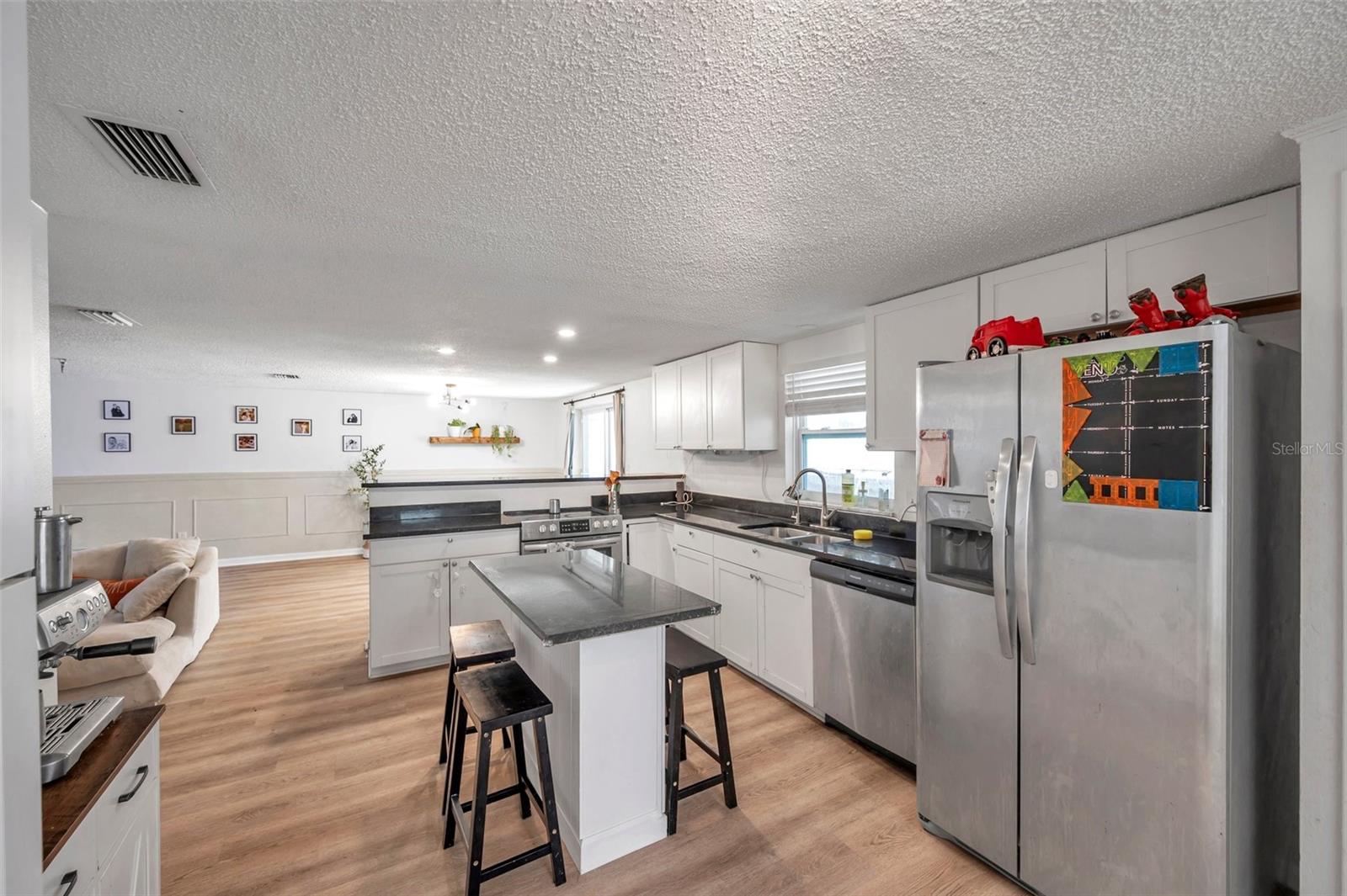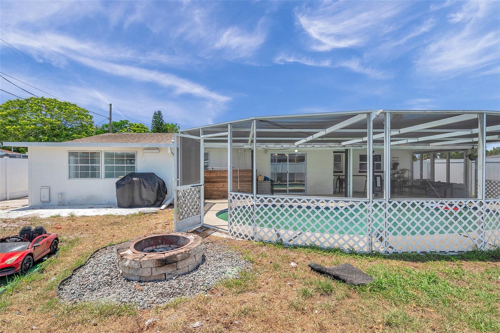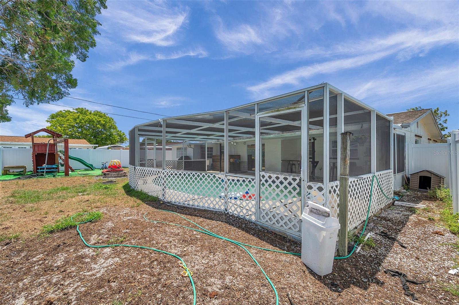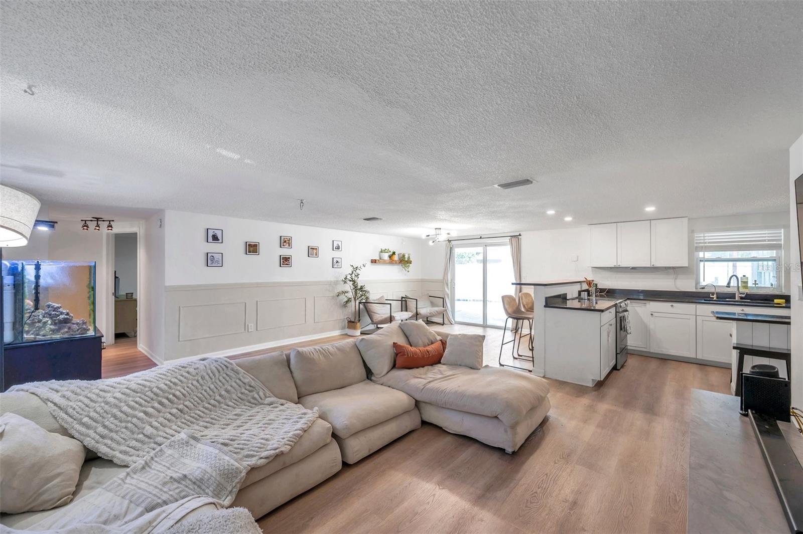 PRICED TO SELL!!! A two bedroom with garage and a POOL HOME situated on corner lot under 350,000. Are you kidding me? The large screened front porch offers generous seating area for morning coffee breaks. Recent updates include: HVAC, ALL NEW S/S APPLIANCES, NEWER GARAGE DOOR, VINYL PLANK FLOORING THROUGHOUT, WOODEN BLINDS THROUGHOUT, Open floor plan with kitchen overlooking family room and spacious dining area. Kitchen features granite countertops, solid surface range, breakfast bar, and two large pantries. Exit the dining area through double sliders to the sparkling POOL & screened lanai with countertop for easy entertaining. Adjacent to kitchen is oversized laundry room. Off the laundry room is an enclosed bonus room with access to the backyard which would be perfect for a home or workout room. Both bedrooms have walk-in closets, master bath has large shower, 2nd bath has tub / shower combination. Plenty of closets and storage areas throughout home. Oversized garage, fully fenced yard. Call for your private showing today as this one won't last.