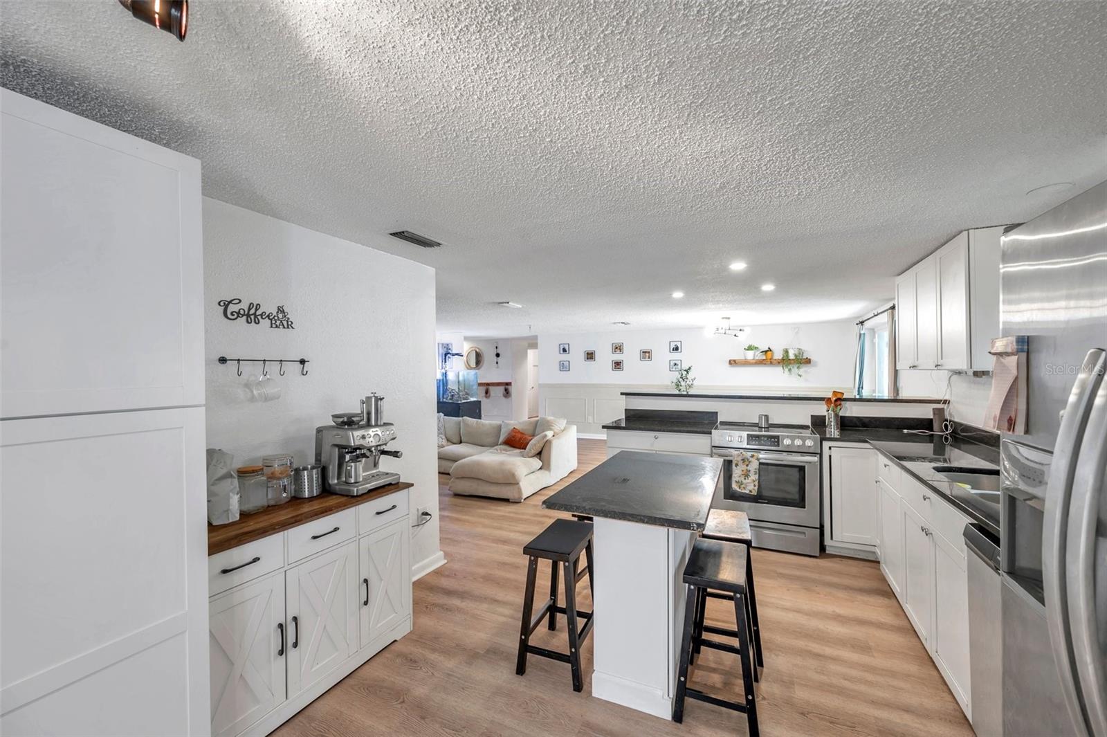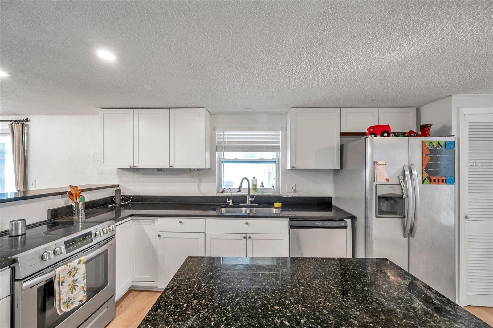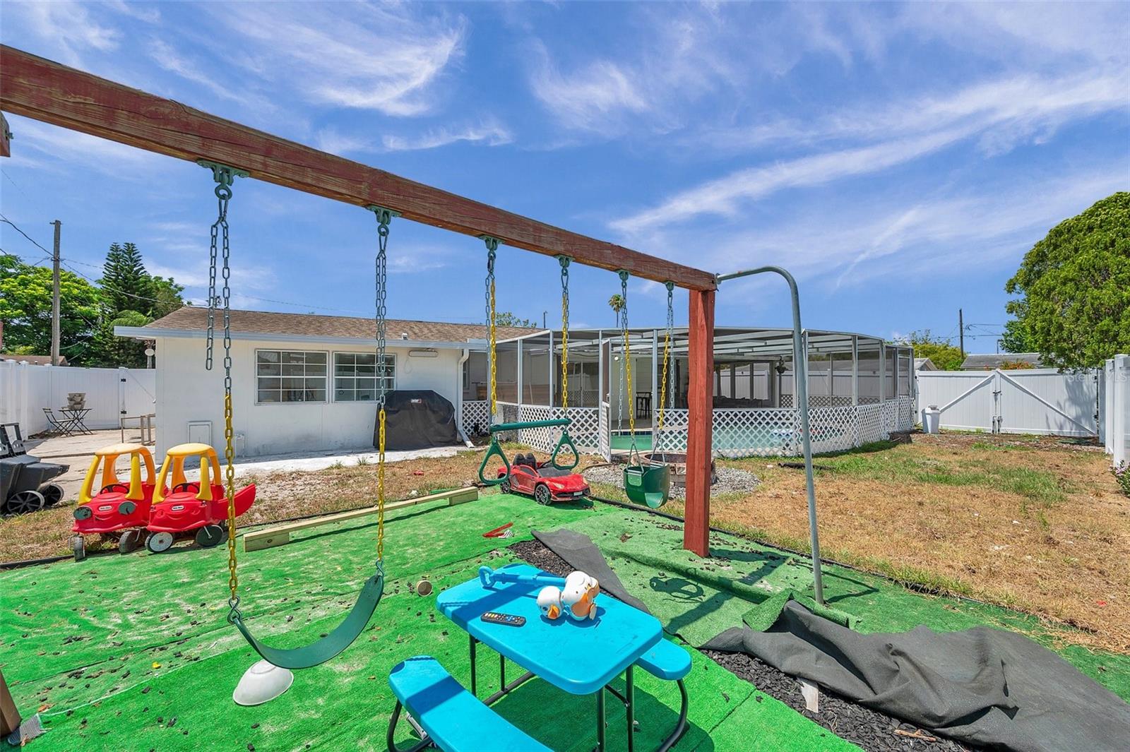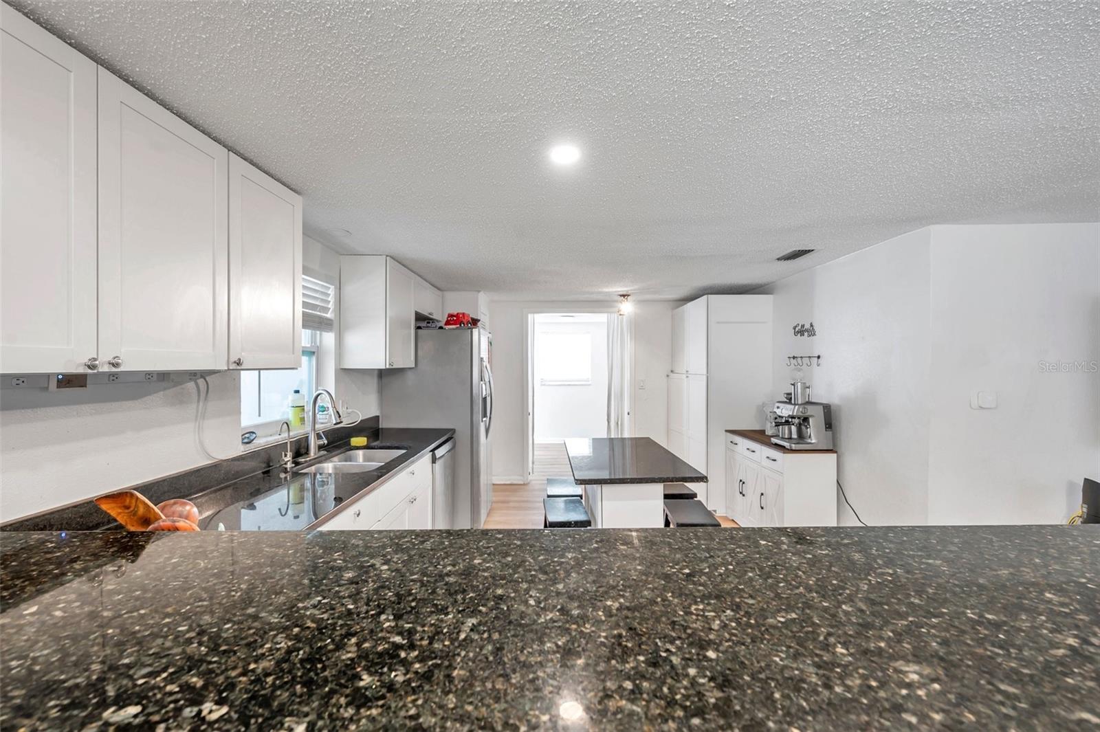 PRICED TO SELL!!! A two bedroom with garage and a POOL HOME situated on corner lot under 350,000. Are you kidding me? The large screened front porch offers generous seating area for morning coffee breaks. Recent updates include: HVAC, ALL NEW S/S APPLIANCES, NEWER GARAGE DOOR, VINYL PLANK FLOORING THROUGHOUT, WOODEN BLINDS THROUGHOUT, Open floor plan with kitchen overlooking family room and spacious dining area. Kitchen features granite countertops, solid surface range, breakfast bar, and two large pantries. Exit the dining area through double sliders to the sparkling POOL & screened lanai with countertop for easy entertaining. Adjacent to kitchen is oversized laundry room. Off the laundry room is an enclosed bonus room with access to the backyard which would be perfect for a home or workout room. Both bedrooms have walk-in closets, master bath has large shower, 2nd bath has tub / shower combination. Plenty of closets and storage areas throughout home. Oversized garage, fully fenced yard. Call for your private showing today as this one won't last.