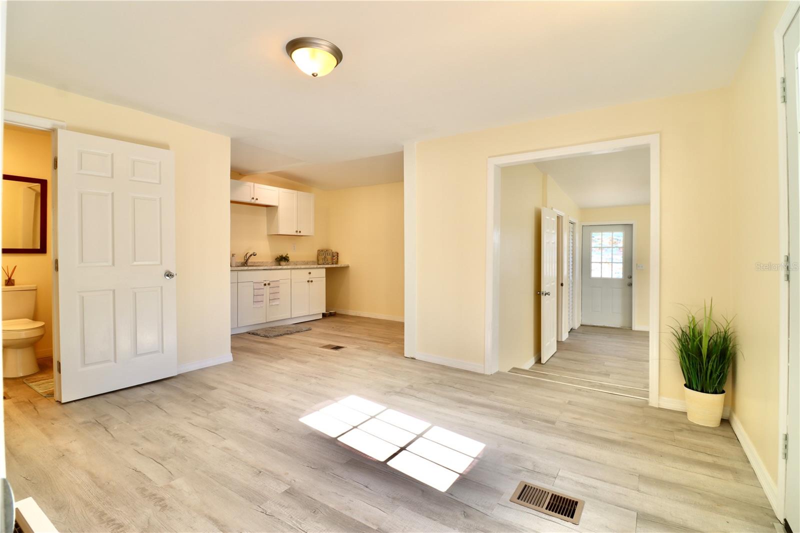 Two homes for the price of one in the up and coming city of Port Richey! This beautifully renovated home with a separate mother-in-law suite is perfect as-is, or can be used as an investment property/duplex. The first unit is a spacious 2 bedroom/ 1.5 bath with interior washer/ dryer hook ups. A spacious floorplan throughout features a large kitchen and a fully fenced in back yard. The "In Law Suite" features a separate bedroom/1 bath and is equipped with a full kitchen and a private entrance. Both homes come with their own storage sheds on an OVERSIZED LOT and have been recently renovated; Updates include a "State of the Art" 11k gallon septic system installed (2024), fresh paint inside and out, coupled with luxury vinyl plank floors throughout which lend this home a contemporary yet cozy feel. Upgraded door hardware along with brand-new plumbing fixtures further enhance this property's appeal while upgraded LED light fixtures and ceiling fans ensure energy efficiency. Step outside to discover a spacious yard for both units. Located within easy commuting distance to Pinellas County and only 15 minutes from the bustling downtown of New Port Richey, Wesley Chapel and 45 minutes to Tampa Airport.