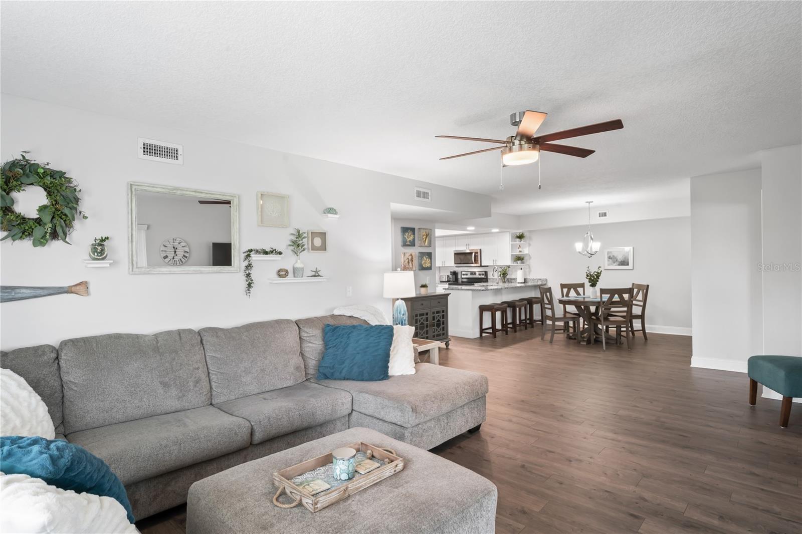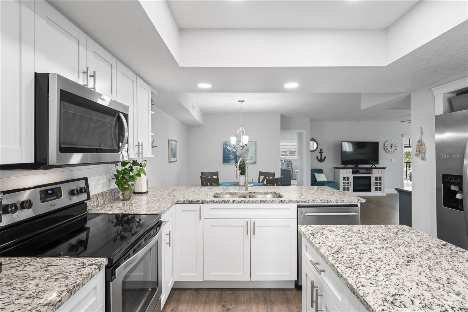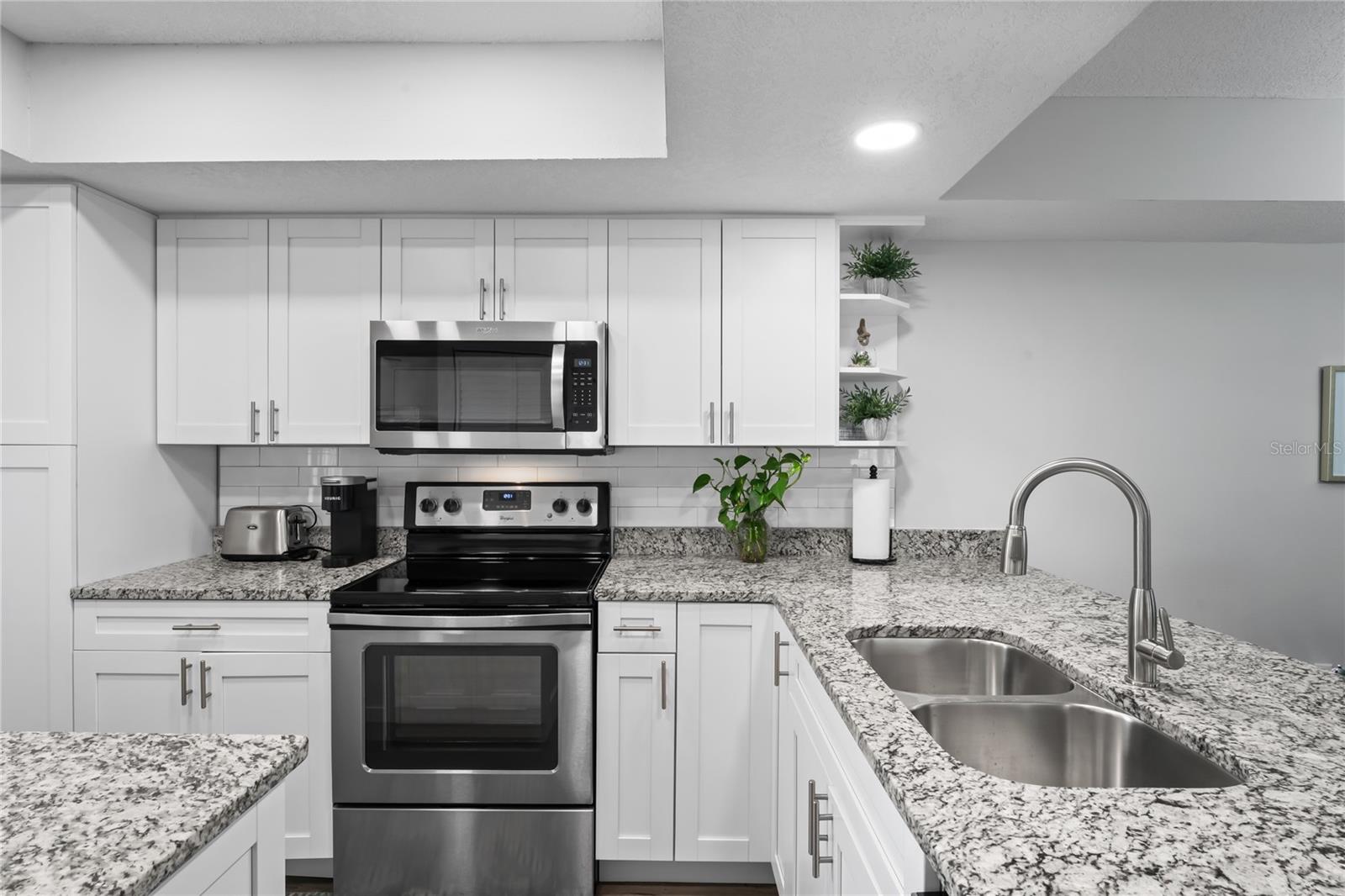 Milestone Inspections have already been completed & are ready for the new owner! At last an END UNIT has come available in building 9, which is a FULL GULF OF MEXICO VIEW from all rear windows with NO bridges or Obstructions! With 1399 heated square feet plus a large screened in porch! This highly desirable luxury condo has everything! Located in the beautiful 24 hour guard, Gated community-Sand Pebble Pointe. Sand Pebble has 2 pools, a huge clubhouse with fitness center and numerous seating areas all around the property along with walking trails with views of the Gulf. You also have a private boat ramp & depending on availability (RV/camper/boat/kayak storage, separate fees). These luxurious end units don't come to the market often, schedule a showing while you can! This unit also is one of the only units in the building to have An almost fully enclosed parking spot UNDER the building, right next to your own storage space on the ground level! This unit comes with one of the most if not the most desirable parking spaces under the building in the right corner almost fully blocked from the elements. Only 1 floor up from your parking spot there is a very accessible staircase to your corner unit(elevator as well nearby). Upon walking inside of this luxurious end unit, the beautiful laminate floors lead you to the very open totally re done kitchen! Beautiful white shaker cabinetry, backsplash, granite counters and stainless steel appliances with LED recessed lighting and fresh paint! Even the washer and dryer convey(located in the laundry closet inside the kitchen)! The kitchen overlooks the spacious dining room and even has bar top seating for even more space! There is also plenty of closet space in all of the rooms! Both bathrooms have been remodeled as well with beautiful granite counters, white shaker cabinets, plantation shutters and more! The spacious 2nd bedroom is split up from the master, giving plenty of space between rooms! Entering in the master bedroom, you're greeted by the stunning Gulf of Mexico view with no obstructions! This large room also has impact rated sliding glass doors that lead to the screened in porch! The remodeled bathroom has dual sinks with granite counters and plenty of storage space. The walk in master bedroom closet is very spacious too! With a beautiful view even from the bathroom of the open waterways from your impact rated windows! This unit has it all! Full remodel was done in 2019/2020 and even has a new AC in 2019 and ALL hurricane windows and sliding glass doors! Plantation shutters in 2020 and so much more! You won't want to miss this stunning premium end unit in Sand Pebble Phase 1! The community is highly desirable! Schedule your showing today!