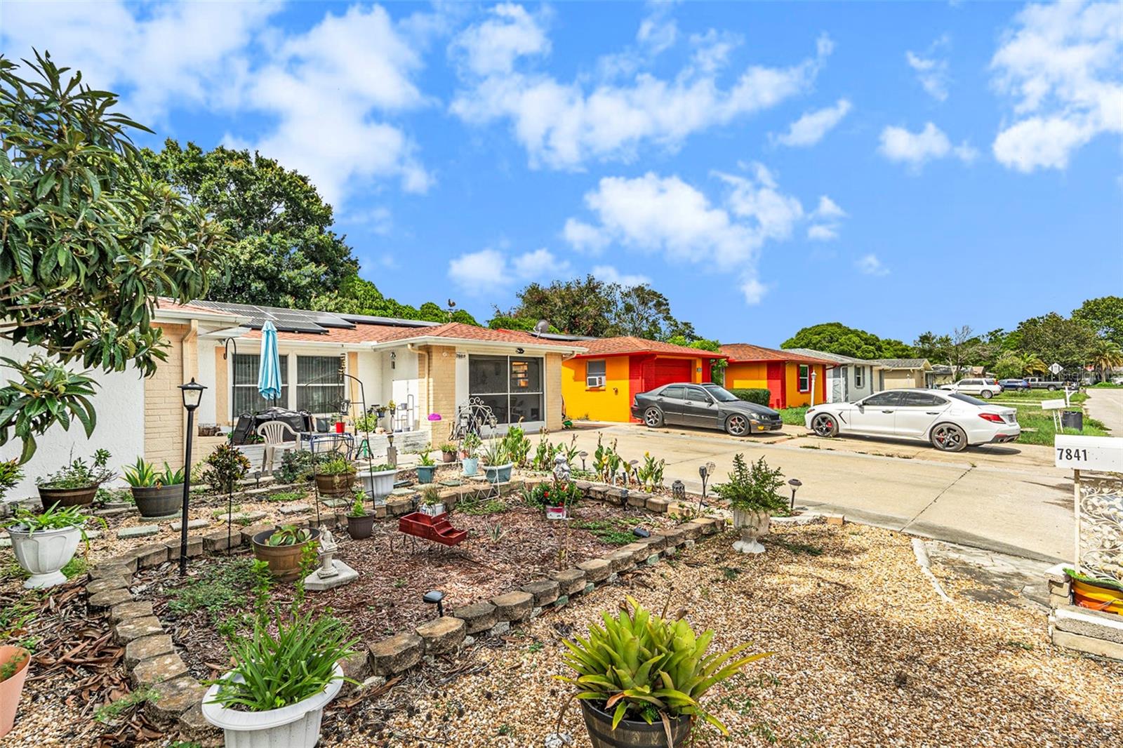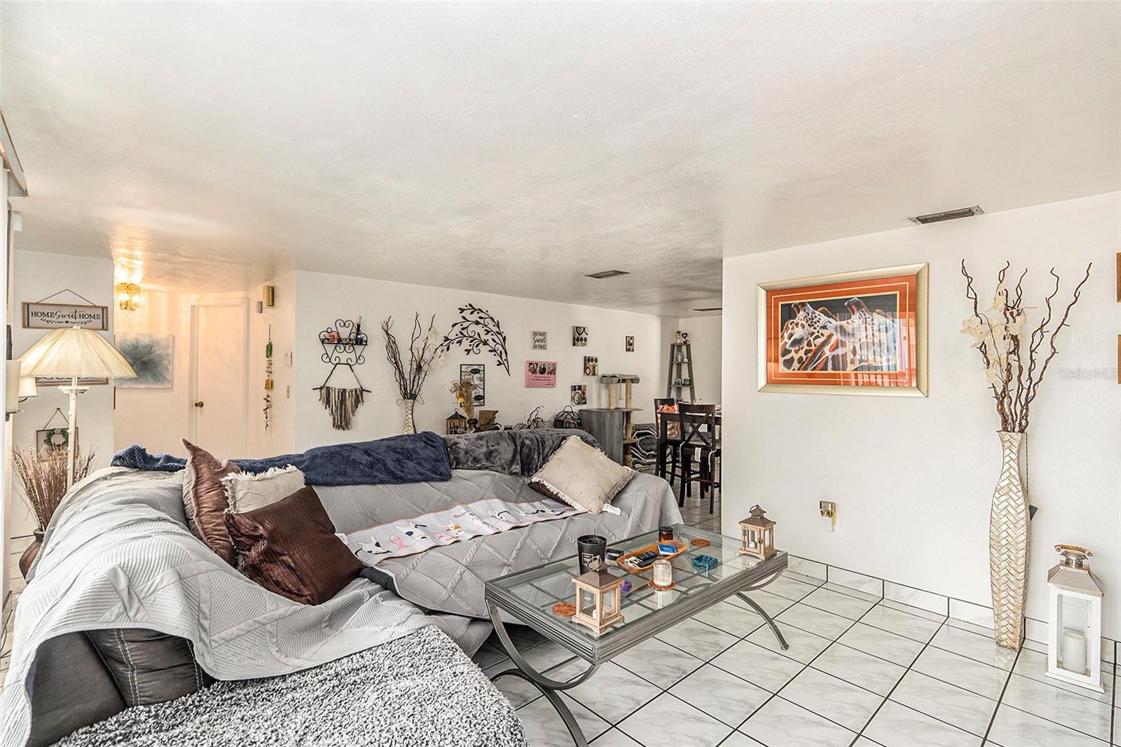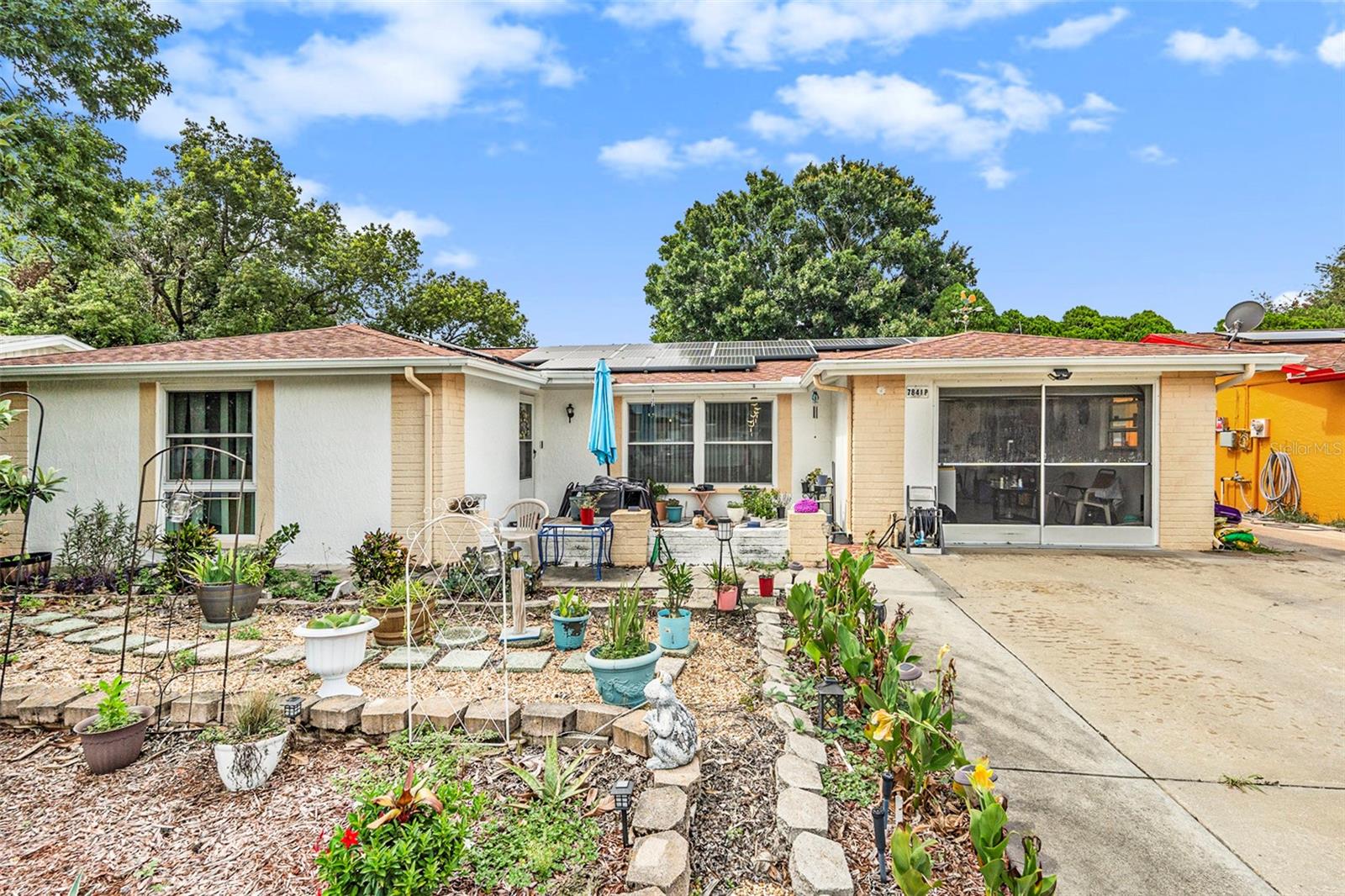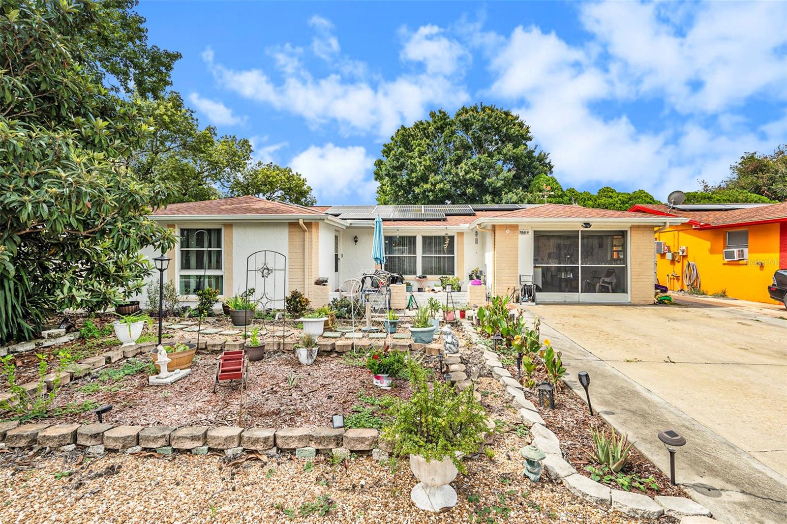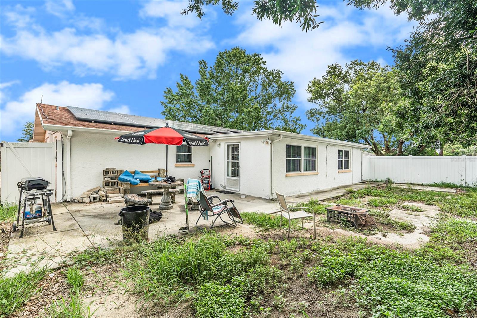Welcome to this sprawling 1,749sf solid block ranch with attached garage. Features of this open floor plan home consists of 2 bedrooms, both with walk-in closets, a large bonus room easily convertible to a 3rd bedroom (has heat & a/c), an additional den/flex room leading to fully vinyl fenced rear yard and patio, neutral color ceramic tile throughout entire house, living room/dining room combo plus eating area in spacious kitchen, a separate utility room with laundry tub, tiled garage floor with extra storage and screened sliding door, newer vinyl windows, updated main bath shower enclosure, leased solar panels to be assumed by buyer (approx $179 mo) for low electric bills, 2 car wide driveway and courtyard front porch. House is priced right for this square footage so don’t delay!