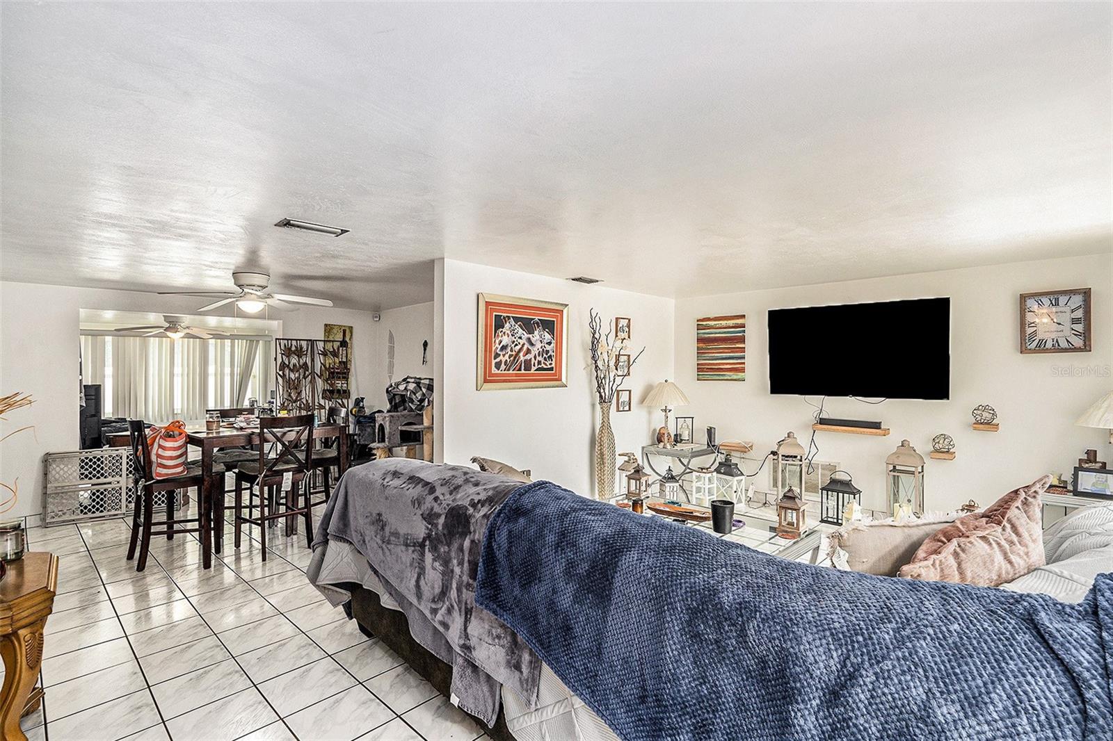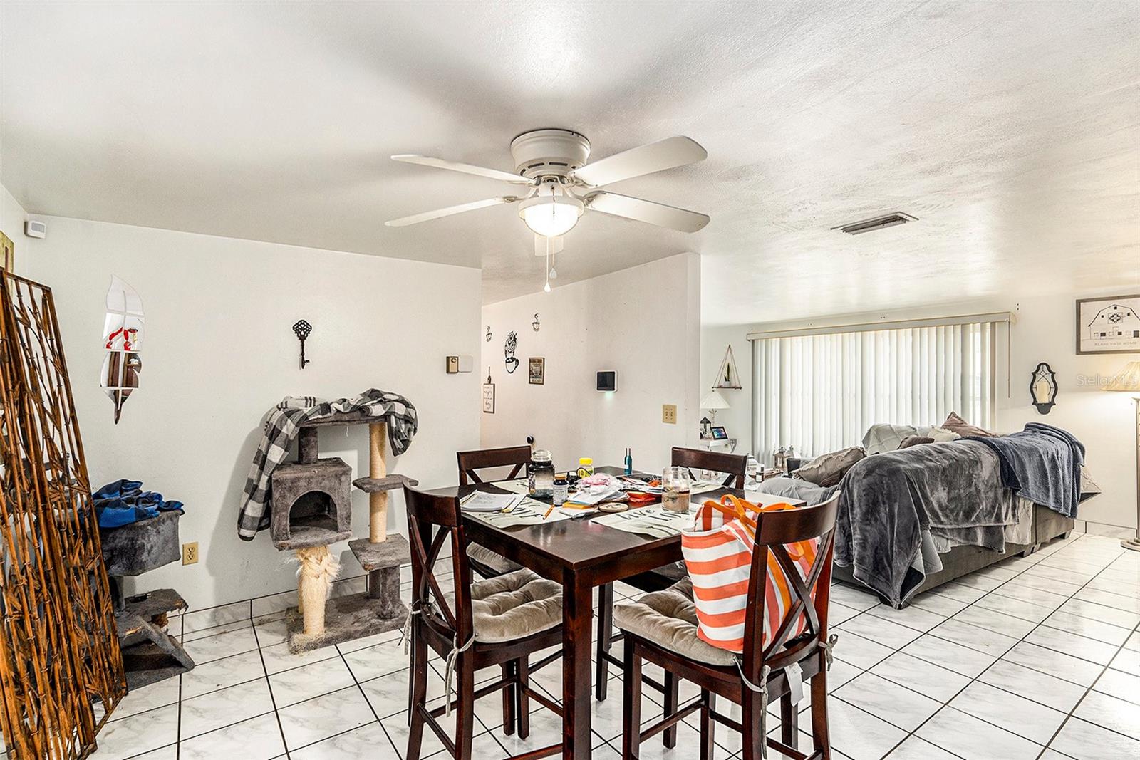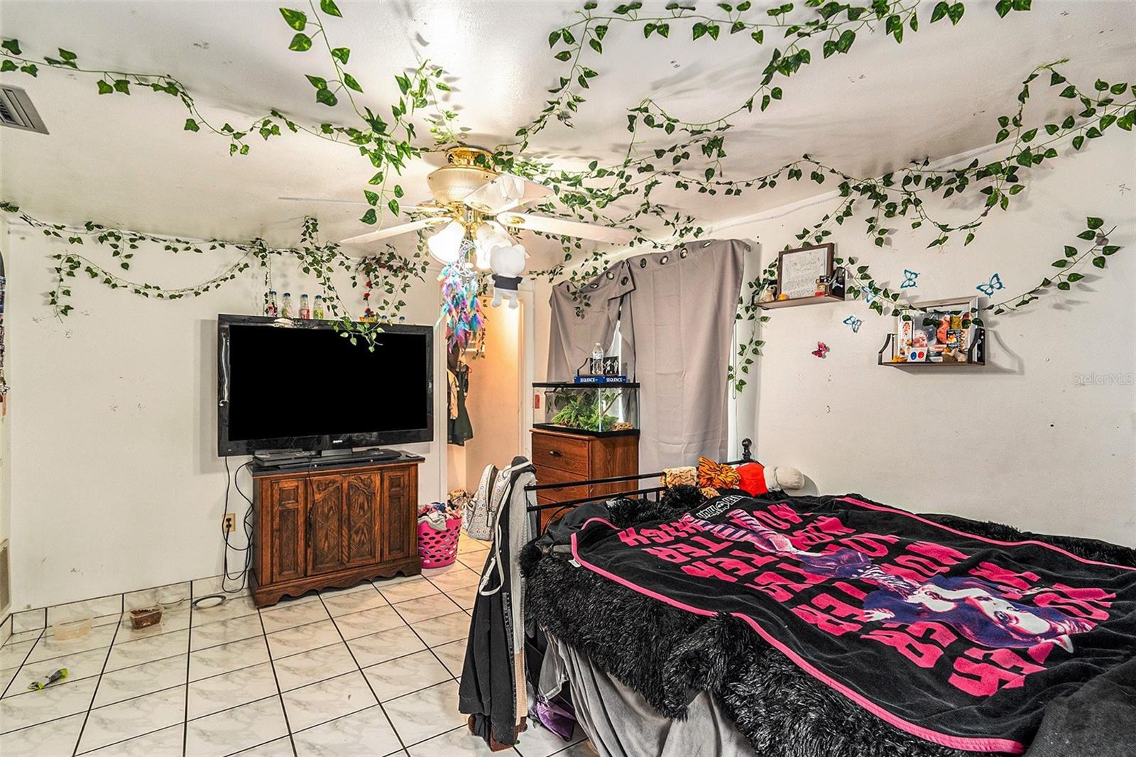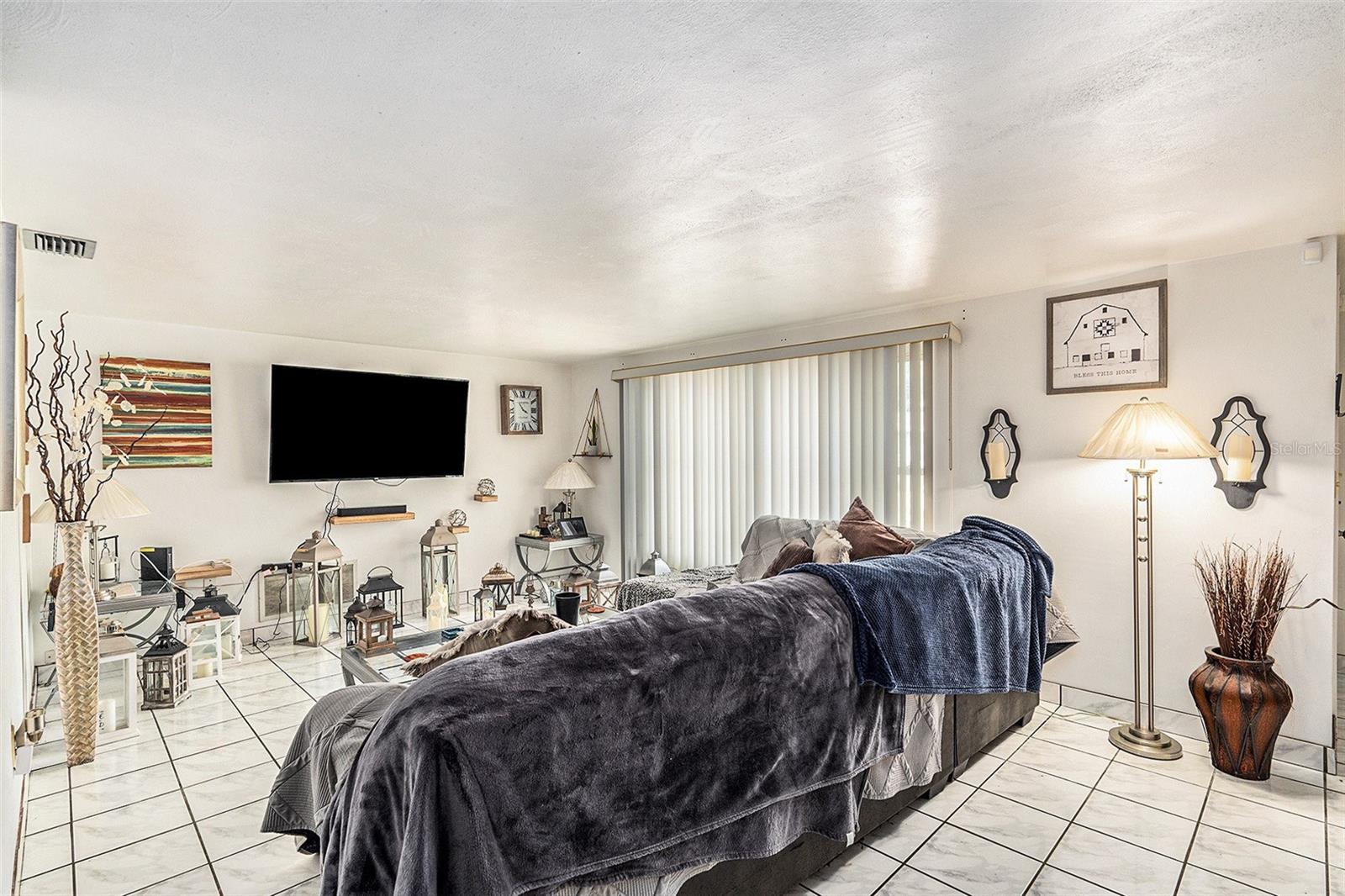 Welcome to this sprawling 1,749sf solid block ranch with attached garage. Features of this open floor plan home consists of 2 bedrooms, both with walk-in closets, a large bonus room easily convertible to a 3rd bedroom (has heat & a/c), an additional den/flex room leading to fully vinyl fenced rear yard and patio, neutral color ceramic tile throughout entire house, living room/dining room combo plus eating area in spacious kitchen, a separate utility room with laundry tub, tiled garage floor with extra storage and screened sliding door, newer vinyl windows, updated main bath shower enclosure, leased solar panels to be assumed by buyer (approx $179 mo) for low electric bills, 2 car wide driveway and courtyard front porch. House is priced right for this square footage so don’t delay!
