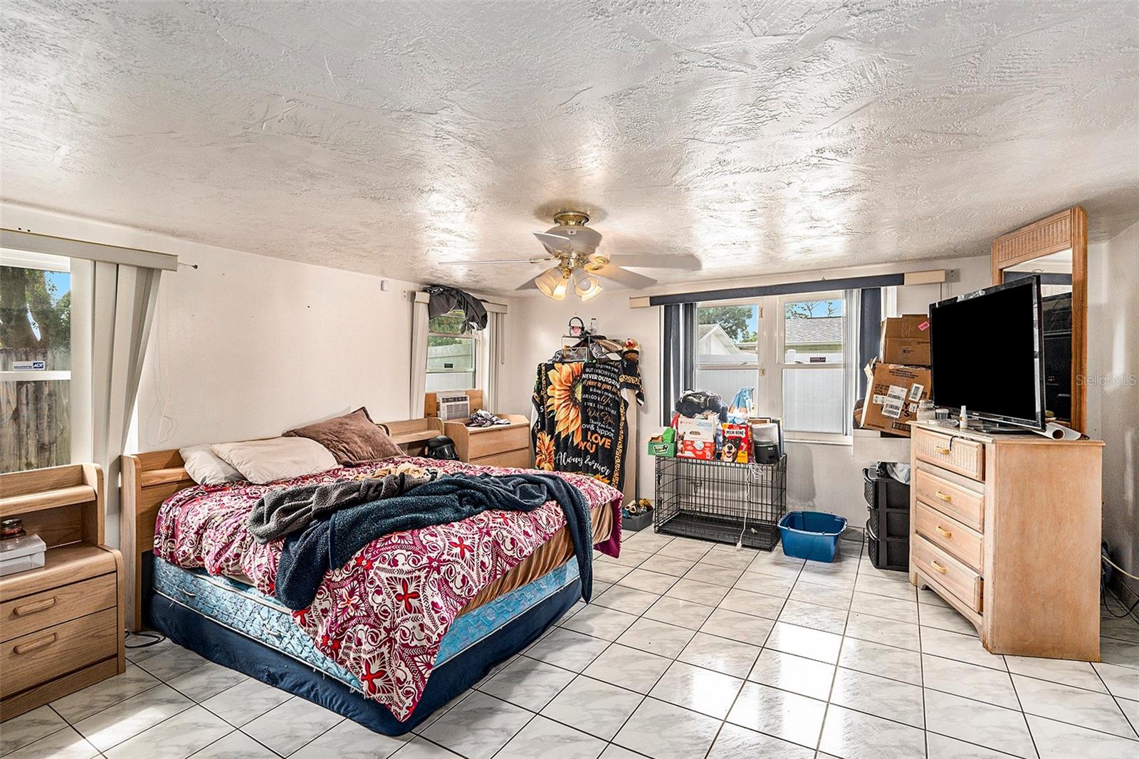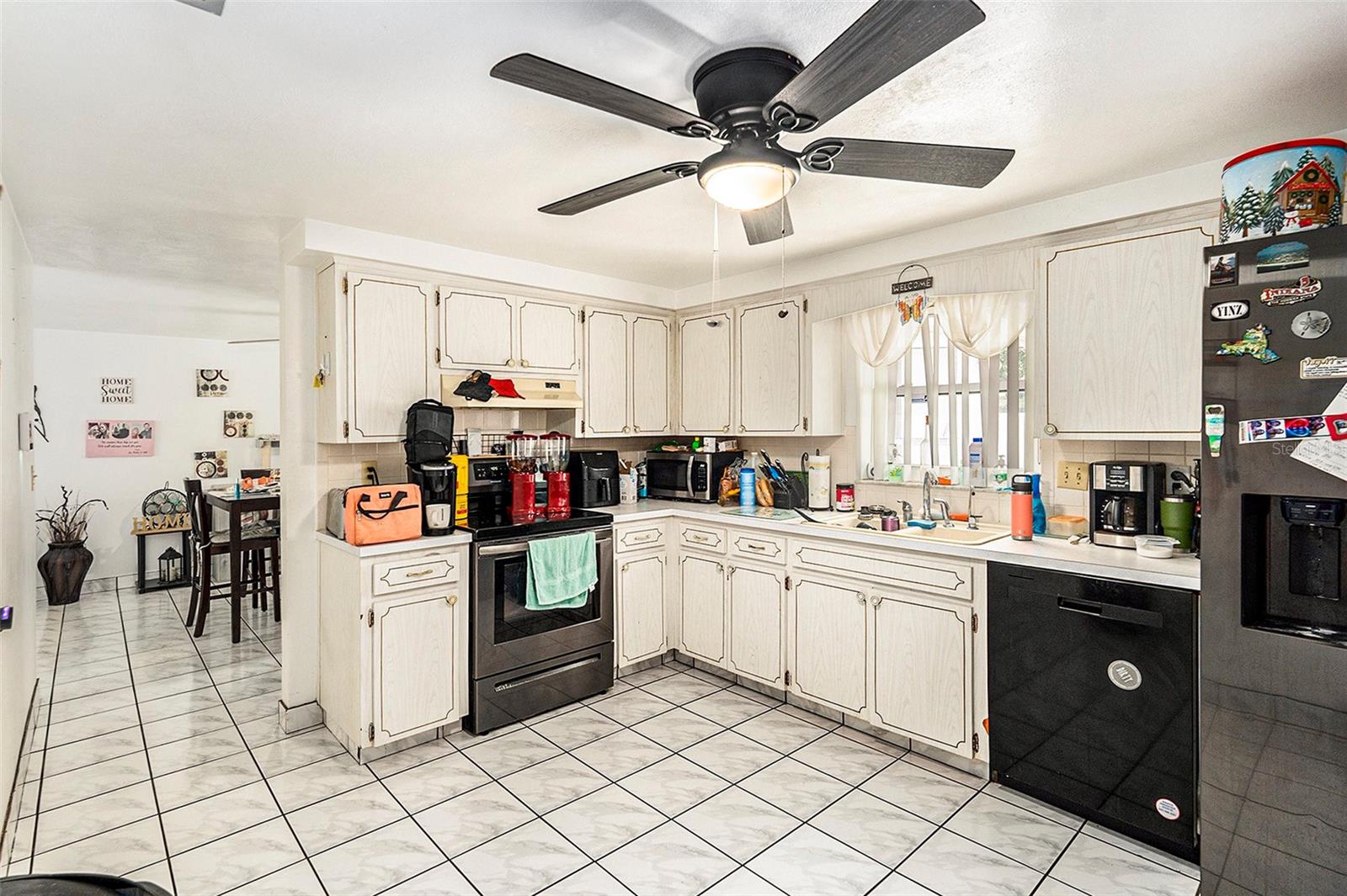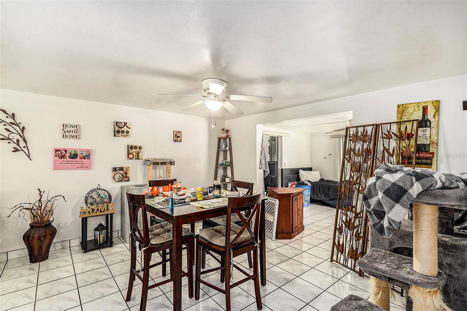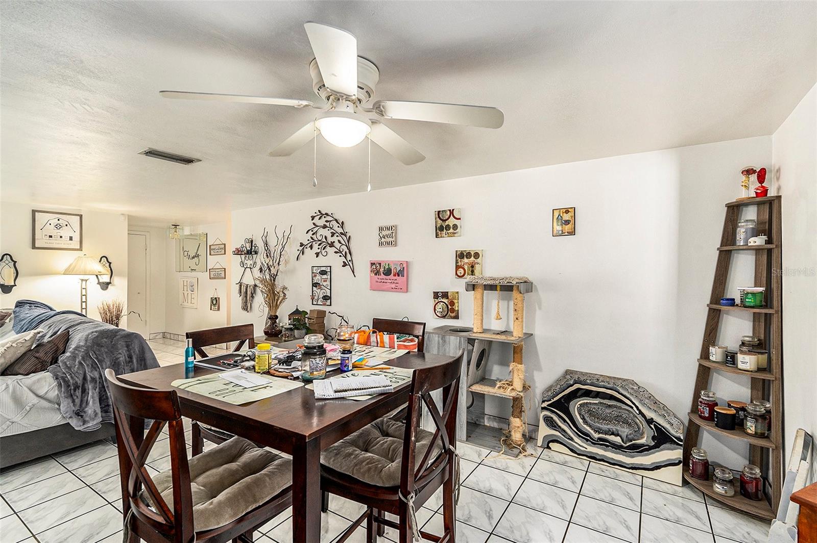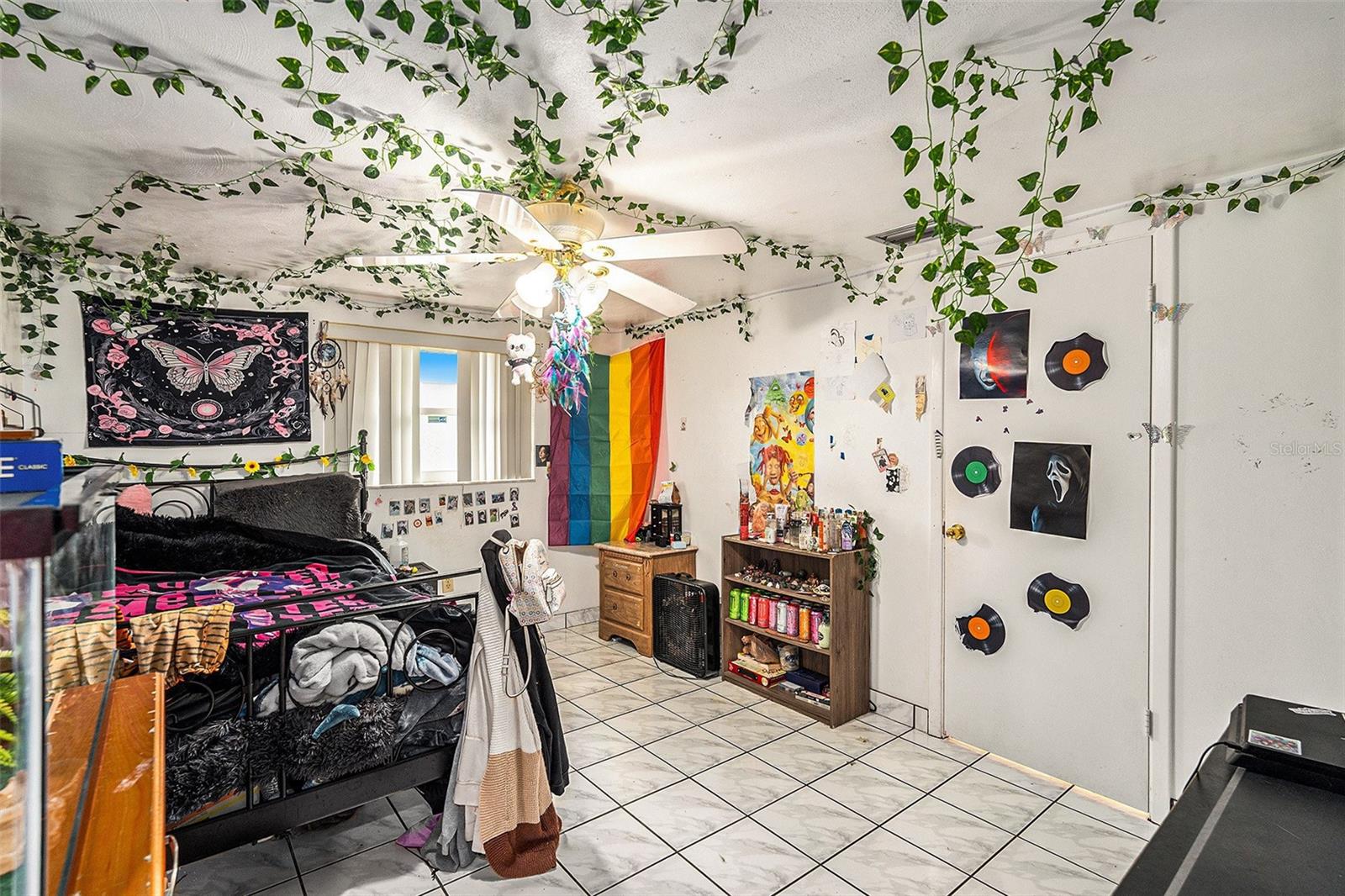 Welcome to this sprawling 1,749sf solid block ranch with attached garage. Features of this open floor plan home consists of 2 bedrooms, both with walk-in closets, a large bonus room easily convertible to a 3rd bedroom (has heat & a/c), an additional den/flex room leading to fully vinyl fenced rear yard and patio, neutral color ceramic tile throughout entire house, living room/dining room combo plus eating area in spacious kitchen, a separate utility room with laundry tub, tiled garage floor with extra storage and screened sliding door, newer vinyl windows, updated main bath shower enclosure, leased solar panels to be assumed by buyer (approx $179 mo) for low electric bills, 2 car wide driveway and courtyard front porch. House is priced right for this square footage so don’t delay!