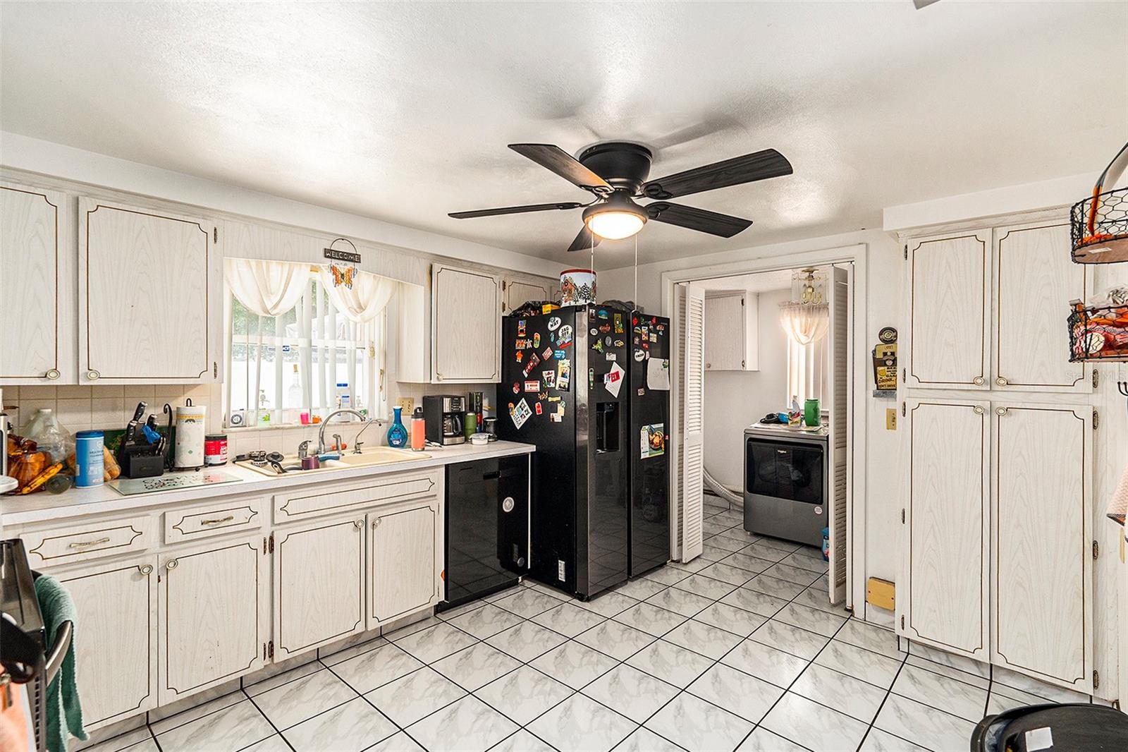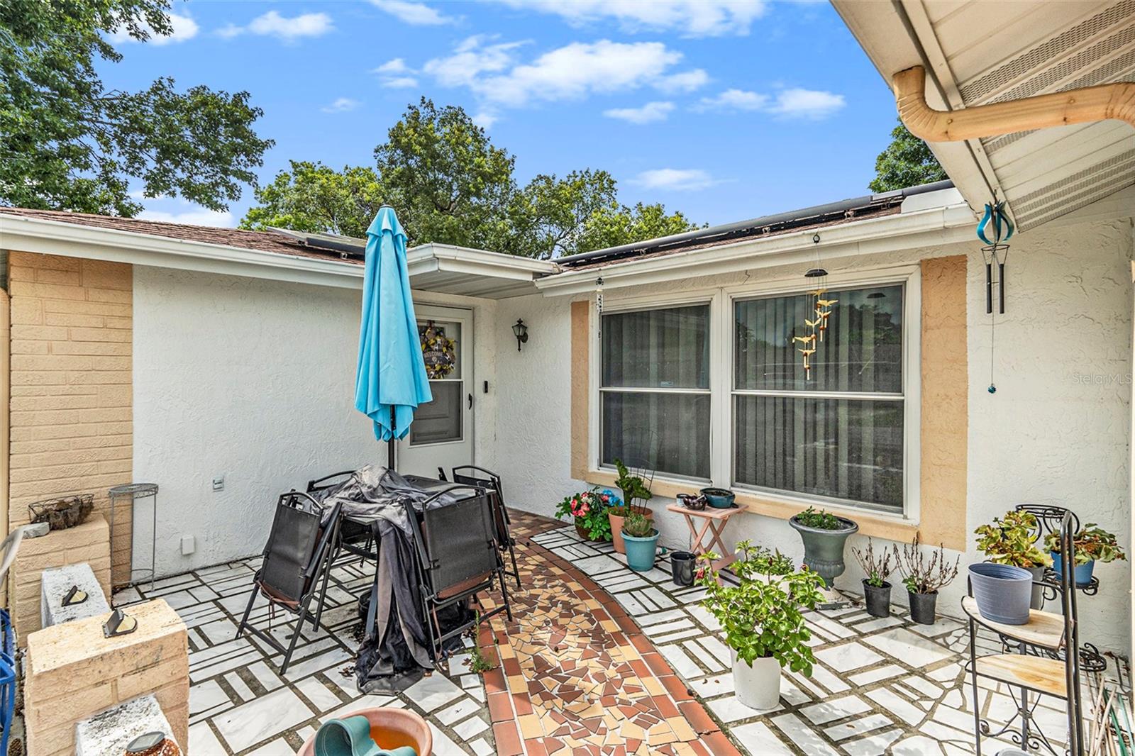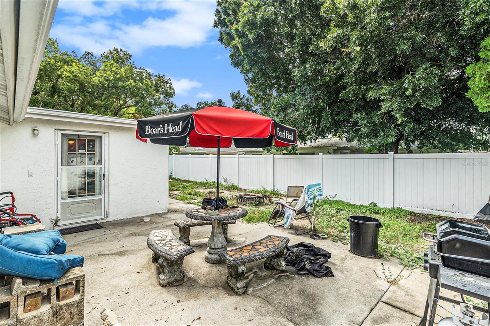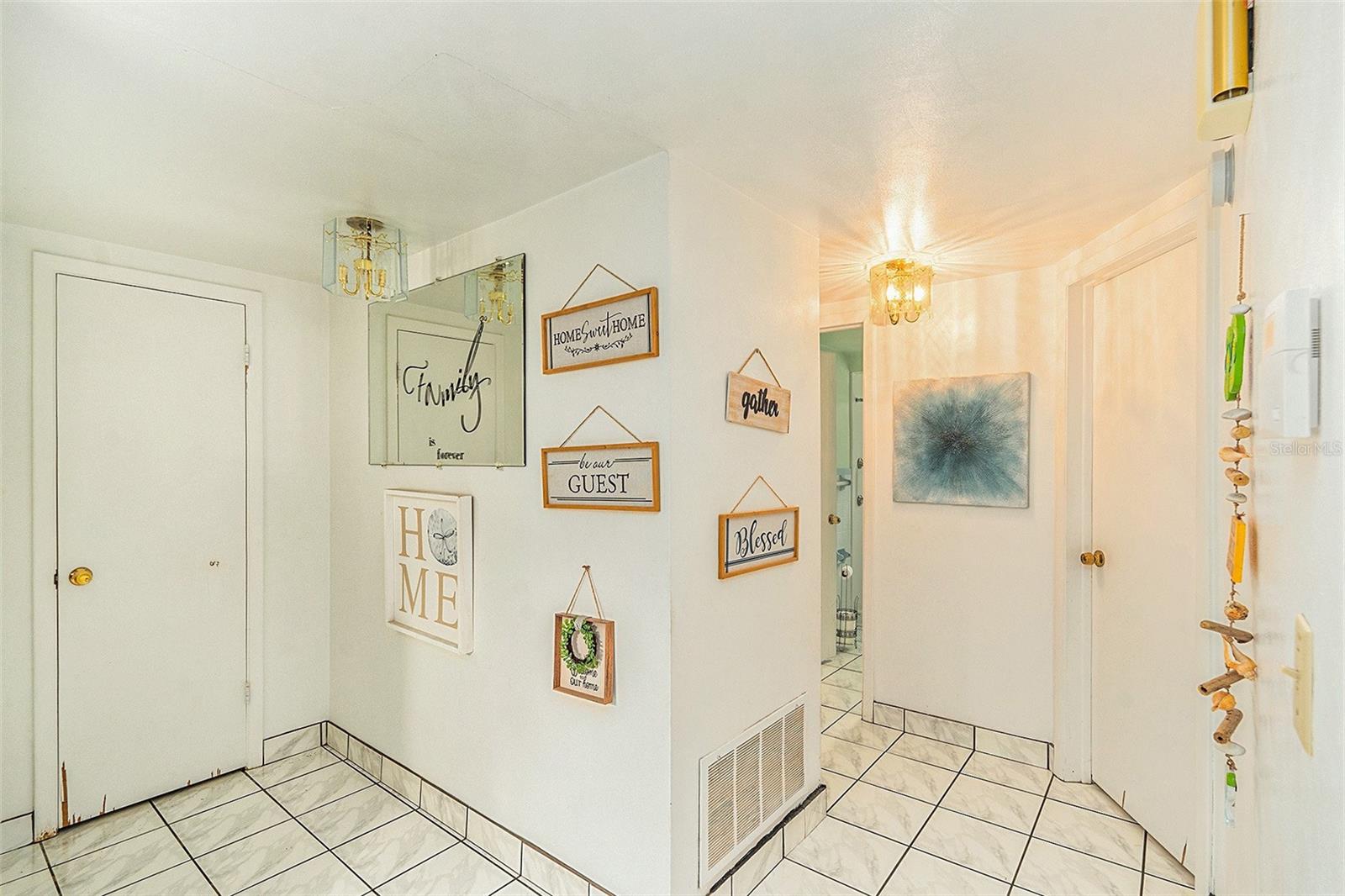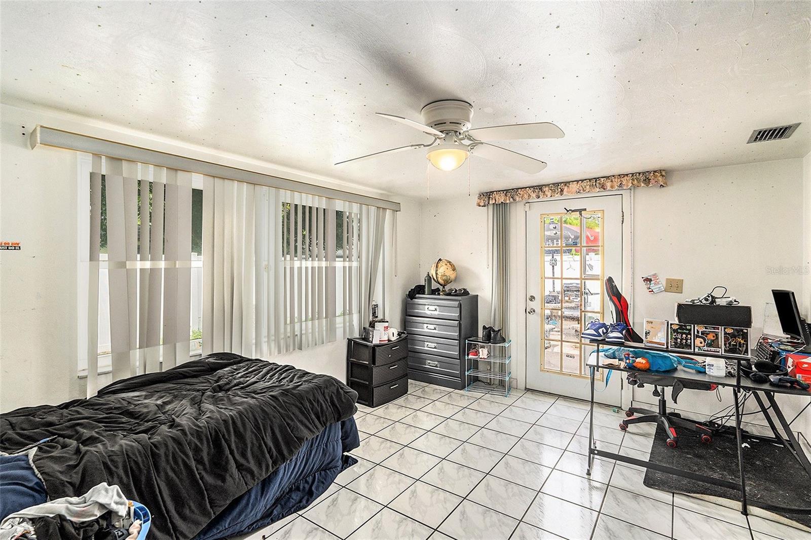 Welcome to this sprawling 1,749sf solid block ranch with attached garage. Features of this open floor plan home consists of 2 bedrooms, both with walk-in closets, a large bonus room easily convertible to a 3rd bedroom (has heat & a/c), an additional den/flex room leading to fully vinyl fenced rear yard and patio, neutral color ceramic tile throughout entire house, living room/dining room combo plus eating area in spacious kitchen, a separate utility room with laundry tub, tiled garage floor with extra storage and screened sliding door, newer vinyl windows, updated main bath shower enclosure, leased solar panels to be assumed by buyer (approx $179 mo) for low electric bills, 2 car wide driveway and courtyard front porch. House is priced right for this square footage so don’t delay!