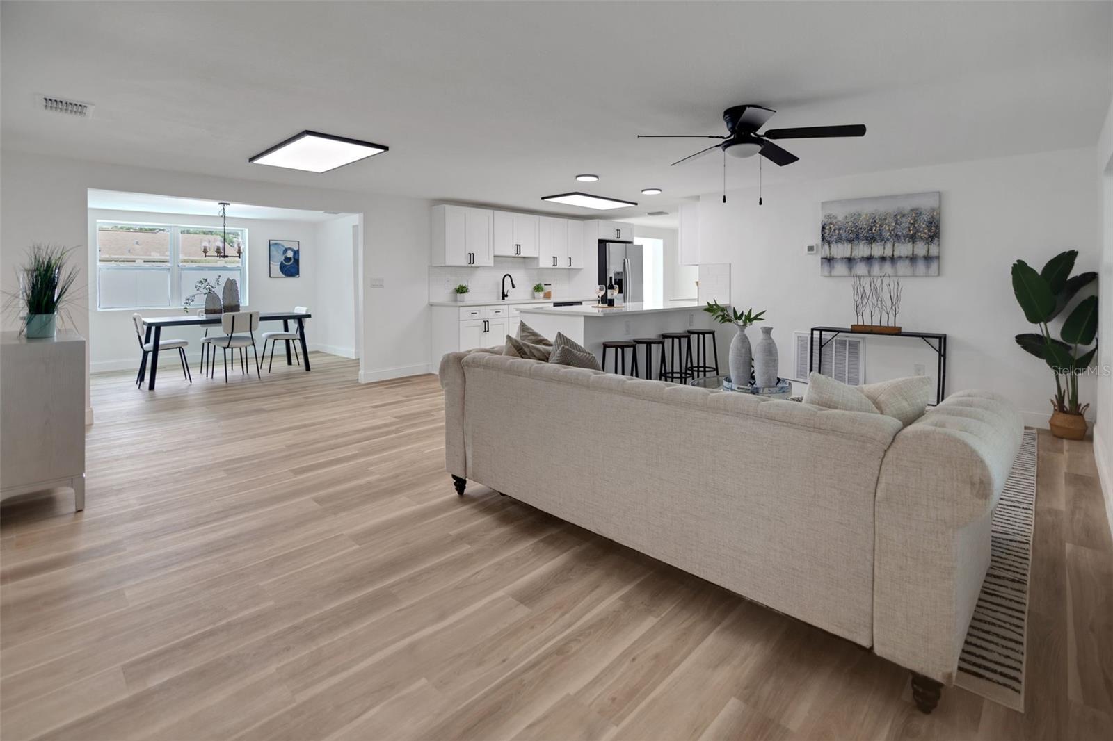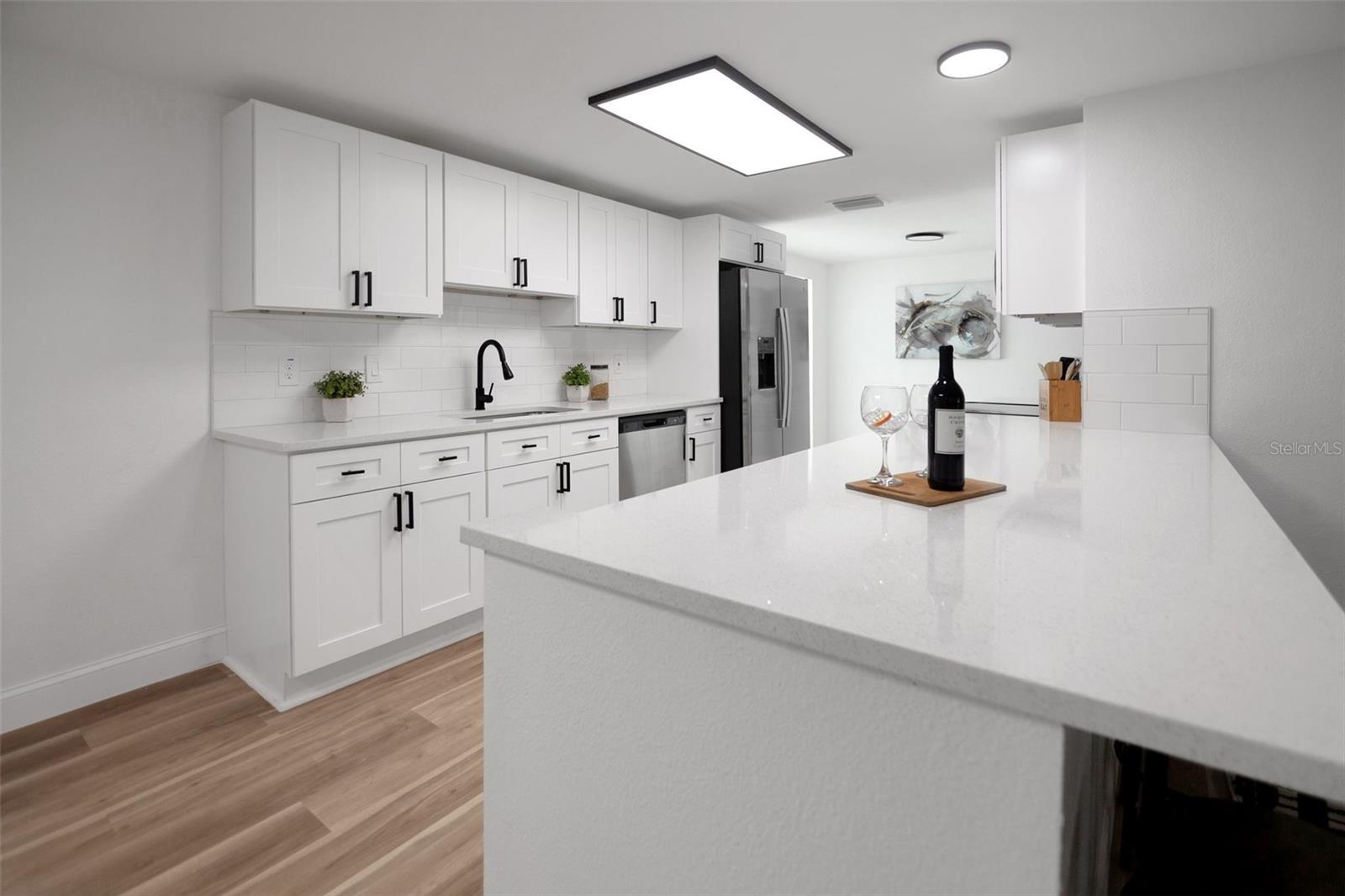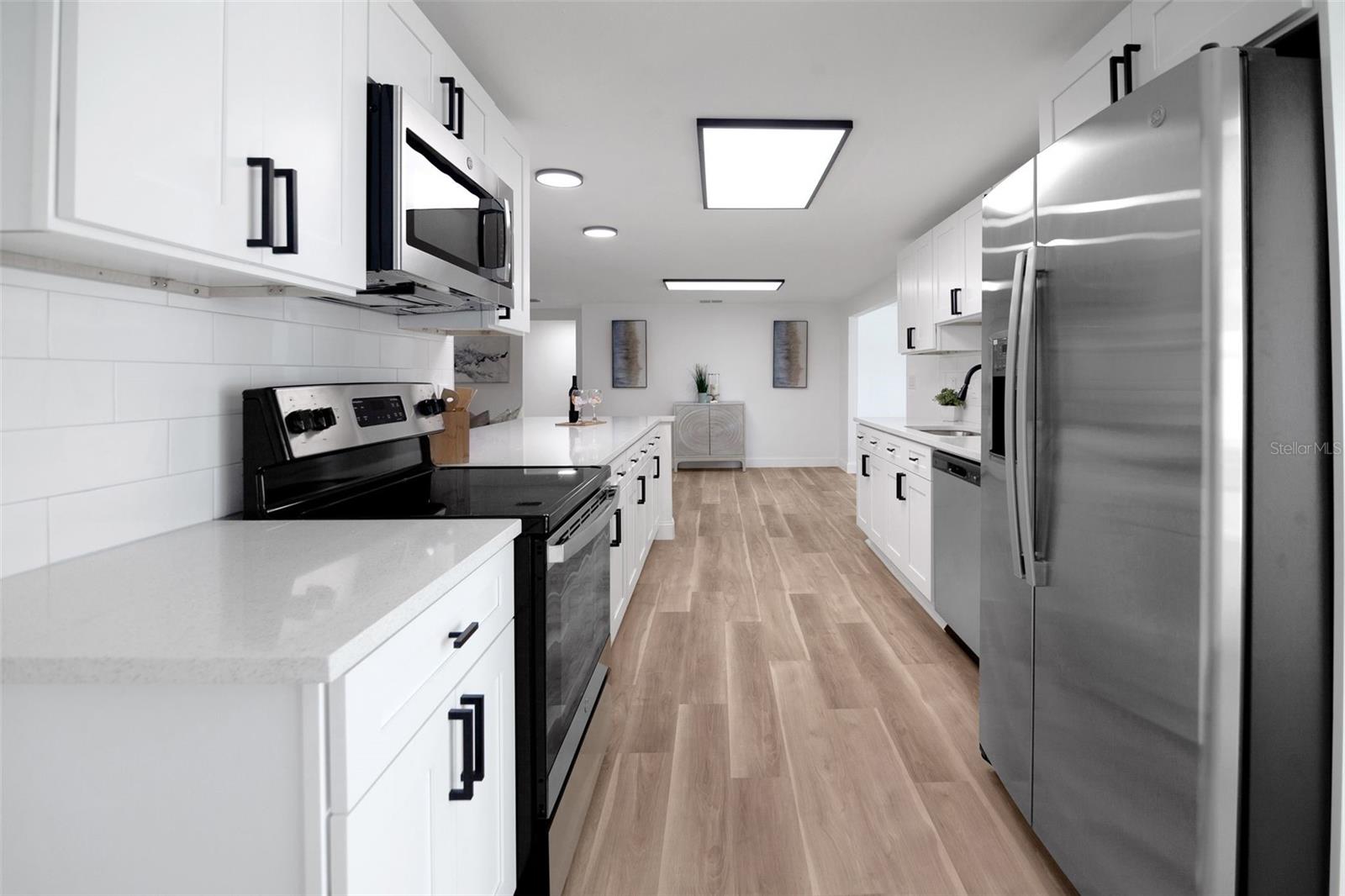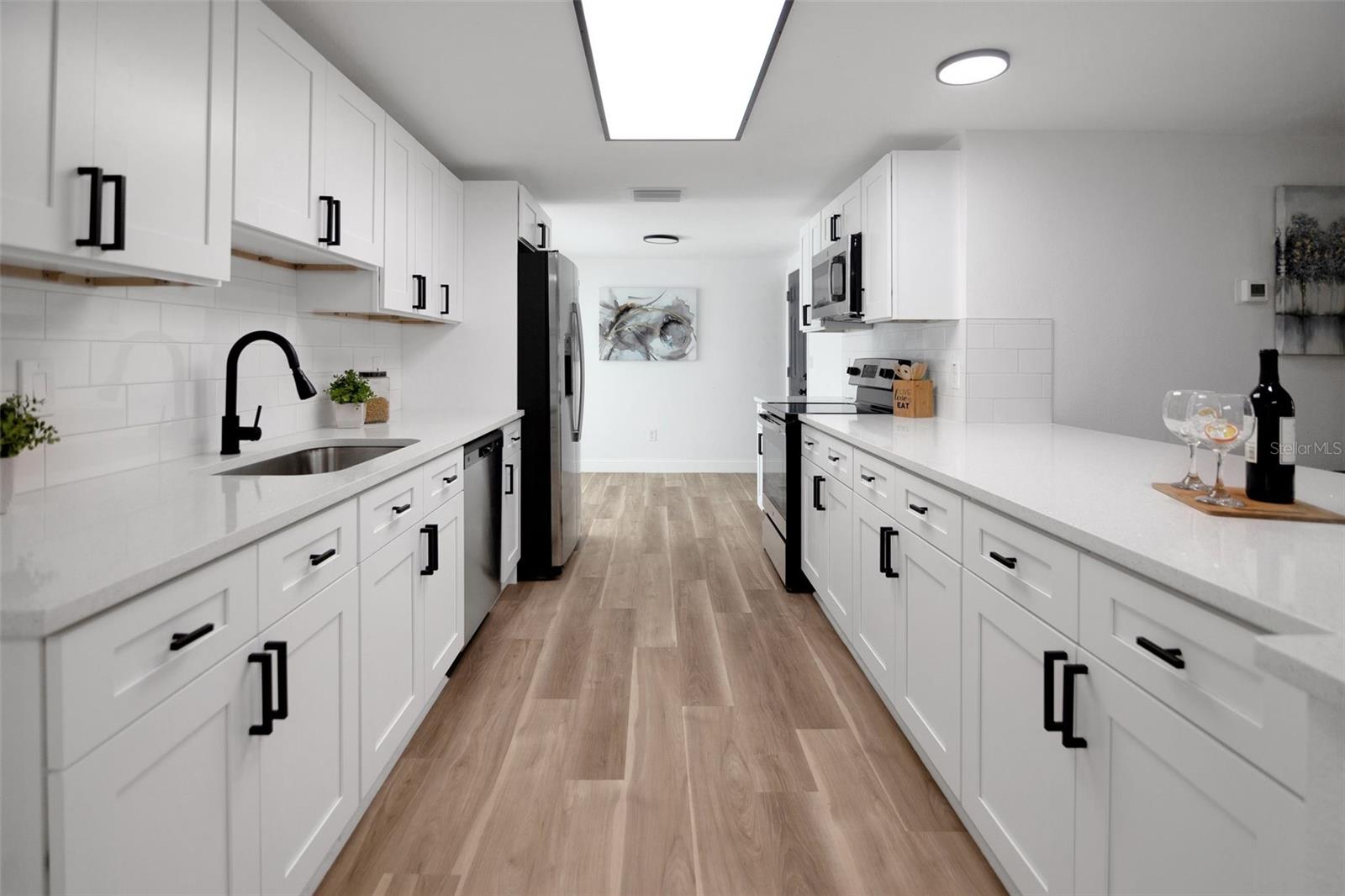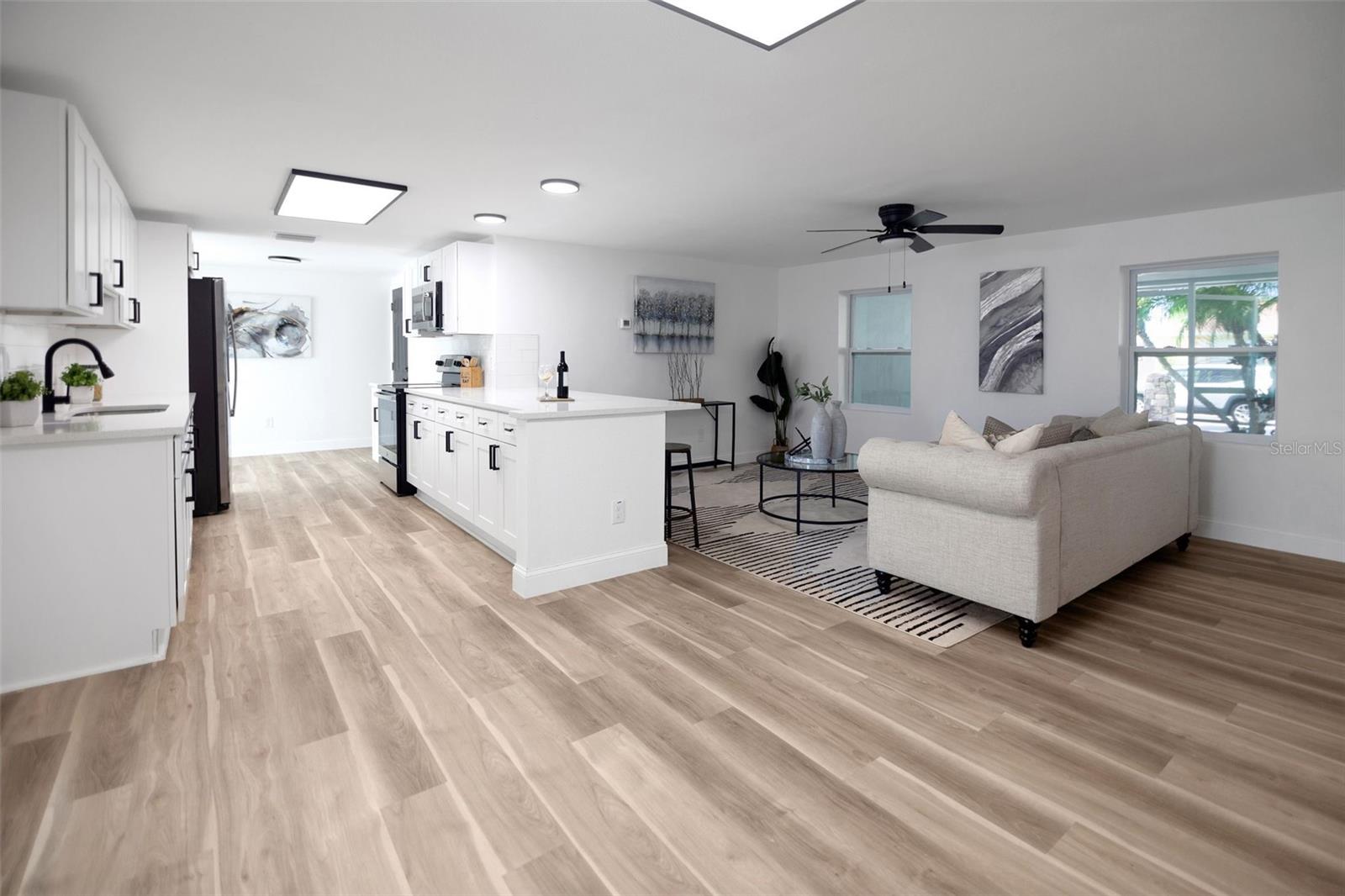 Beautifully renovated 4 bedroom/ 2-bathroom POOL home with a lovely, screened in front porch and 1-car garage. Walk inside and see this home has been made to feel like NEW- all new luxury vinyl flooring throughout, new interior and exterior paint, new lights, fans, and other fixtures in every room! All new galley-style kitchen featuring new cabinets, quartz countertops, new backsplash and NEW Stainless-steel appliances. Both bathrooms have new toilets, vanities and retiled showers. TWO built in closets in the master bedroom. Out back is a glistening blue pool with a large slab patio and privately fenced-in backyard! Great location- minutes away from shopping, restaurants, and less than an hour away from some gorgous west coast beaches! Schedule your showing now!!