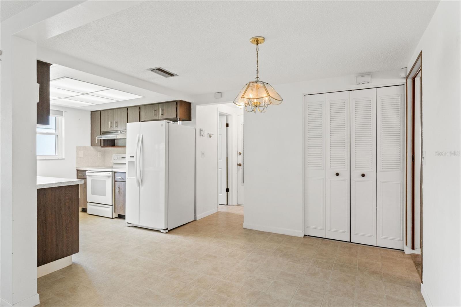 Welcome home! This enchanting 2-bedroom, 2-bath gem is perfectly positioned on a desirable corner lot within a vibrant community. The inviting exterior showcases a spacious, covered front entry and a beautifully landscaped yard, complete with majestic mature palm trees. Enjoy the tranquility of a fully fenced yard that provides both privacy and security, along with a convenient shed for all your storage needs. Tailor your comfort with the option of a split plan for customizable zone air conditioning, or opt for the traditional central air system to cool the entire home. As you step inside, you'll be greeted by a thoughtfully designed layout that seamlessly blends comfort and functionality. Newer windows enhance the home’s aesthetic allure while boosting its energy efficiency. The kitchen is a true delight, featuring a charming breakfast bar—perfect for savoring morning coffee or casual meals. The formal living room is ideal for intimate gatherings, while the family room boasts sliders that lead to a lovely enclosed lanai. This versatile space allows you to bask in the outdoors year-round, whether you're enjoying a quiet moment or entertaining friends. With plenty of closet storage, including cedar-lined bedroom closets, and an array of dining options—such as a dedicated dining room and an inviting eat-in kitchen for family meals—this home caters to all your lifestyle needs. Additional highlights include a water softener, gutters and downspouts, a well for irrigation, and underground utilities, all enhanced by safe sidewalks and charming streetlights. Perfectly located near schools, shopping, dining, medical facilities, and an abundance of recreational activities—including boating, fishing, and the stunning beaches of Florida—this property also offers easy access to Tampa, Clearwater, and Orlando, making commutes effortless. Don’t miss your chance to call this remarkable property your new home—your perfect piece of paradise awaits!