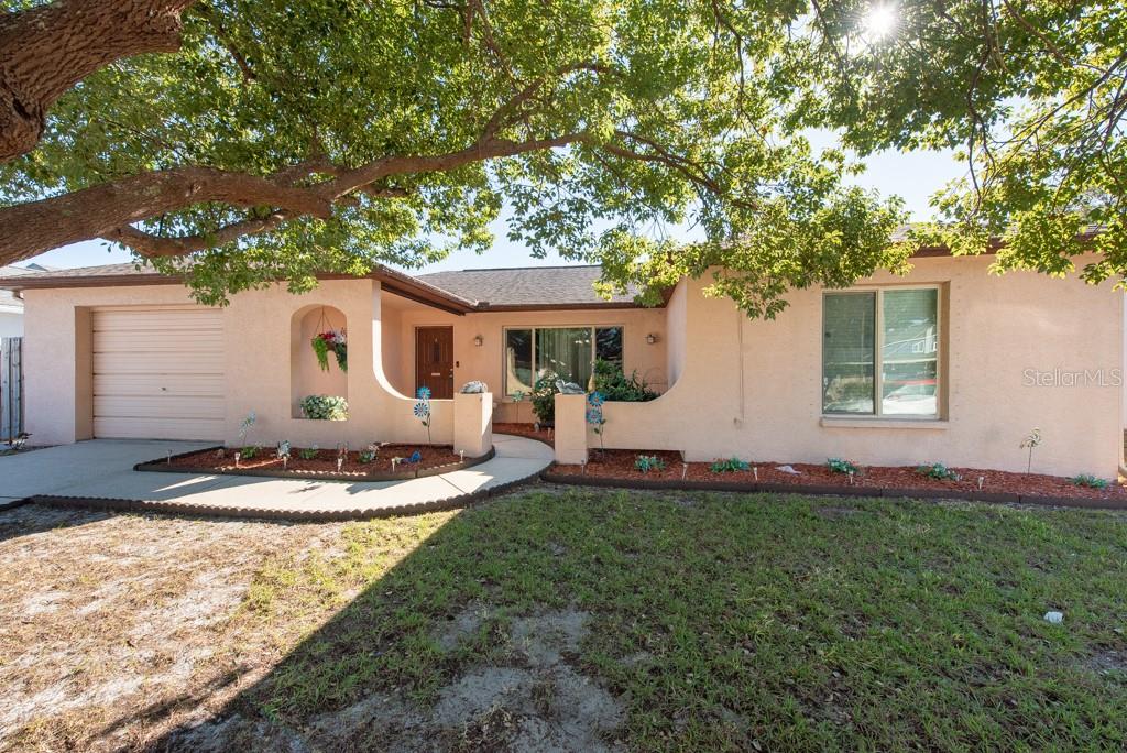 THIS HOME HAS NEVER FLOODED AND HAS NEVER BEEN AFFECTED BY ANY HURRICANES EVER. Get ready to experience your new Florida haven as you discover this charming 3-bedroom, 2-bathroom home in the peaceful Regency Park neighborhood of Port Richey, Florida. With 1,705 square feet of living space, this residence offers a blend of comfort and modern updates. The roof replaced in 2019, a brand-new HVAC system from 2023 with a 10-year manufacturer's warranty on the AC, and new insulation in the attic that was added within the last 6 months ensure peace of mind for years to come. The home features an oversized 1-car garage and a freshly installed washer and dryer. Inside, the spacious living room invites relaxation, while the kitchen boasts a breakfast bar, wood cabinets, and tile flooring, perfect for any meal. The master bedroom is a serene hideaway with carpeted flooring, glass sliding doors leading to a huge screened-in porch, and an ensuite bath featuring a wide vanity, dual sinks, and a step-in shower. The fenced-in yard with two gates adds privacy and versatility, making it ideal for outdoor activities or pets. This home is also wired for security, offering an added layer of protection. With no HOA, no CDD, and no flood insurance required, this property is not only affordable but also low-maintenance. Conveniently located near shopping, parks, playgrounds, and Florida’s stunning beaches, this home is perfect as a starter home or a winter getaway.