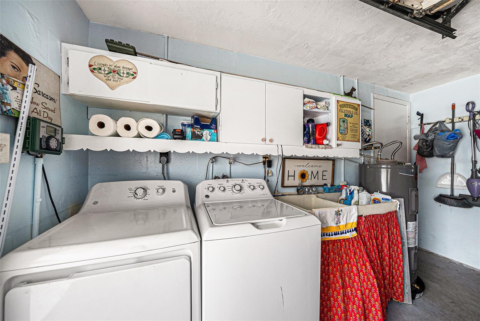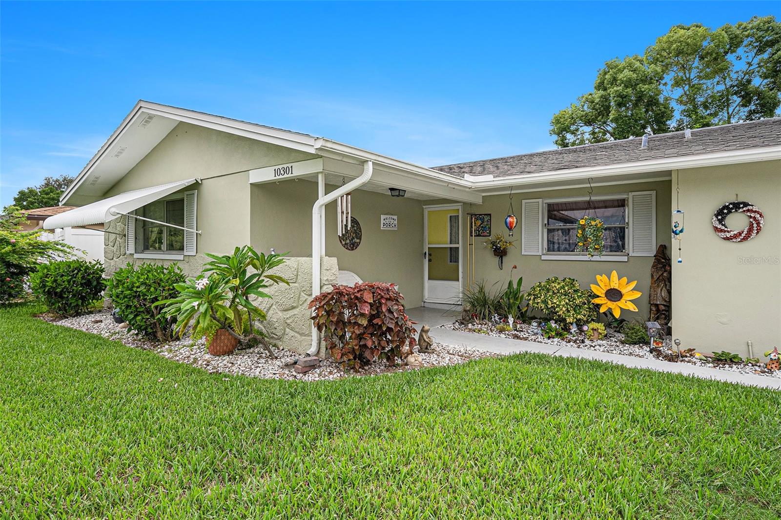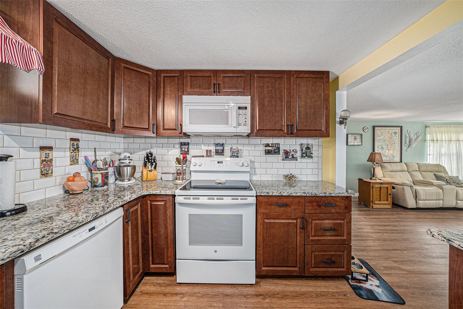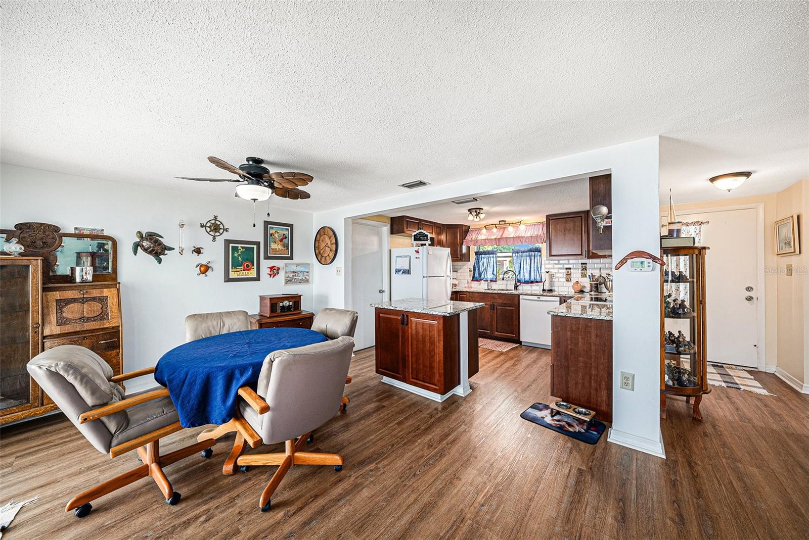 Welcome to your dream retreat in a serene, HOA-free neighborhood! This beautifully updated two-bedroom, two-bath home features a spacious open-concept living area where the modern kitchen seamlessly flows into the inviting living room. Enjoy the luxury of brand-new flooring and contemporary kitchen finishes while overlooking your sparkling caged pool, perfect for relaxing or entertaining year-round. The fenced yard offers privacy and security. Unique to this property is the oversized garage that includes a conveniently located second bath. This clever addition ensures that guests can access a restroom without having to enter the main home, making it perfect for pool parties and gatherings. With its blend of practical upgrades and stylish living spaces, this home is a rare find that combines convenience, comfort, and charm in a peaceful setting.
