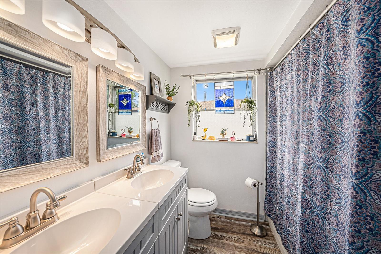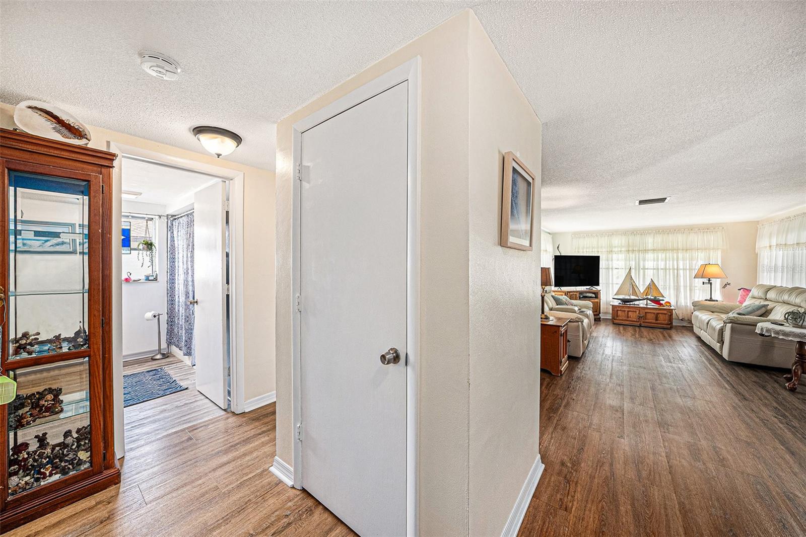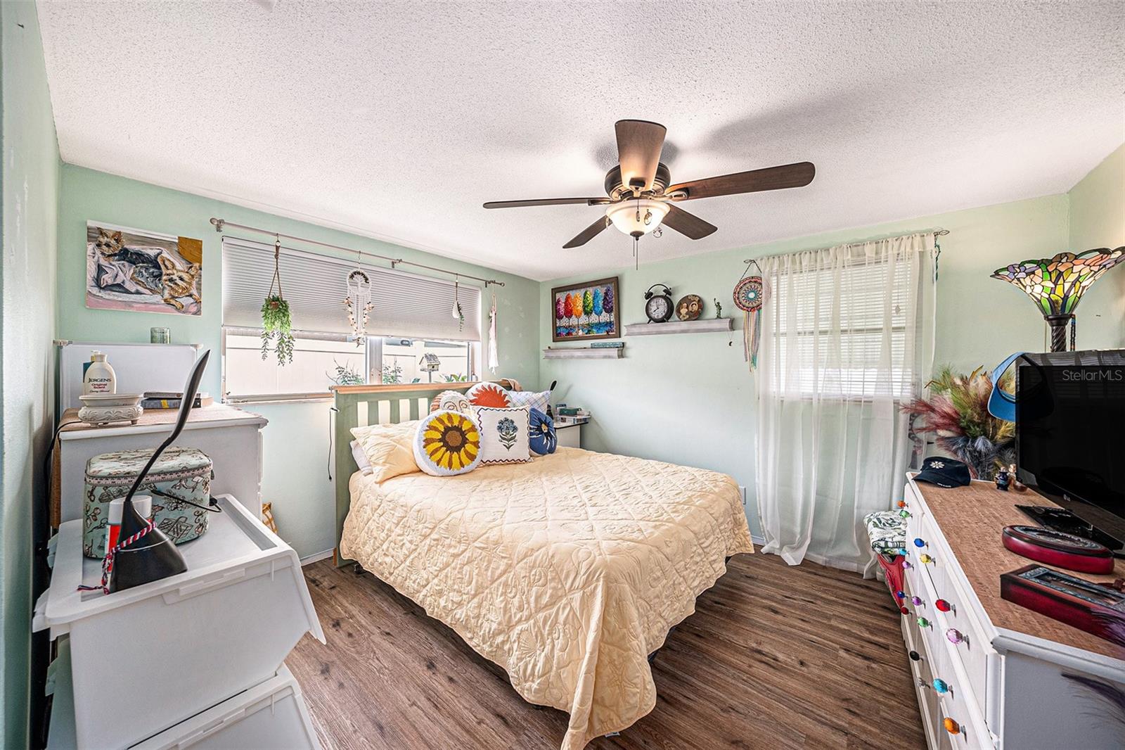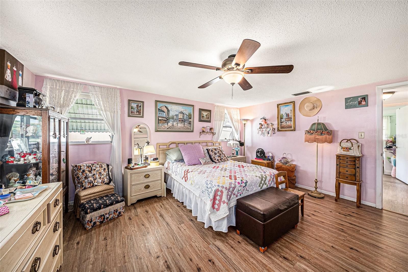 Welcome to your dream retreat in a serene, HOA-free neighborhood! This beautifully updated two-bedroom, two-bath home features a spacious open-concept living area where the modern kitchen seamlessly flows into the inviting living room. Enjoy the luxury of brand-new flooring and contemporary kitchen finishes while overlooking your sparkling caged pool, perfect for relaxing or entertaining year-round. The fenced yard offers privacy and security. Unique to this property is the oversized garage that includes a conveniently located second bath. This clever addition ensures that guests can access a restroom without having to enter the main home, making it perfect for pool parties and gatherings. With its blend of practical upgrades and stylish living spaces, this home is a rare find that combines convenience, comfort, and charm in a peaceful setting.