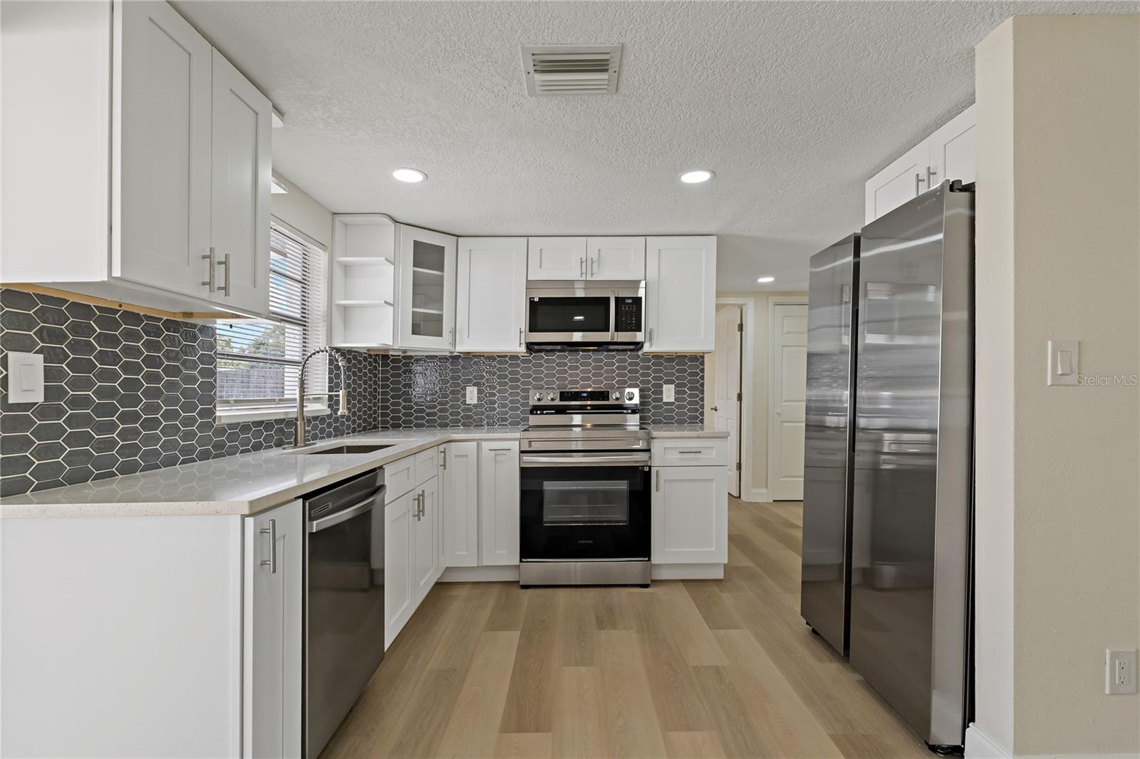 NOT IN A FLOOD ZONE! Just went through 2 Named Hurricanes and sustained zero damage! Fully updated and move-in ready! This home boasts a brand new 2024 ROOF and HVAC system. The renovated kitchen shines with brand new stainless steel appliances, premium quartz countertops, and an intricate tile backsplash that really elevates the whole kitchen. Both bathrooms have been completely updated and no expense was spared on the finishes! Luxury vinyl plank flooring and high end baseboards run throughout the entire home. Some more recent upgrades in 2024 include all new interior and exterior light fixtures, landscaping, and the exterior and interior have been fully repainted and textured. The lot features a spacious, fenced-in backyard, perfect for outdoor living. With NO HOA and NO FLOOD INSURANCE, this home is ideal for first-time homebuyers or investors.