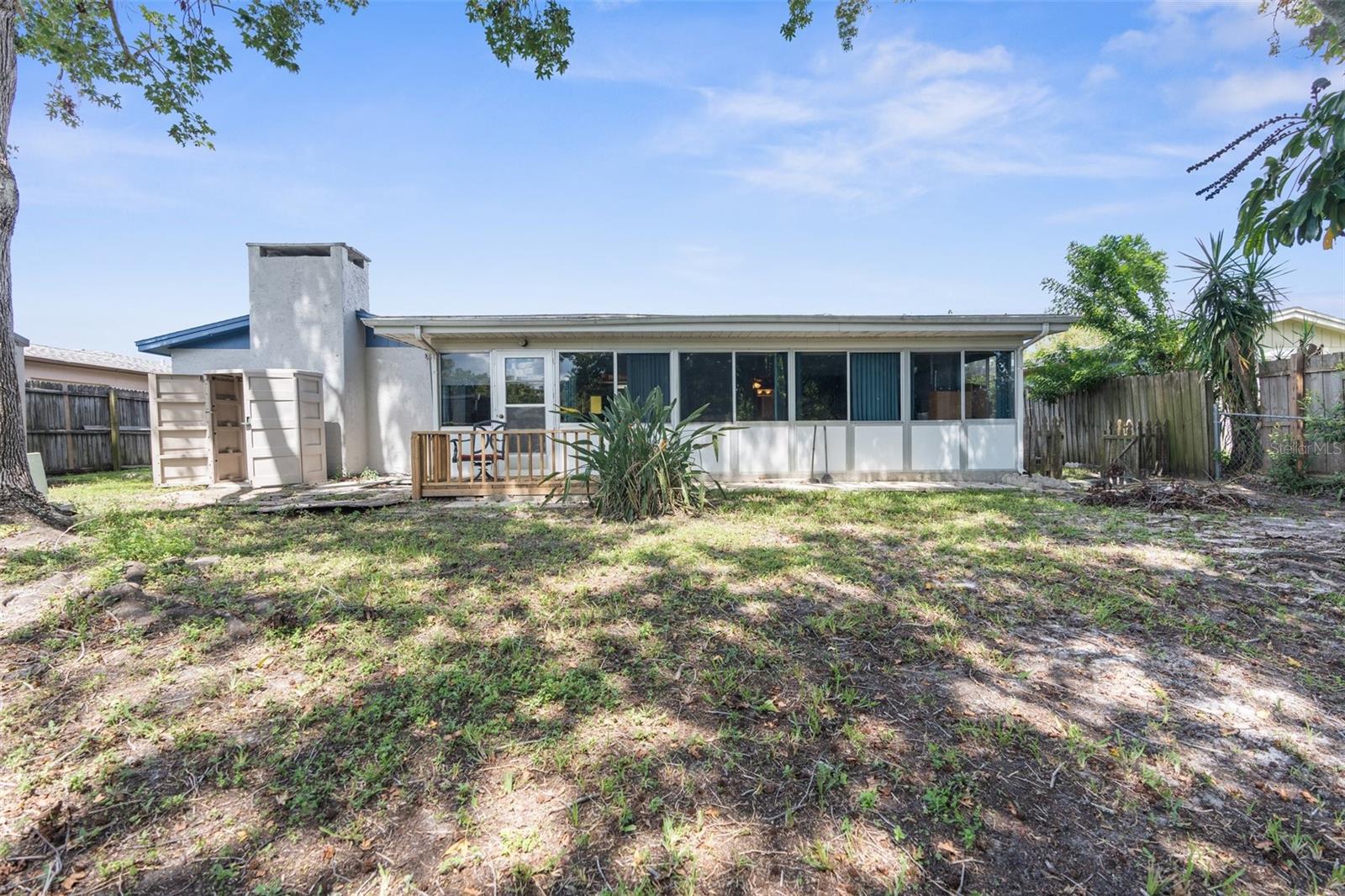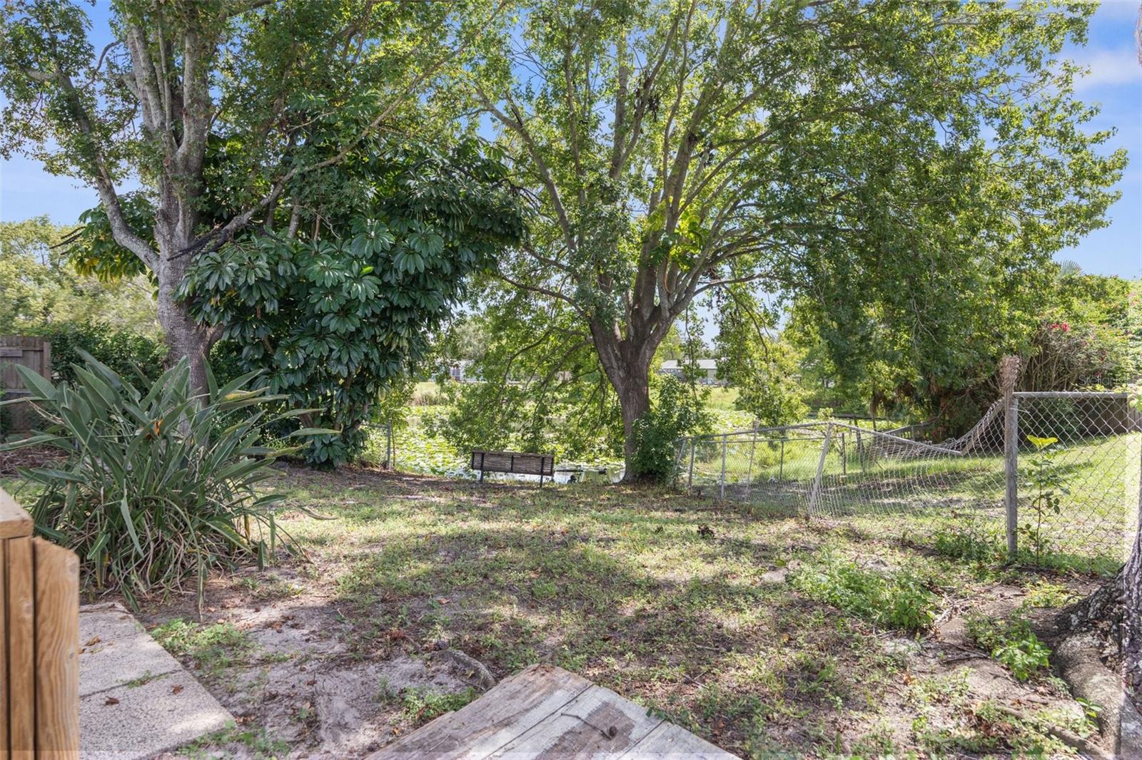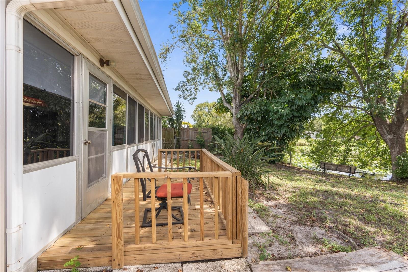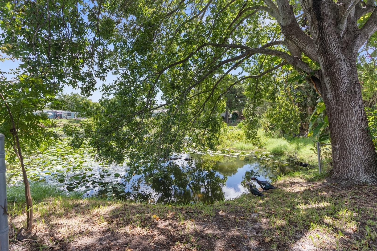 NEW ROOF GOING ON BEFORE CLOSING!! NEW GUTTERS GOING ON!! NEW WATER SOFTENER / FILTRATION SYSTEM. Pond Front! NO HOA! NO CDD! Welcome home to this 2-bedroom, 2-bathroom with a two-car garage and ample flex space. Upon entering through the screened front porch into the open foyer, you'll find a combined living room and dining room with a bar opening to a large flex space/game room. The kitchen overlooks the family room, which features a wood-burning fireplace. The primary bedroom, with an ensuite bathroom, is located towards the back of the home, while the secondary bedroom is towards the front, with the second bathroom nearby. The backyard is shaded with mature trees and offers a pond view. The property also boasts plenty of parking with a two-car driveway and circular drive. It is conveniently located close to medical facilities, restaurants, shopping, and entertainment.