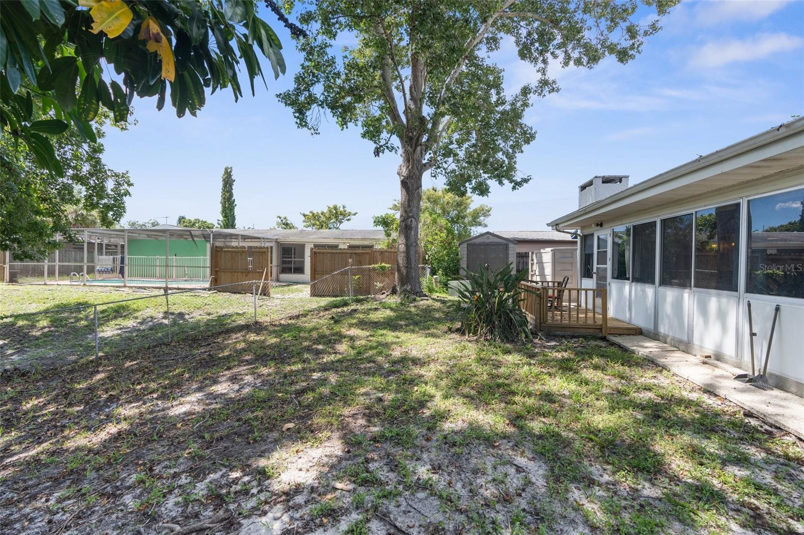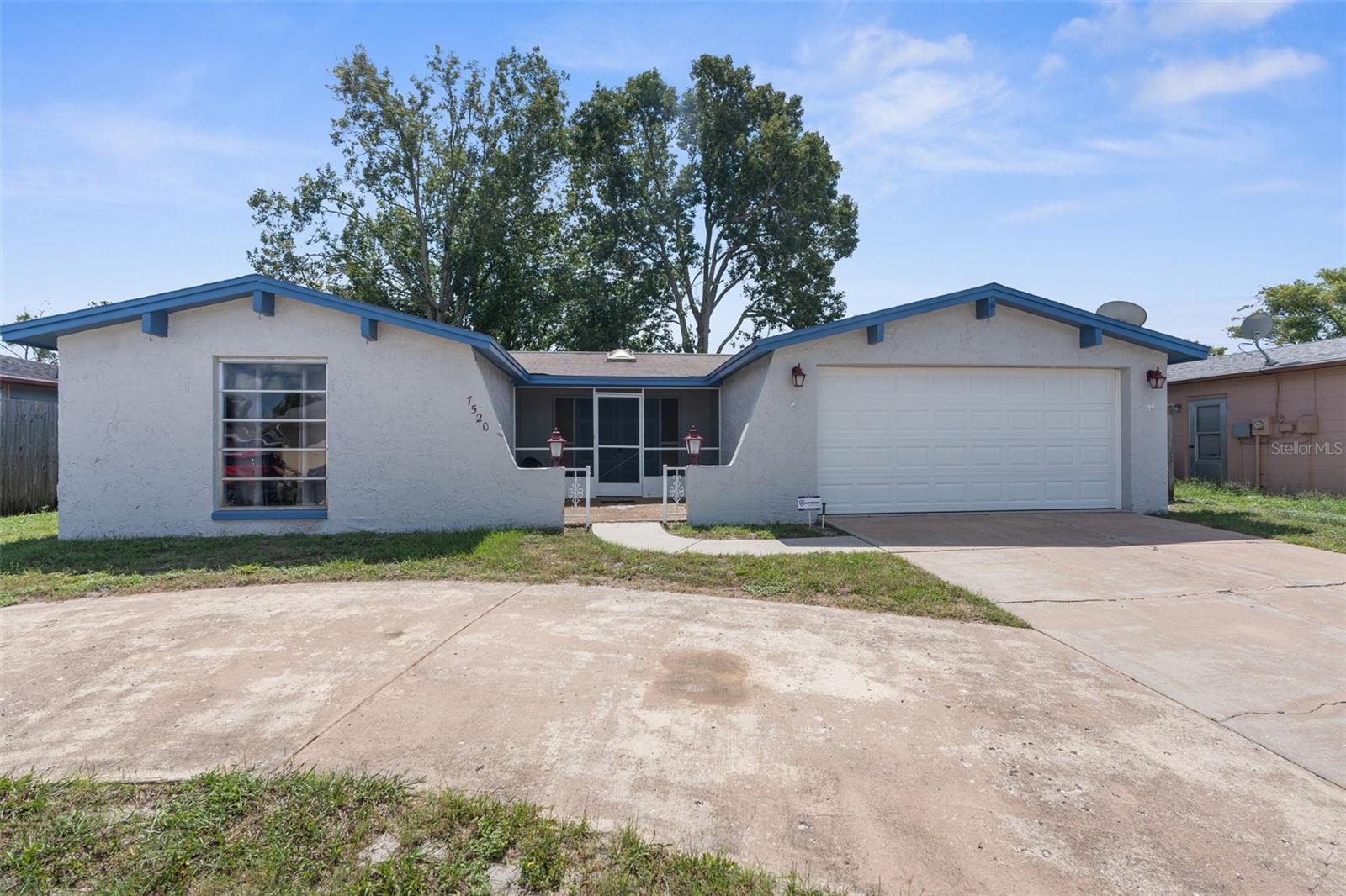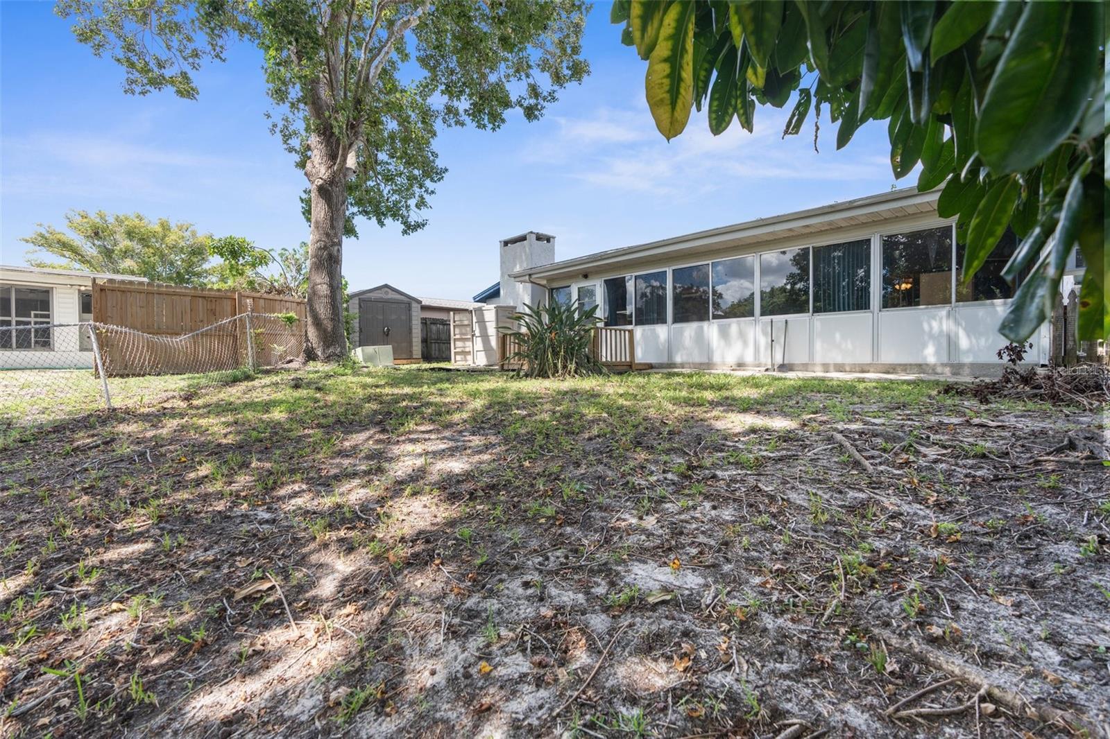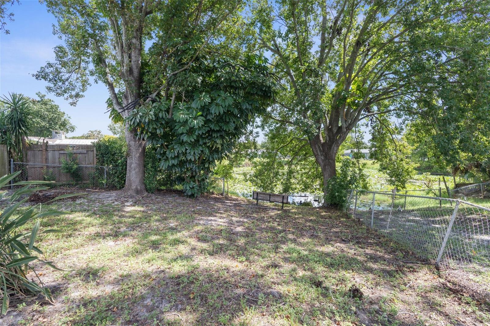 NEW ROOF GOING ON BEFORE CLOSING!! NEW GUTTERS GOING ON!! NEW WATER SOFTENER / FILTRATION SYSTEM. Pond Front! NO HOA! NO CDD! Welcome home to this 2-bedroom, 2-bathroom with a two-car garage and ample flex space. Upon entering through the screened front porch into the open foyer, you'll find a combined living room and dining room with a bar opening to a large flex space/game room. The kitchen overlooks the family room, which features a wood-burning fireplace. The primary bedroom, with an ensuite bathroom, is located towards the back of the home, while the secondary bedroom is towards the front, with the second bathroom nearby. The backyard is shaded with mature trees and offers a pond view. The property also boasts plenty of parking with a two-car driveway and circular drive. It is conveniently located close to medical facilities, restaurants, shopping, and entertainment.