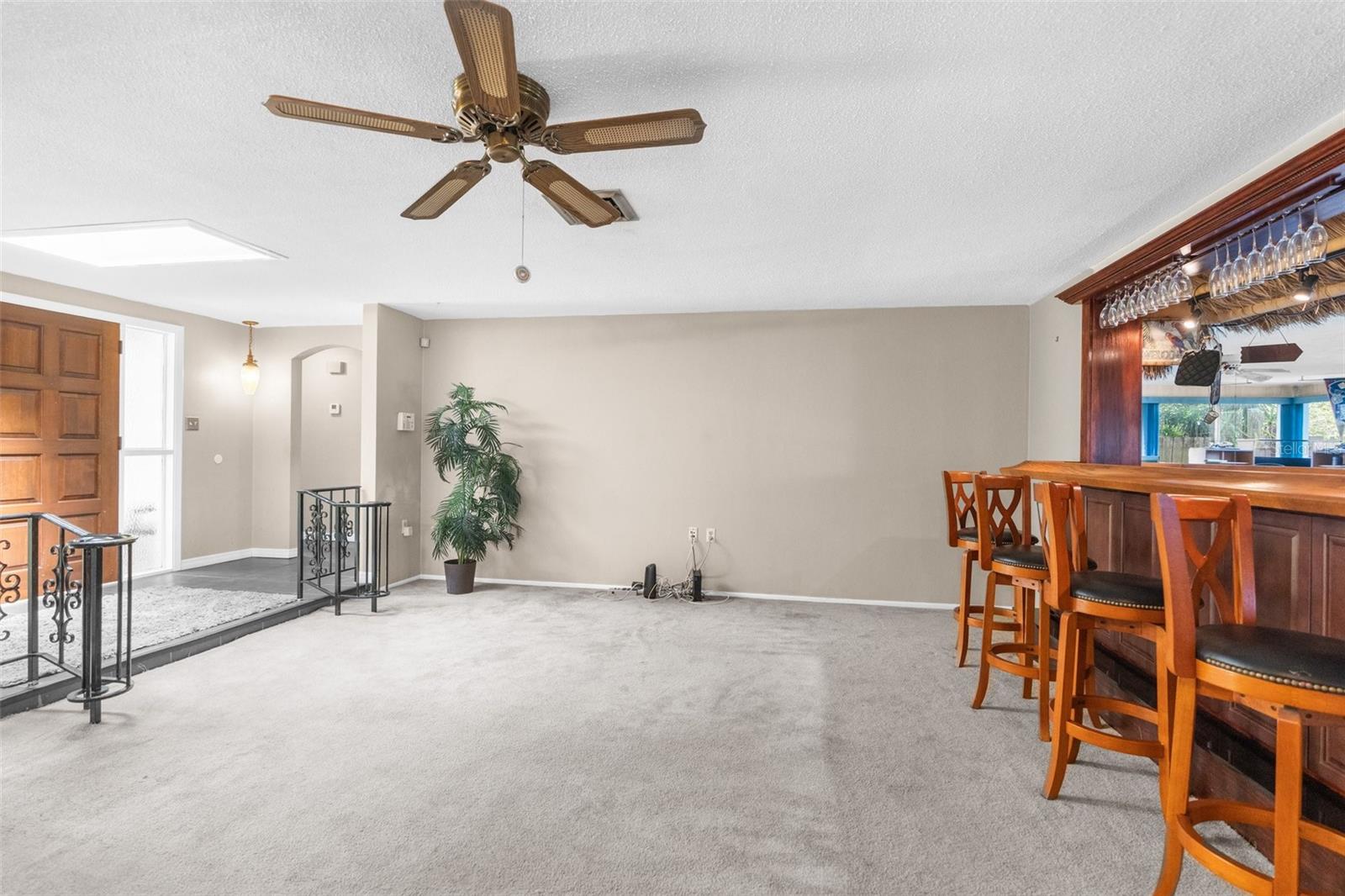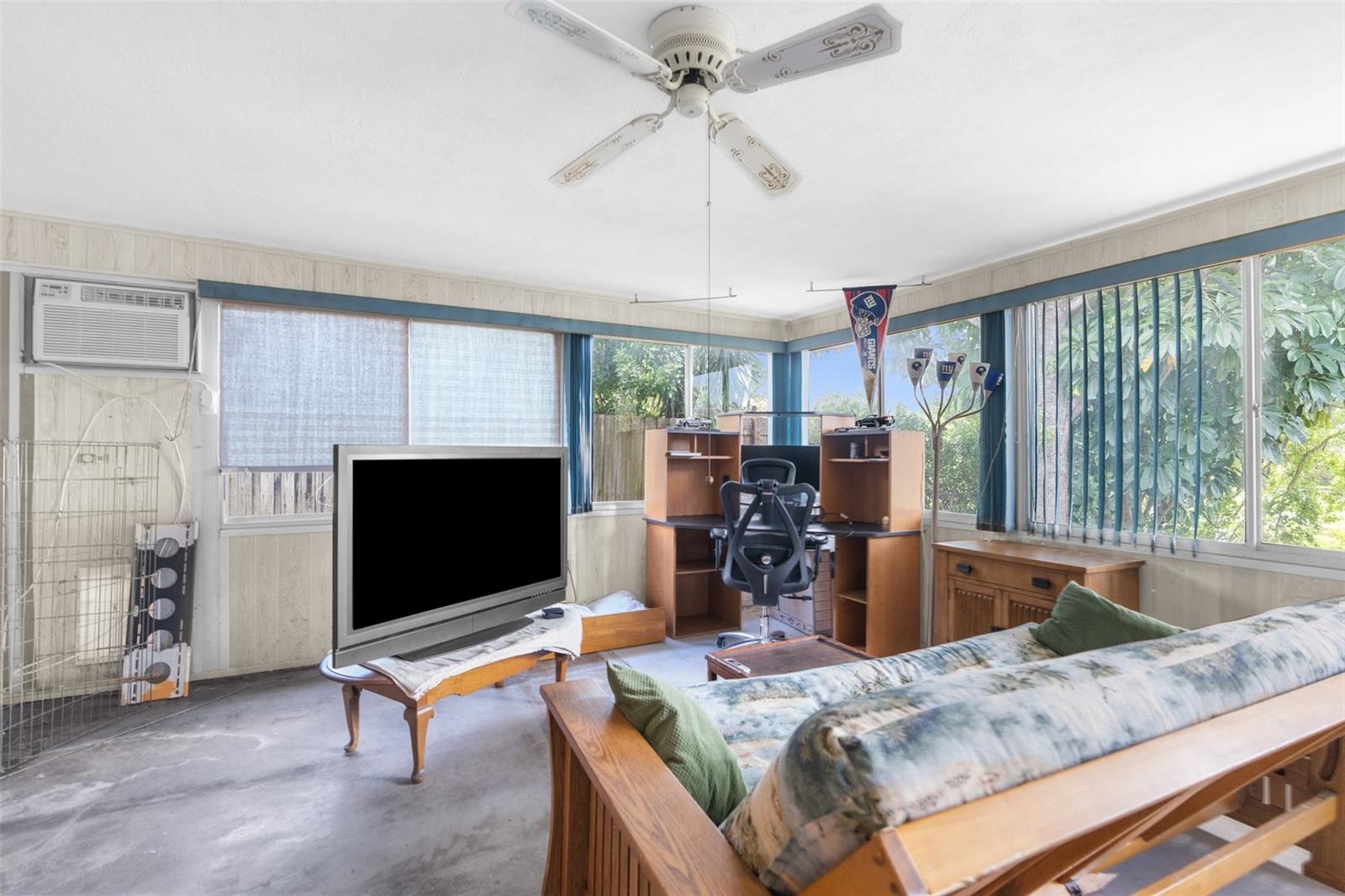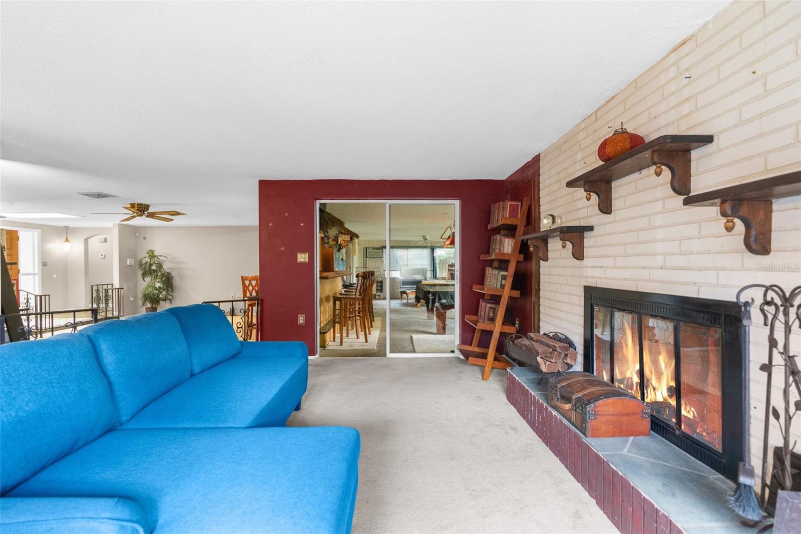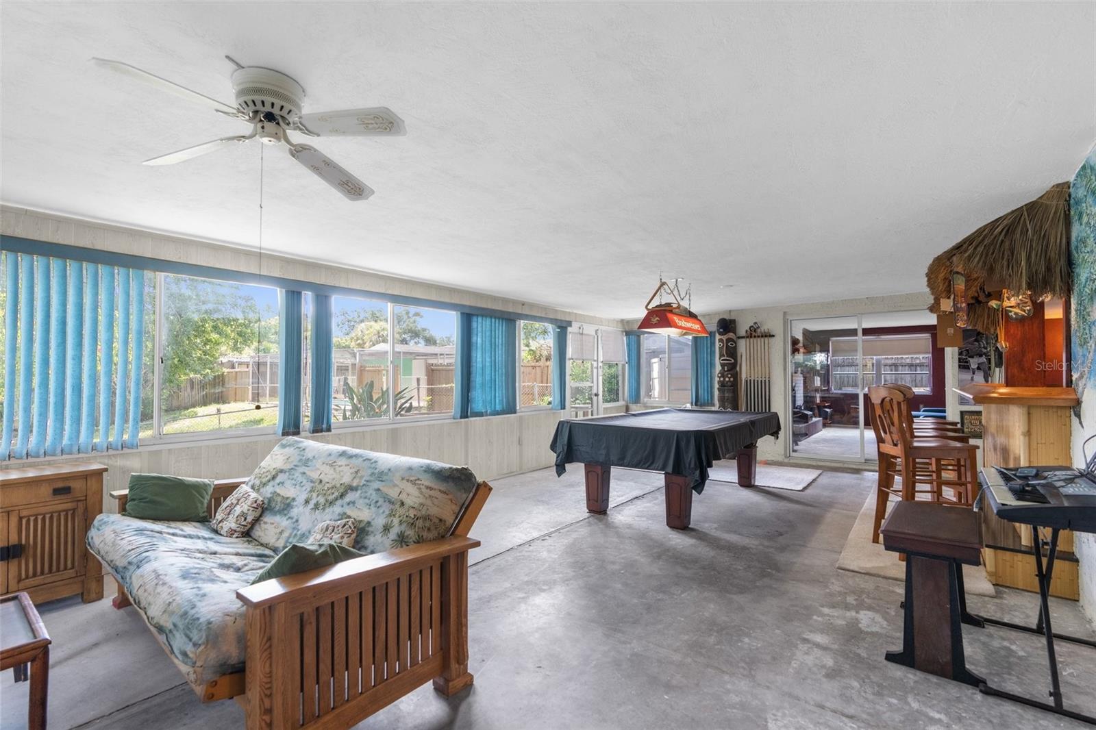 NEW ROOF GOING ON BEFORE CLOSING!! NEW GUTTERS GOING ON!! NEW WATER SOFTENER / FILTRATION SYSTEM. Pond Front! NO HOA! NO CDD! Welcome home to this 2-bedroom, 2-bathroom with a two-car garage and ample flex space. Upon entering through the screened front porch into the open foyer, you'll find a combined living room and dining room with a bar opening to a large flex space/game room. The kitchen overlooks the family room, which features a wood-burning fireplace. The primary bedroom, with an ensuite bathroom, is located towards the back of the home, while the secondary bedroom is towards the front, with the second bathroom nearby. The backyard is shaded with mature trees and offers a pond view. The property also boasts plenty of parking with a two-car driveway and circular drive. It is conveniently located close to medical facilities, restaurants, shopping, and entertainment.