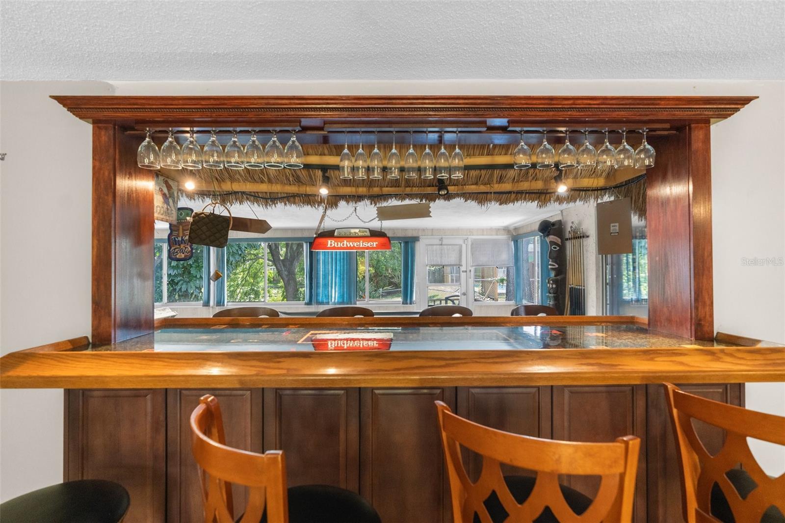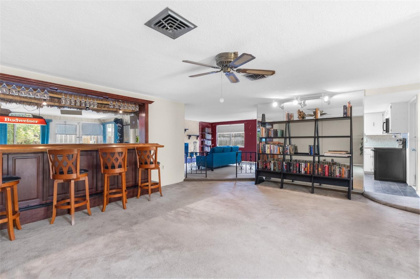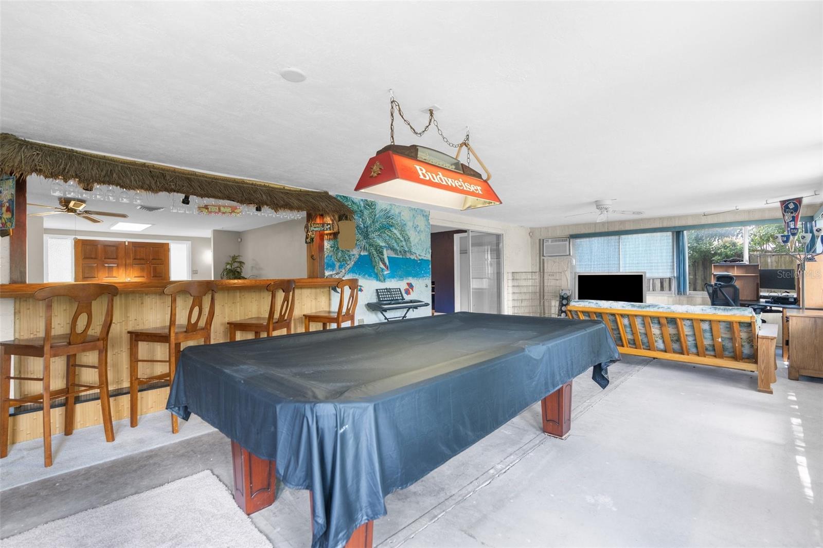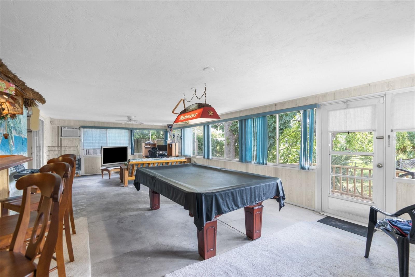 NEW ROOF GOING ON BEFORE CLOSING!! NEW GUTTERS GOING ON!! NEW WATER SOFTENER / FILTRATION SYSTEM. Pond Front! NO HOA! NO CDD! Welcome home to this 2-bedroom, 2-bathroom with a two-car garage and ample flex space. Upon entering through the screened front porch into the open foyer, you'll find a combined living room and dining room with a bar opening to a large flex space/game room. The kitchen overlooks the family room, which features a wood-burning fireplace. The primary bedroom, with an ensuite bathroom, is located towards the back of the home, while the secondary bedroom is towards the front, with the second bathroom nearby. The backyard is shaded with mature trees and offers a pond view. The property also boasts plenty of parking with a two-car driveway and circular drive. It is conveniently located close to medical facilities, restaurants, shopping, and entertainment.
