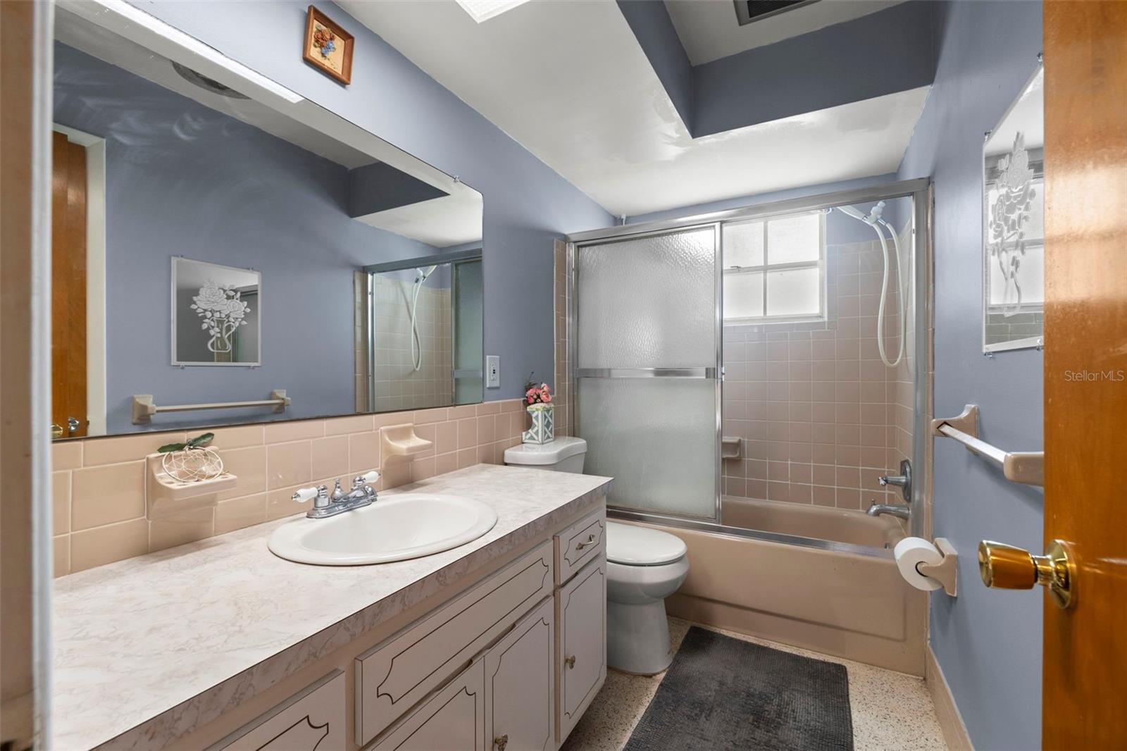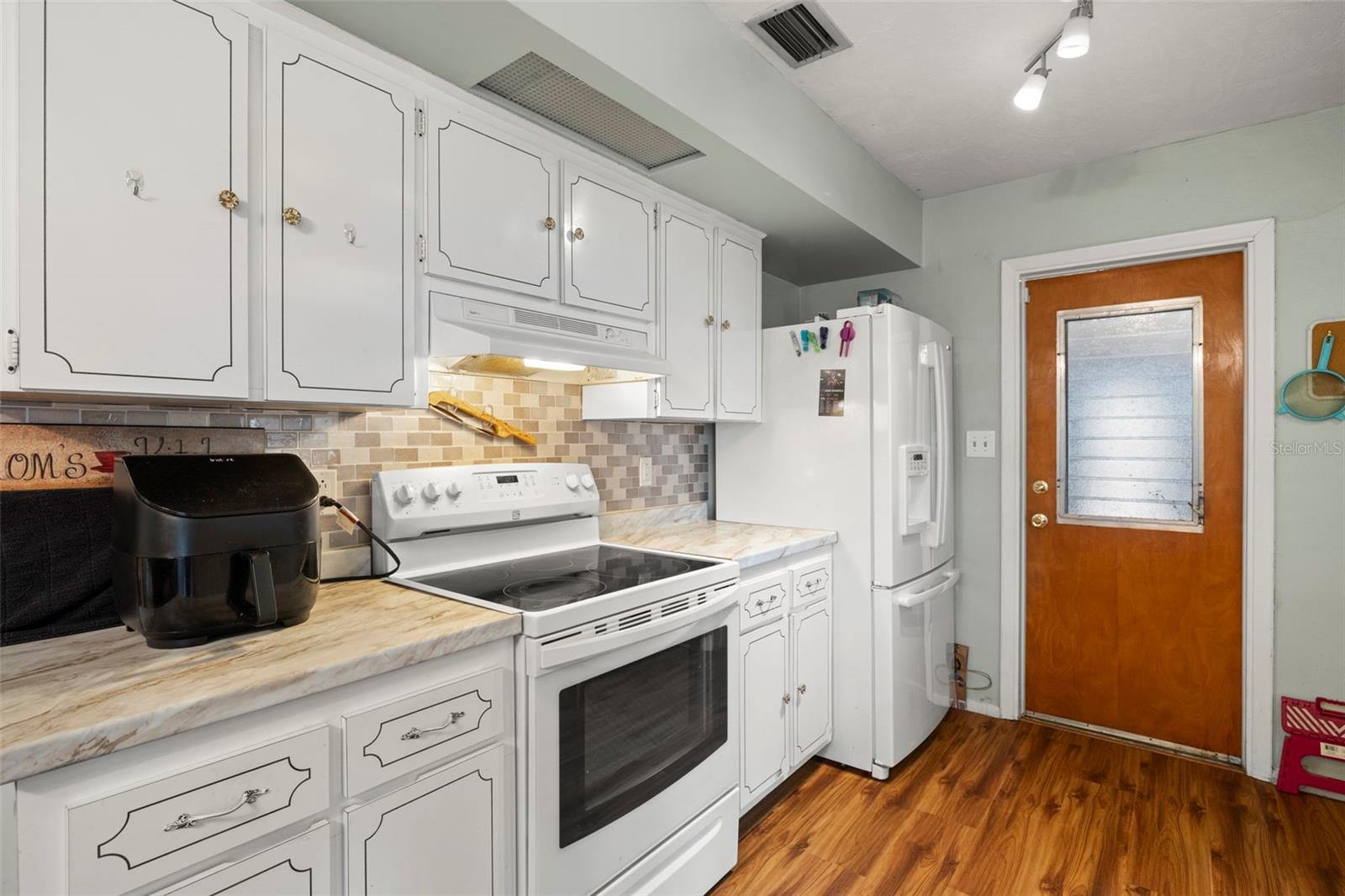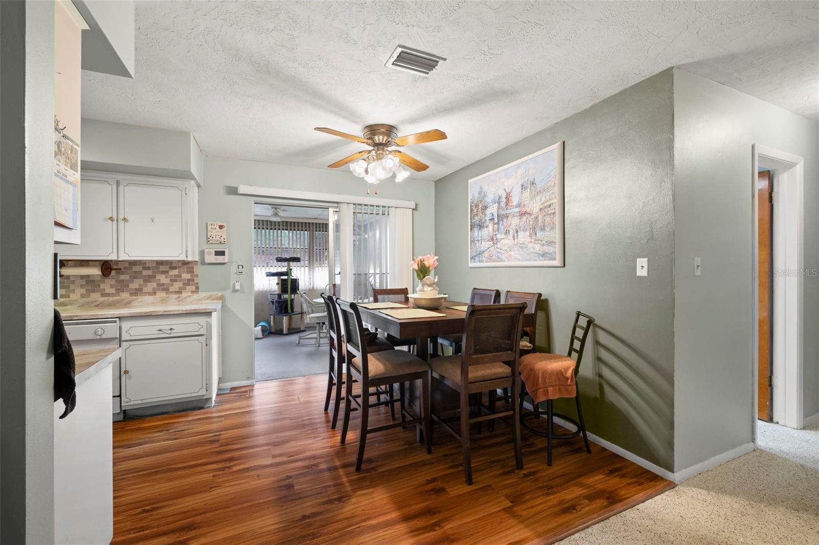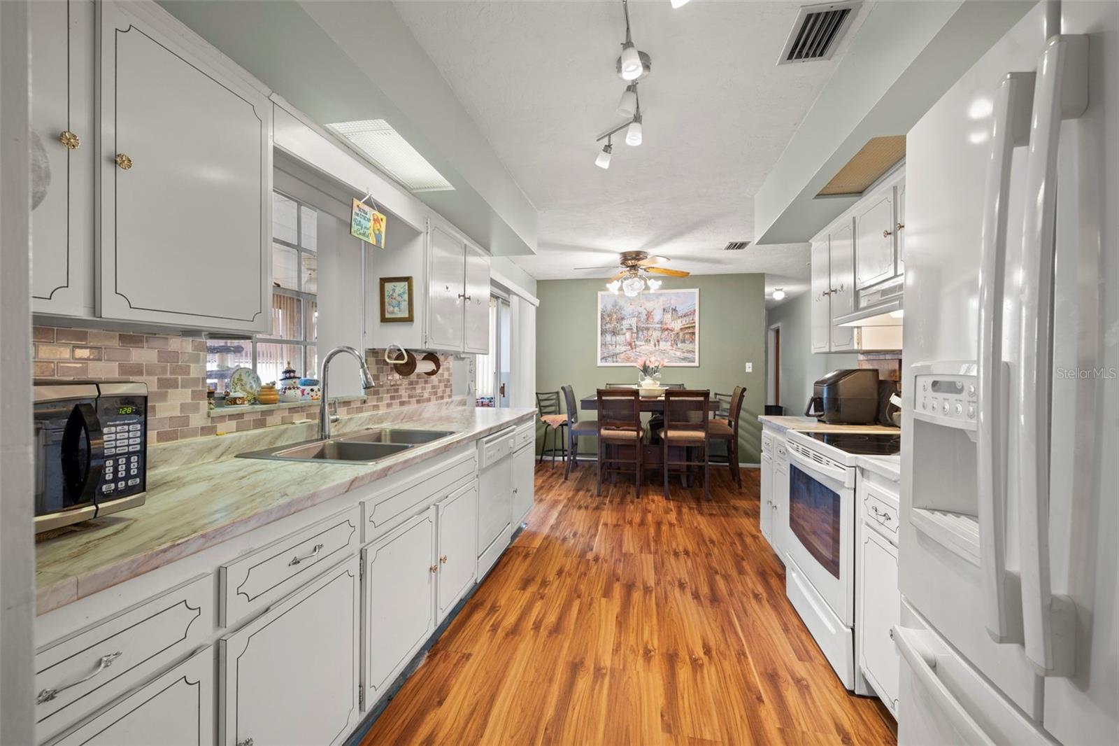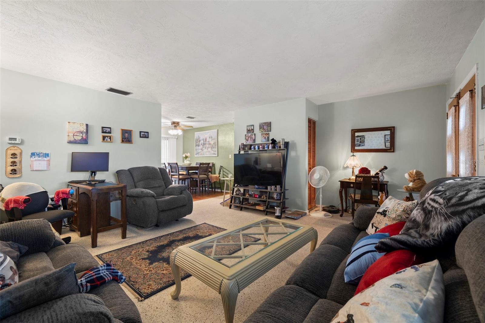 Cute 2 Bedrooms, 2 Bathrooms, 1 Car Garage, Plus Large Bonus Room Home is Move In Ready! Double Front Doors enter into Living Room with Terrazzo Flooring. Kitchen is spacious with a lot of Counter Tops & Cabinets and Open to the Dining Area. Sliders lead to Bonus Room / Lanai. Primary Bedroom has ensuite Bathroom & Walk In Closet. Additional Bedroom and Bathroom with Tub. Located at the end of the street with a Large Fenced Back Yard. Roof installed in 2018. No Flood Zone & No HOA. Short drive to Restaurants, Shopping, Parks, & Hudson Beach. This Is Paradise!