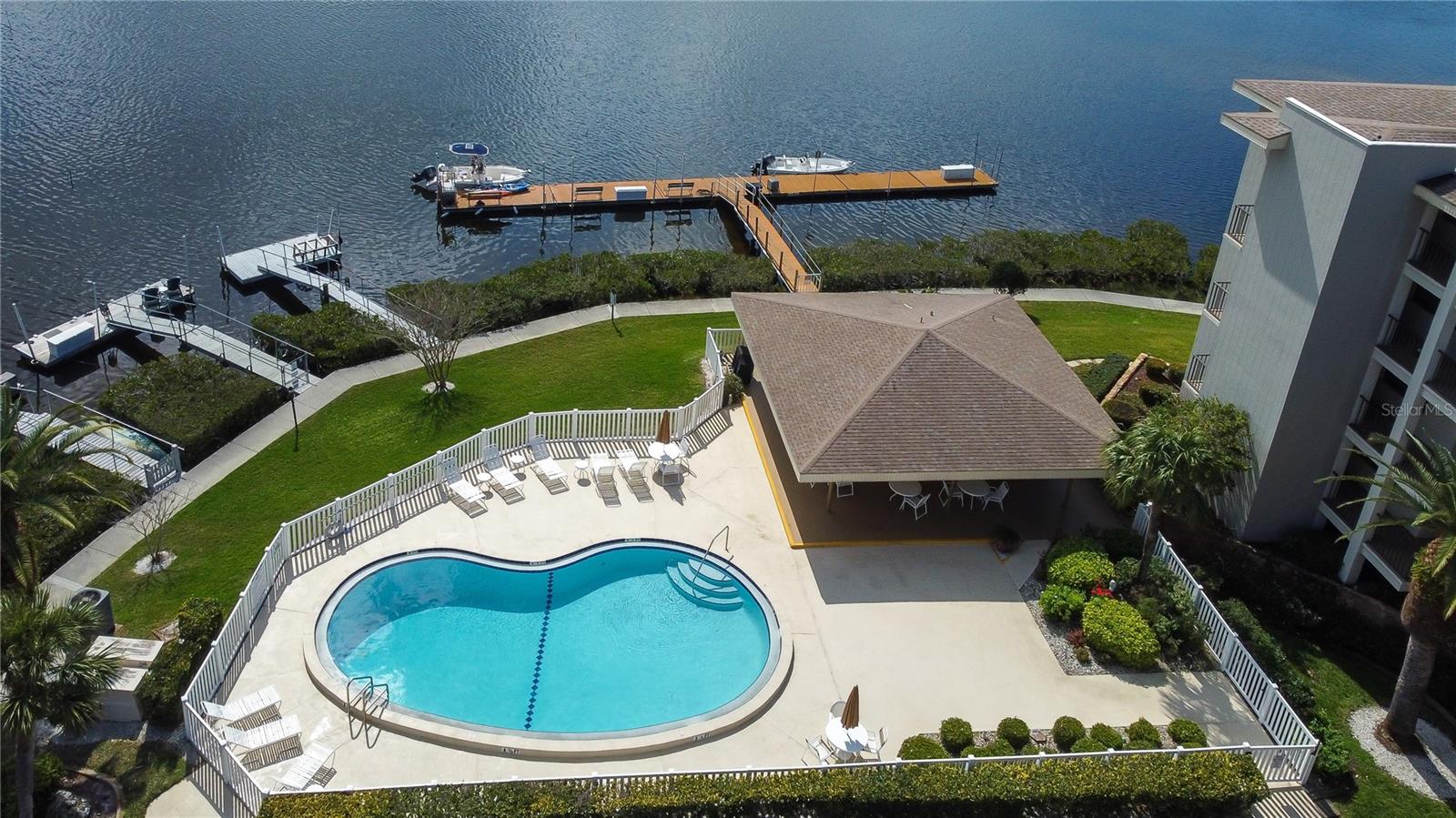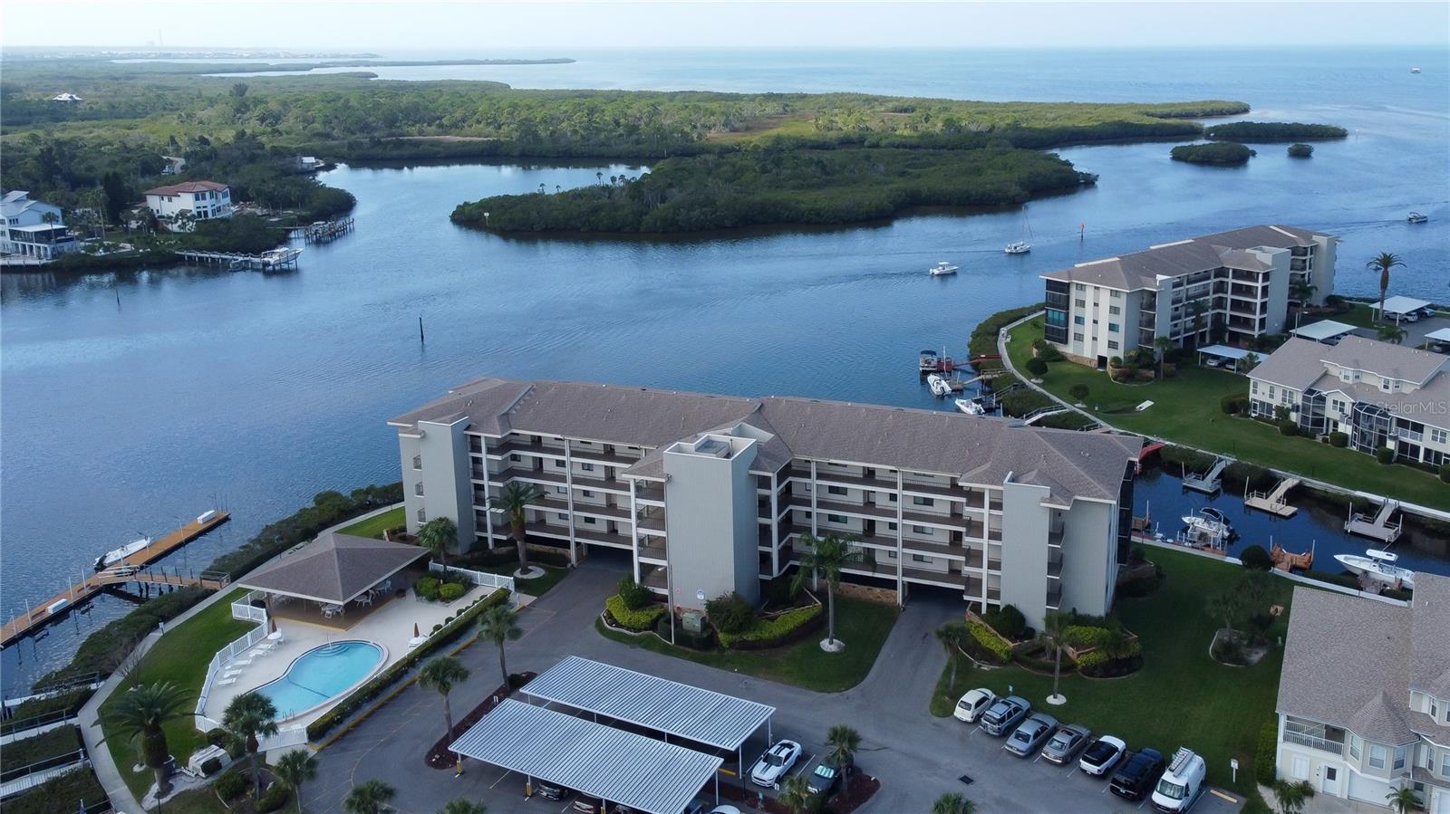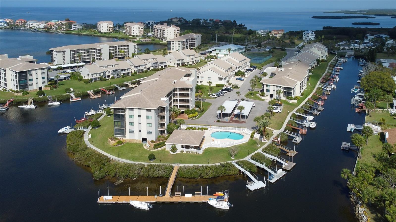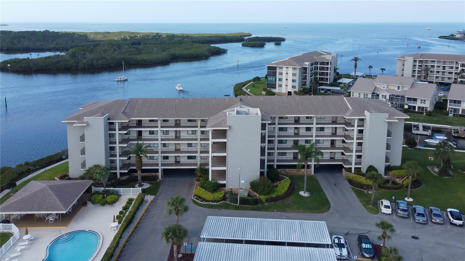 Welcome to your dream Florida retreat! This 2-bedroom, 2-bathroom condo is the epitome of coastal living, offering you a slice of the Florida life right on the Gulf of Mexico. From the moment you step inside, you'll be captivated by the stunning views and the host of amenities that make this place the ultimate destination. This condo has an open floor plan that was freshly painted and creates a spacious feel with an abundance of natural light. The kitchen boasts wood cabinets, and granite countertops! The combo dining- living room is perfect for relaxing and entertaining. Stay cool and comfortable year-round with a brand-new air conditioning system installed in October 2023 to enjoy worry-free climate control. DUES cover flood and hazard insurance on building, escrow for roof, basic cable, trash, internet, grounds care and exterior of building, pool care, 24/7 gate guard, tennis, pickleball, waterfront boardwalk, fishing pier, two pools, new clubhouse with fitness room, amazing library, game tables, card/game room. Close to beaches, shopping, restaurants, and great schools! This condo is where your Florida dreams come true. With the serene Gulf as your backdrop and an abundance of amenities at your fingertips, you'll savor every moment here! Don't miss this opportunity! make it your own and live the Florida lifestyle you've always envisioned. PHASE 1 OWNERS ARE ELIGIBLE TO PURCHASE A DOCK. DOCKS ARE AVAILABLE WITH A SEPARATE SALE! NO PETS (UNLESS SERVICE ANIMAL OR ESA AND NOT AGE RESTRICTED.