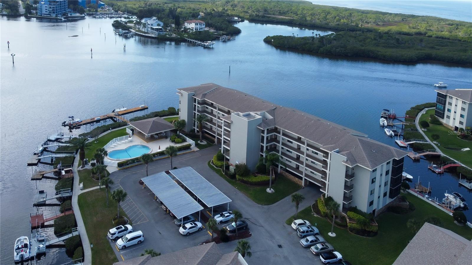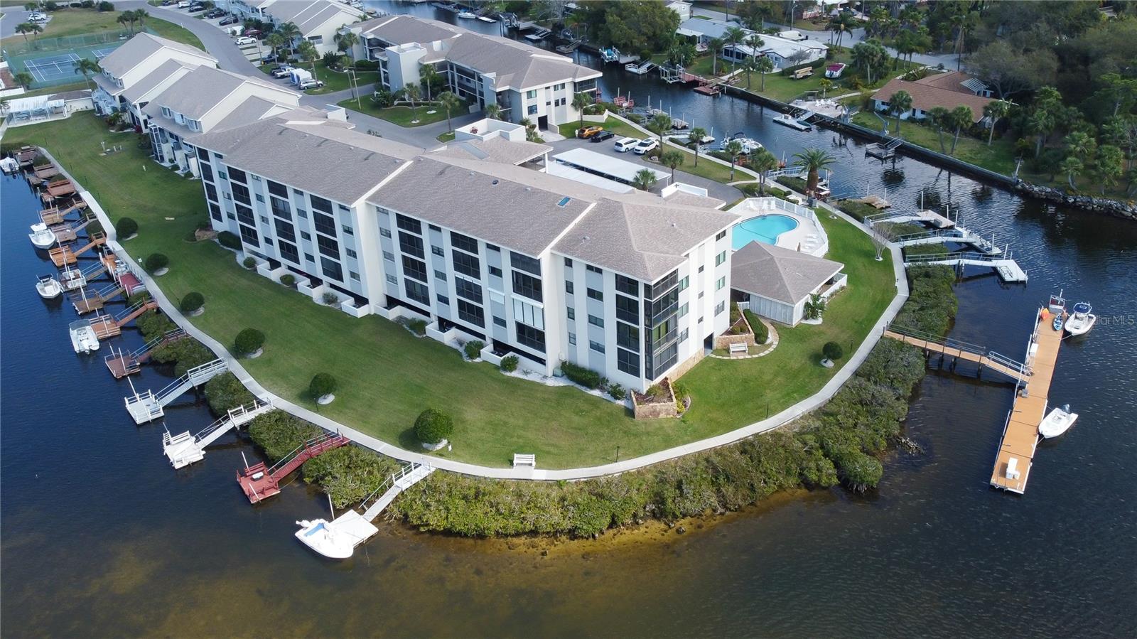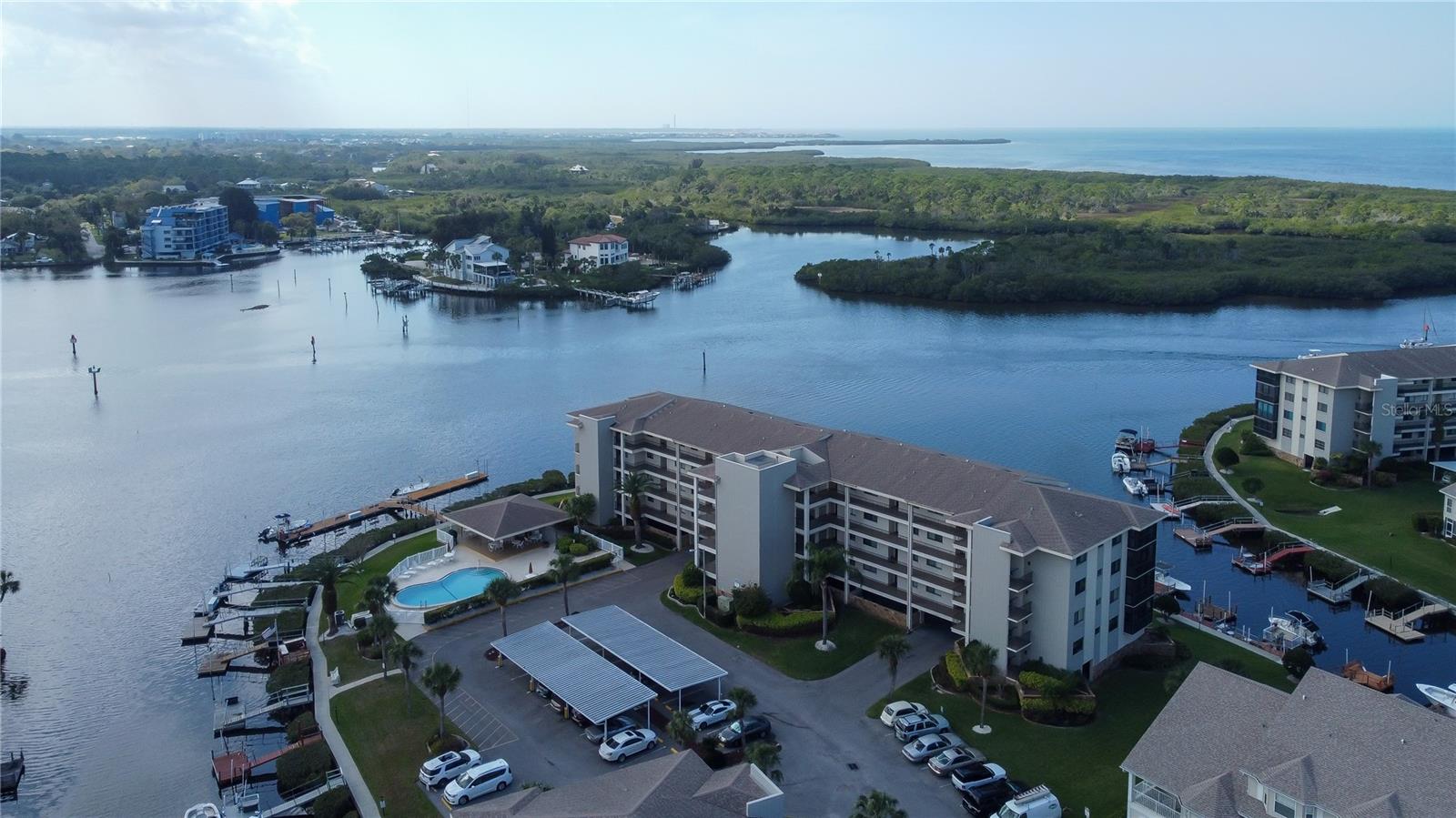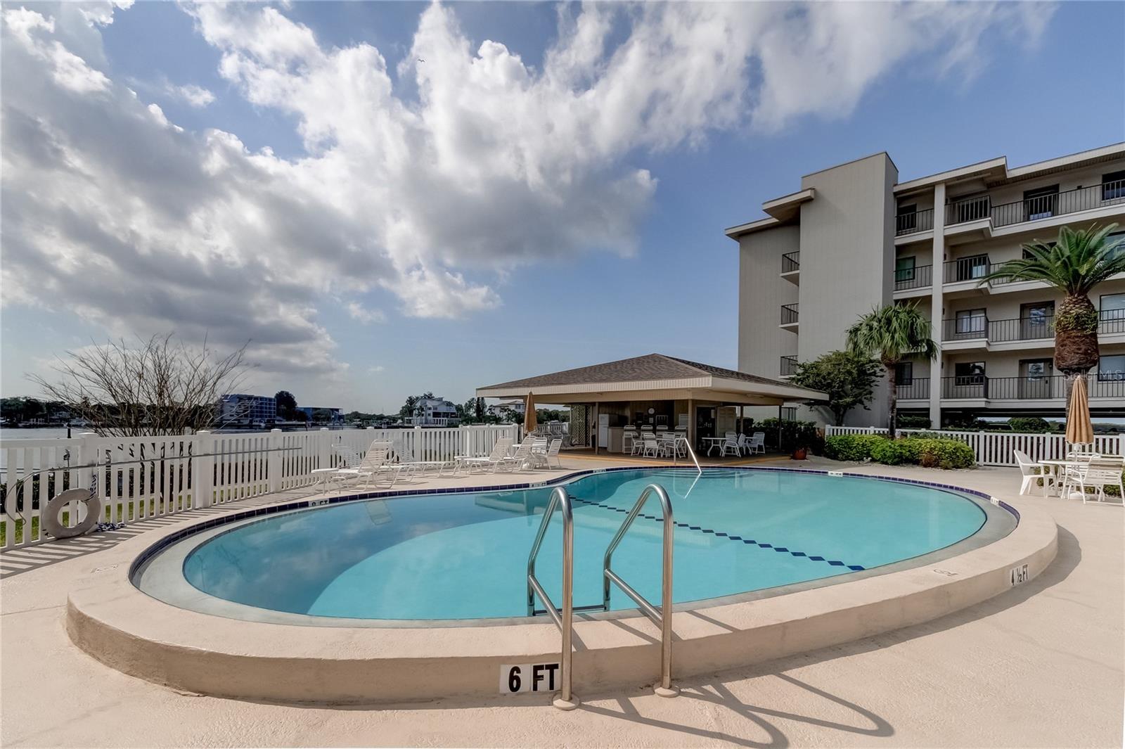 Welcome to your dream Florida retreat! This 2-bedroom, 2-bathroom condo is the epitome of coastal living, offering you a slice of the Florida life right on the Gulf of Mexico. From the moment you step inside, you'll be captivated by the stunning views and the host of amenities that make this place the ultimate destination. This condo has an open floor plan that was freshly painted and creates a spacious feel with an abundance of natural light. The kitchen boasts wood cabinets, and granite countertops! The combo dining- living room is perfect for relaxing and entertaining. Stay cool and comfortable year-round with a brand-new air conditioning system installed in October 2023 to enjoy worry-free climate control. DUES cover flood and hazard insurance on building, escrow for roof, basic cable, trash, internet, grounds care and exterior of building, pool care, 24/7 gate guard, tennis, pickleball, waterfront boardwalk, fishing pier, two pools, new clubhouse with fitness room, amazing library, game tables, card/game room. Close to beaches, shopping, restaurants, and great schools! This condo is where your Florida dreams come true. With the serene Gulf as your backdrop and an abundance of amenities at your fingertips, you'll savor every moment here! Don't miss this opportunity! make it your own and live the Florida lifestyle you've always envisioned. PHASE 1 OWNERS ARE ELIGIBLE TO PURCHASE A DOCK. DOCKS ARE AVAILABLE WITH A SEPARATE SALE! NO PETS (UNLESS SERVICE ANIMAL OR ESA AND NOT AGE RESTRICTED.