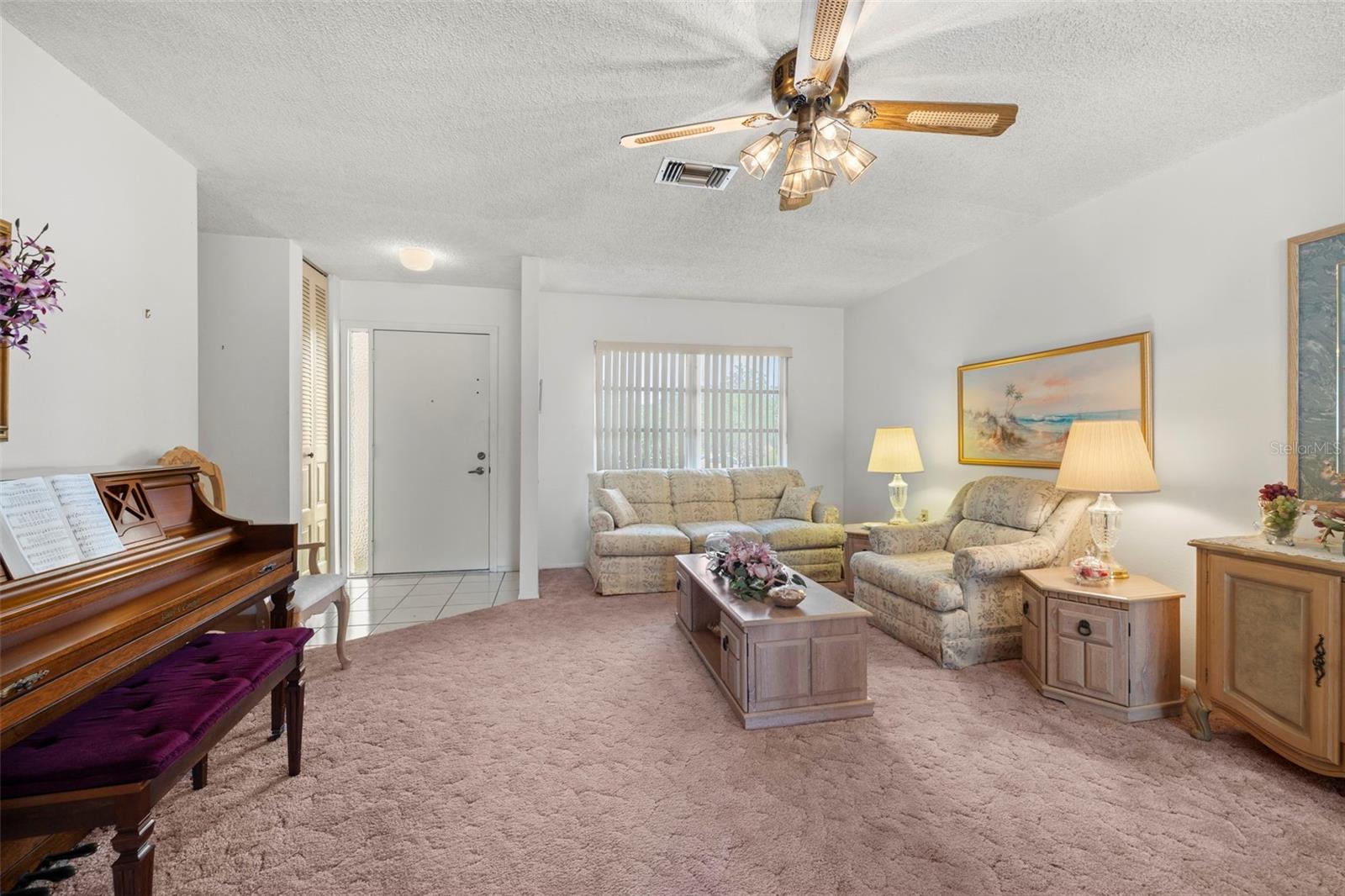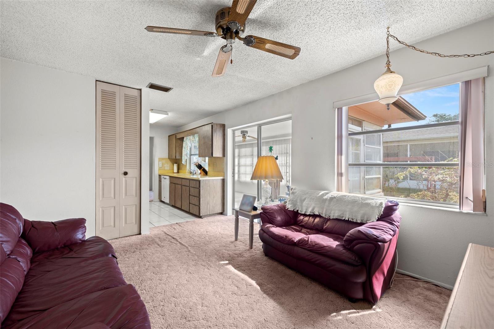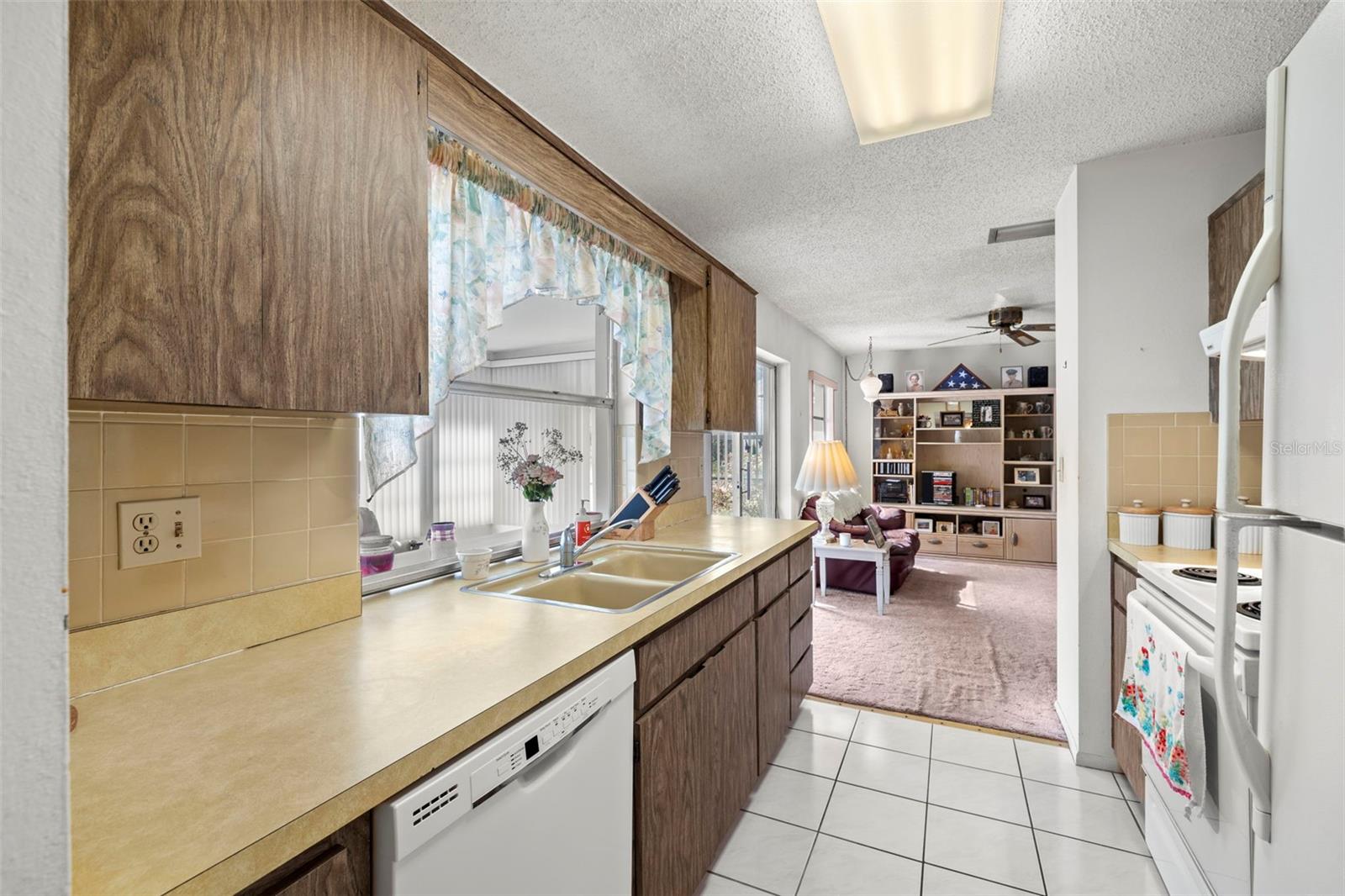 PRICE REDUCED Spacious 2 bedroom, 2 bath 2 car garage home, with split floor plan & huge sunroom. Located in Timber Oaks 55+ community, with a community center/clubhouse that is loaded with many great activities and facilities. Upon entering the home you are greeted by the large living room with the dining room behind it. The master bedroom is quite expansive, as is its walk in closet. The bedroom features 3 windows providing an abundance of natural light. The galley style kitchen is well located between the dining room and family room which both offer sliding glass doors accessing the huge tiled florida/sun room, that is wrapped by windows on 3 sides and a pass-thru bar/window from the kitchen. There is enough space in this room for both a pool table and a comfortable sitting area. Very affordable HOA fee of $50.00 per month that includes 24/7 365 days a year access to many features of the community center/clubhouse, including but not limited to: Pool, Patio, spa, indoor & outdoor pickleball courts, tennis courts, bocce ball, shuffleboard courts, billiard tables, ping pong, sewing & arts and craft room,.exercise/fitness center, business center, a library, & many scheduled activities. Walking & biking sidewalks and trails throughout the community. Great location! Near to many shopping & dining options nearby, including a Publix & Home Depot in very close proximity. Come and see it at your earliest opportunity.