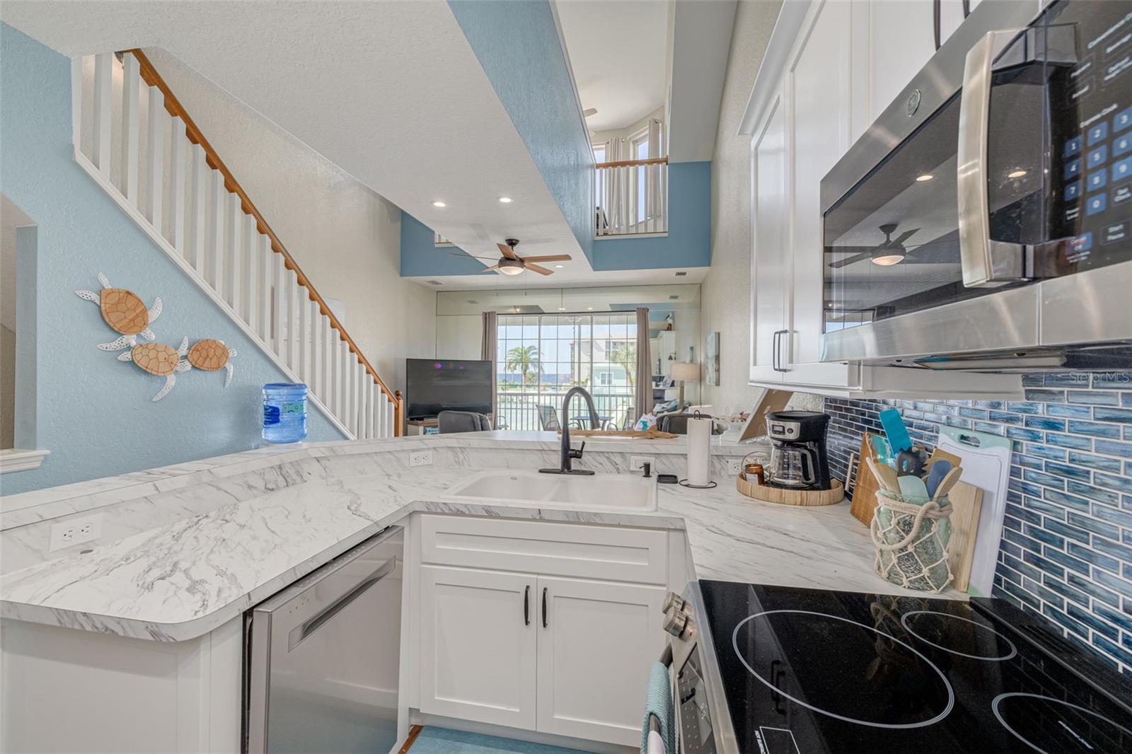 Short Sale Approved. Resort Style Living in Sand Pebble Coastal Community. This waterfront townhome features both sunrise and stunning sunset views. Bring the water toys, private deeded boat dock directly behind the home with quick access to the Gulf of Mexico. The home is just minutes from several waterfront restaurants, Historic Downtown New Port Richey, Islands, and Marinas. Updated kitchen with new stainless steel appliances, white craftsman-style cabinets, and beautiful glass backsplash. The main living area has a luxury vinyl plank. There are two bedrooms, with an additional sleeping loft/ home office on the third floor and two full bathrooms. The ground level has tandem parking with room for a golf cart, workshop, or game room. There is a great screen porch in the back for cookouts and entertaining on the water. SEE FLOOR PLAN. The open floor plan on the 2nd level features a front balcony, living room, dining room, kitchen, laundry, bathroom, and large bedroom. The bedroom has double closets and a bay window with sunrise views. The 3rd level has a LARGE SLEEPING LOFT/ HOME OFFICE with an amazing sunset view and a large main bedroom with sunrise views from the fully enclosed porch/office or sitting room. The community features 24-hour security, a boat ramp, a gorgeous Key West-style clubhouse with a fitness center, a swimming pool, tennis and pickleball courts, a putting green, a fishing pier, and a waterfront boardwalk. There are additional fees for kayak and trailer storage. You can go from your private dock, which is just minutes to the Cote River and the Gulf of Mexico. There are several boatable restaurants minutes away. You can access historic downtown New Port Richey by boat with docks along Sims Park. Great Islands and State Parks surround this area. ASSUMABLE MORTGAGE AT 5.250%