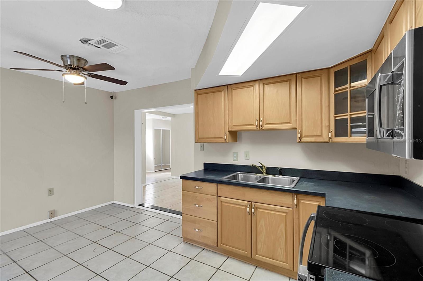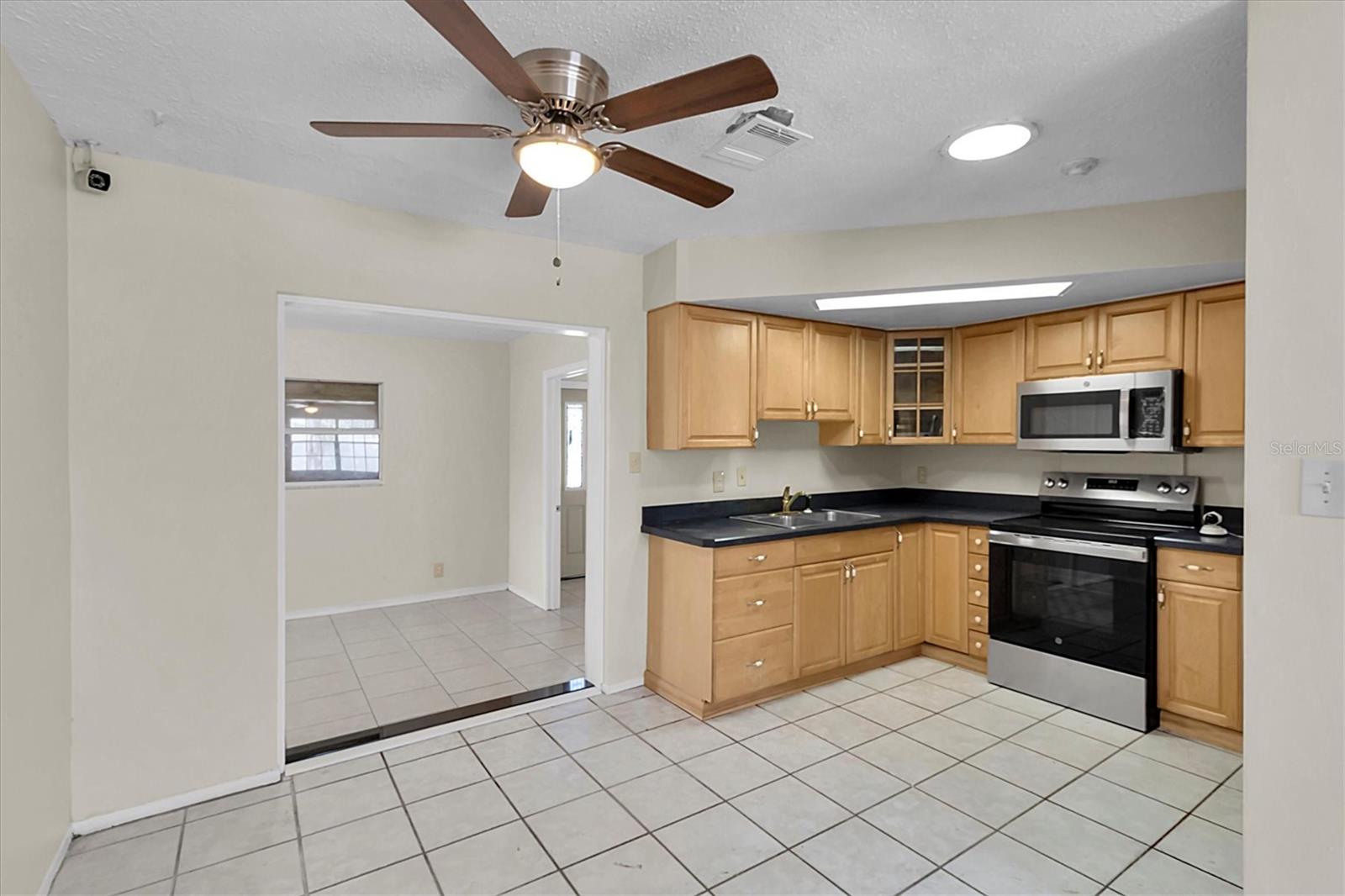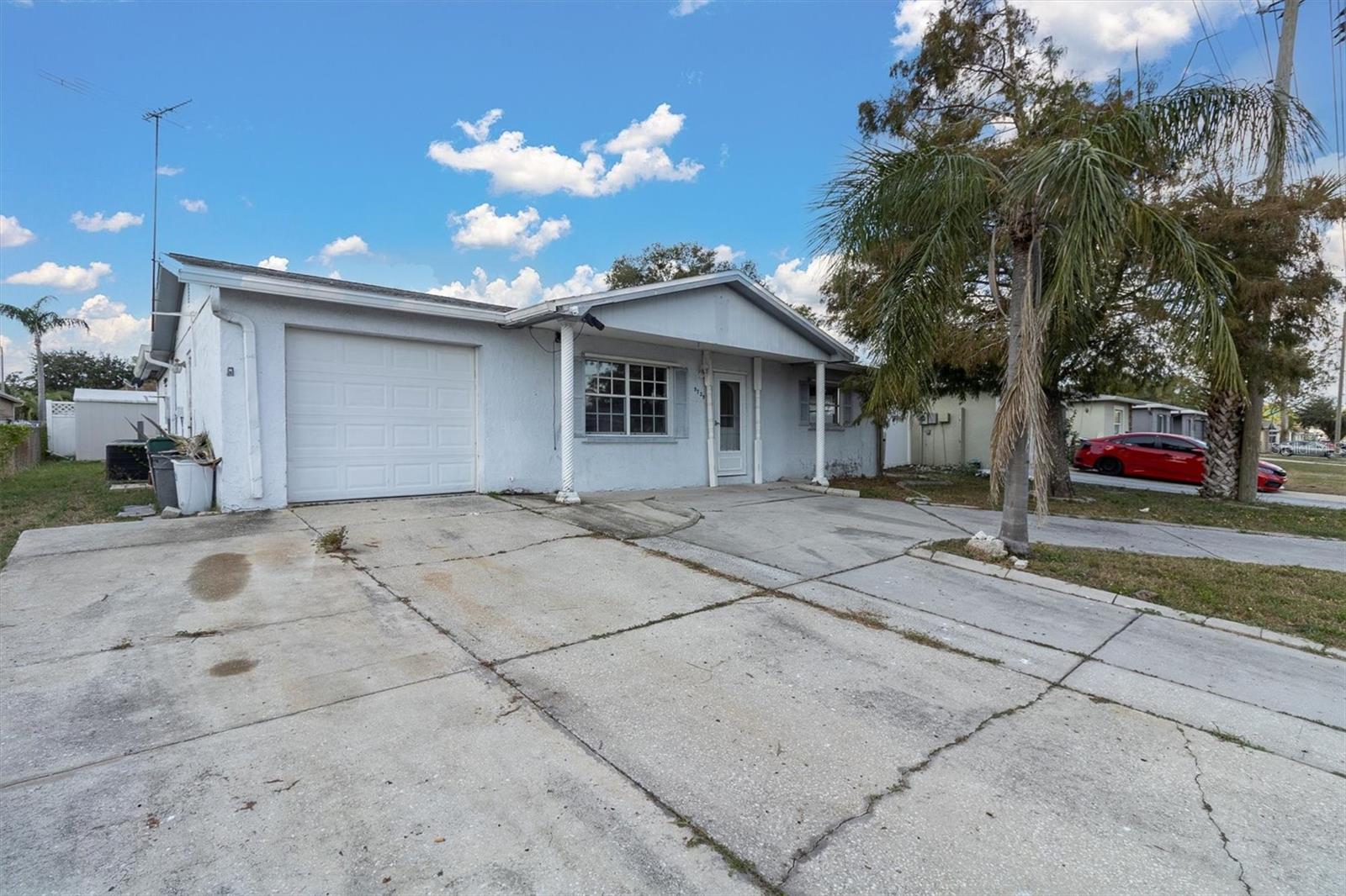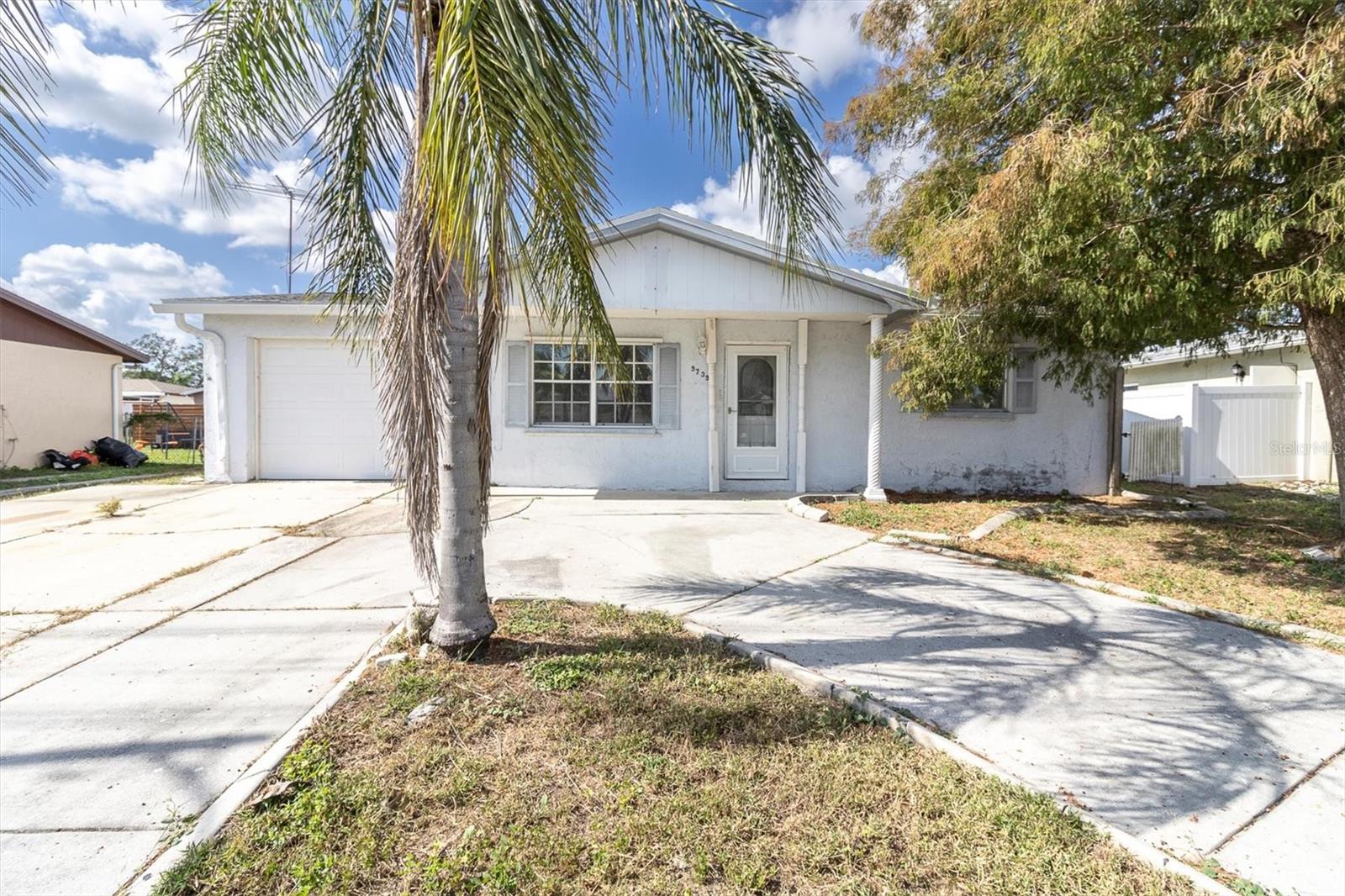3 bedroom, 2 bathroom, one-car garage home in Port Richey. NO FLOOD ZONE AND HIGH ABOVE SEA LEVEL! The widened circular driveway provides plenty of parking. Inside, you’ll find a freshly painted interior and easy-to-maintain ceramic tile flooring throughout. Natural light pours in through two skylights, enhancing the bright, airy feel of the home. Updates include all new ceiling fans, a brand-new stainless steel range, a new stainless microwave, and a large KitchenAid side-by-side refrigerator with a bottom freezer. Step outside to the expansive 370-square-foot screened porch with tiled flooring—ideal for entertaining family and friends. Plus, the large shed in the backyard stays, providing additional storage space. With a freshly painted interior, this home offers style and functionality. Located near Gulf View Square Mall, dining, shopping, beaches and entertainment, with convenient access to nearby schools. Needs a new roof.