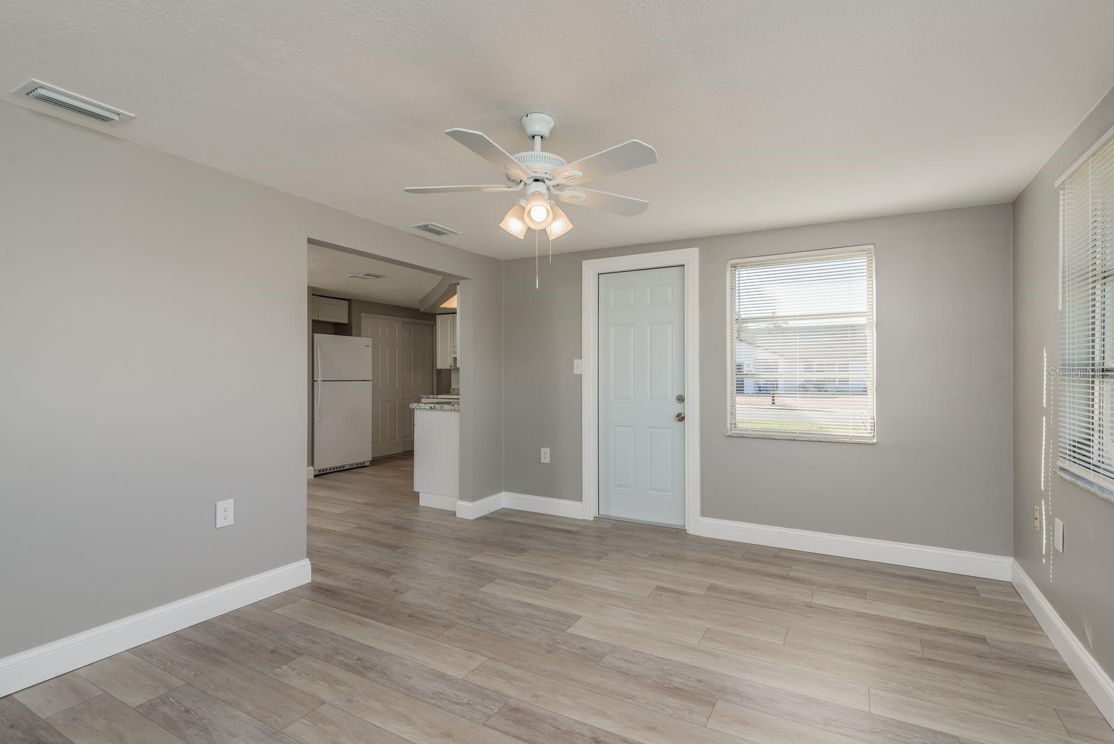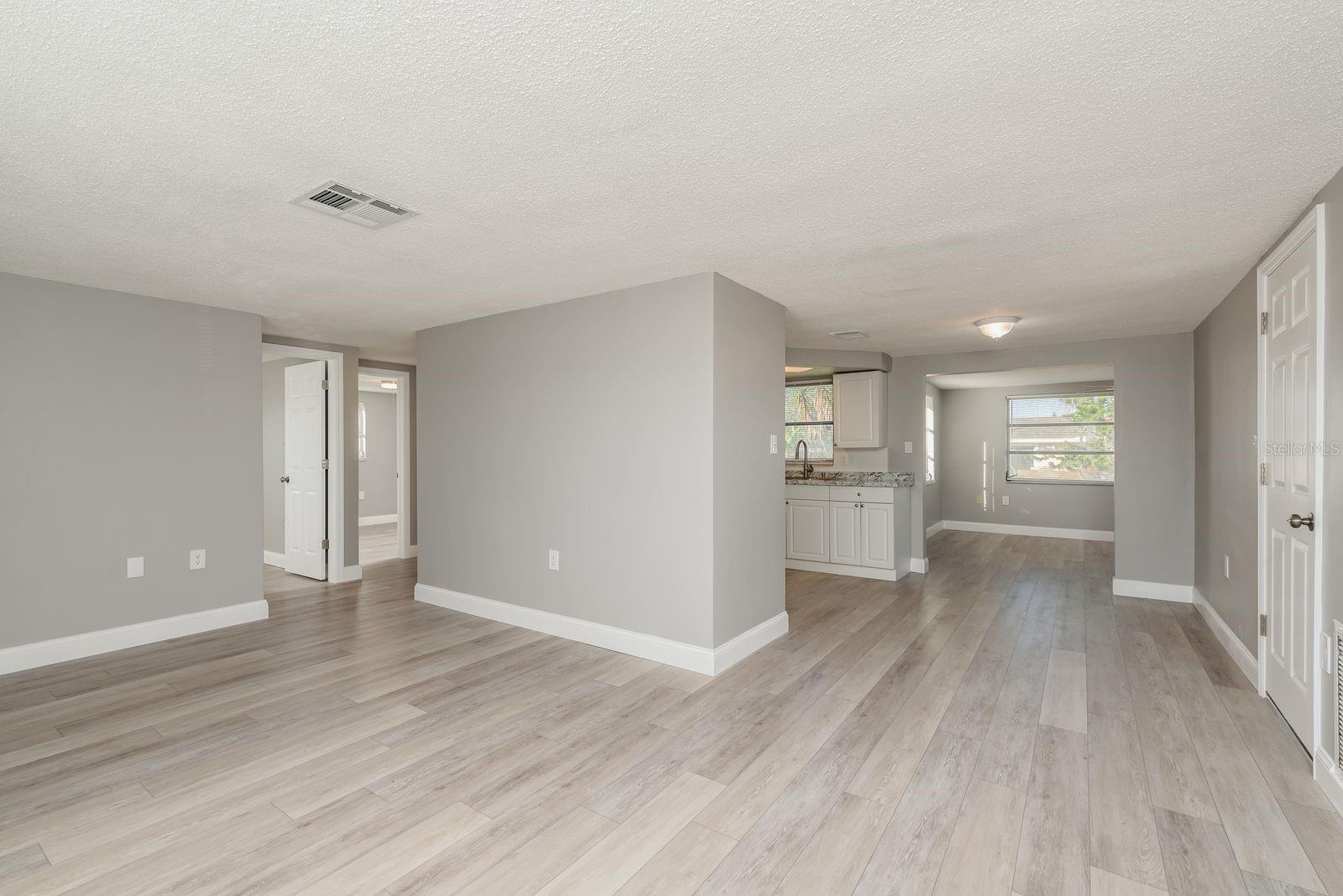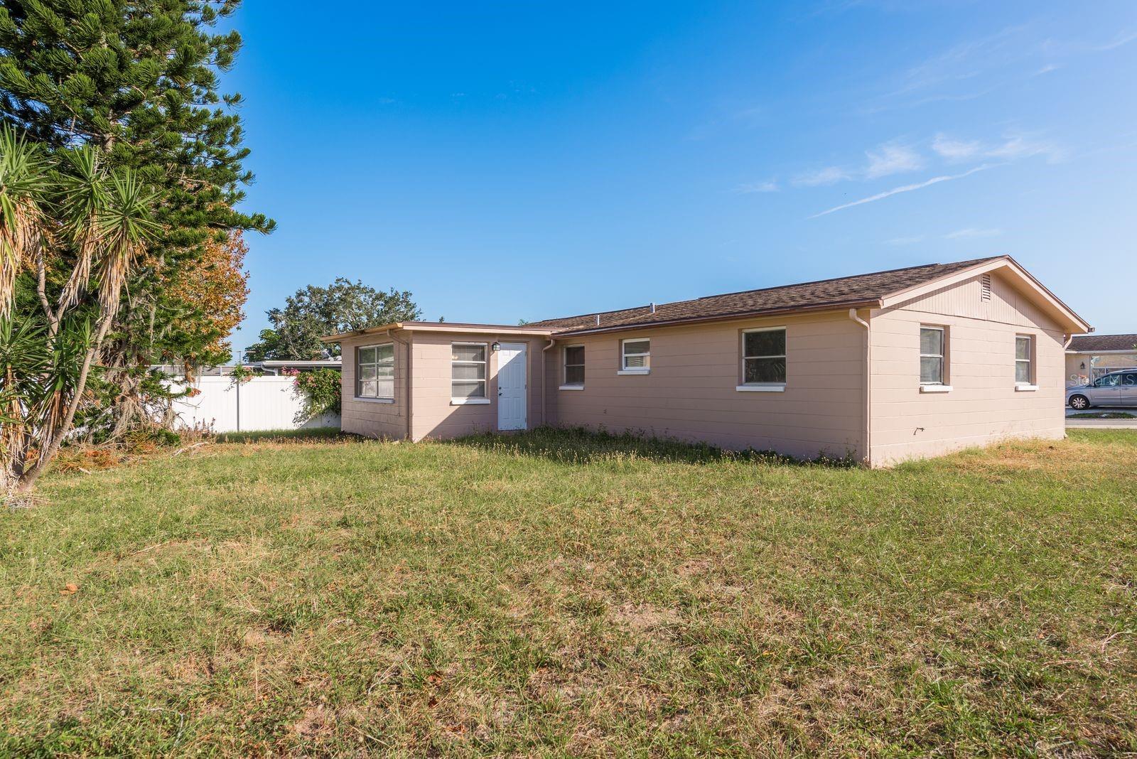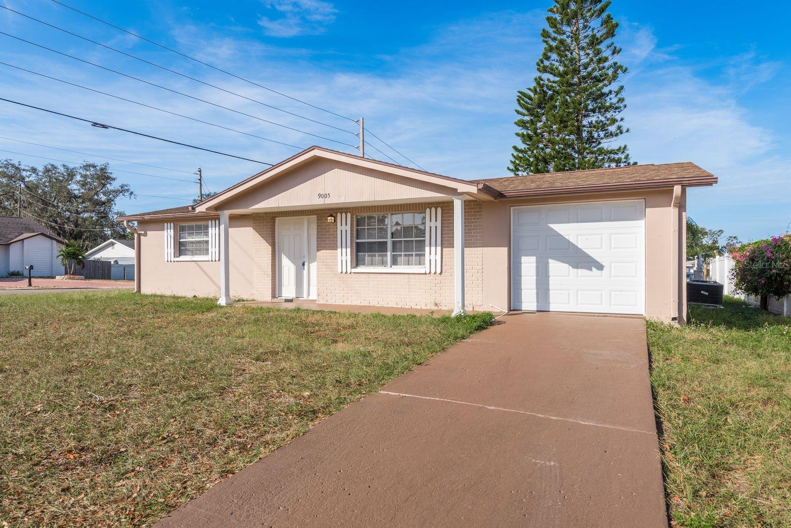 This beautifully renovated 2 Bedroom, 1 Bathroom, 1 car garage home is perfect for the first-time homebuyer. Located high & dry, on a corner lot with no flood insurance required! This home offers an open floorplan and is situated in a great neighborhood! The interior of the home has been freshly painted and features newly installed engineered hardwood flooring throughout, new fans and light fixtures. The kitchen has been completely redone and features new kitchen cabinets, new countertops, brand-new appliances and a large pantry. Spacious L-shaped living room and dining room. Large family/bonus room. The primary bedroom can easily accommodate a king-size bed. The guest bedroom is gracious in size. The bathroom features a new vanity. Large rear yard with plenty of room for a pool. Roof 2009, flat roof 2024, a/c 2017, garage and garage side door 2024. Centrally located with easy commutes to all the Tampa Bay area! Close to shopping, recreation, restaurants and parks. This is a must see!