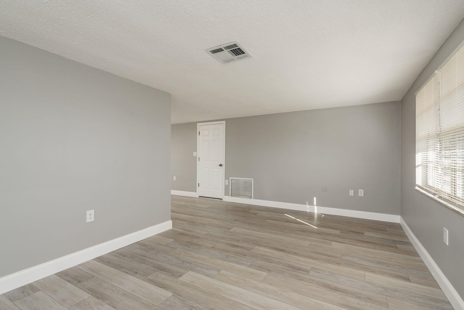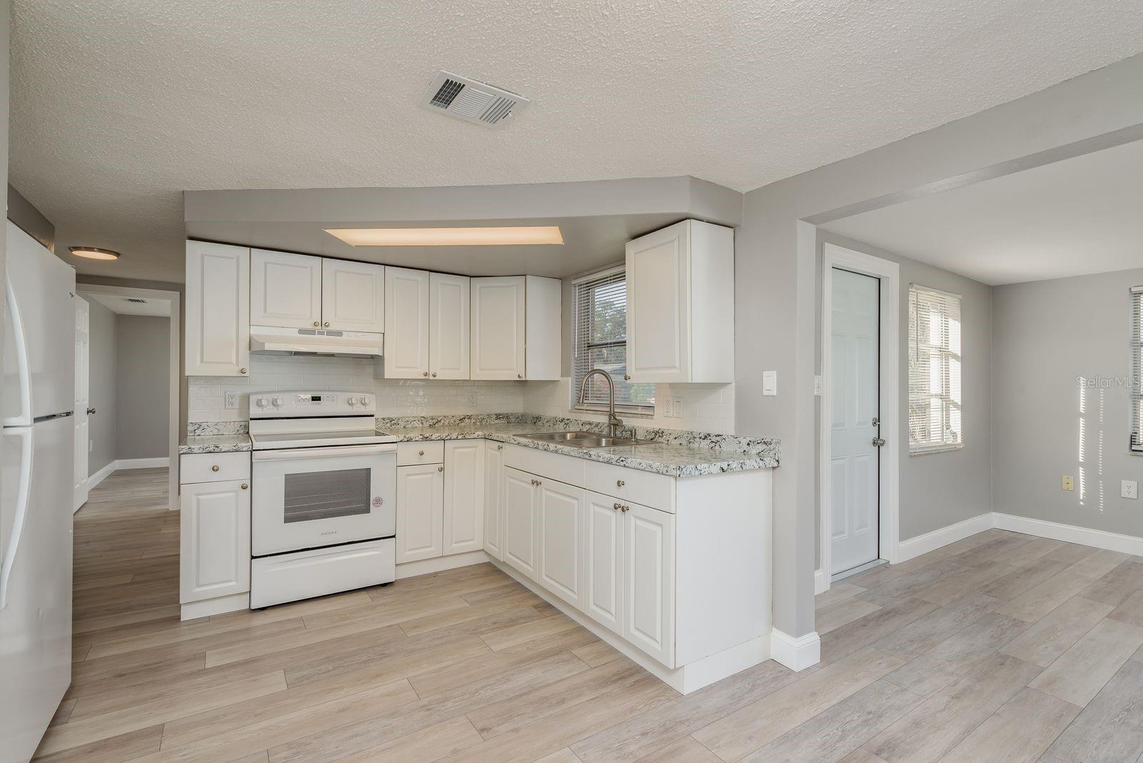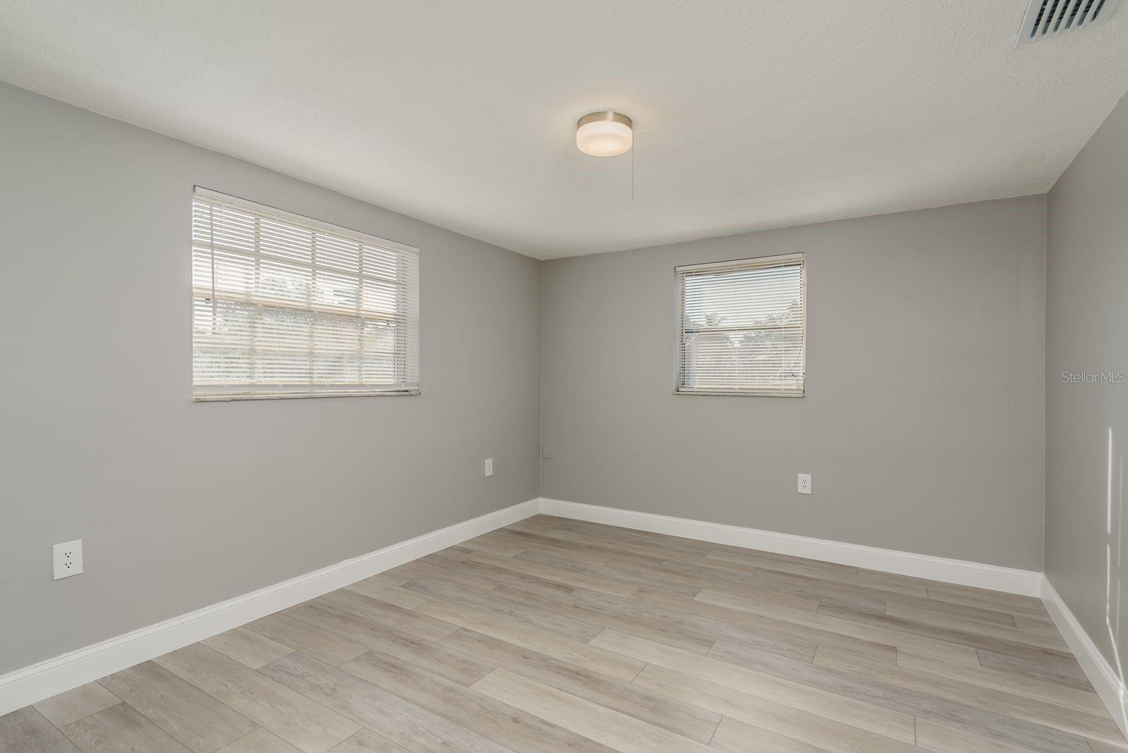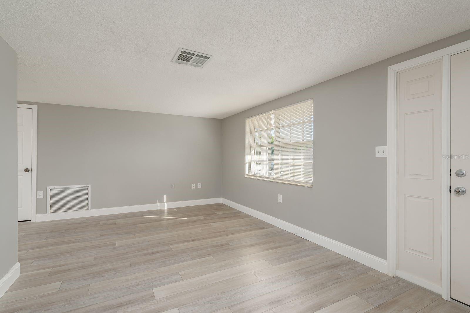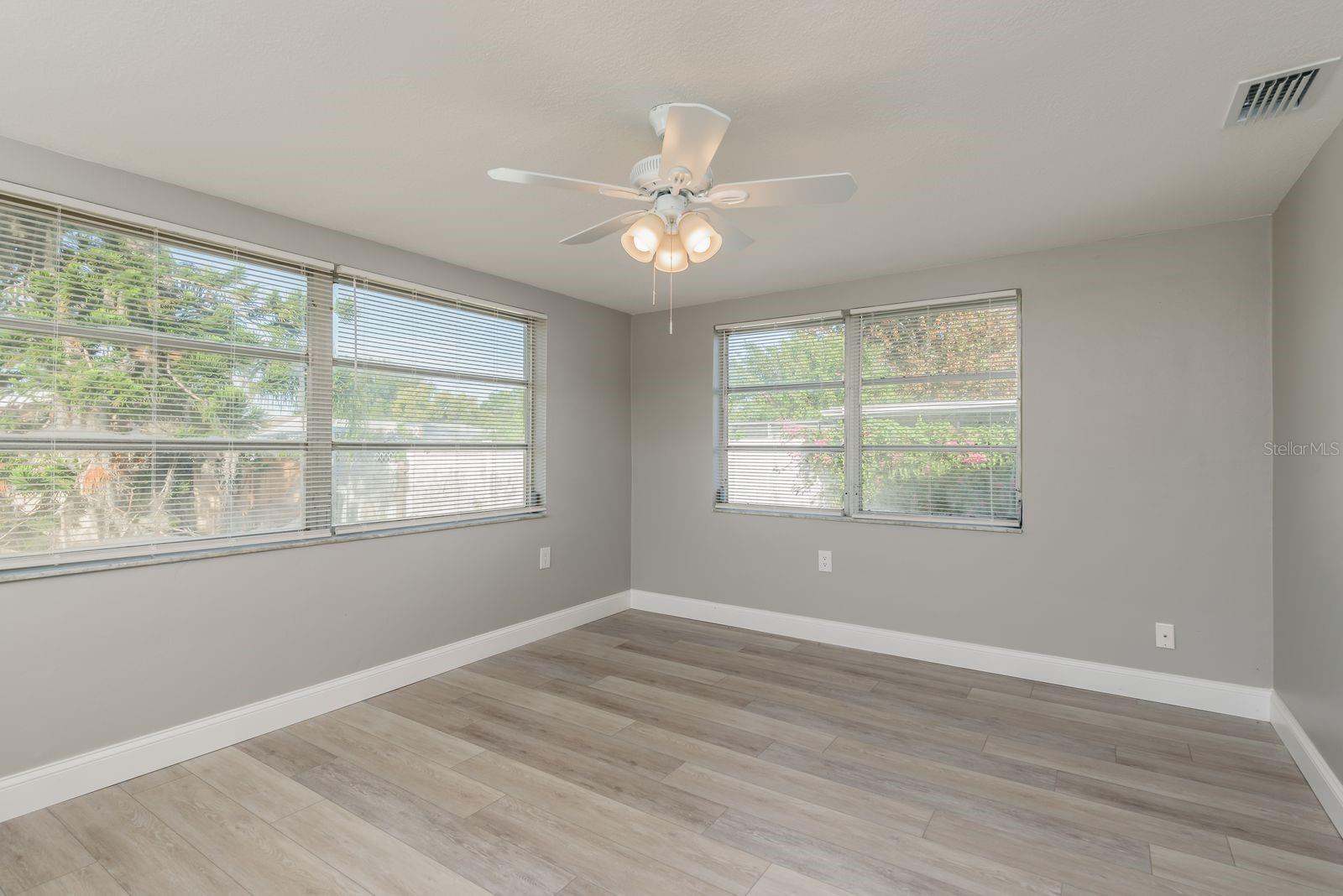 This beautifully renovated 2 Bedroom, 1 Bathroom, 1 car garage home is perfect for the first-time homebuyer. Located high & dry, on a corner lot with no flood insurance required! This home offers an open floorplan and is situated in a great neighborhood! The interior of the home has been freshly painted and features newly installed engineered hardwood flooring throughout, new fans and light fixtures. The kitchen has been completely redone and features new kitchen cabinets, new countertops, brand-new appliances and a large pantry. Spacious L-shaped living room and dining room. Large family/bonus room. The primary bedroom can easily accommodate a king-size bed. The guest bedroom is gracious in size. The bathroom features a new vanity. Large rear yard with plenty of room for a pool. Roof 2009, flat roof 2024, a/c 2017, garage and garage side door 2024. Centrally located with easy commutes to all the Tampa Bay area! Close to shopping, recreation, restaurants and parks. This is a must see!