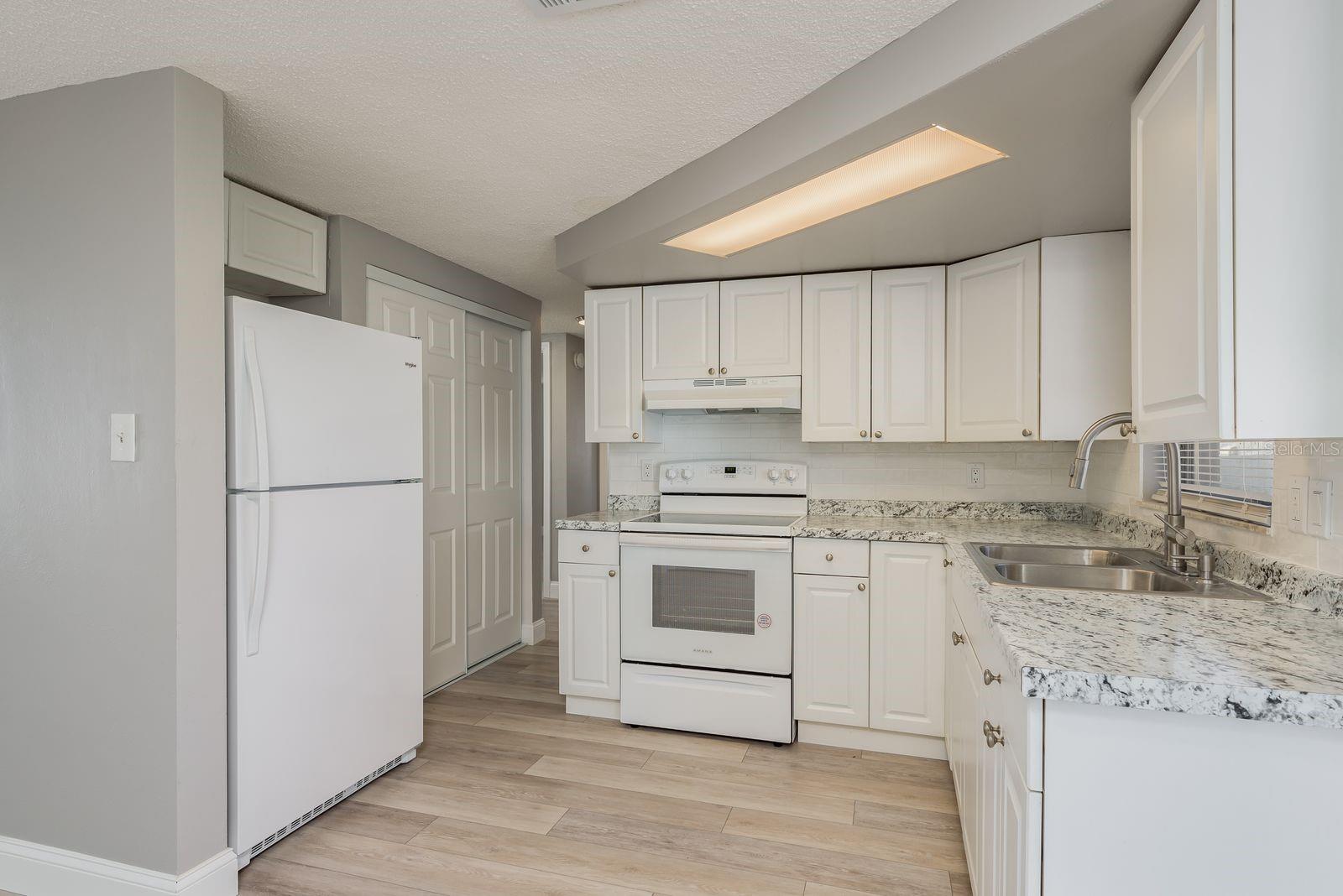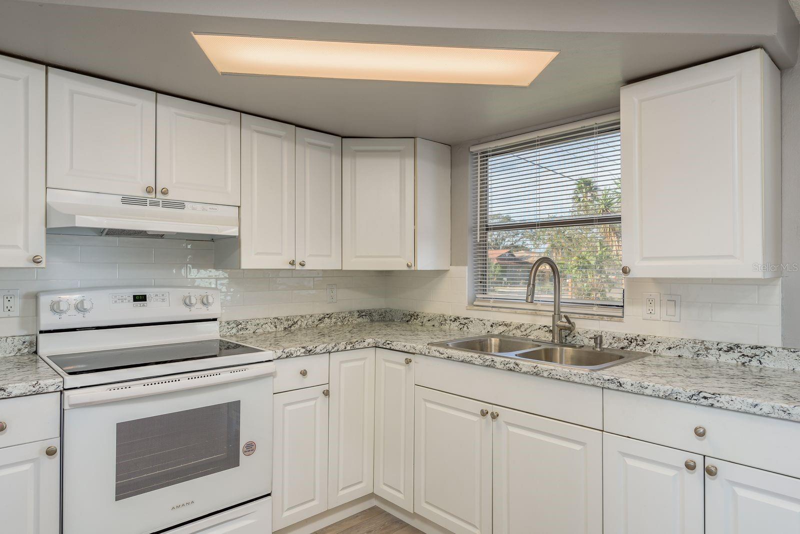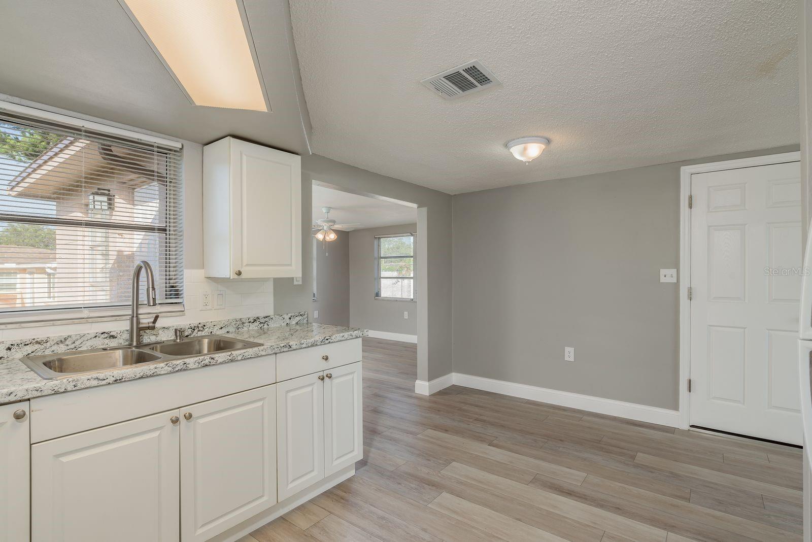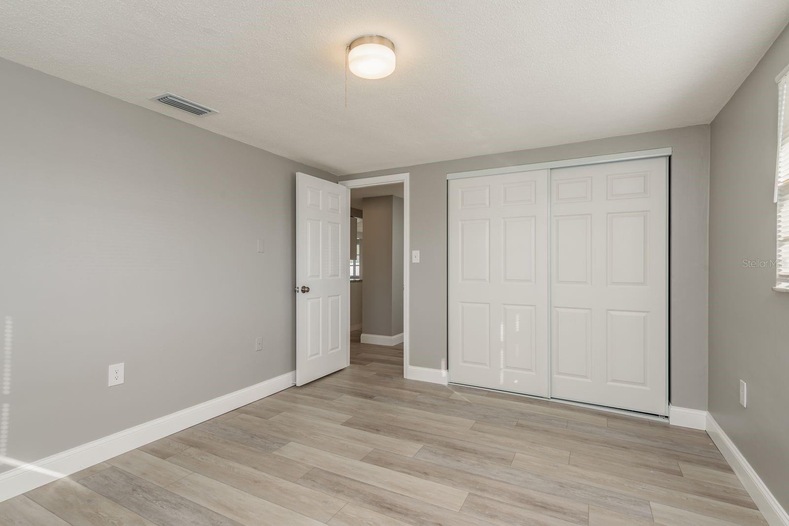 This beautifully renovated 2 Bedroom, 1 Bathroom, 1 car garage home is perfect for the first-time homebuyer. Located high & dry, on a corner lot with no flood insurance required! This home offers an open floorplan and is situated in a great neighborhood! The interior of the home has been freshly painted and features newly installed engineered hardwood flooring throughout, new fans and light fixtures. The kitchen has been completely redone and features new kitchen cabinets, new countertops, brand-new appliances and a large pantry. Spacious L-shaped living room and dining room. Large family/bonus room. The primary bedroom can easily accommodate a king-size bed. The guest bedroom is gracious in size. The bathroom features a new vanity. Large rear yard with plenty of room for a pool. Roof 2009, flat roof 2024, a/c 2017, garage and garage side door 2024. Centrally located with easy commutes to all the Tampa Bay area! Close to shopping, recreation, restaurants and parks. This is a must see!