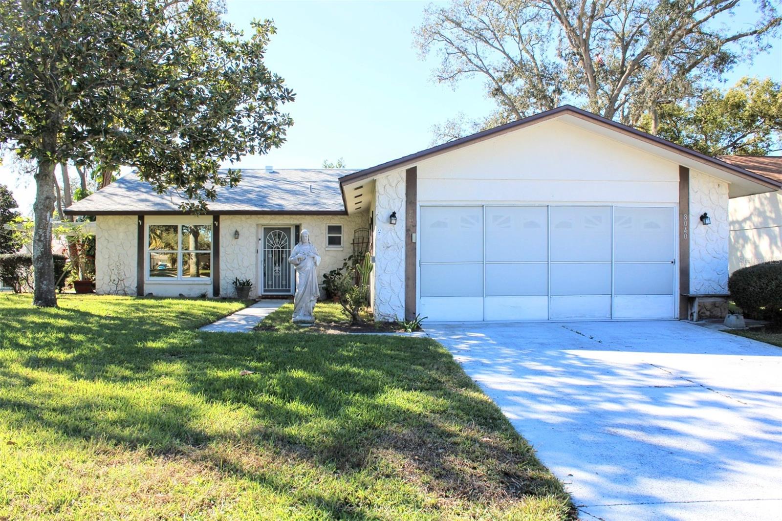 BACK ON MARKET! Welcome to this charming 2-bedroom, 2- bathroom, 2-car garage home located in the popular active 55+ community of Timber Oaks. SELLER IS OFFERING $8,000 CREDIT FOR ANY COSMETIC REPAIRS AND/OR CLOSING COSTS! This home features a BRAND NEW roof installed December 2024, NEW 2023 AC/HVAC system 1,650 square feet, and situated on a prime lot within the community- close walk to the community clubhouse tons of amenities. As you enter through the front door you will notice the inviting living spaces are bathed in natural light, creating a warm and welcoming atmosphere. The floor plan seamlessly connects the living, dining, and kitchen area- perfect for both entertaining and everyday living. The kitchen is a chef's dream featuring stainless steel appliances and plenty of cabinet space. The bonus Florida room gives you a ton of opportunities to make an additional entertaining space or second living area. The spacious master suite features a spa-like ensuite bathroom complete with a walk in shower. As you step outside, relax on the covered back porch- perfect for al-fresco dining or simply enjoying a peaceful evening. Head on down to the community center just a short walk away which features a community pool, jacuzzi, billiards room, library, community dock, tennis courts, shuffleboard, and much more! Embrace the true Florida lifestyle with a day at the beach or indulge in local culinary delights just a short drive away. A truly amazing location providing easy access to Downtown New Port Richey or Tarpon Springs but tucked away in a private community with plenty of fun activities to do! Don't miss out on this rare opportunity to own a home in one of the most sought-after active adult communities in the Port Richey area. Schedule a showing today! Previous sale fell through due to buyer unable to secure financing- no fault of the home! Let their loss be your gain! Home passed 4-point inspection and appraised at value!