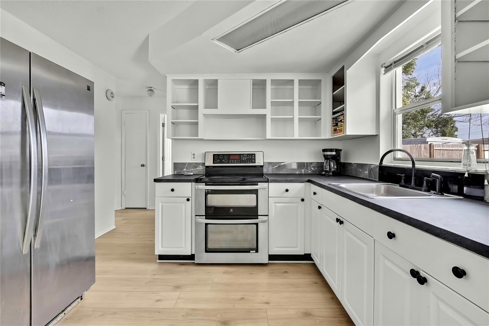 Welcome to this charming 3-bedroom, 2-bathroom starter home in Port Richey! With an inviting open floor plan, the living room flows seamlessly into the dining area and kitchen. Recent updates include new flooring in the living and dining rooms, offering a fresh and modern feel. The main bathroom has been thoughtfully updated with modern finishes, providing a fresh and inviting space. Outside, you'll find a newly completed driveway. You'll also find a brand new sliding glass door leading to your large backyard. This home presents a fantastic opportunity to add your personal touches and build equity. Key information: Home Purification System - 2023, Roof - 2005, HVAC - 2014, Water Heater - 2022