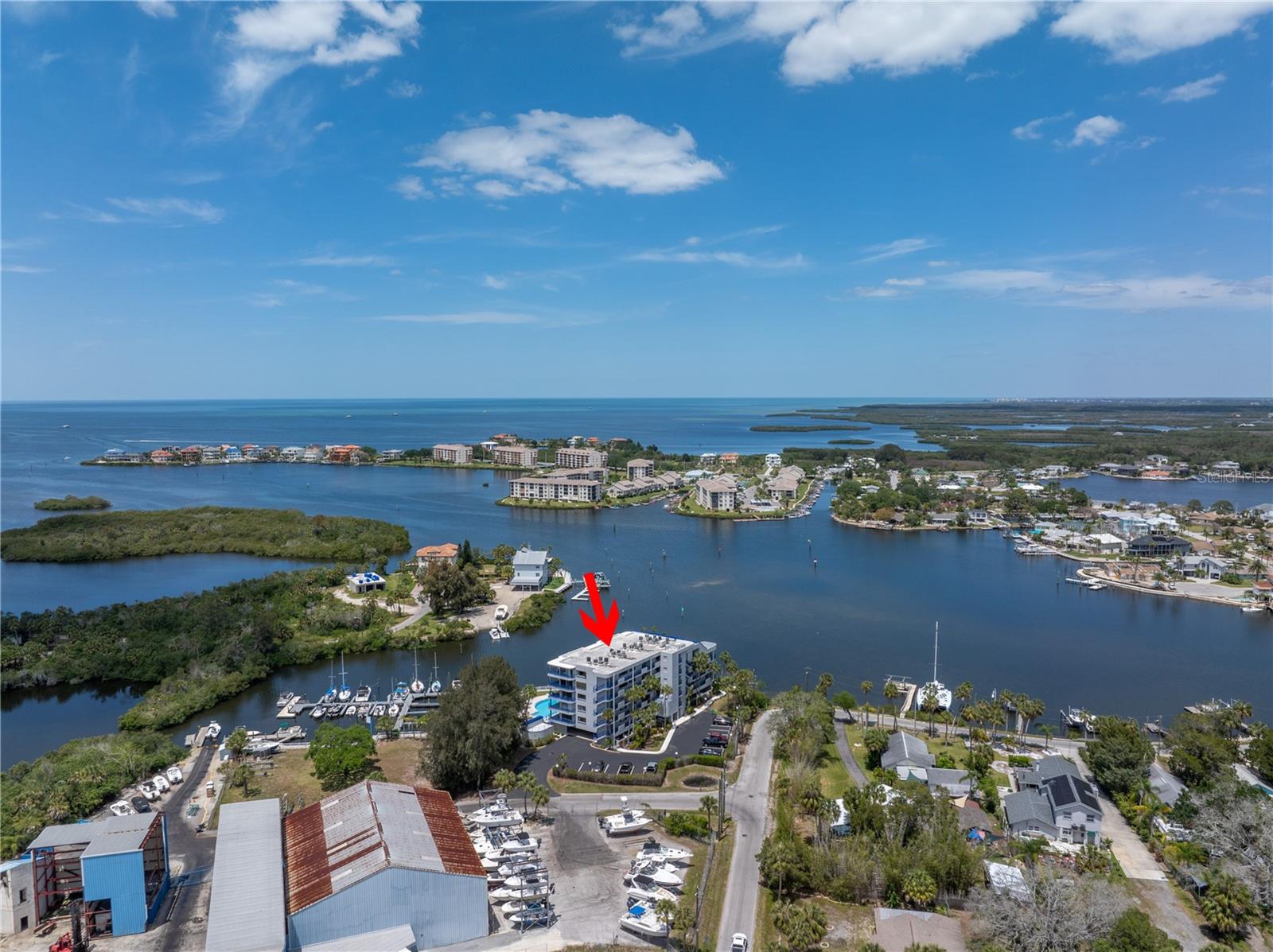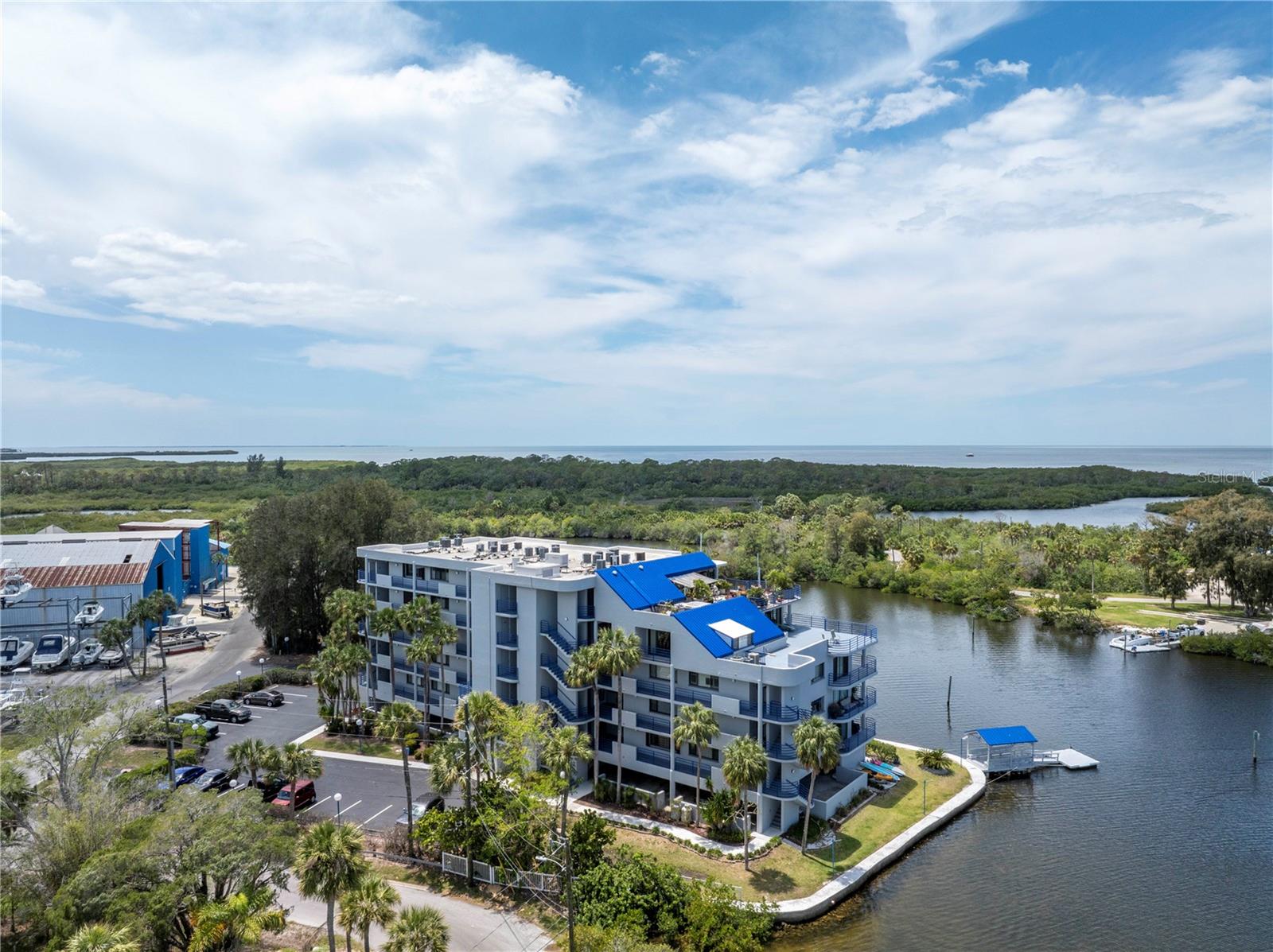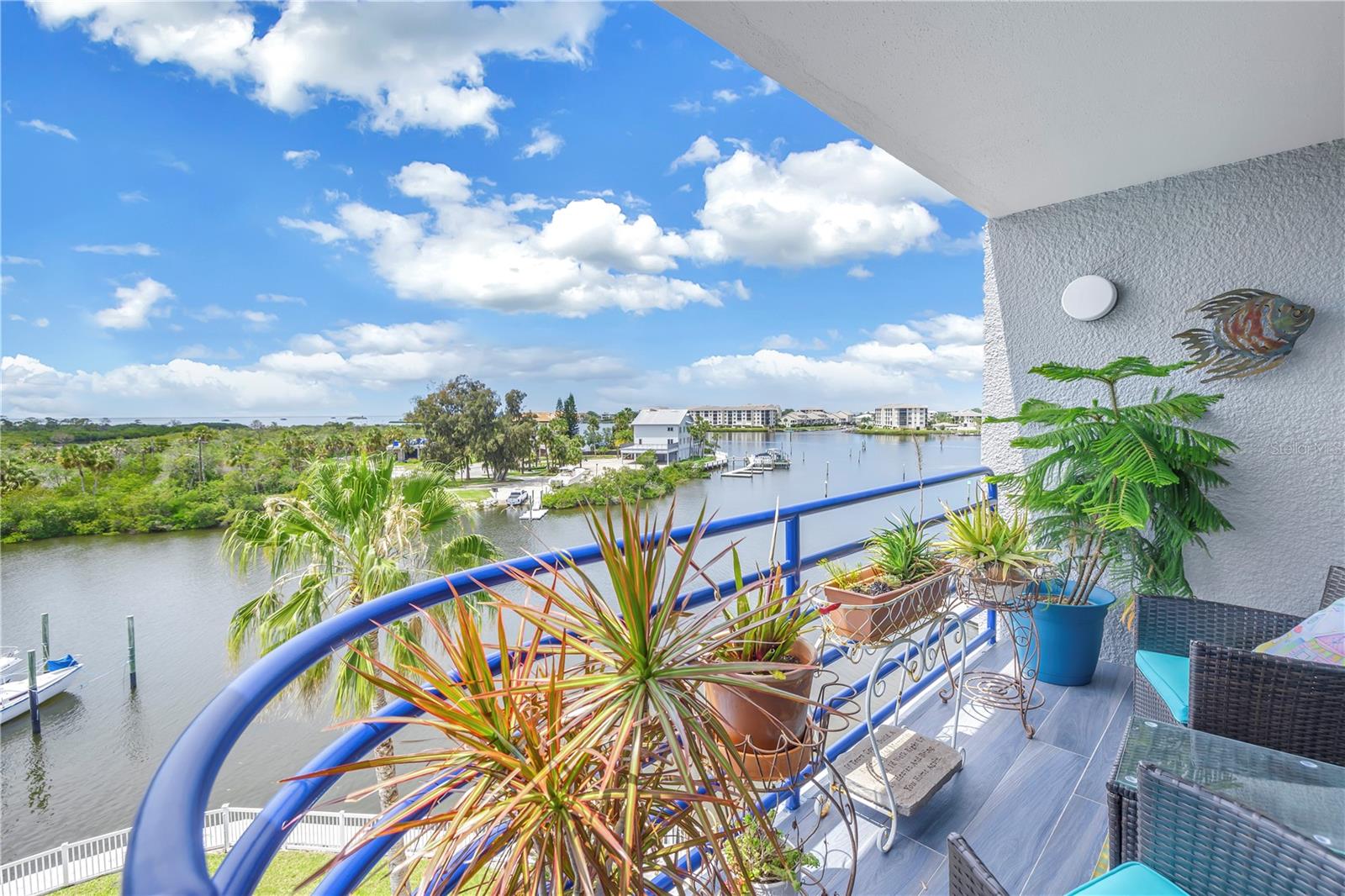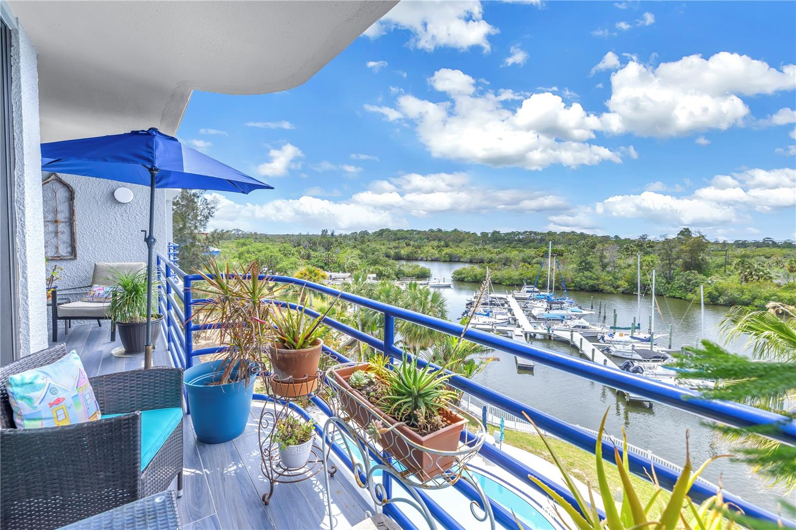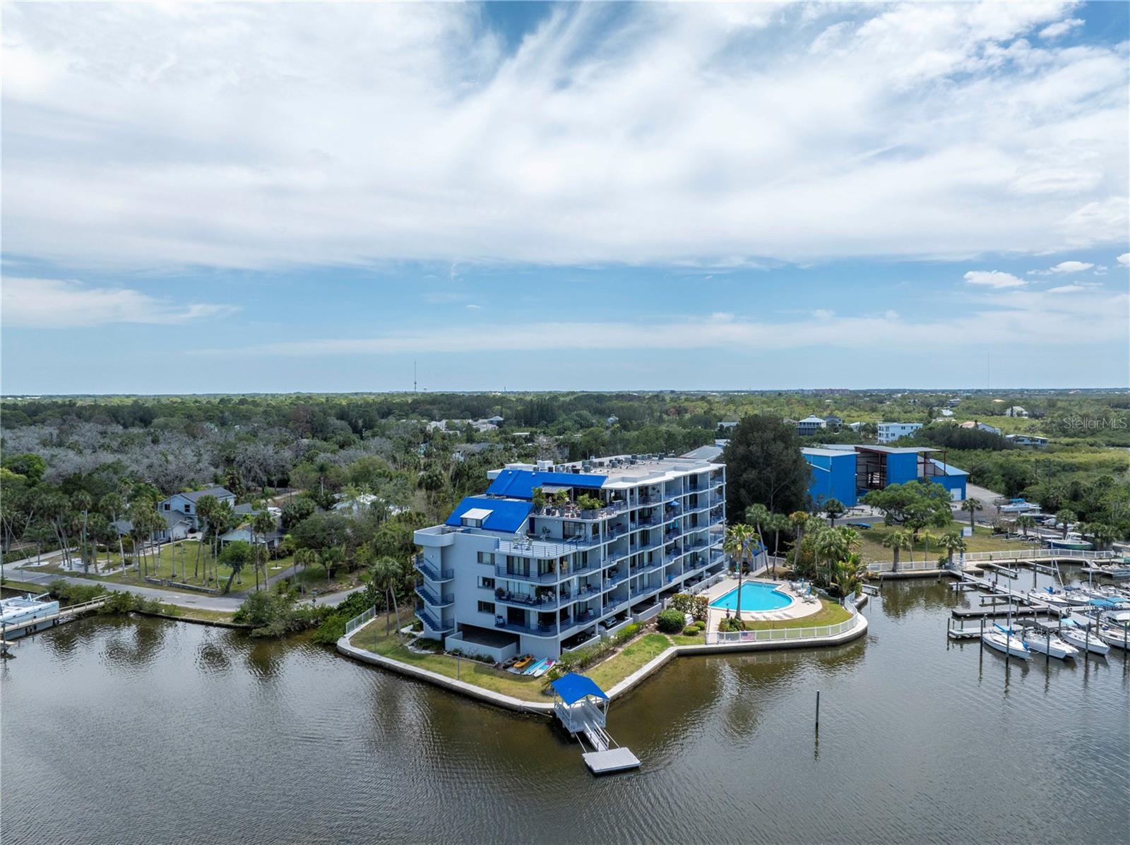 Old Florida Still Exists… a hidden gem offering charm, character, unobstructed water views with nightly sunsets over the Gulf from the privacy of the balcony or inside this stunning condo located at the mouth of the Pithlachascotee(Cotee)River. This condo is a peaceful retreat and visual delight. The 2020 top-to-bottom renovation includes:porcelain tile flooring, granite countertops, recessed lighting, stainless steel kitchen appliances, plantation shutters, crown molding, 6” baseboards, built-in desk & dresser, and hurricane-rated impact windows and sliding doors. Enjoy resort-style living in a community that offers a waterfront pool (renovated in 2021), a gazebo perfect for gathering with friends and enjoying your favorite beverage, and a dock that invites fishing enthusiasts. Just south of the property, you'll find convenient storage for all your recreational vehicles and water toys. Close to nearby beaches, historic downtown New Port Richey with restaurants, bars, coffee shops & quaint shops. Additional peace of mind comes with a 2020 roof and HVAC system. The Structural Integrity Reserve Study was completed in 2023, and the building itself has proven to be resilient and secure with no water intrusion from Helene or Milton. For the discerning buyer seeking that classic “Old Florida” feel with an upscale coastal vibe at an unbeatable price point—this one delivers.