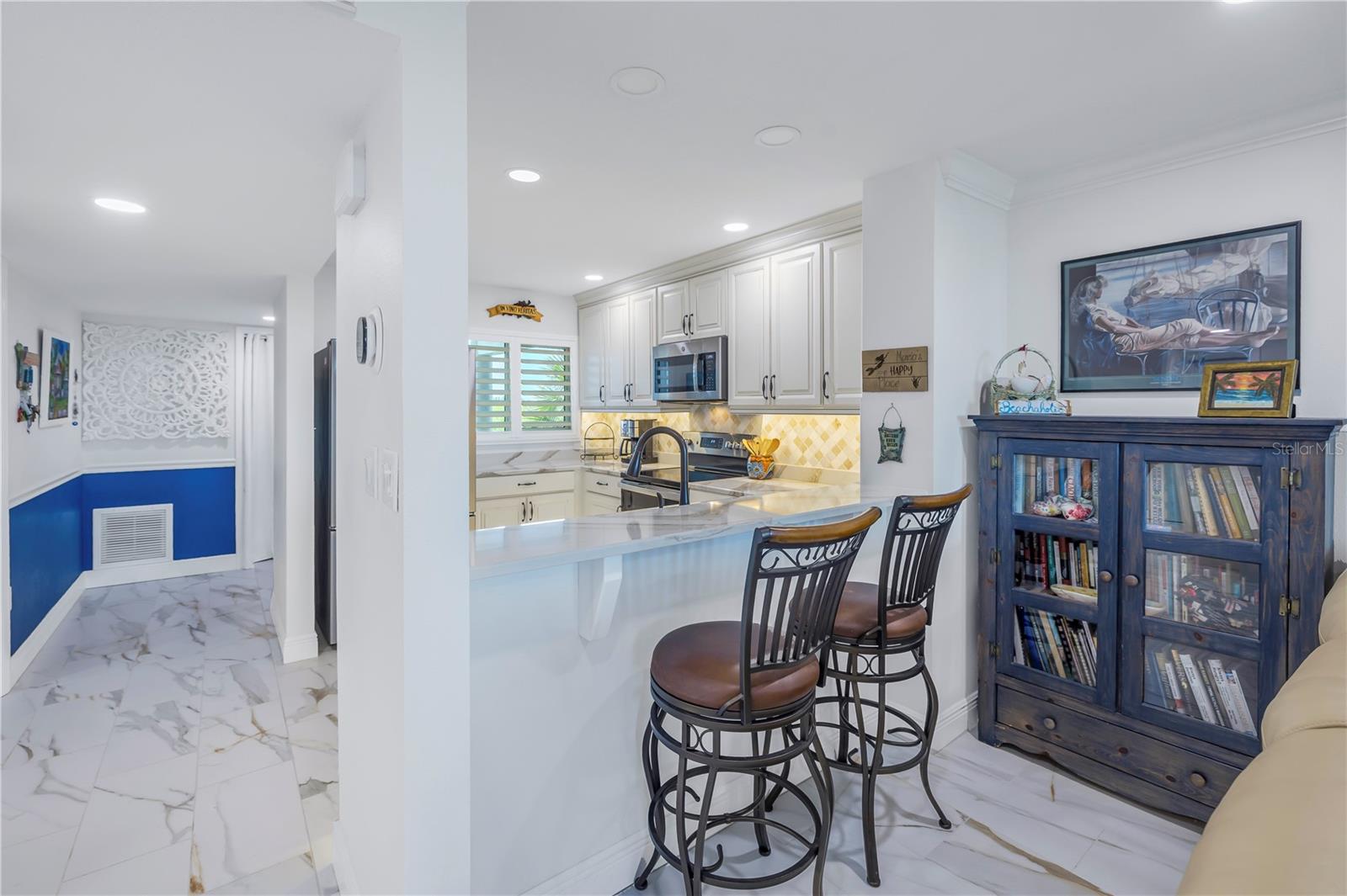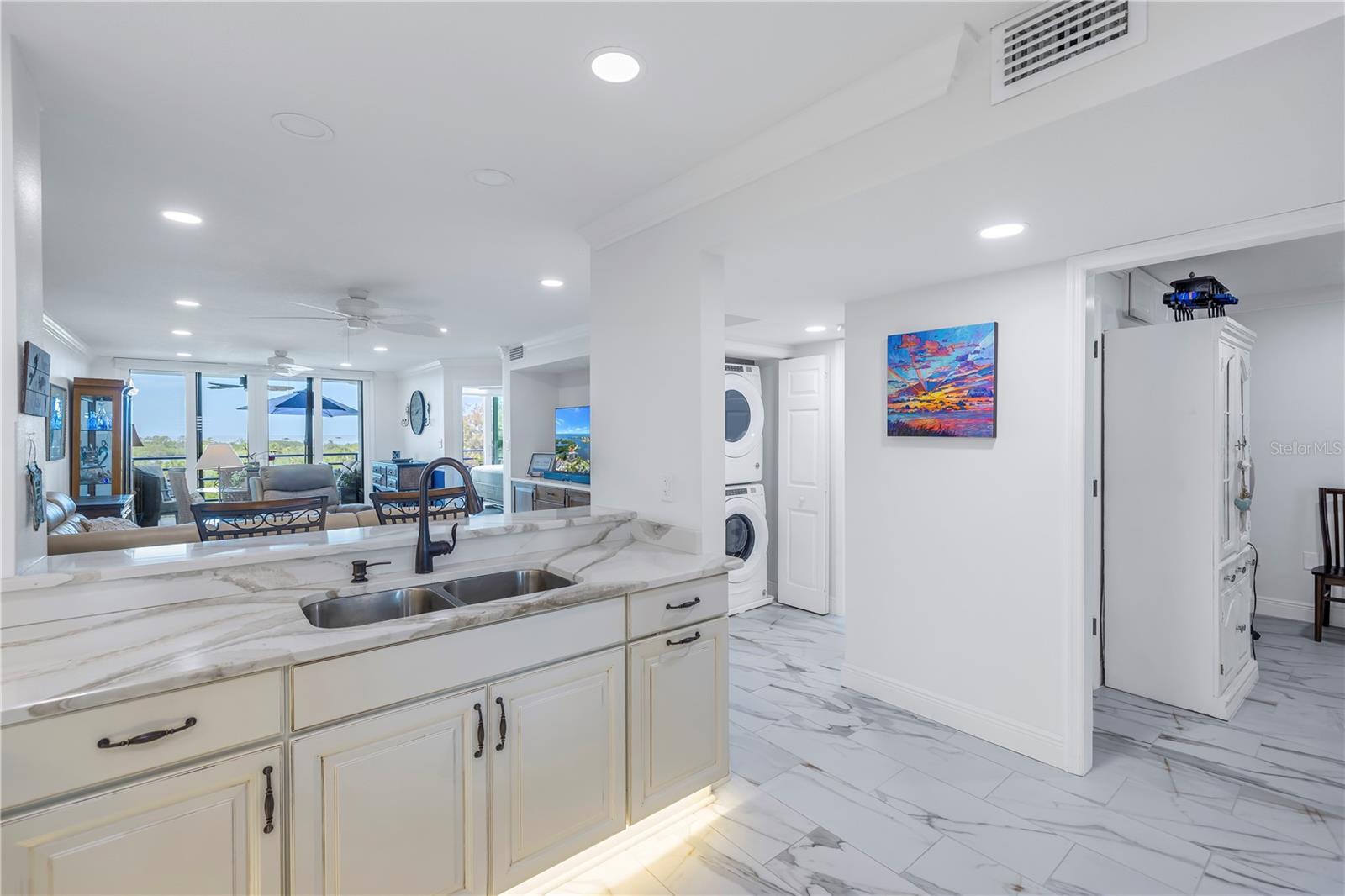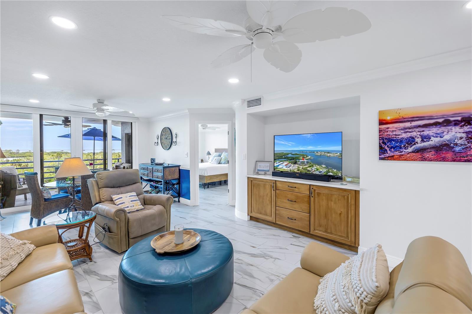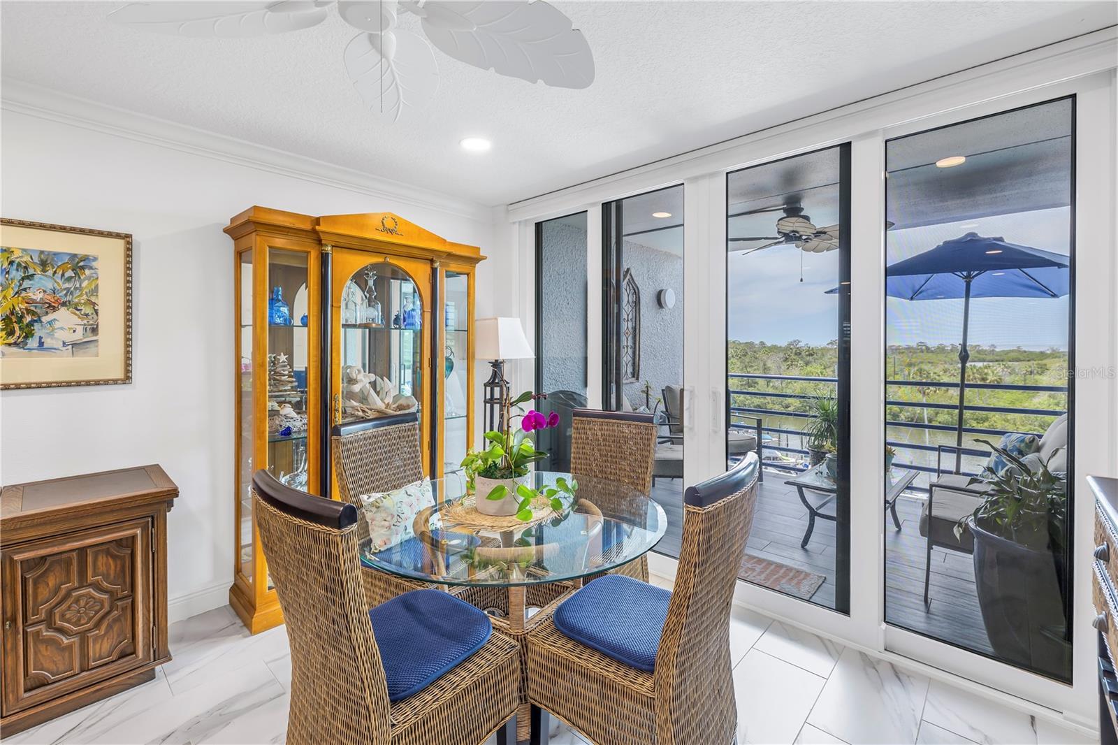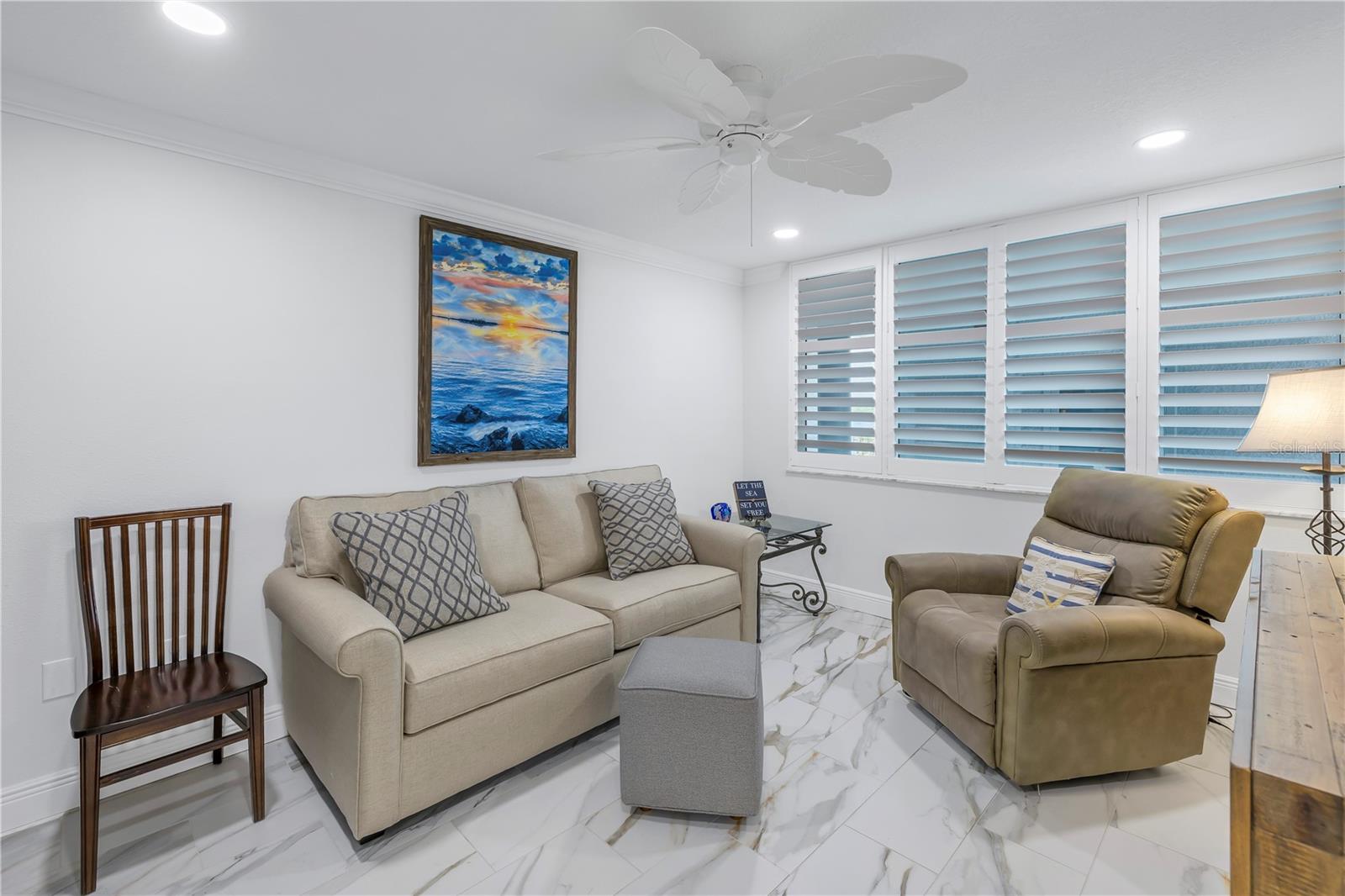Old Florida Still Exists… a hidden gem offering charm, character, unobstructed water views with nightly sunsets over the Gulf from the privacy of the balcony or inside this stunning condo located at the mouth of the Pithlachascotee(Cotee)River. This condo is a peaceful retreat and visual delight. The 2020 top-to-bottom renovation includes:porcelain tile flooring, granite countertops, recessed lighting, stainless steel kitchen appliances, plantation shutters, crown molding, 6” baseboards, built-in desk & dresser, and hurricane-rated impact windows and sliding doors. Enjoy resort-style living in a community that offers a waterfront pool (renovated in 2021), a gazebo perfect for gathering with friends and enjoying your favorite beverage, and a dock that invites fishing enthusiasts. Just south of the property, you'll find convenient storage for all your recreational vehicles and water toys. Close to nearby beaches, historic downtown New Port Richey with restaurants, bars, coffee shops & quaint shops. Additional peace of mind comes with a 2020 roof and HVAC system. The Structural Integrity Reserve Study was completed in 2023, and the building itself has proven to be resilient and secure with no water intrusion from Helene or Milton. For the discerning buyer seeking that classic “Old Florida” feel with an upscale coastal vibe at an unbeatable price point—this one delivers.