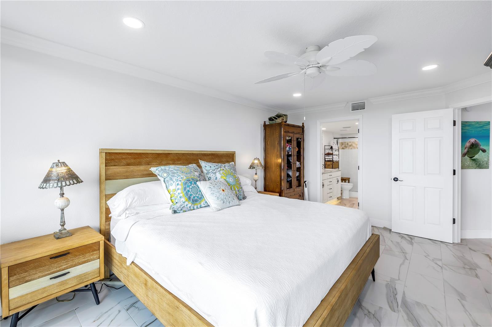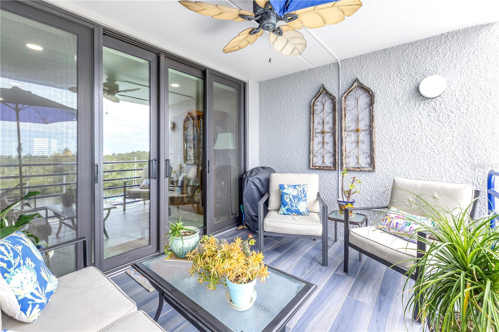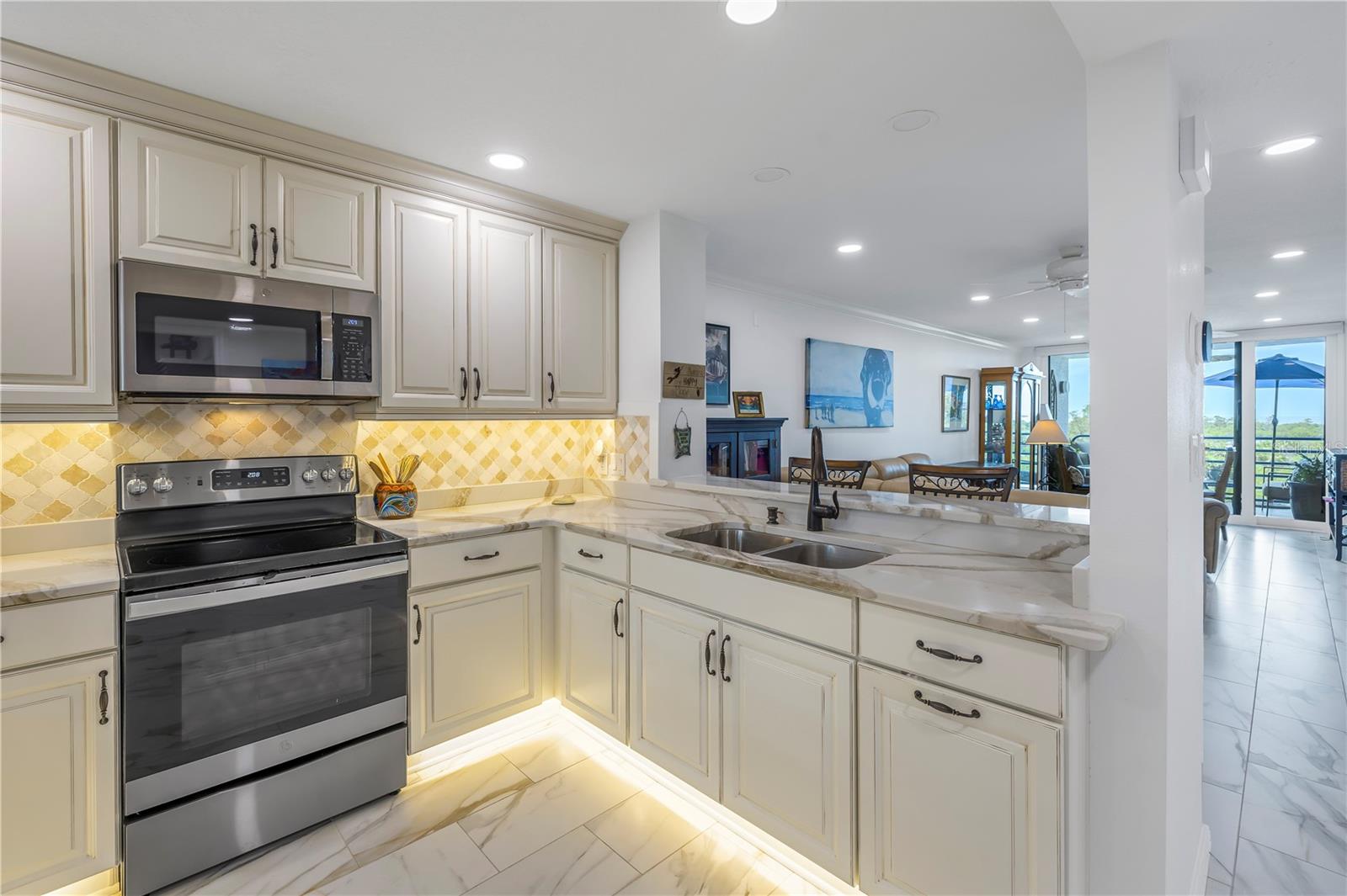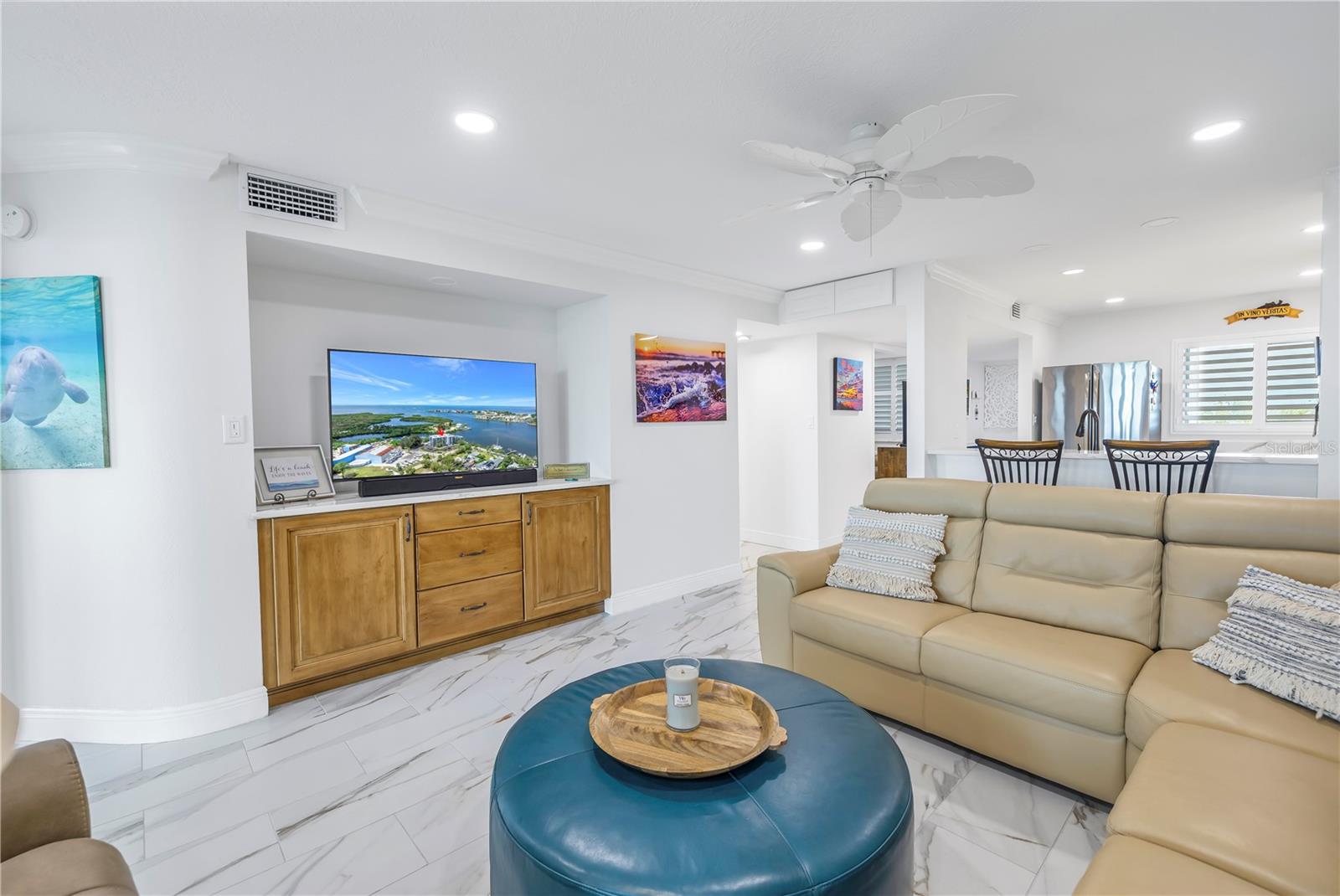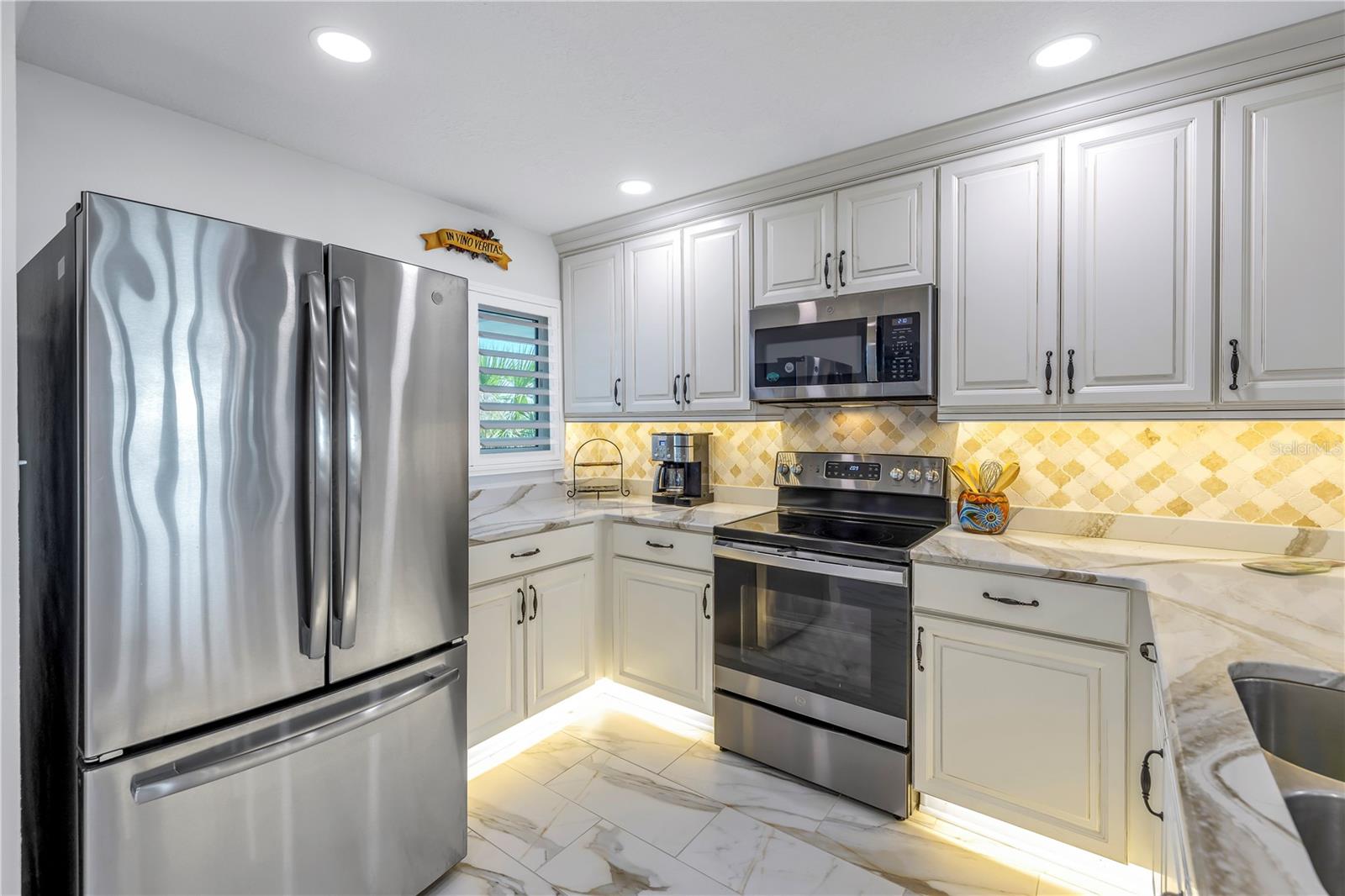 Old Florida Still Exists… a hidden gem offering charm, character, unobstructed water views with nightly sunsets over the Gulf from the privacy of the balcony or inside this stunning condo located at the mouth of the Pithlachascotee(Cotee)River. This condo is a peaceful retreat and visual delight. The 2020 top-to-bottom renovation includes:porcelain tile flooring, granite countertops, recessed lighting, stainless steel kitchen appliances, plantation shutters, crown molding, 6” baseboards, built-in desk & dresser, and hurricane-rated impact windows and sliding doors. Enjoy resort-style living in a community that offers a waterfront pool (renovated in 2021), a gazebo perfect for gathering with friends and enjoying your favorite beverage, and a dock that invites fishing enthusiasts. Just south of the property, you'll find convenient storage for all your recreational vehicles and water toys. Close to nearby beaches, historic downtown New Port Richey with restaurants, bars, coffee shops & quaint shops. Additional peace of mind comes with a 2020 roof and HVAC system. The Structural Integrity Reserve Study was completed in 2023, and the building itself has proven to be resilient and secure with no water intrusion from Helene or Milton. For the discerning buyer seeking that classic “Old Florida” feel with an upscale coastal vibe at an unbeatable price point—this one delivers.